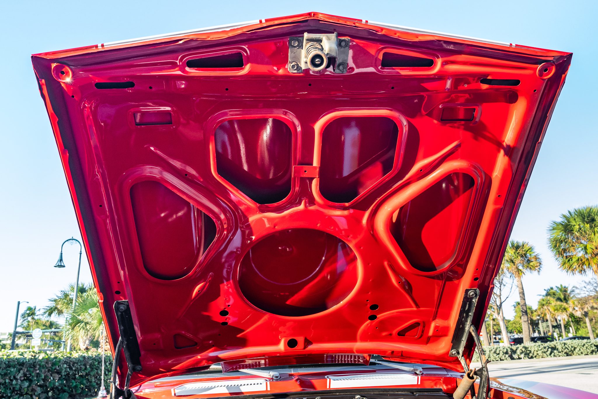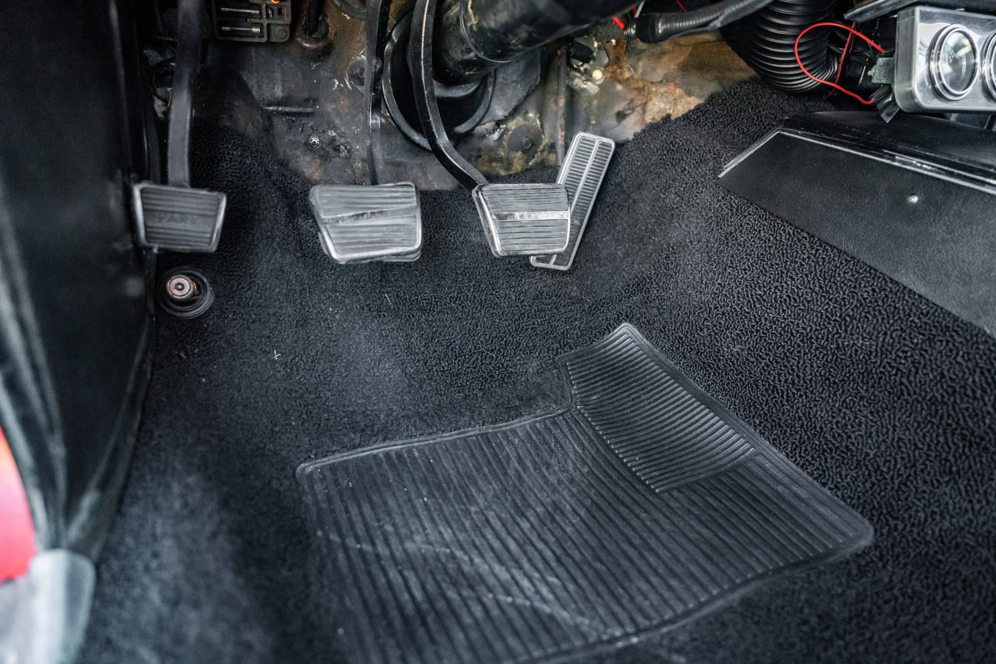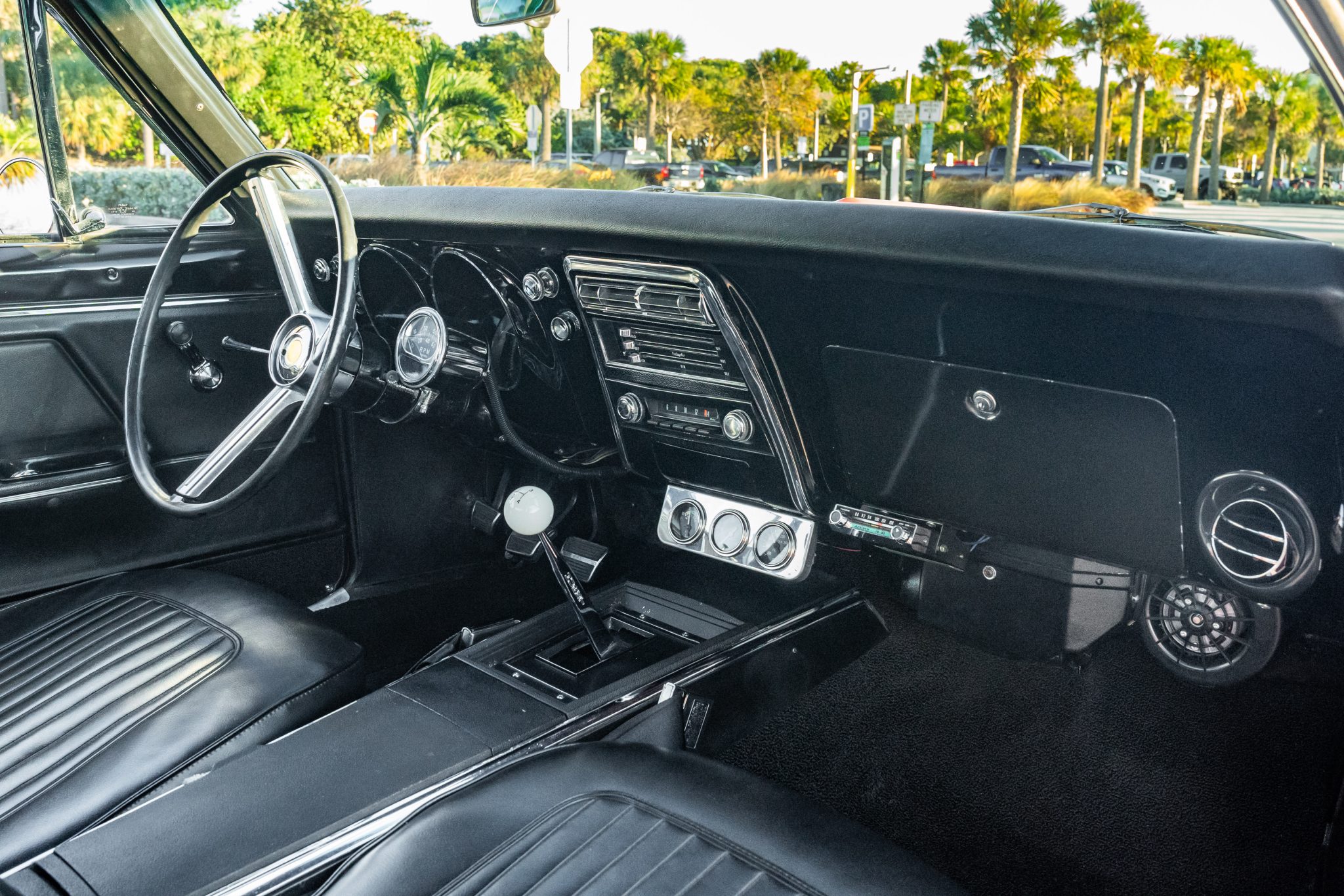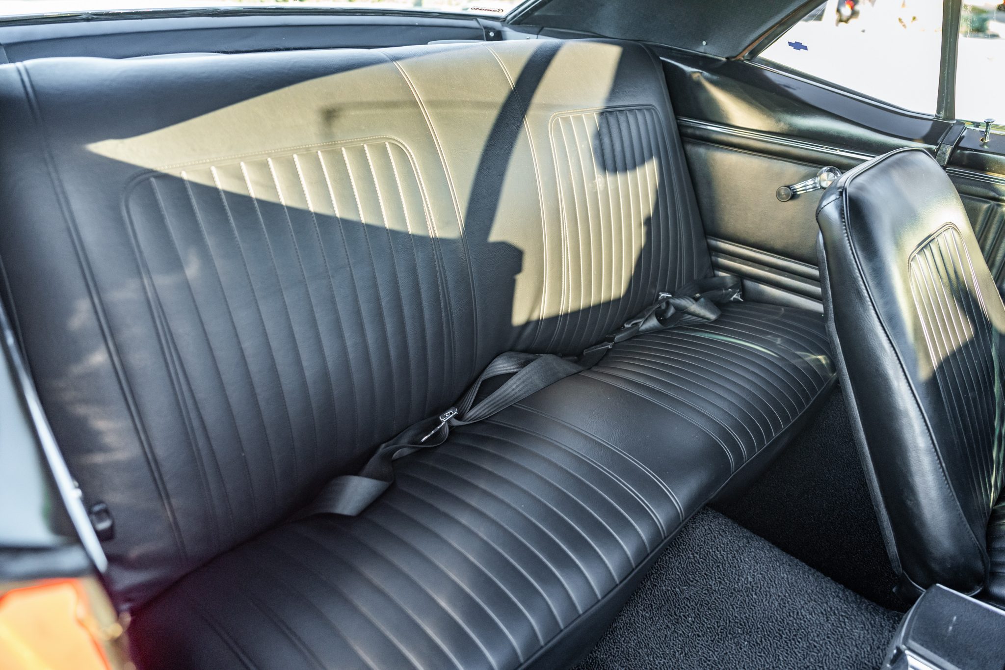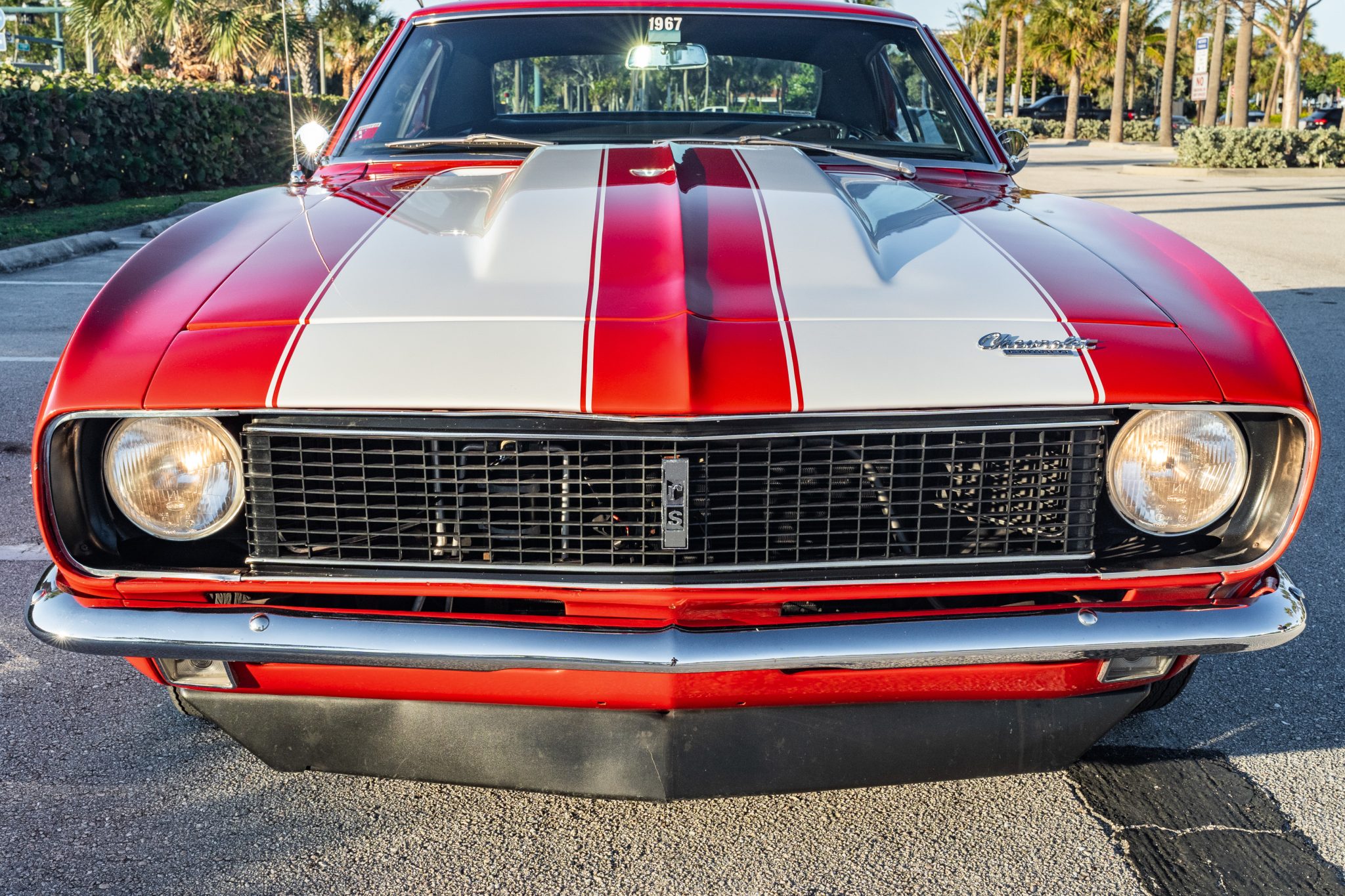 This 1967 Chevrolet Camaro RS sport coupe was the subject of a refurbishment completed that included a repaint in red with white stripes as well as the installation of a replacement 396ci V8 paired with a Muncie four-speed manual transmission. Equipment includes a 10-bolt rear axle with a 3.08:1 Positraction differential, Vintage Air climate control, an Audiovox radio, a center console, a cowl hood, front and rear spoilers, and 15″ steel wheels with hubcaps as well as full-length headers connected to a dual exhaust system with Flowmaster mufflers.