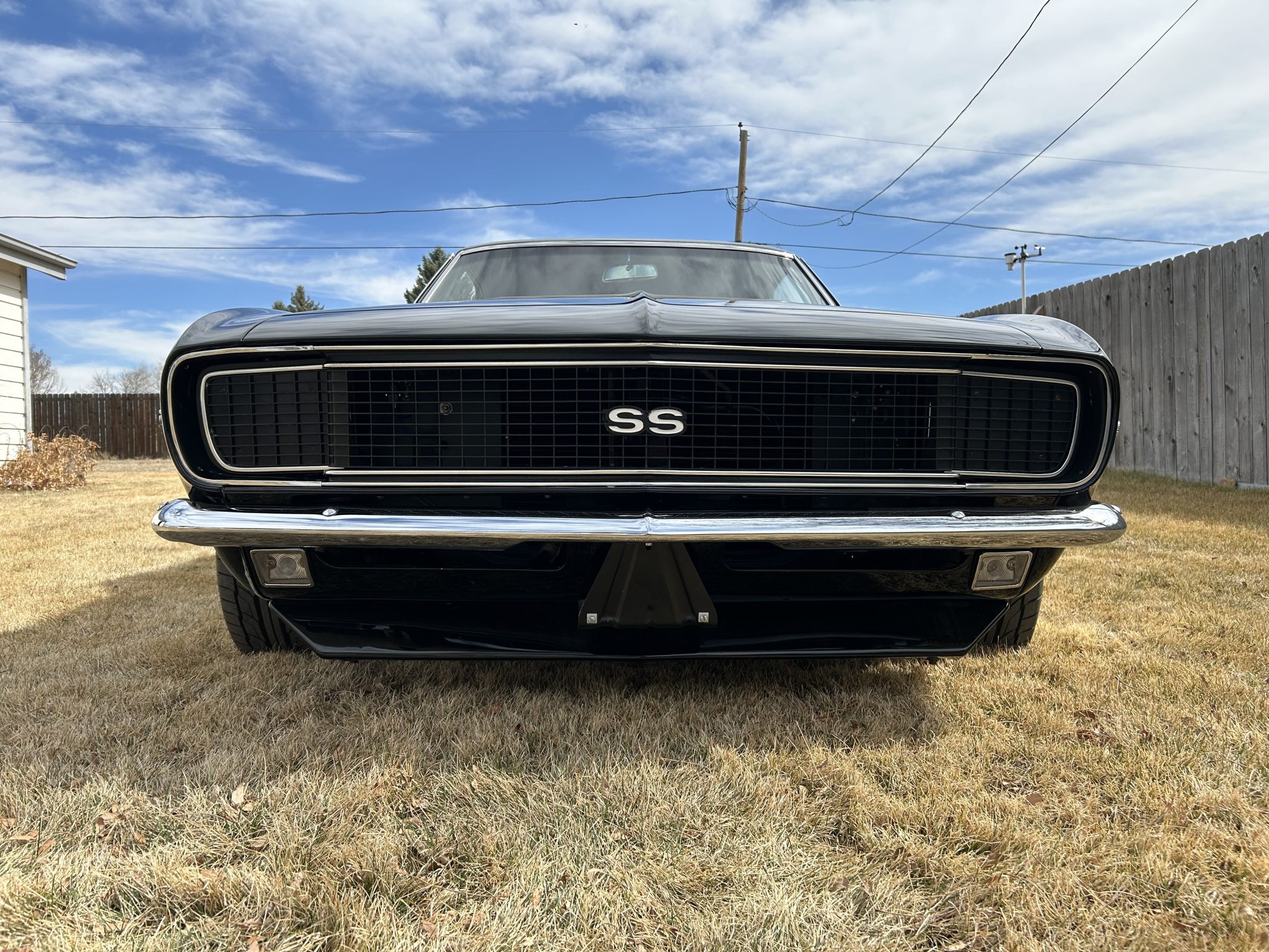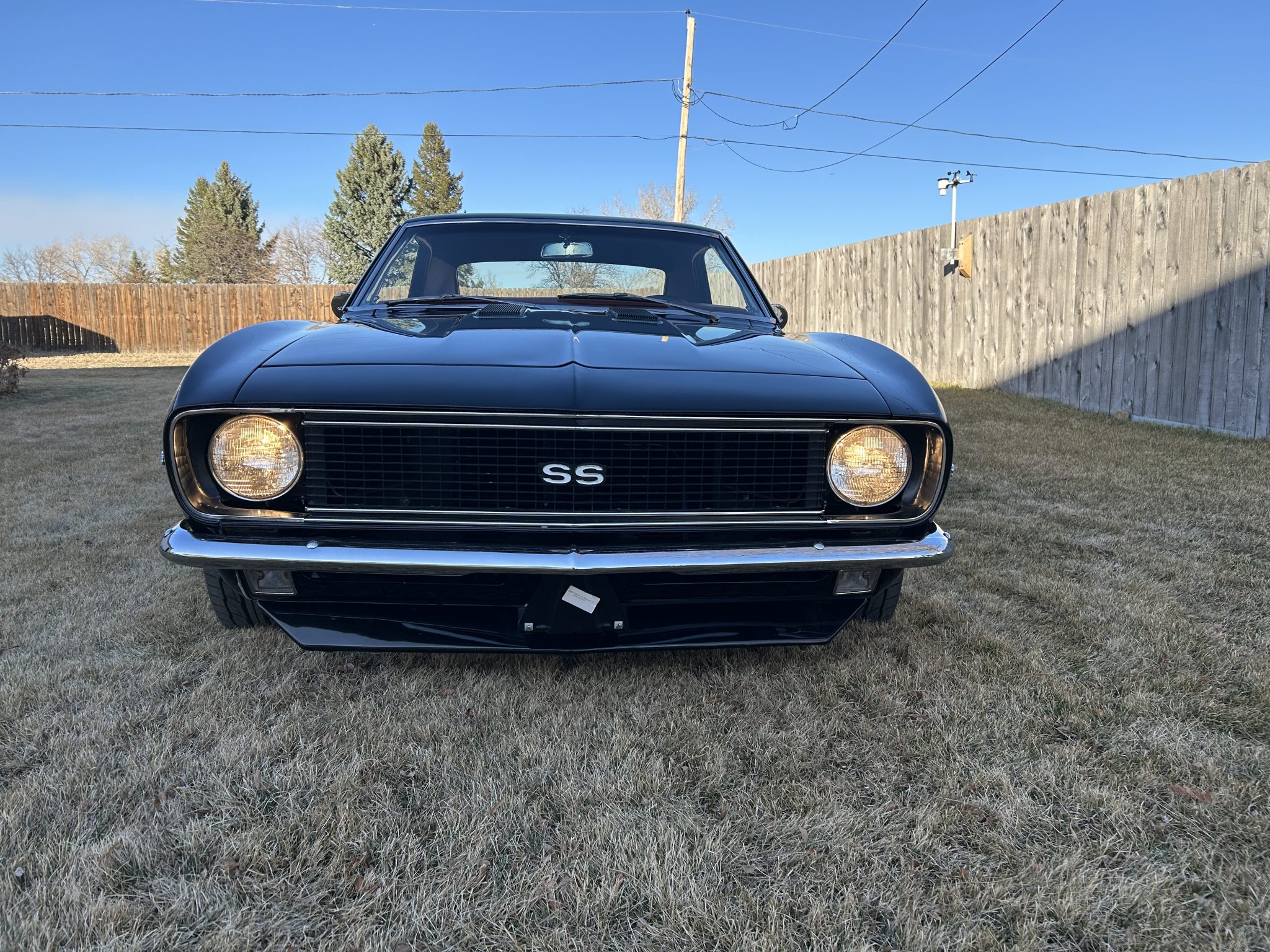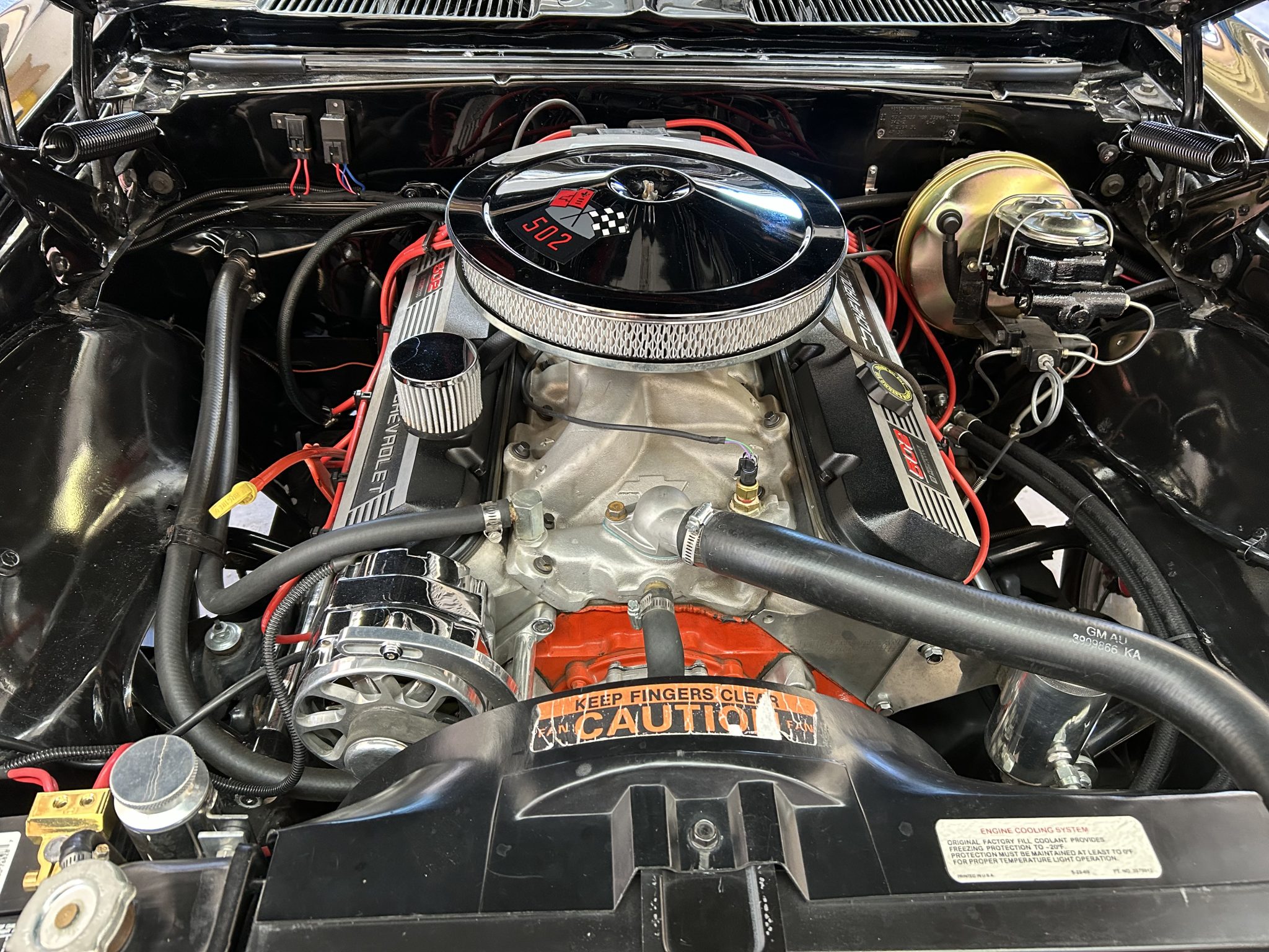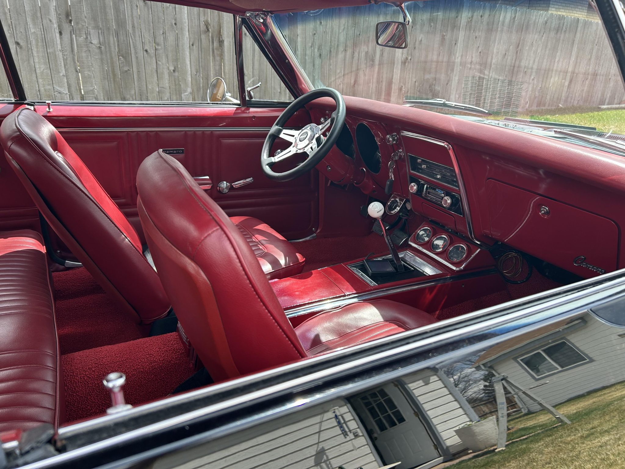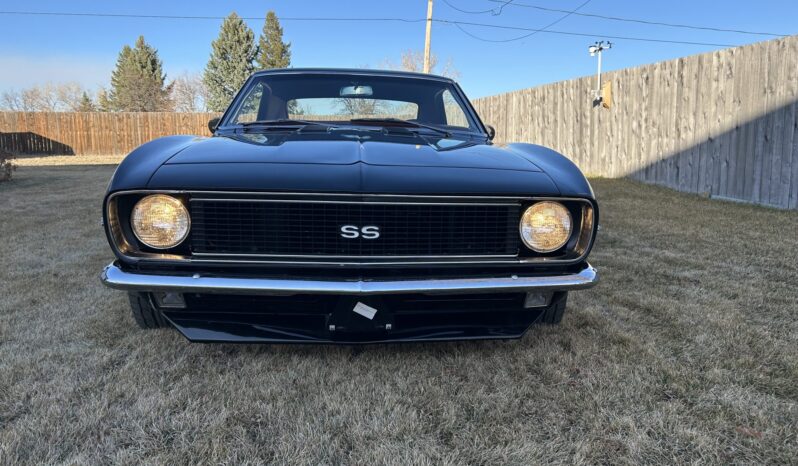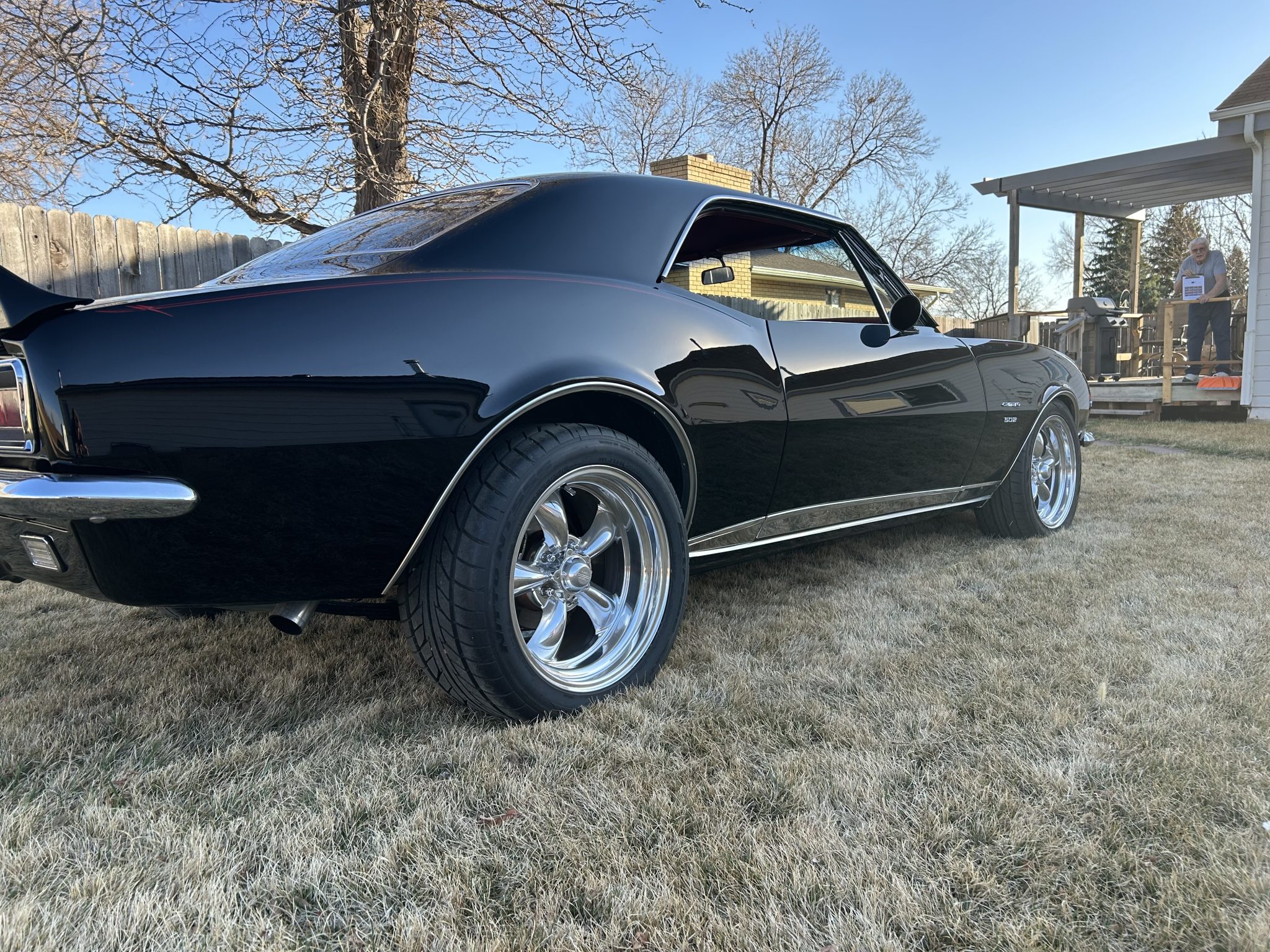 This 1967 Chevrolet Camaro RS coupe was refurbishment work from 2009 to 2011 involved installing a ZZ502 V8 crate engine and refinishing the car in black over red vinyl upholstery. Holley Sniper EFI was added and the brakes and suspension were overhauled in 2018, and additional equipment includes a four-speed manual transmission, a Positraction differential, concealed headlights, an SS-style hood with raised simulated air intakes, front and rear spoilers, and 17″ American Racing Torq Thrust wheels.