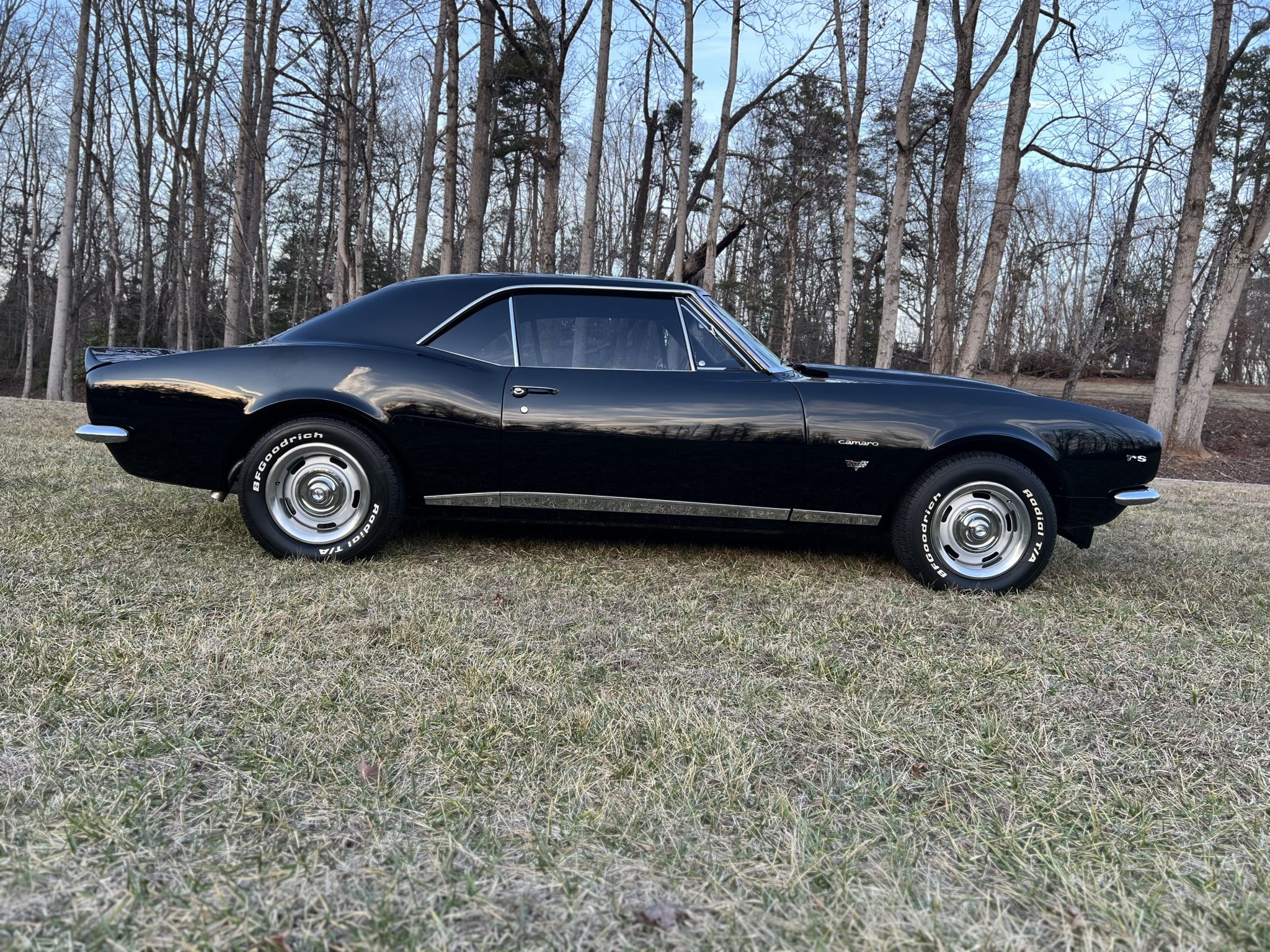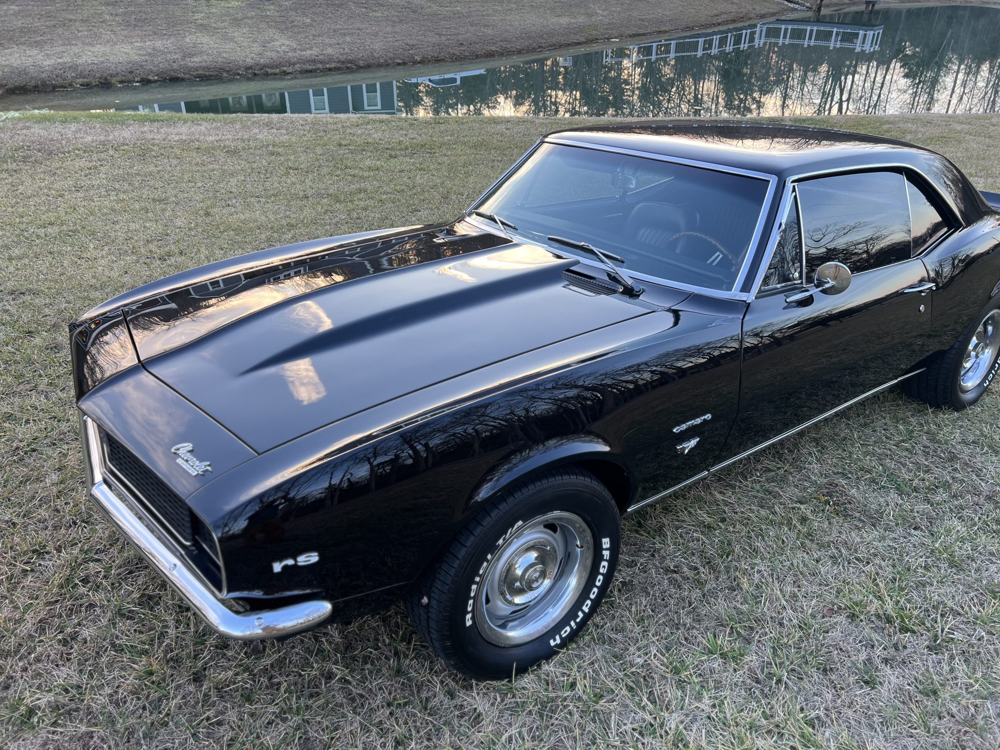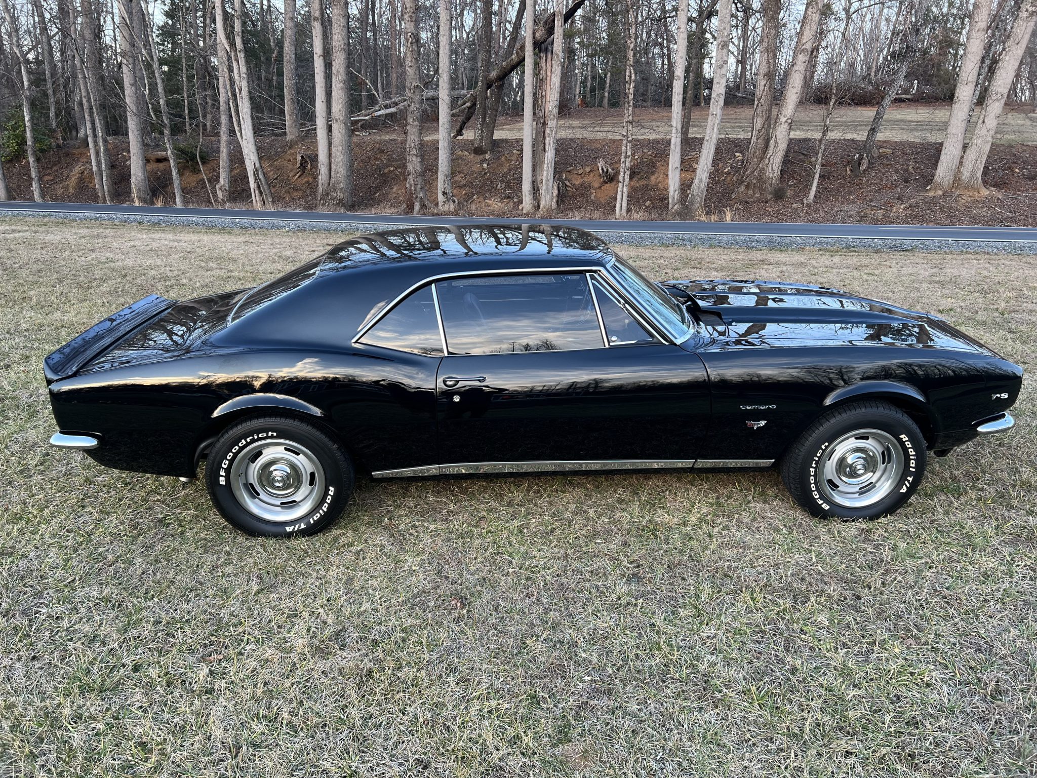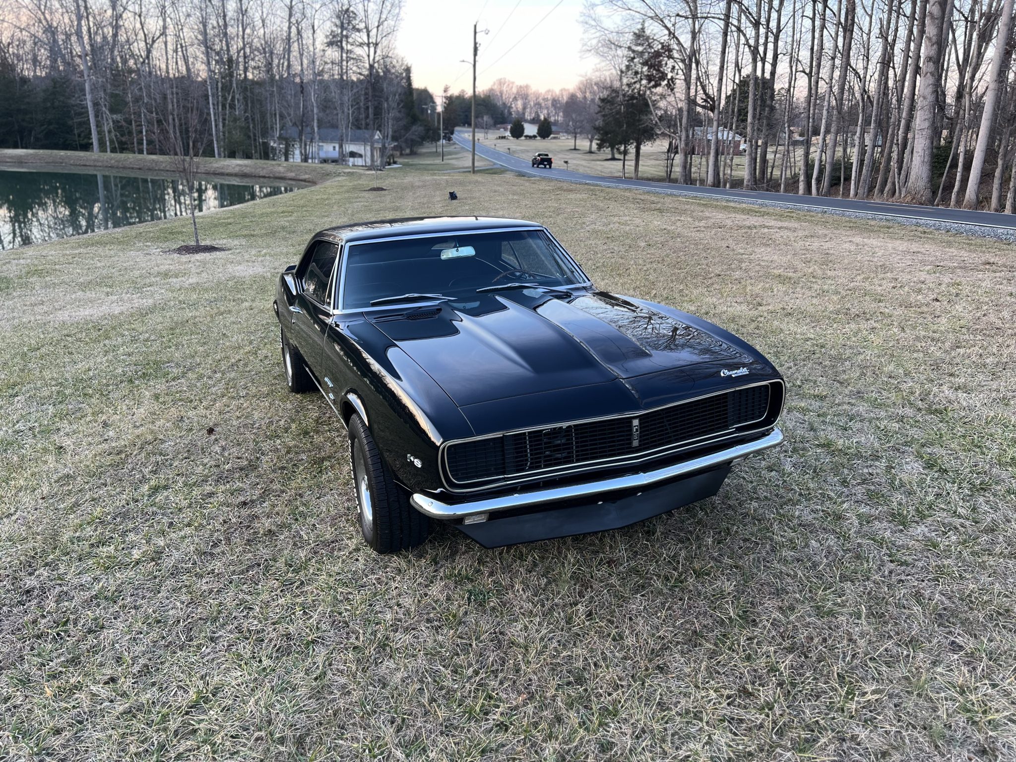 The car has been refinished in black over black upholstery, and it is powered by a replacement 396ci V8 paired with a Richmond four-speed manual transmission. QA1 adjustable front coilovers and rear shocks have been installed along with power-assisted four-wheel disc brakes, a cassette stereo unit, and a Vintage Air climate control system. Additional equipment includes an aluminum intake manifold, a Holley carburetor, an MSD distributor, a COMP Cams camshaft, and a dual exhaust system with MagnaFlow mufflers.