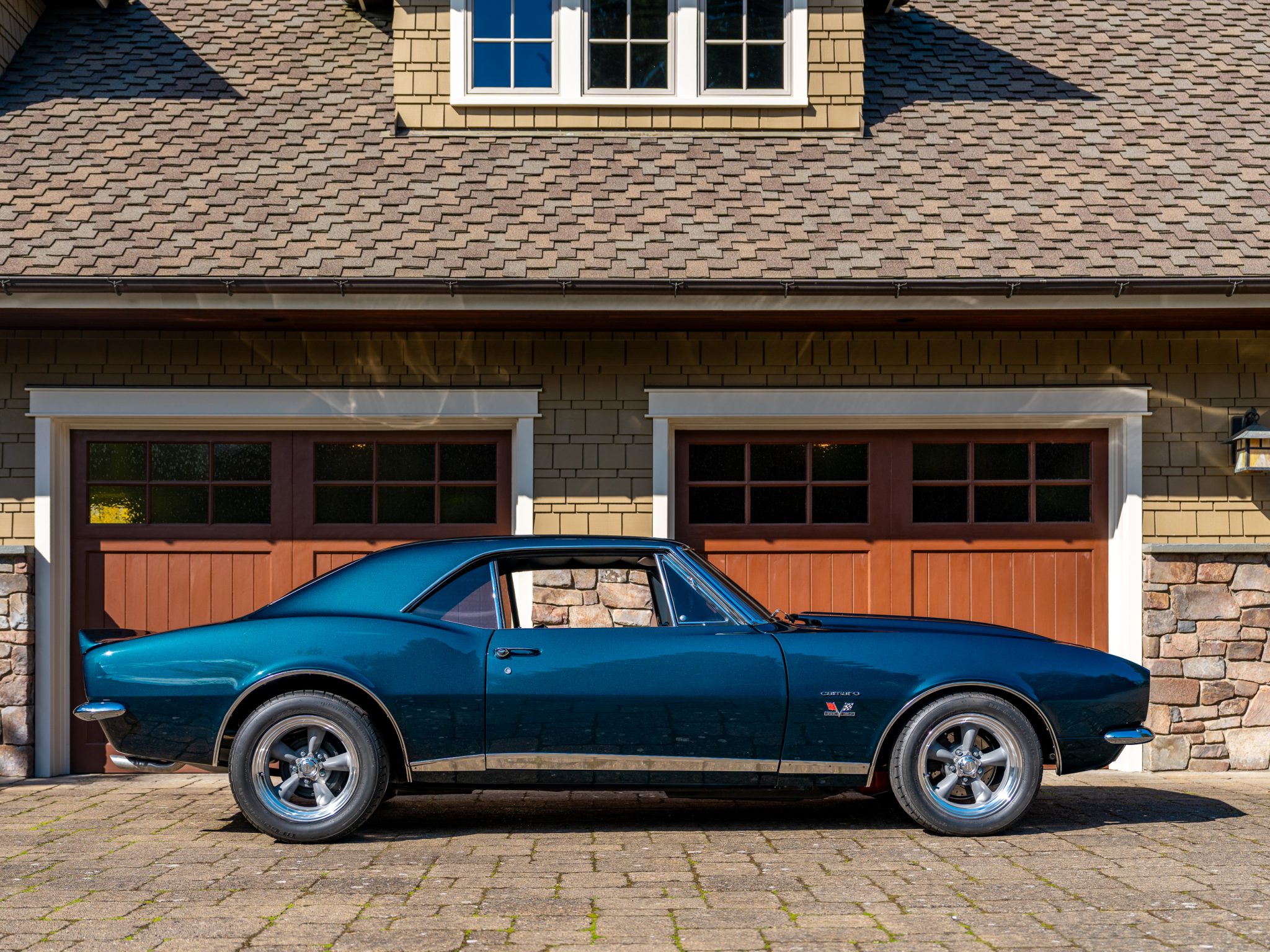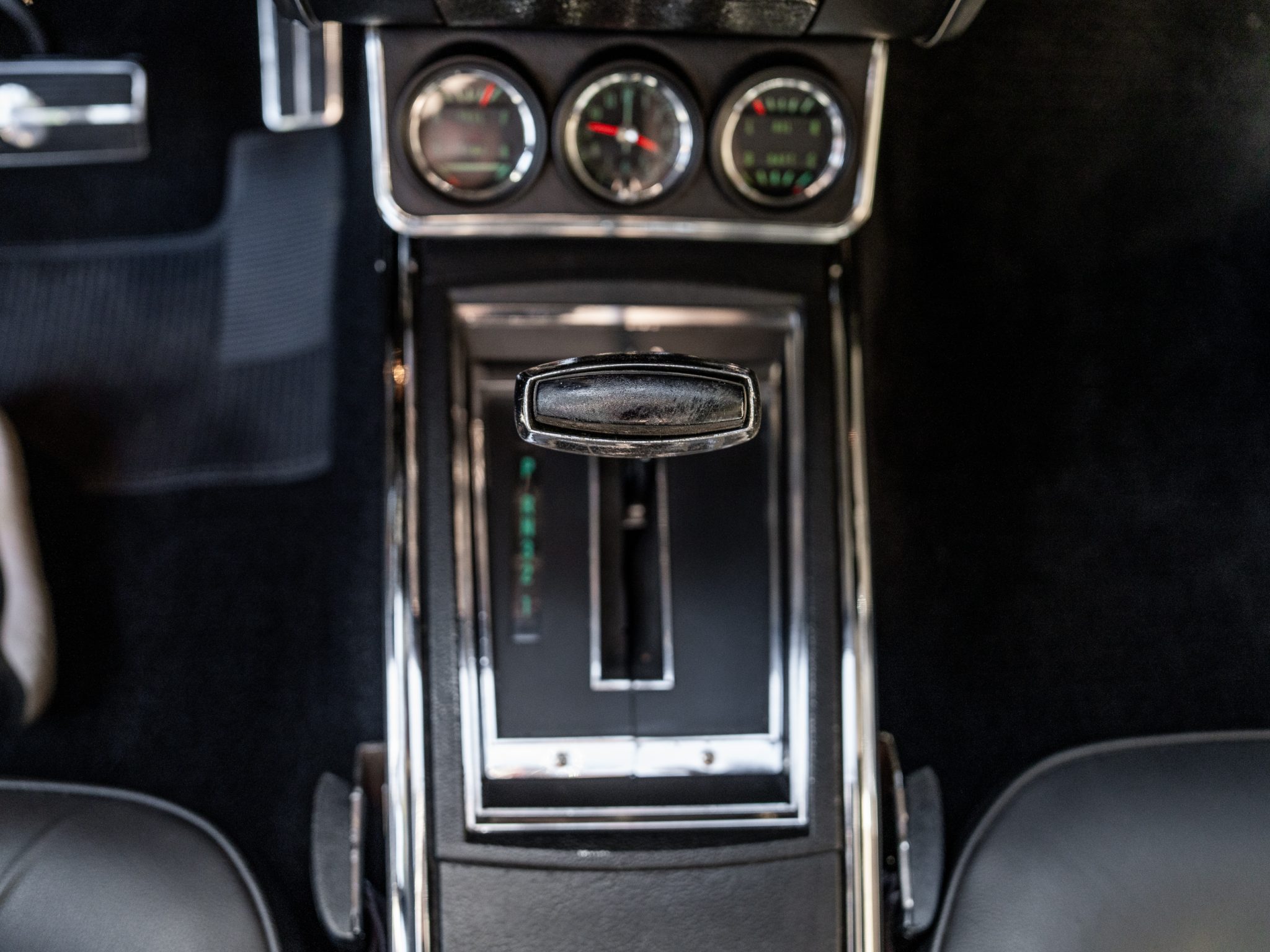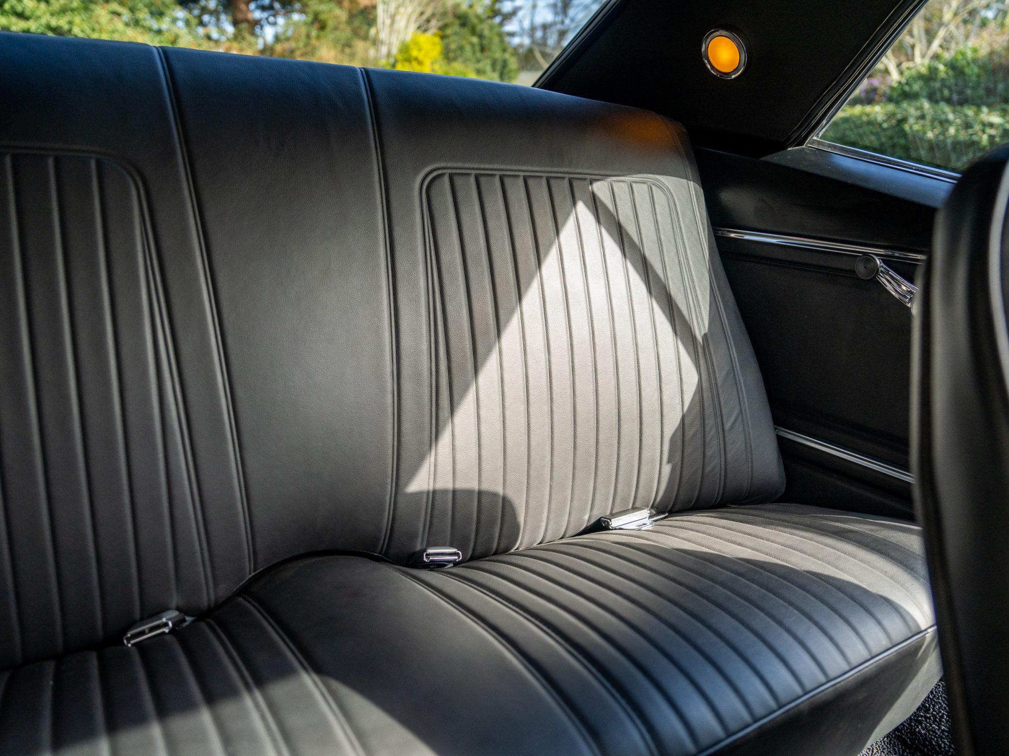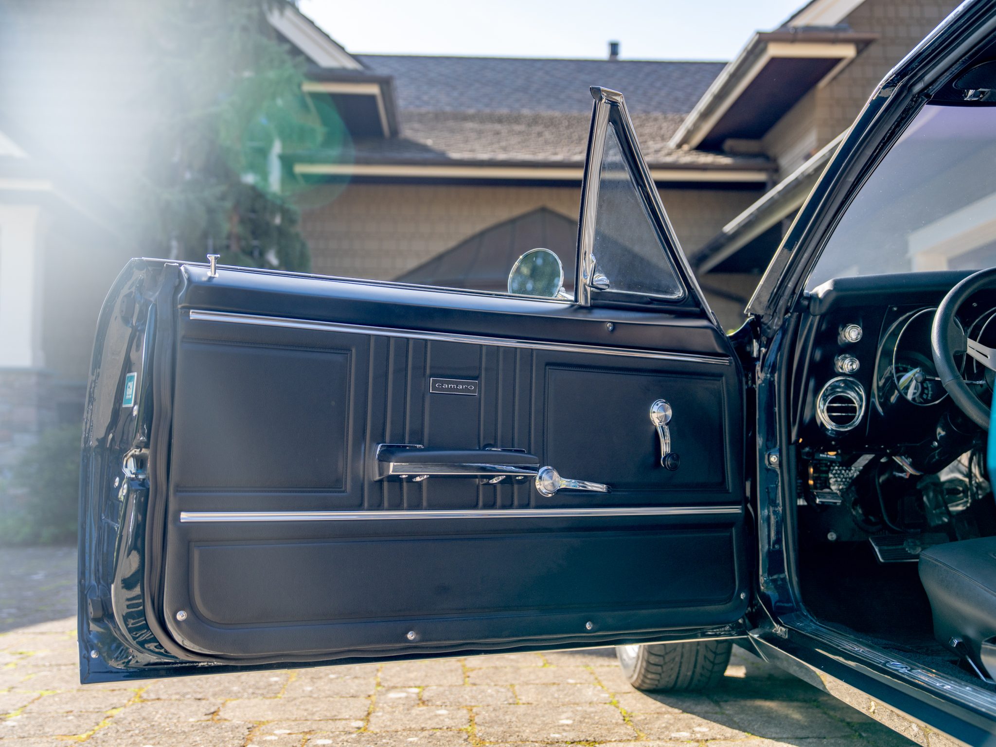 Power is provided by a 396ci V8 linked to a three-speed automatic transmission, a 12-bolt rear axle, and a Positraction differential. The car is further equipped with power-assisted front disc brakes, Hotchkis Sport Suspension coil springs, Fox shocks, 16″ Torq Thrust II wheels, and a 2.5″ dual exhaust system with Flowmaster mufflers as well as electric headlight doors, a cowl-induction hood, a decklid spoiler, and a RetroSound radio