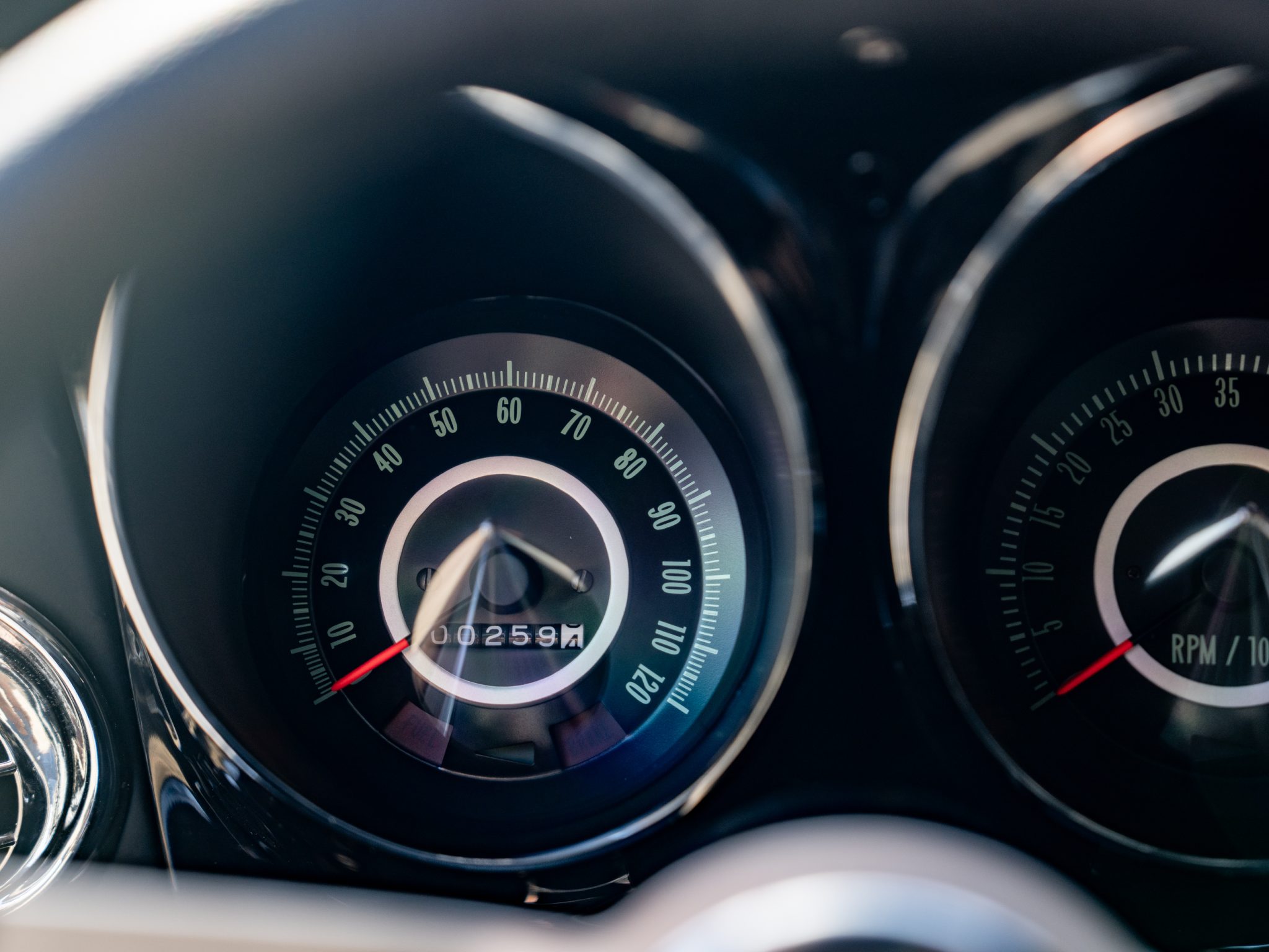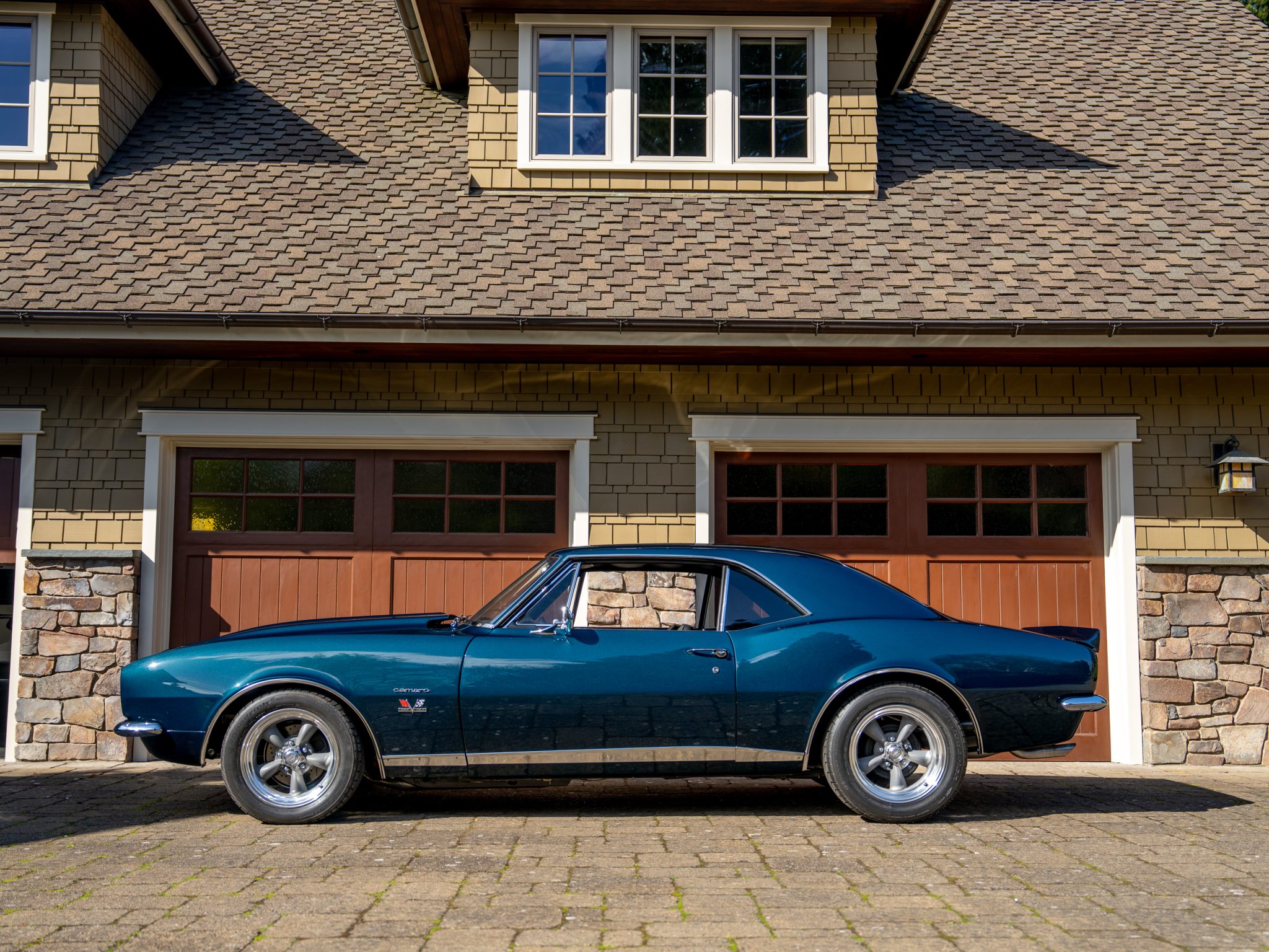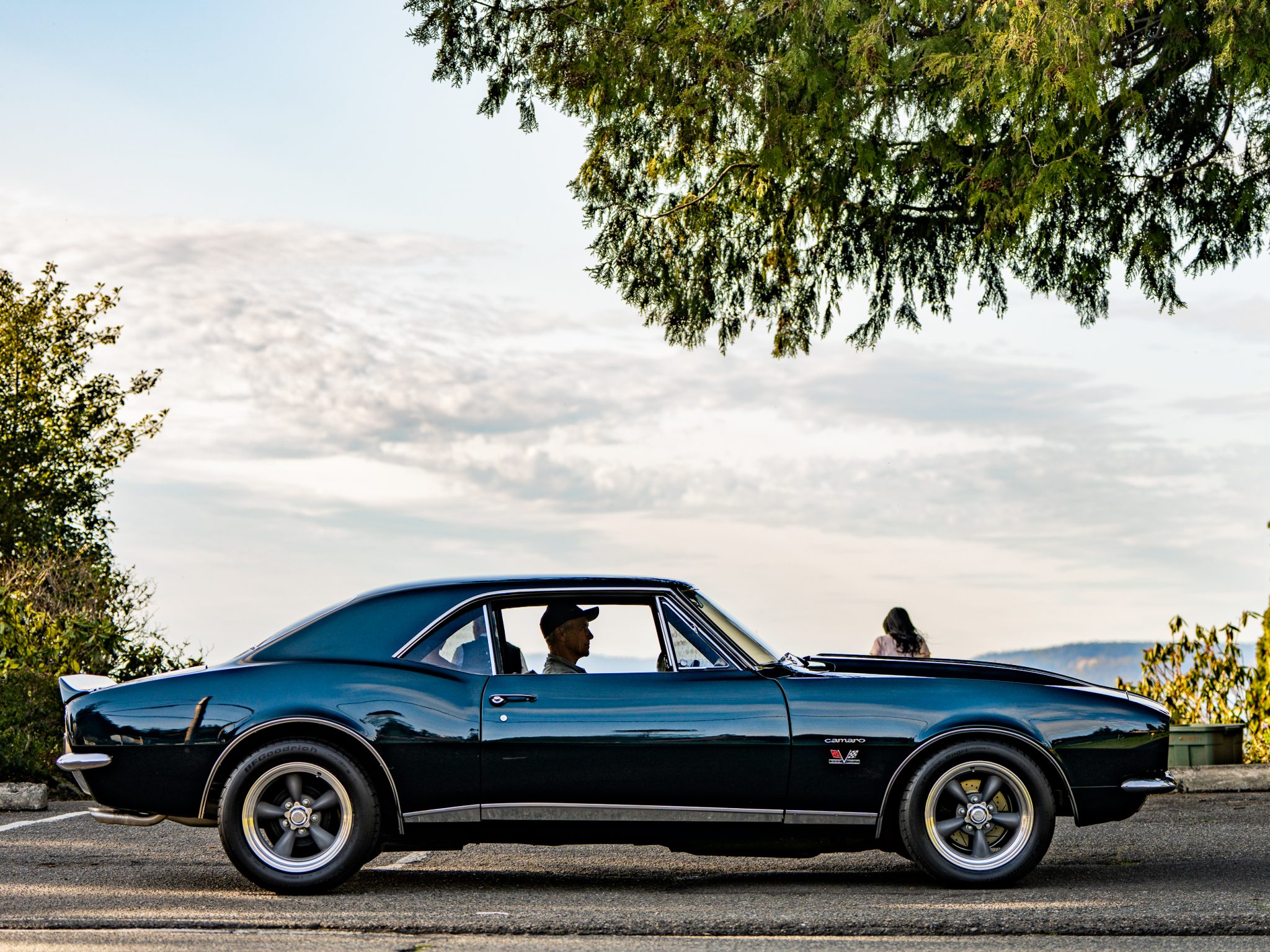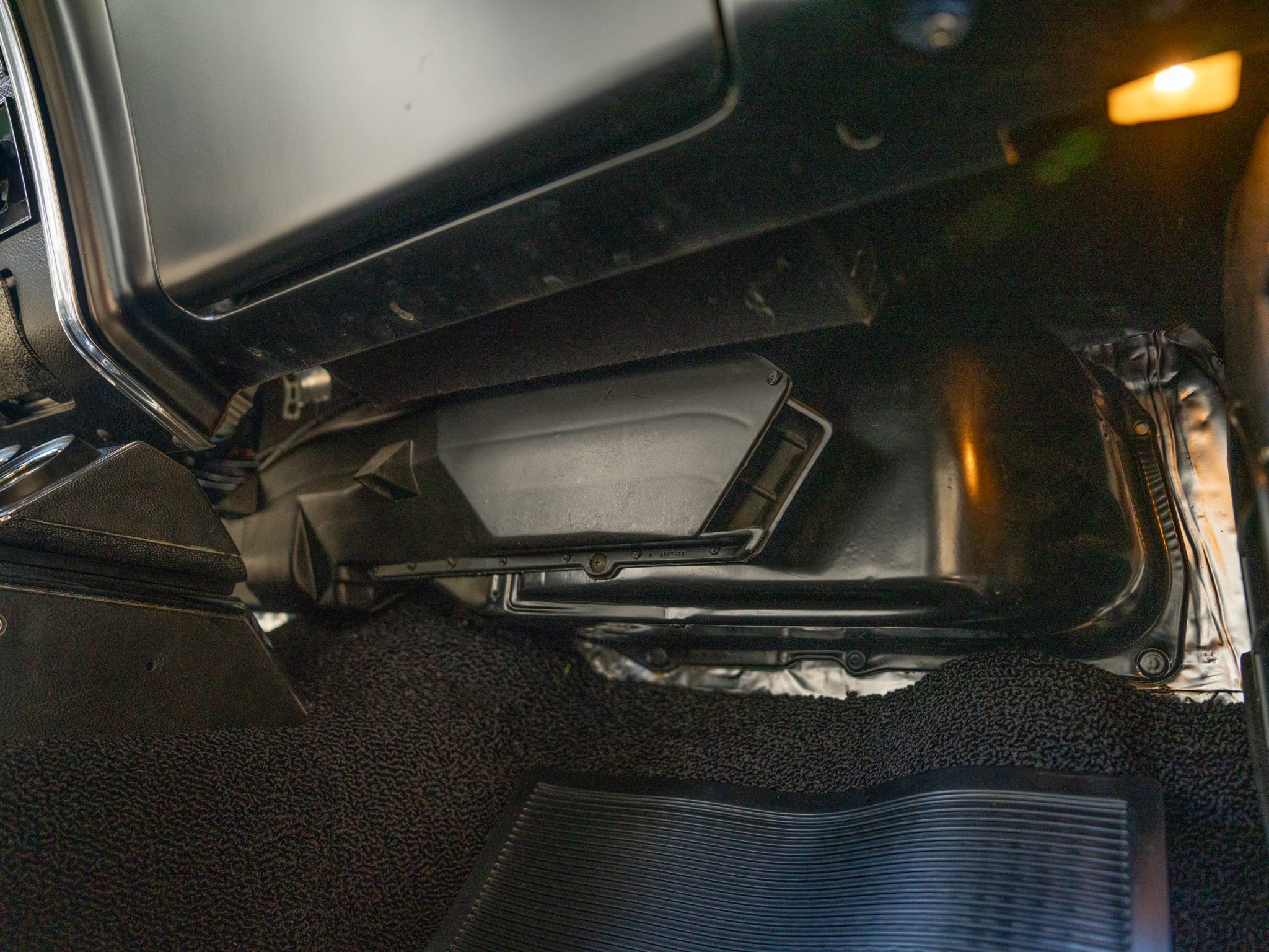 Power is provided by a 396ci V8 linked to a three-speed automatic transmission, a 12-bolt rear axle, and a Positraction differential. The car is further equipped with power-assisted front disc brakes, Hotchkis Sport Suspension coil springs, Fox shocks, 16″ Torq Thrust II wheels, and a 2.5″ dual exhaust system with Flowmaster mufflers as well as electric headlight doors, a cowl-induction hood, a decklid spoiler, and a RetroSound radio