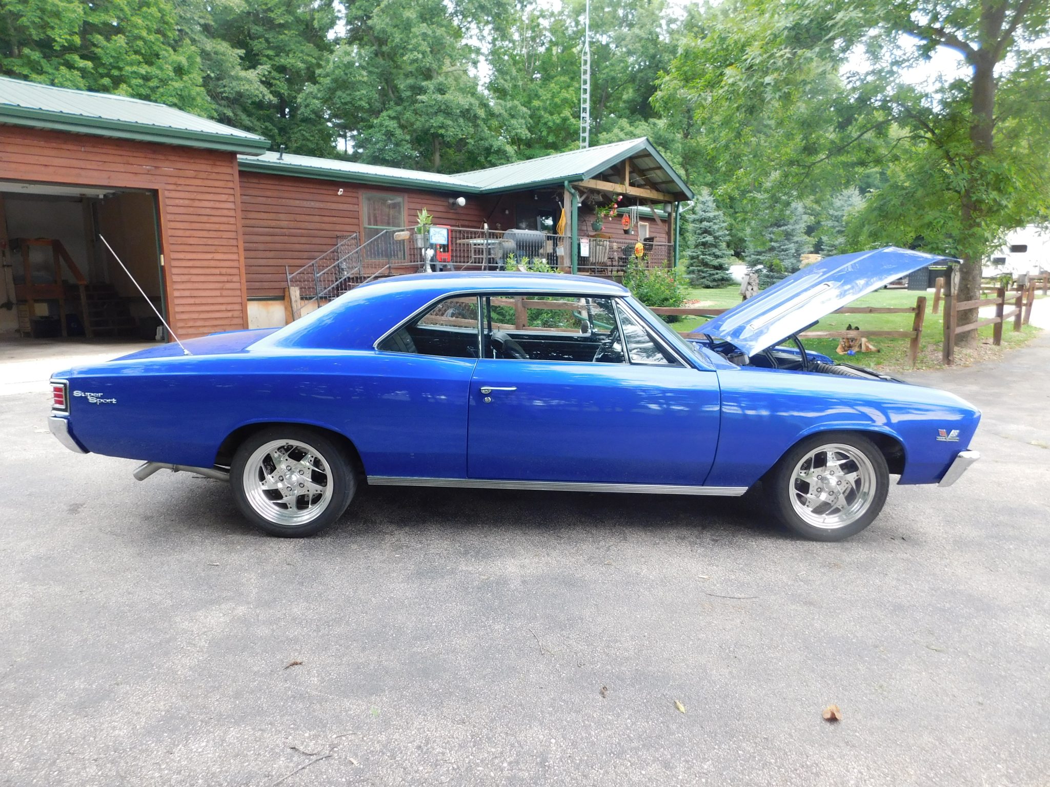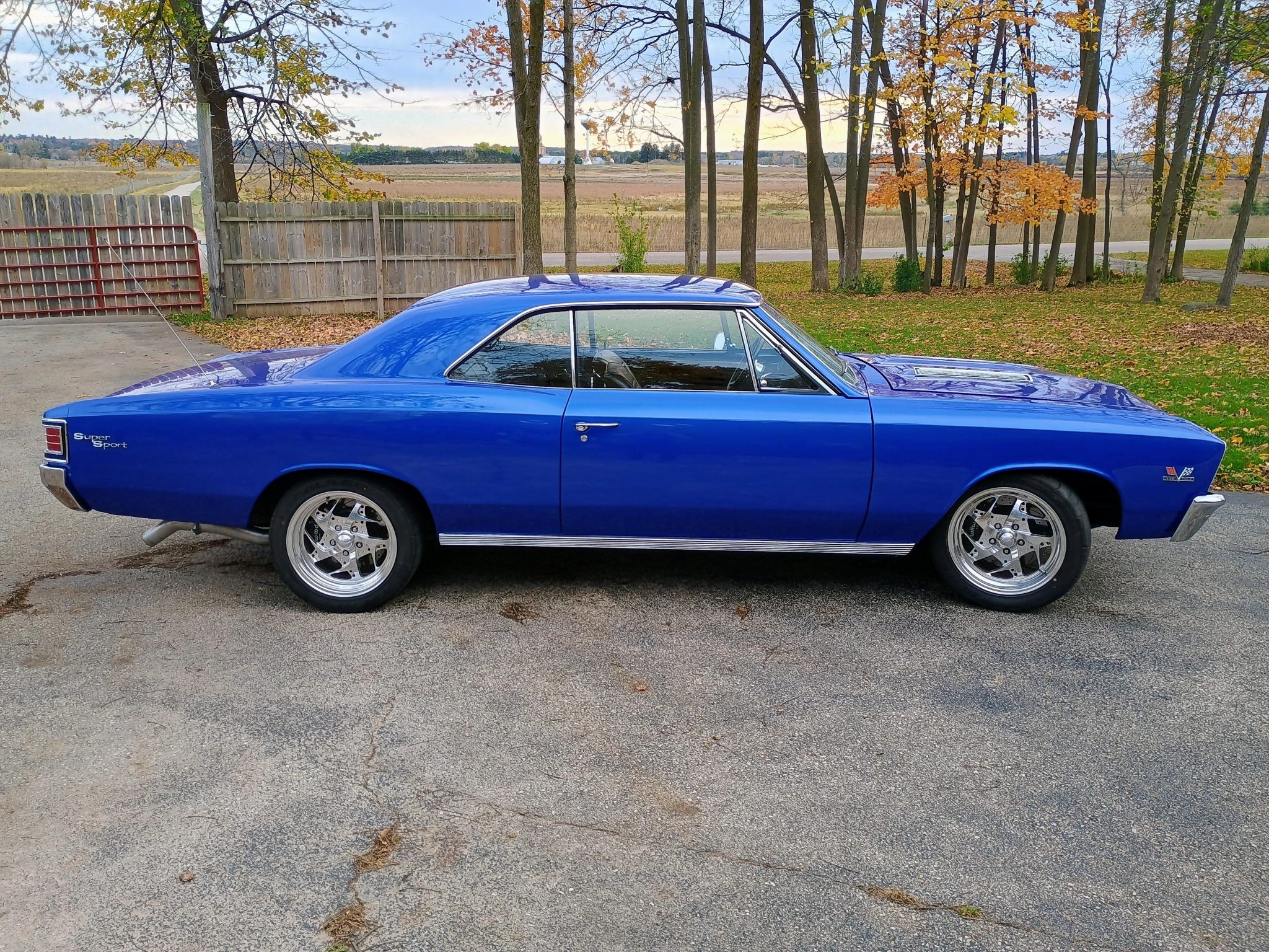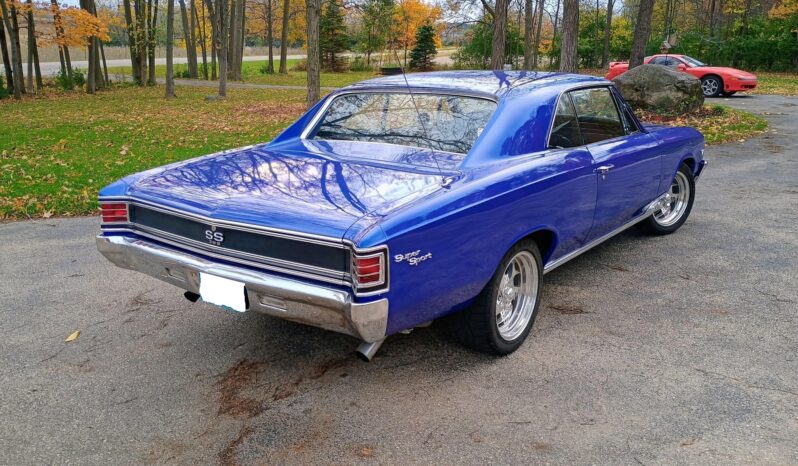 This 1967 Chevrolet Chevelle SS 396 sport coupe was refurbished under prior ownership with work that included a repaint in blue as well as the installation of a 496ci big-block V8 in 2016. The car rides on Global West tubular front and rear control arms and 17″ Centerline Sundance Galaxy alloy wheels mounted over drilled and slotted disc brakes with Wilwood calipers at each corner. Front bucket seats and a rear bench are trimmed in black and accompanied by a center console, a cassette radio, a Hurst shifter, and a tilting steering column. Additional equipment includes an Edelbrock intake manifold, a Quick Fuel Technologies four-barrel carburetor, a Crane Cams camshaft, Brodix aluminum cylinder heads, and a dual exhaust system with coated headers and Flowmaster mufflers.