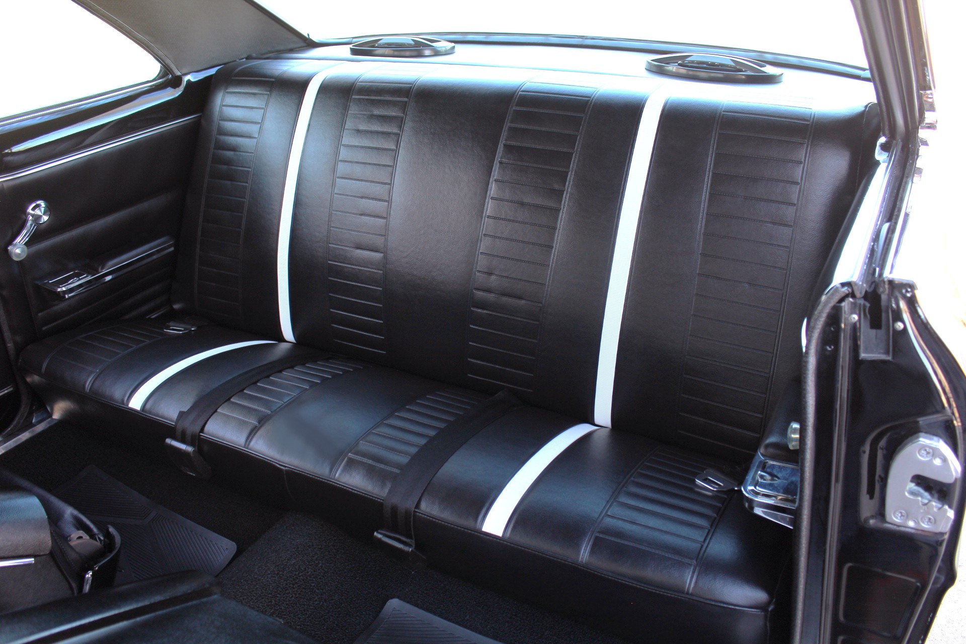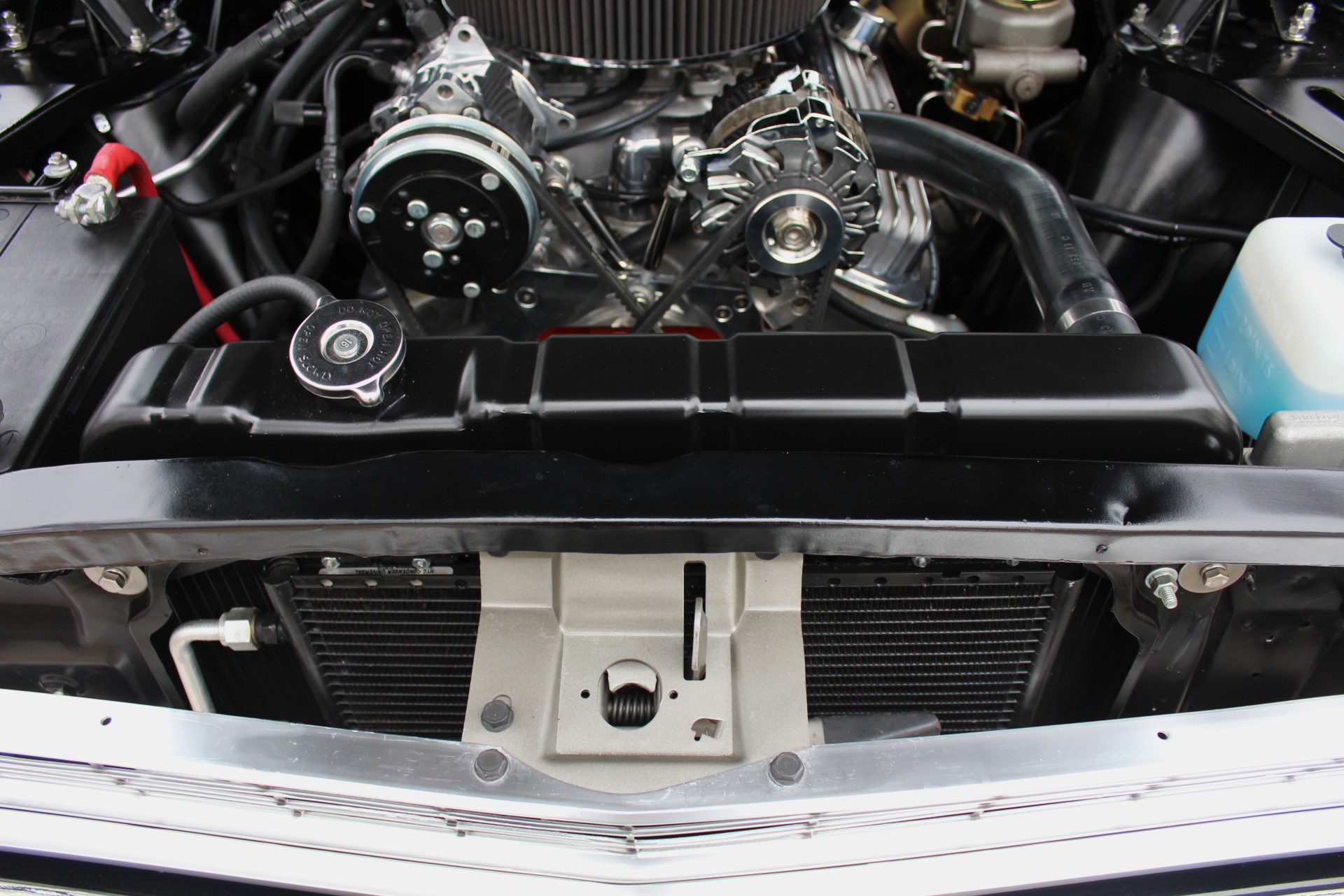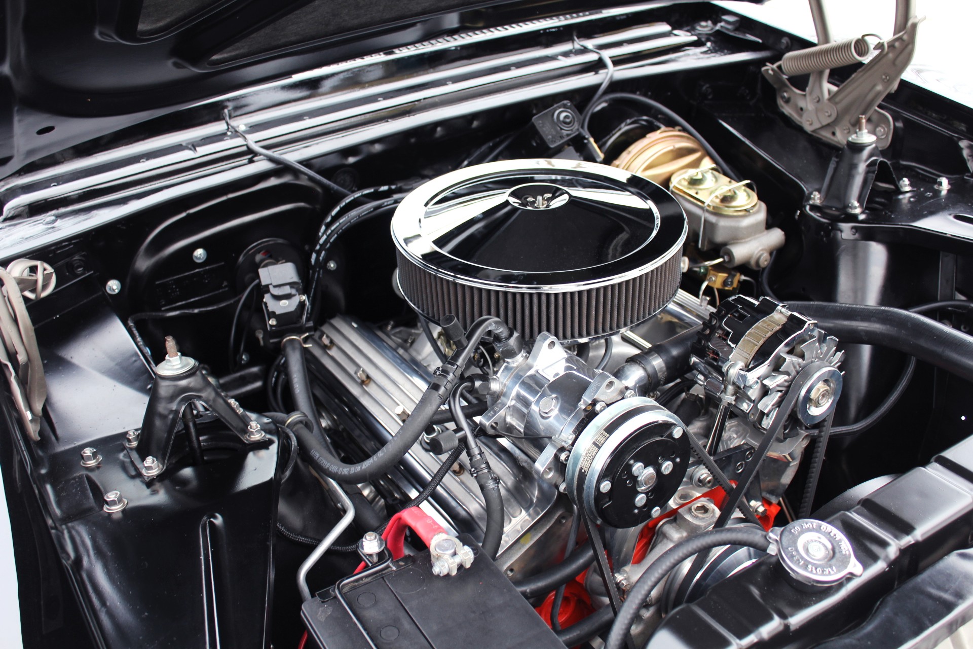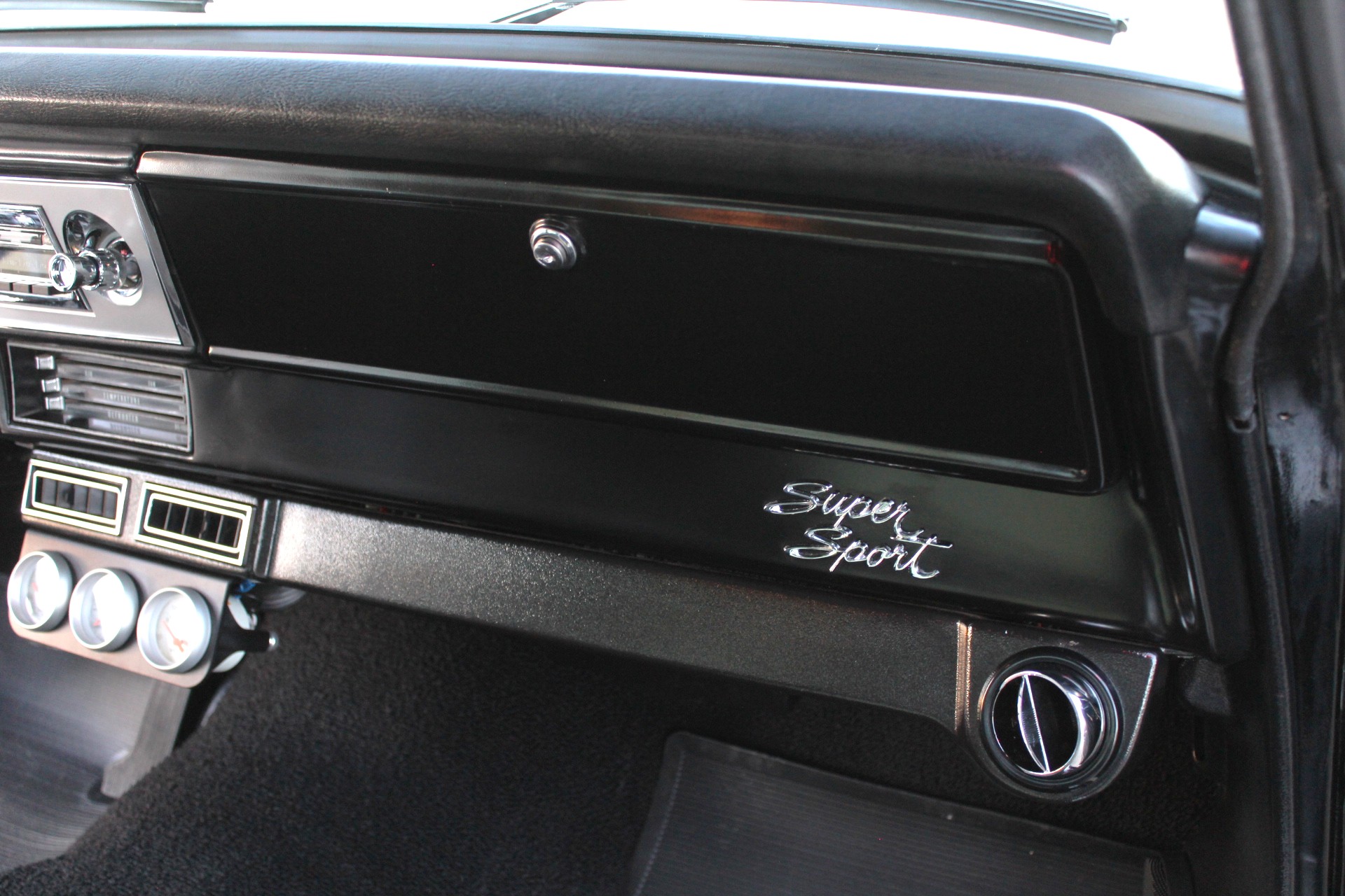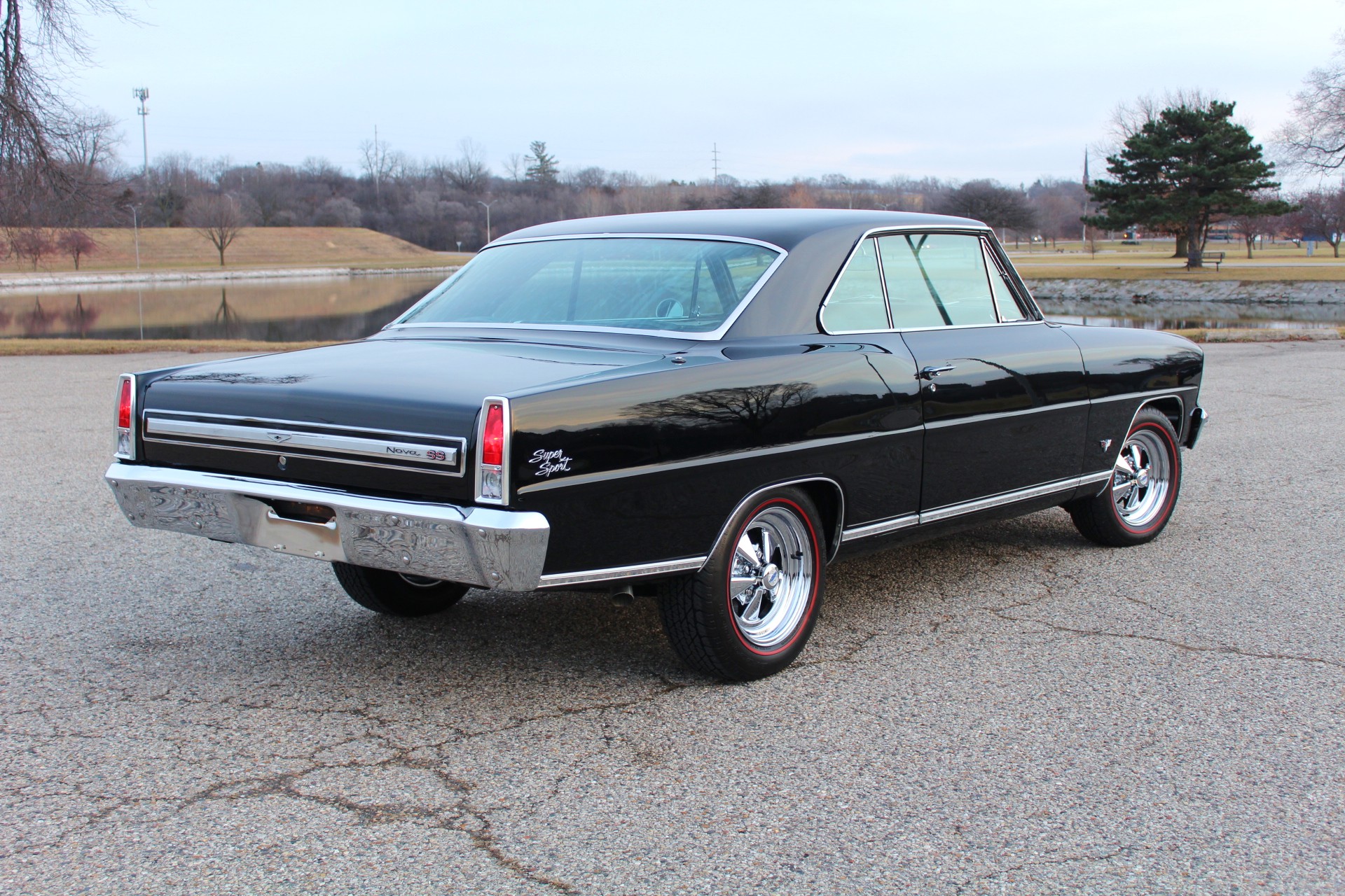 This 1967 Chevrolet Chevy II Nova SS two-door sport coupe underwent refurbishment in 2015, and which point a 350ci ZZ4 crate V8 was installed and fitted with an Edelbrock carburetor and intake manifold as well as an MSD distributor and an aluminum radiator. Power is routed through a Muncie M20 wide-ratio four-speed manual transmission, a PosiTraction differential, and 3.36:1 gears, and Doug’s headers are linked to MagnaFlow mufflers. It was repainted in black, and the glass, weather seals, and emblems were replaced, and the exterior trim was refurbished. Equipment includes traction bars, subframe connectors, 15″ Cragar wheels, and four-wheel disc brakes, and the cabin is outfitted with replacement black vinyl upholstery, Vintage Air climate control, a Hurst shifter, and a retro-look Bluetooth stereo.