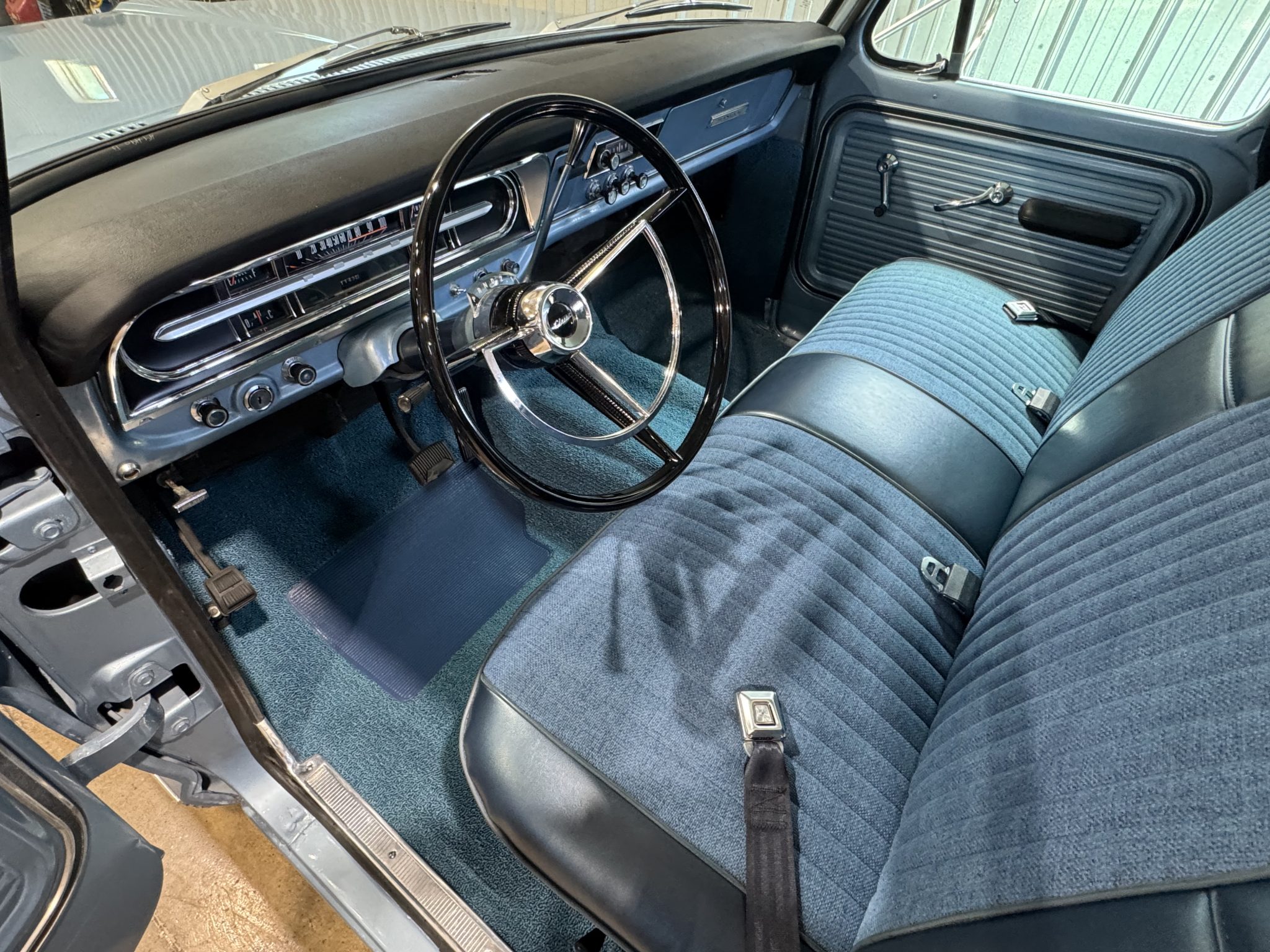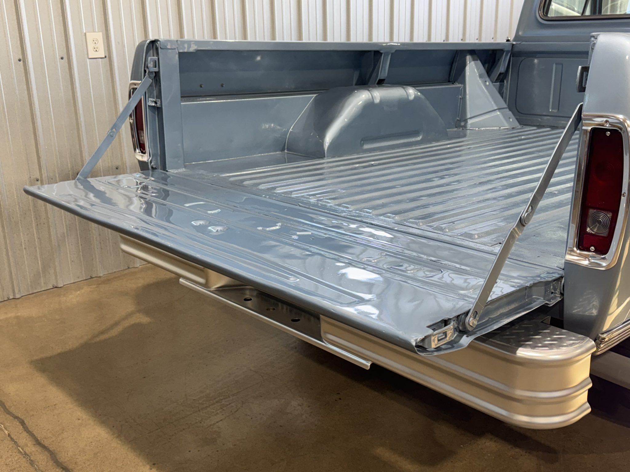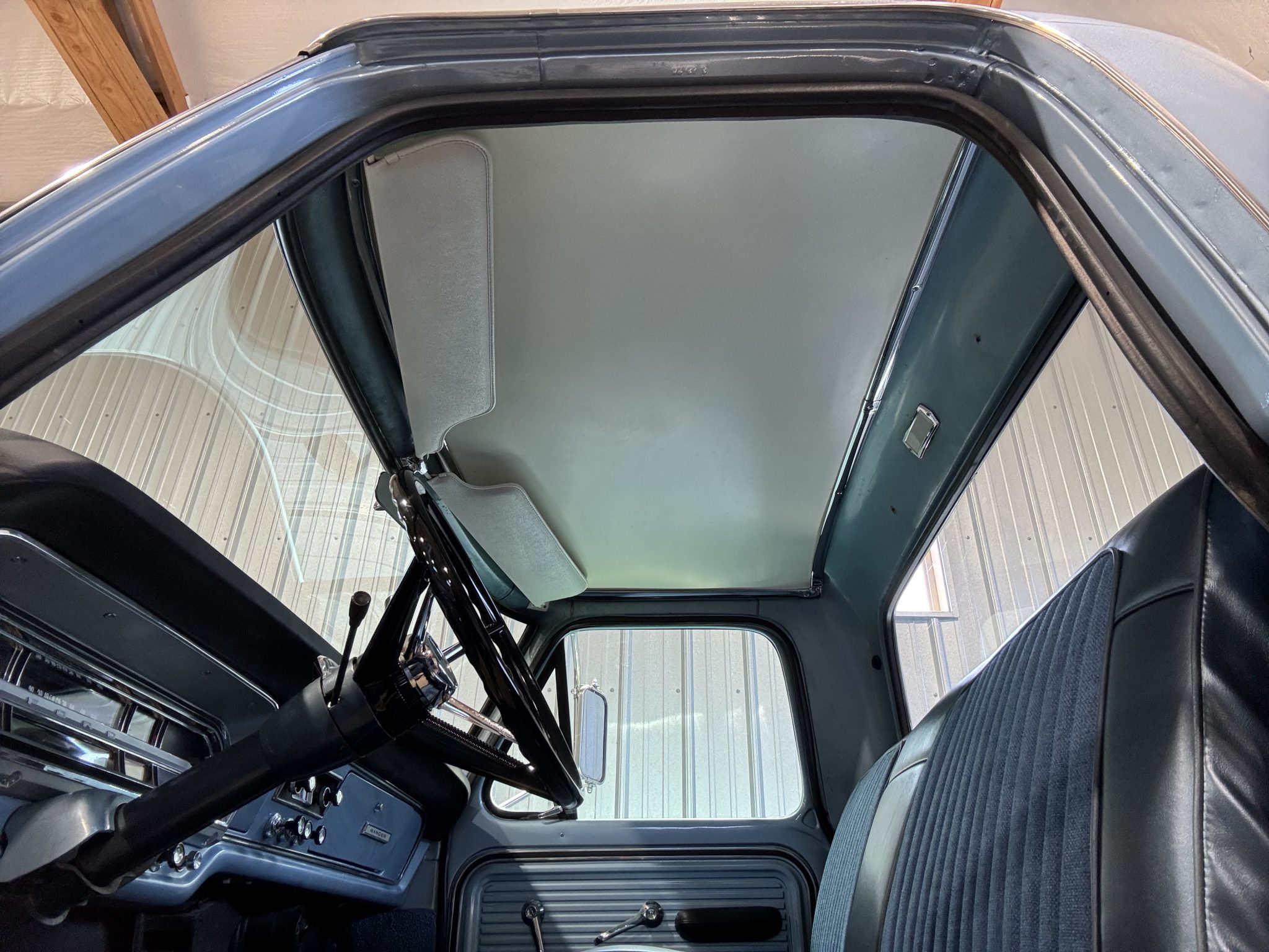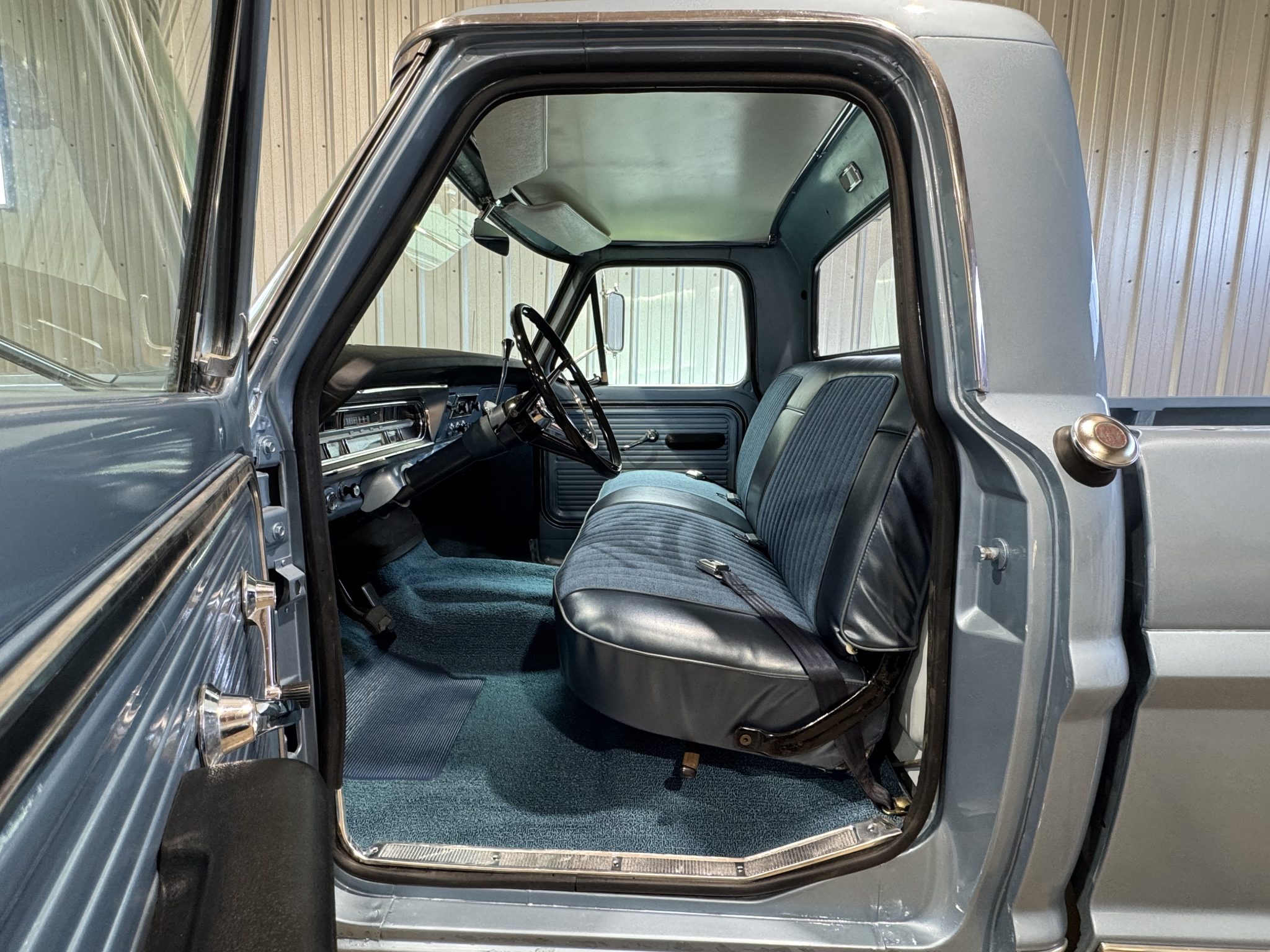 This 1967 Ford F-250 Ranger pickup was fitted with a replacement 390ci V8 subsequent work is said to have involved repainting the body in Brittany Blue, rebuilding the Edelbrock carburetor, overhauling the suspension and brake systems, and replacing the windshield, carpets, dash pad, tires, in-cab fuel tank, battery cables, valve cover gaskets, drive belts, and ignition components. Shifting is through a three-speed Cruise-O-Matic automatic transmission linked to a limited-slip differential, and the truck is further equipped with 16″ steel wheels, power steering, power-assisted brakes, blue upholstery, a heater, and an AM radio.