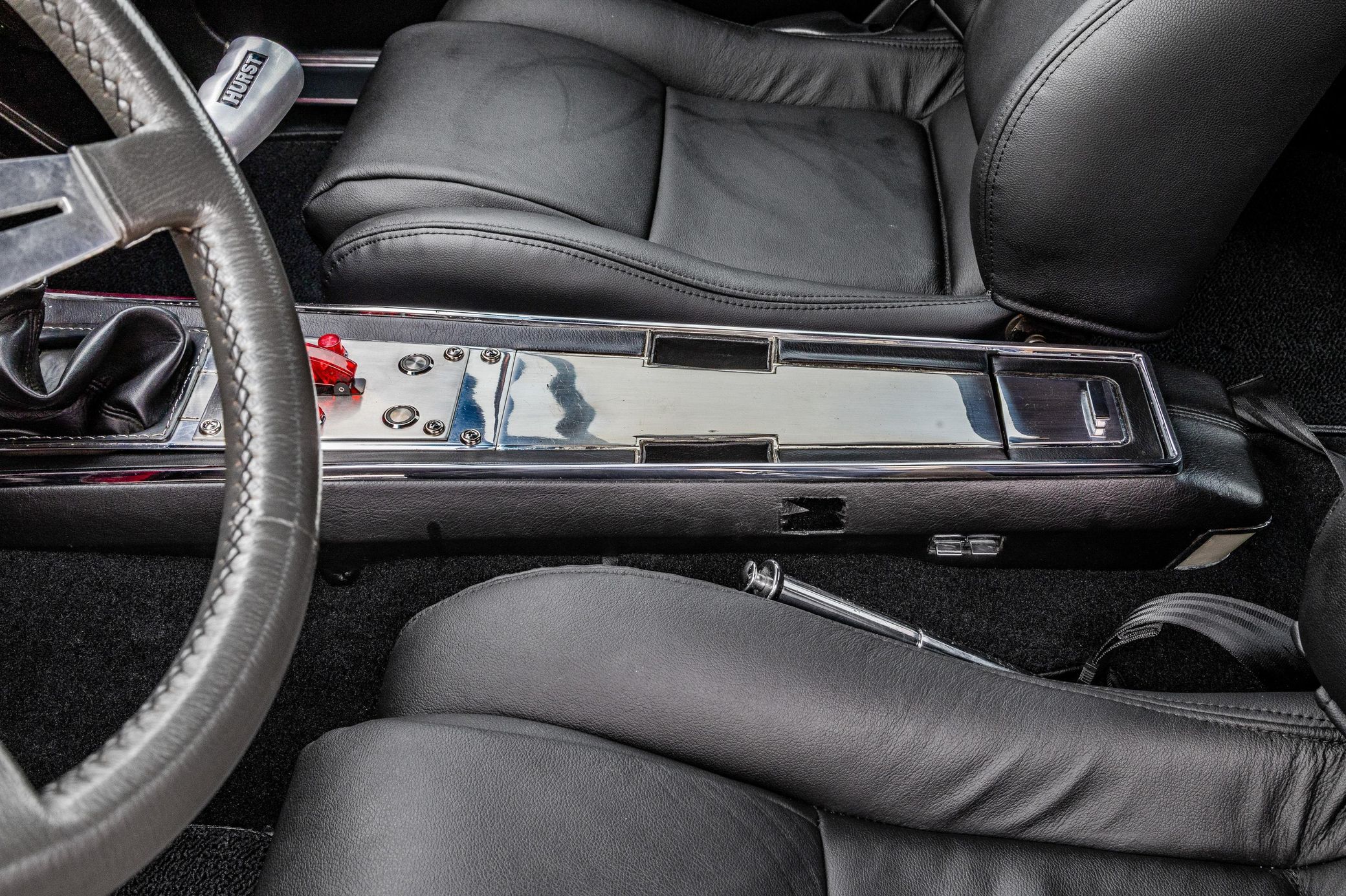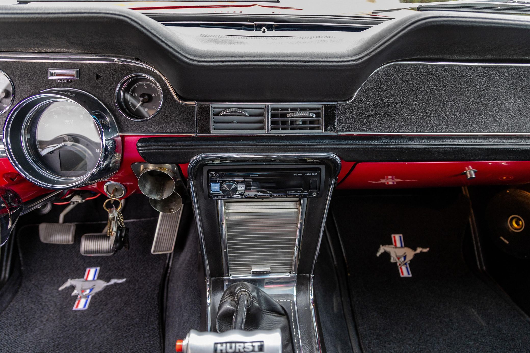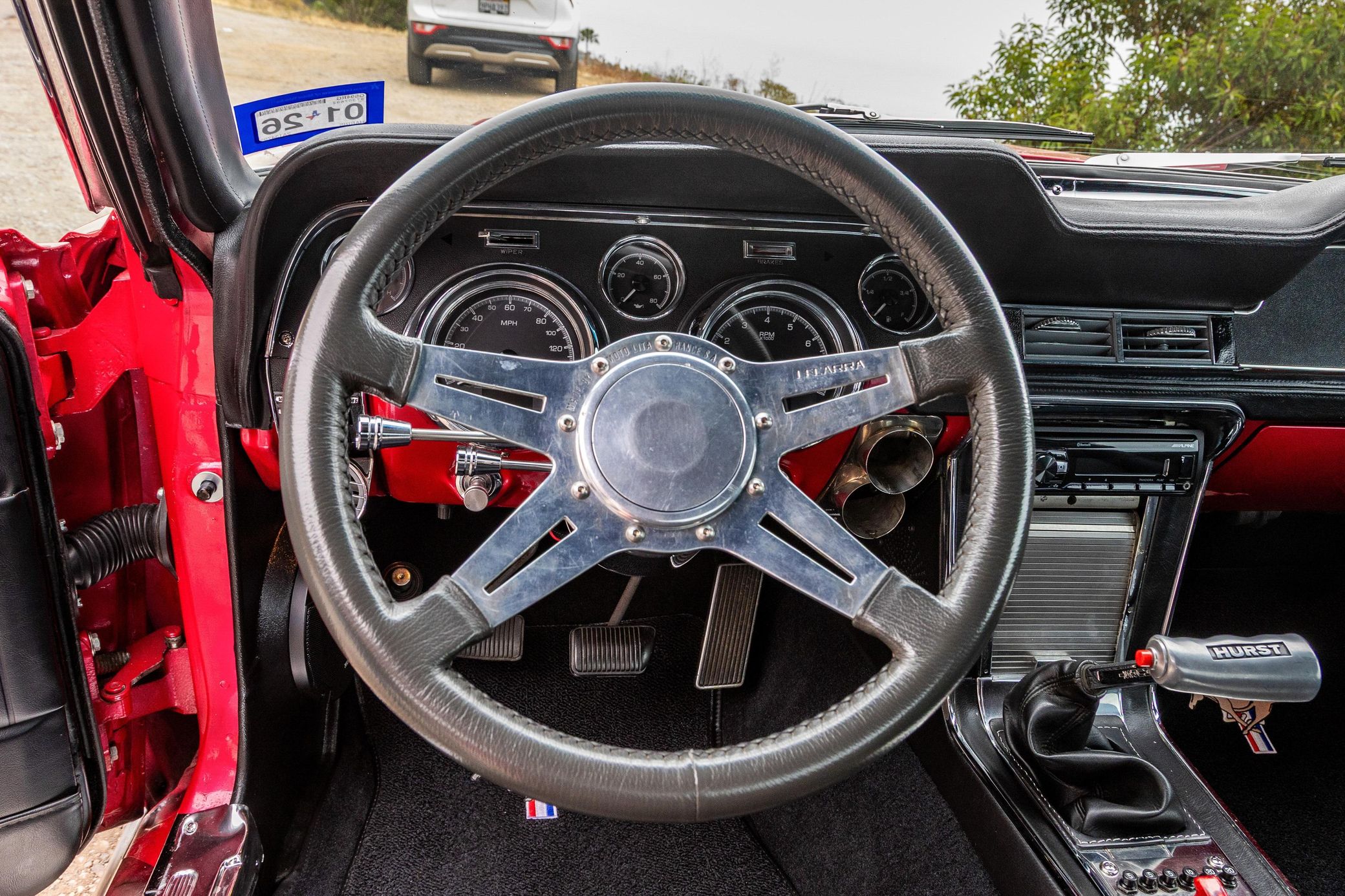 This particular Mustang has been restored with several modern upgrades that take its performance to the next level, including a FiTech fuel injection system, a NOS injection system, full-length exhaust headers, a narrowed 9-inch rear end, and Wilwood disc brakes. It's also equipped with a Tremec 5-speed manual transmission for maximum fun behind the wheel – and it's finished in an eye-catching shade of Magenta Pearl, which looks great with the chrome exterior trim and 17-inch wheels.