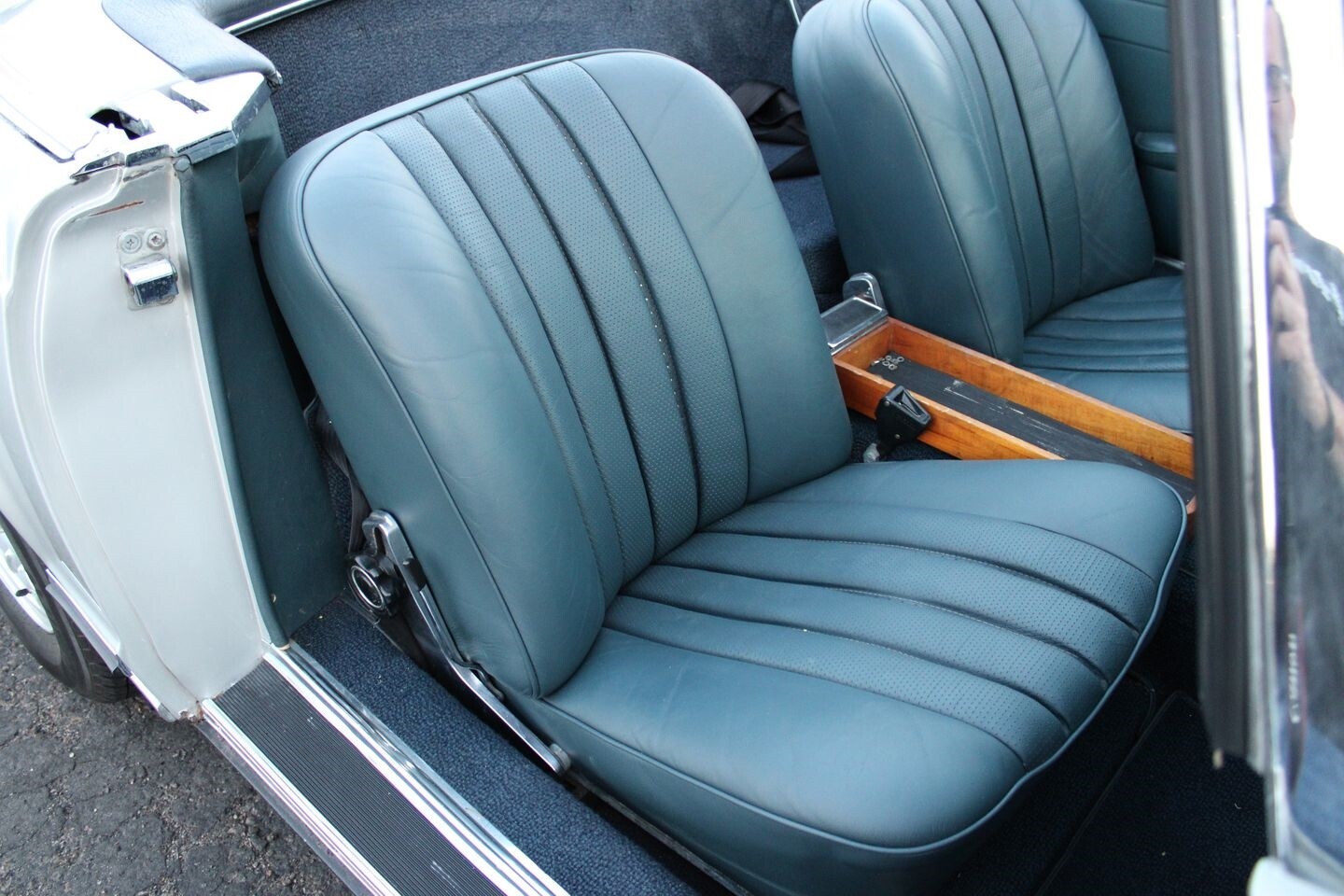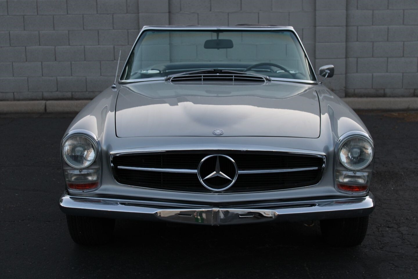 As you approach this magnificent vehicle, the first thing that captures your attention is the shimmering silver exterior—a hue that perfectly encapsulates the essence of classic luxury. This 230SL's paintwork is a mirror-like canvas that reflects its well-preserved condition and the care it has received over the years. The sleek, flowing lines of the bodywork are a hallmark of Mercedes design, and they promise an experience that is as visually pleasing as it is exhilarating to drive.