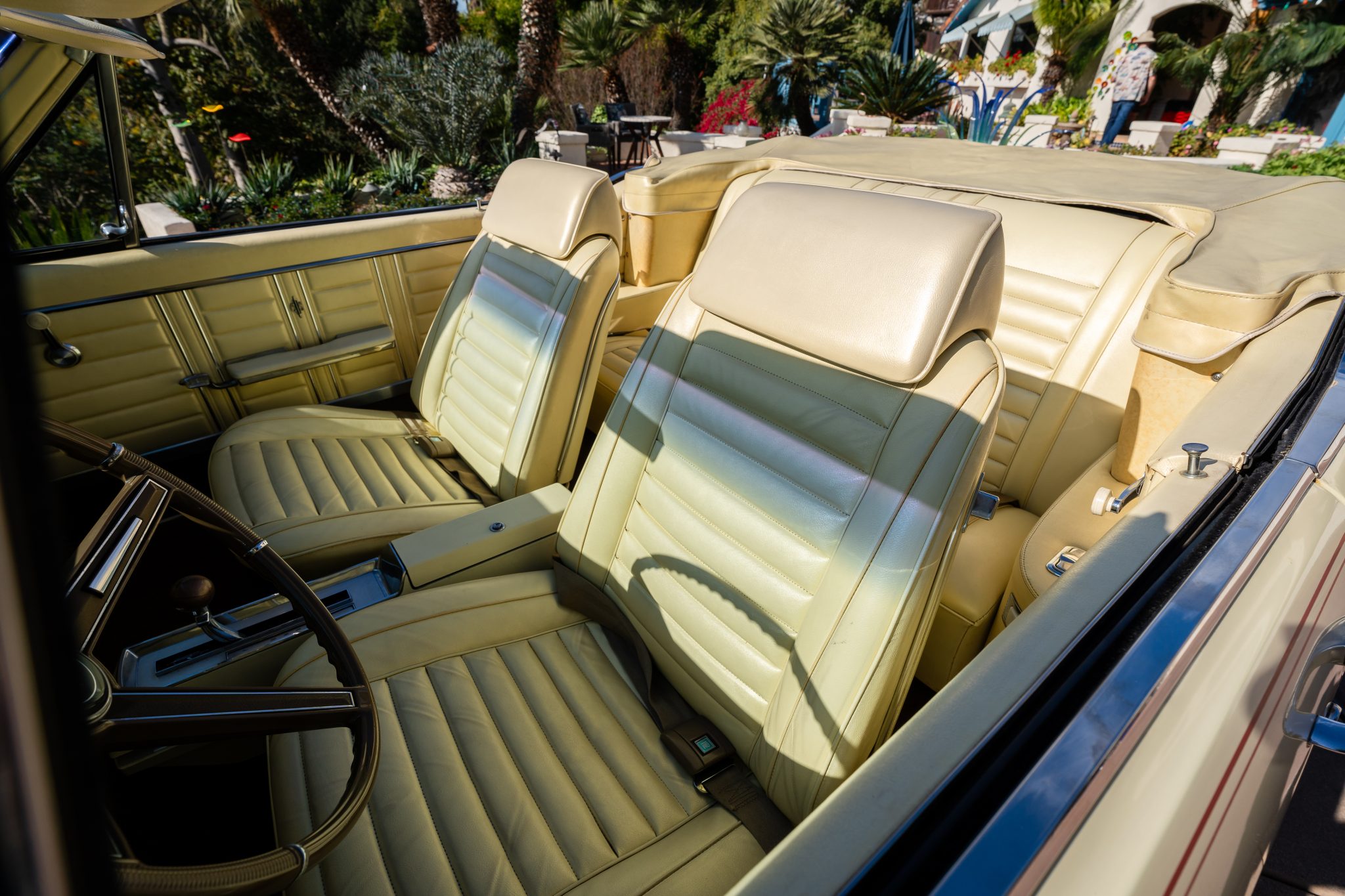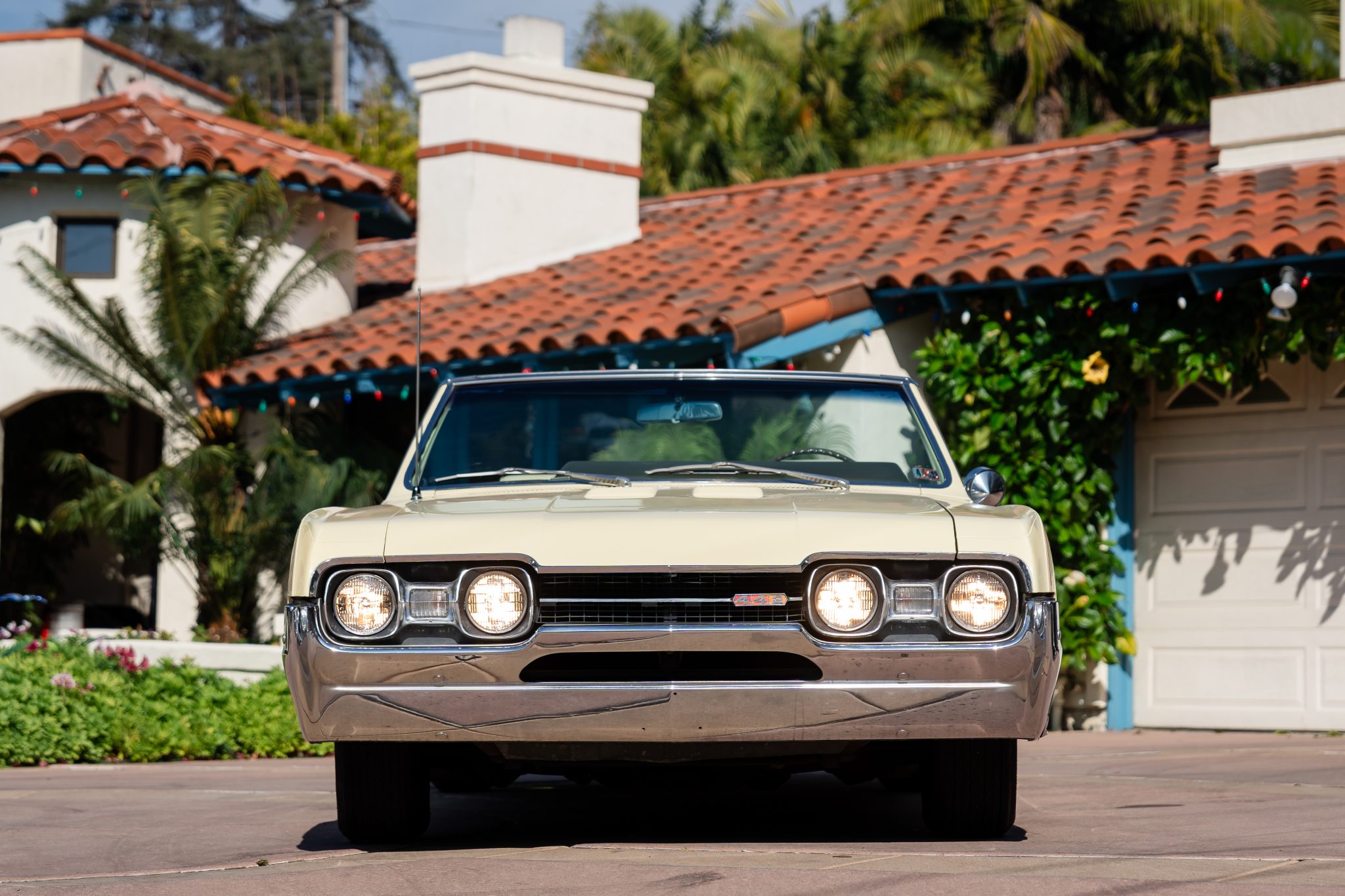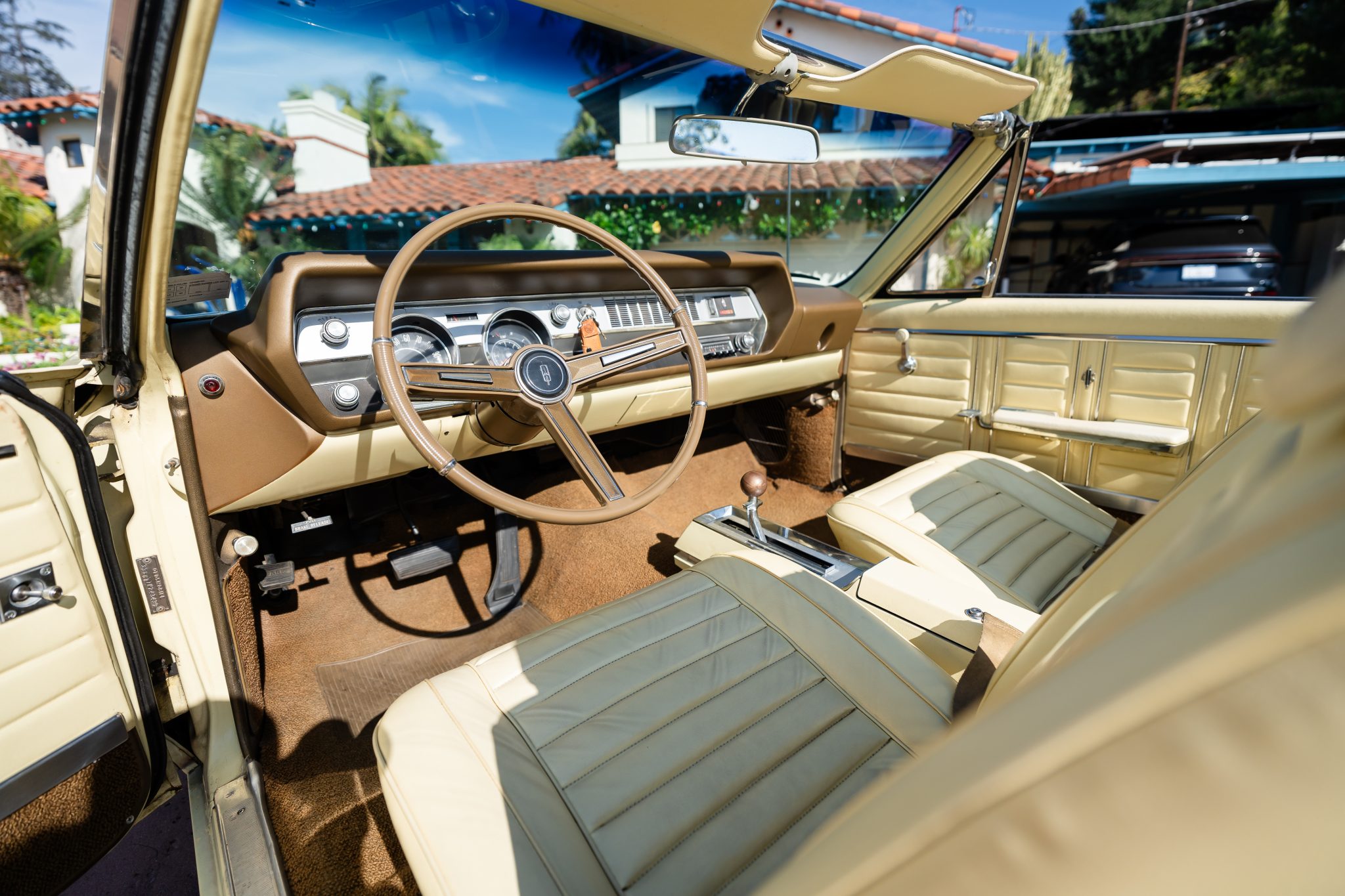 This 1967 Oldsmobile Cutlass Supreme 442 convertible is one of 3,080 made for the model year The car is powered by a 400ci V8 linked to a three-speed Turbo Hydra-Matic automatic transmission and is finished in yellow over yellow with a power-operated yellow convertible soft top. Additional equipment includes an Anti-Spin rear axle, 14″ Super Stock wheels, power-assisted brakes, power steering, front bucket seats, a power-adjustable driver’s seat, and a pushbutton AM radio.