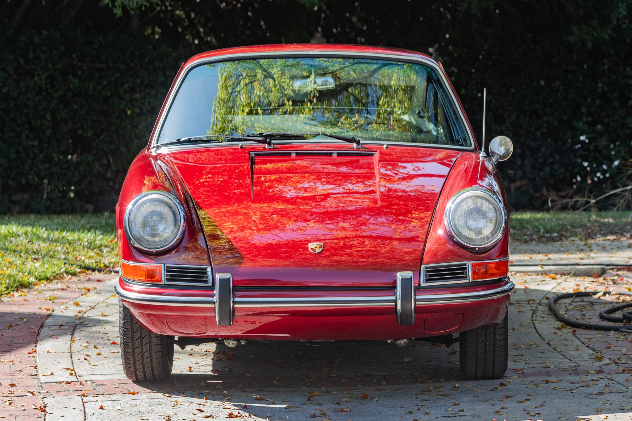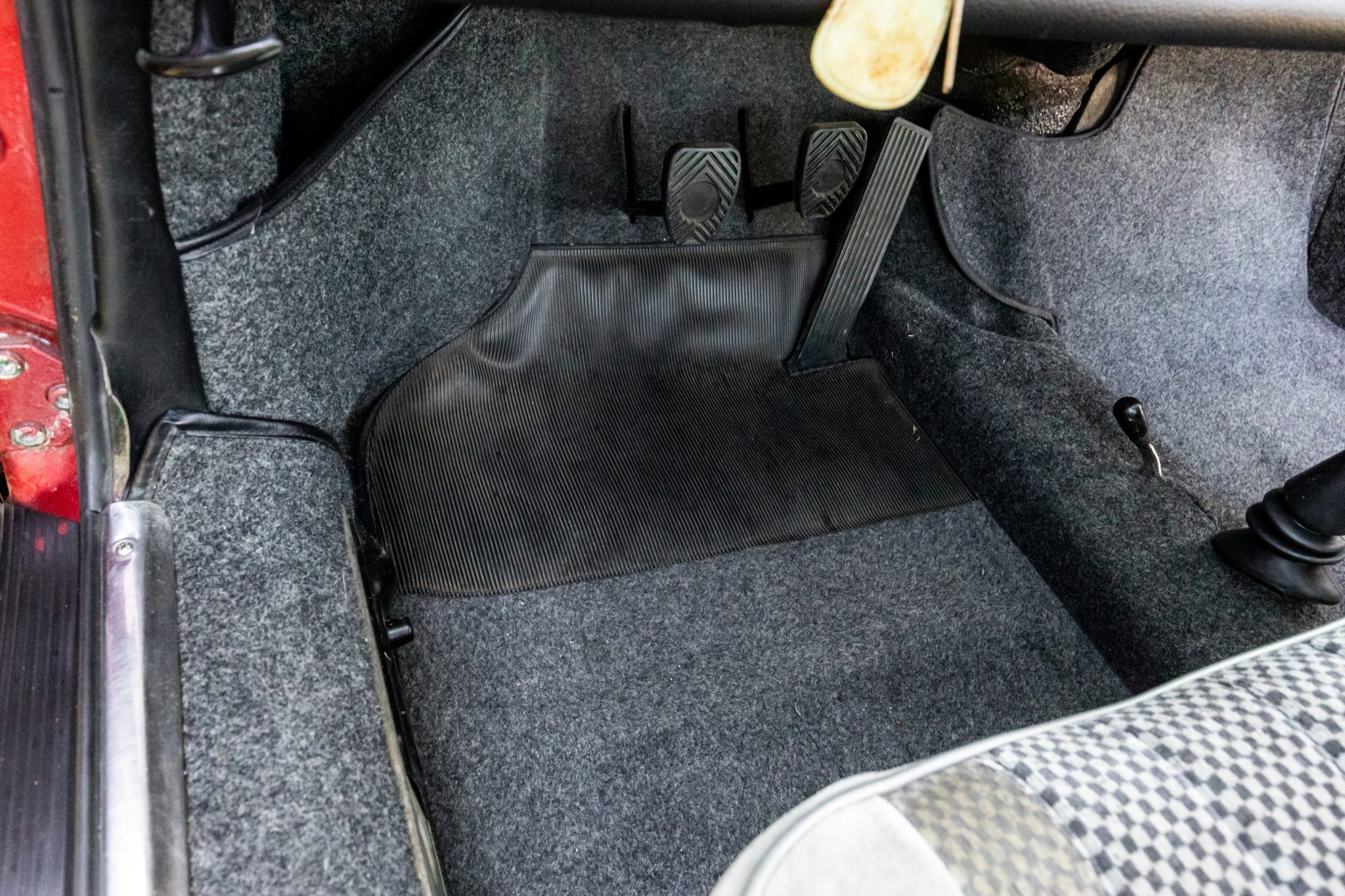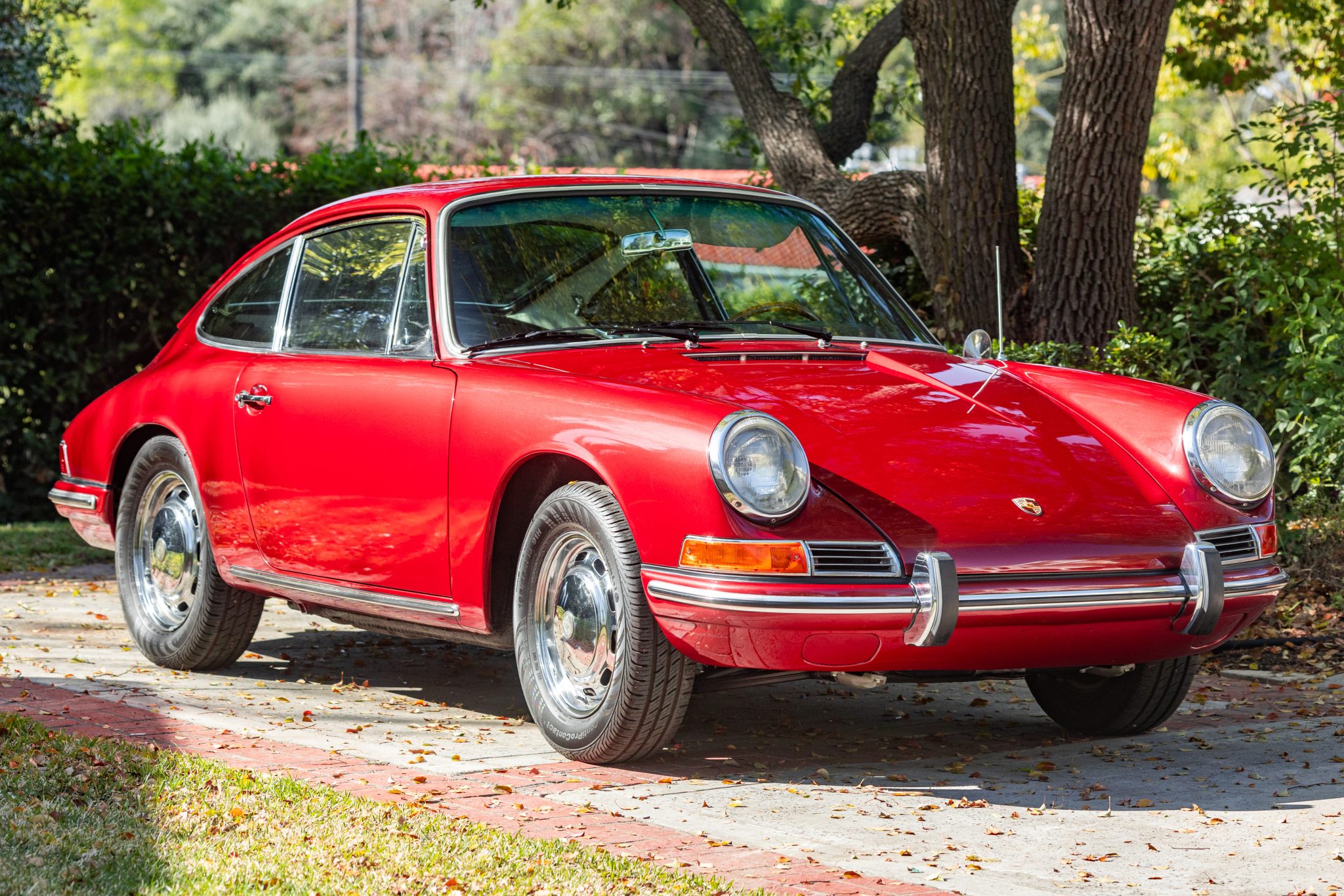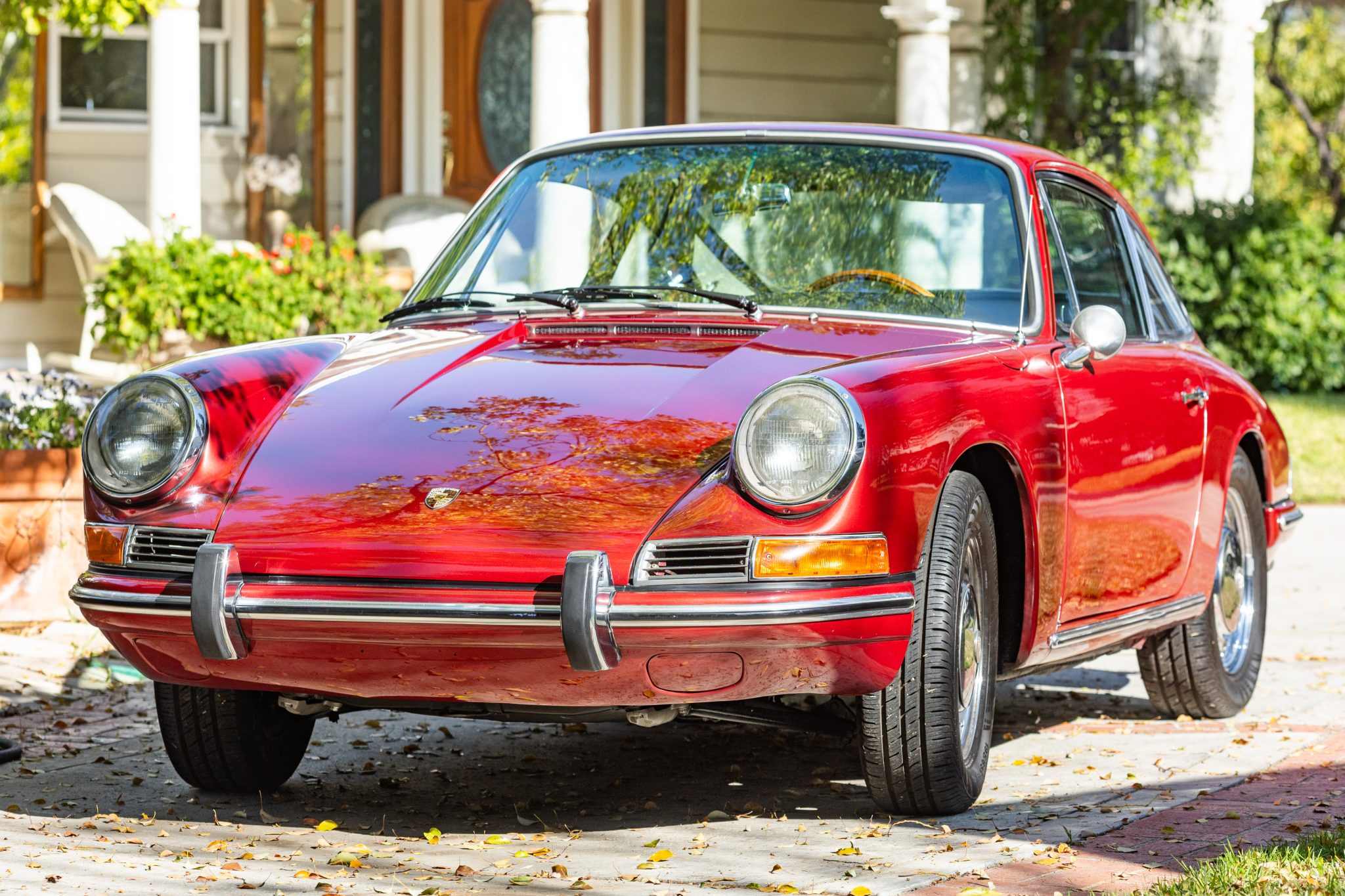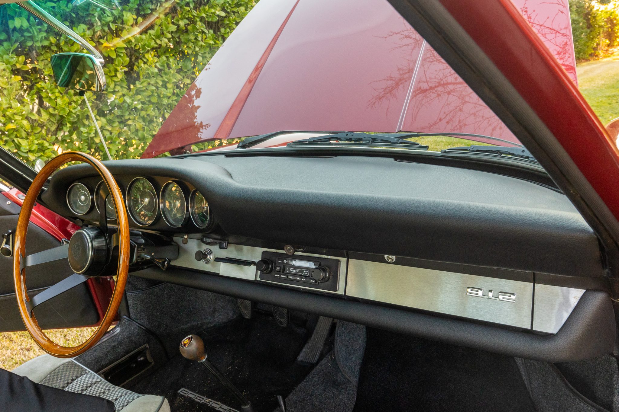 Between 2009 and 2017 the car was refurbished, which included repainting the body metallic red, refreshing the interior, overhauling the brakes, and mounting Continental tires on the chrome 15″ wheels. In 2025 the seller had the engine rebuilt with 1.8-liter pistons and cylinders, overhauled heads, and replacement carburetors.