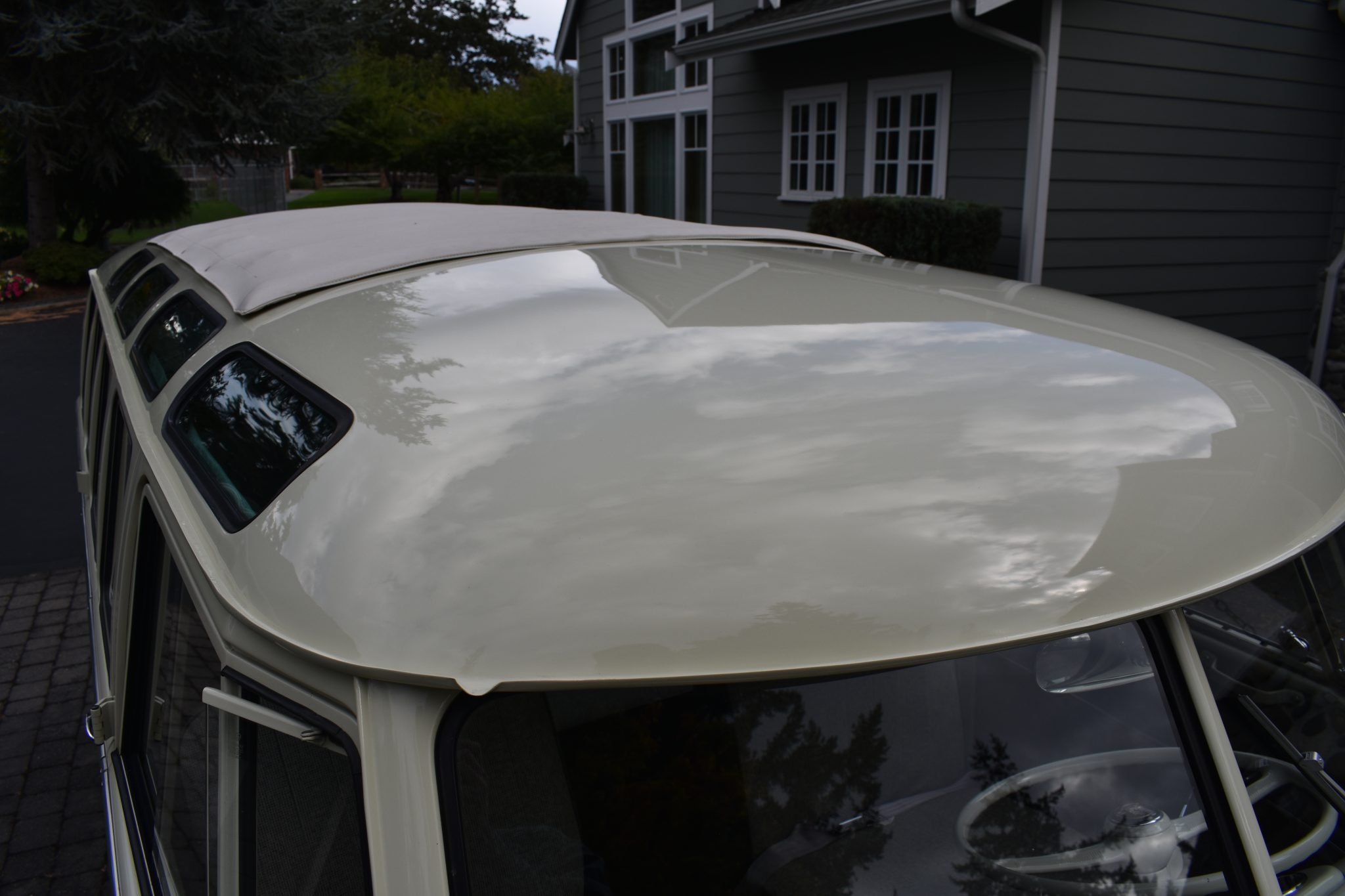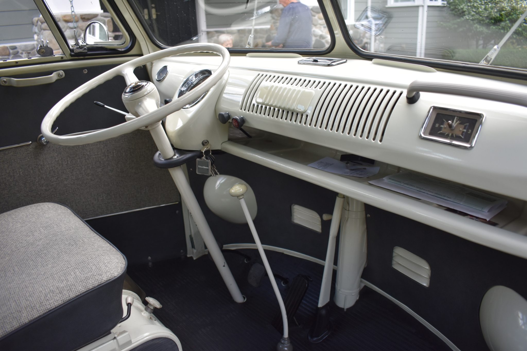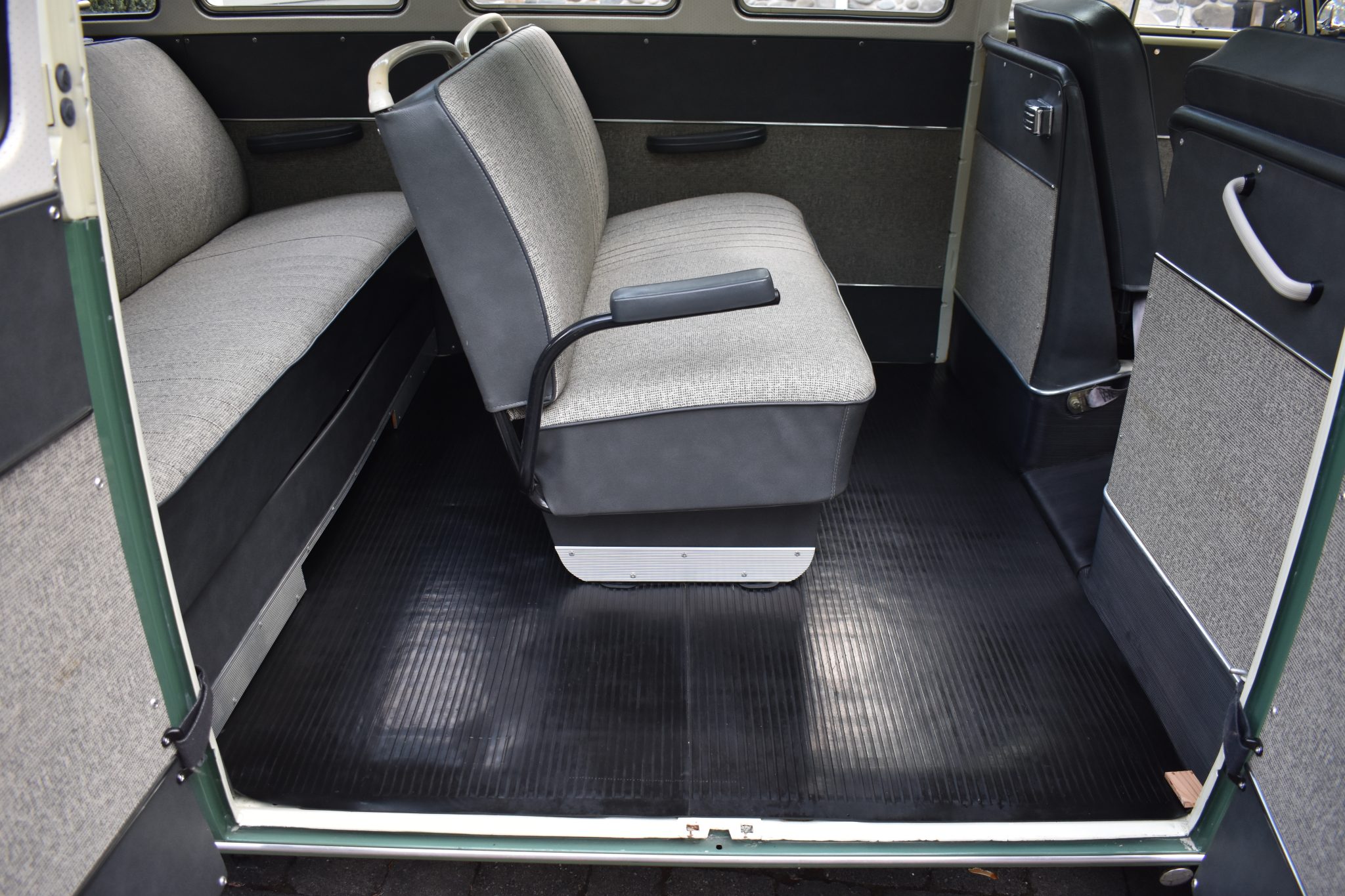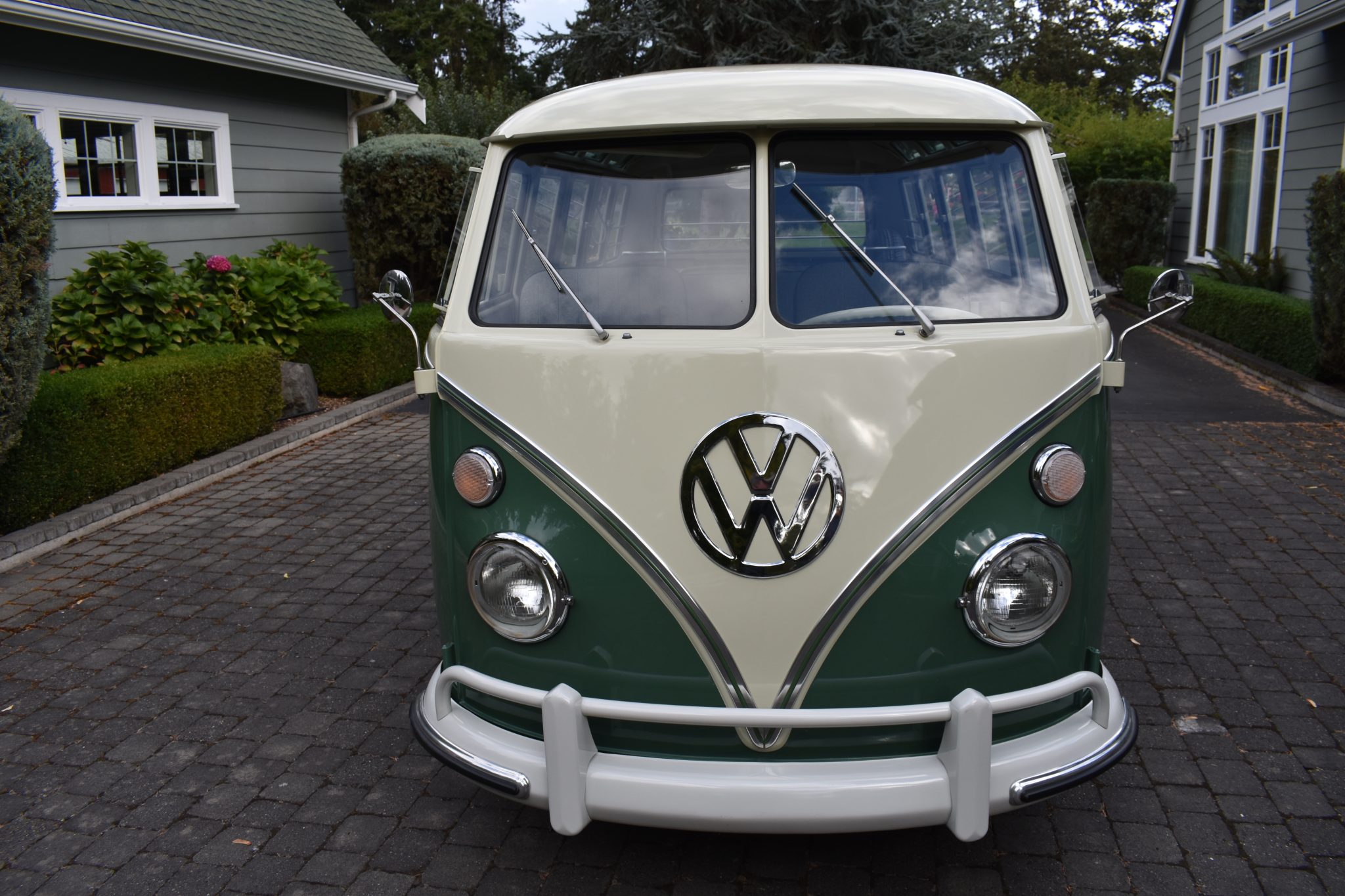 This 1967 Volkswagen Type 2 Deluxe was restored Finished in Velvet Green and Pearl White over Platinum vinyl, the van is powered by a 1.5-liter flat-four mated to a four-speed manual transaxle. Features include a single downdraft carburetor, a speed governor, drum brakes, 14″ steel wheels, white-finished bumpers, a retractable cloth sunroof, pop-out side windows, a cabin heater, front lap belts, sliding front windows, and jail bars. This Type 2 shows 93k miles