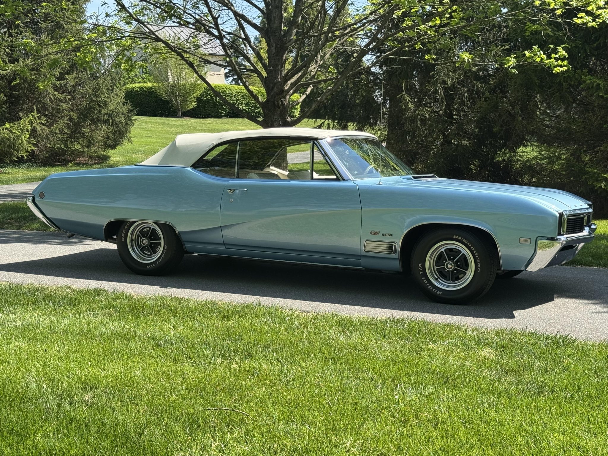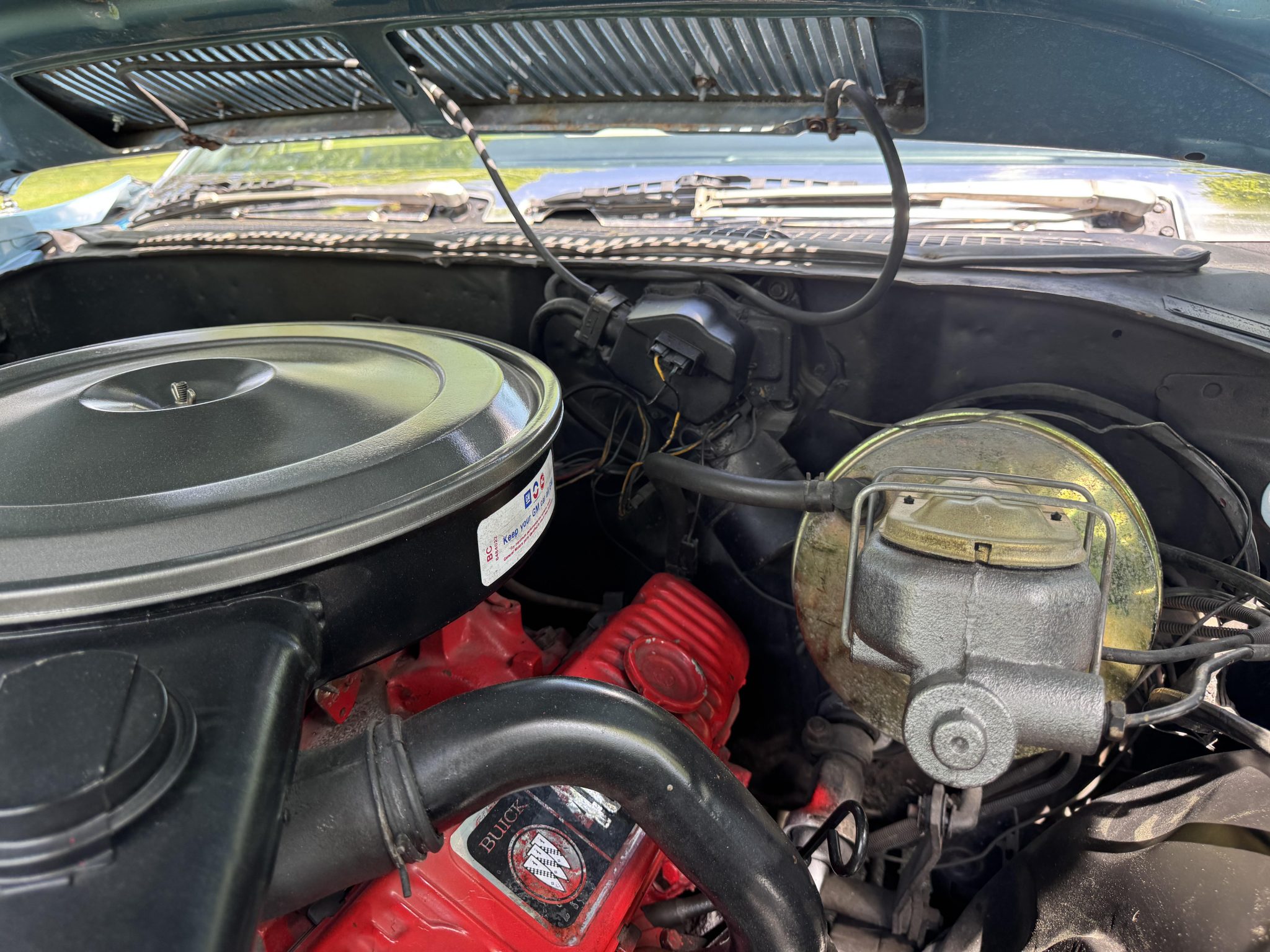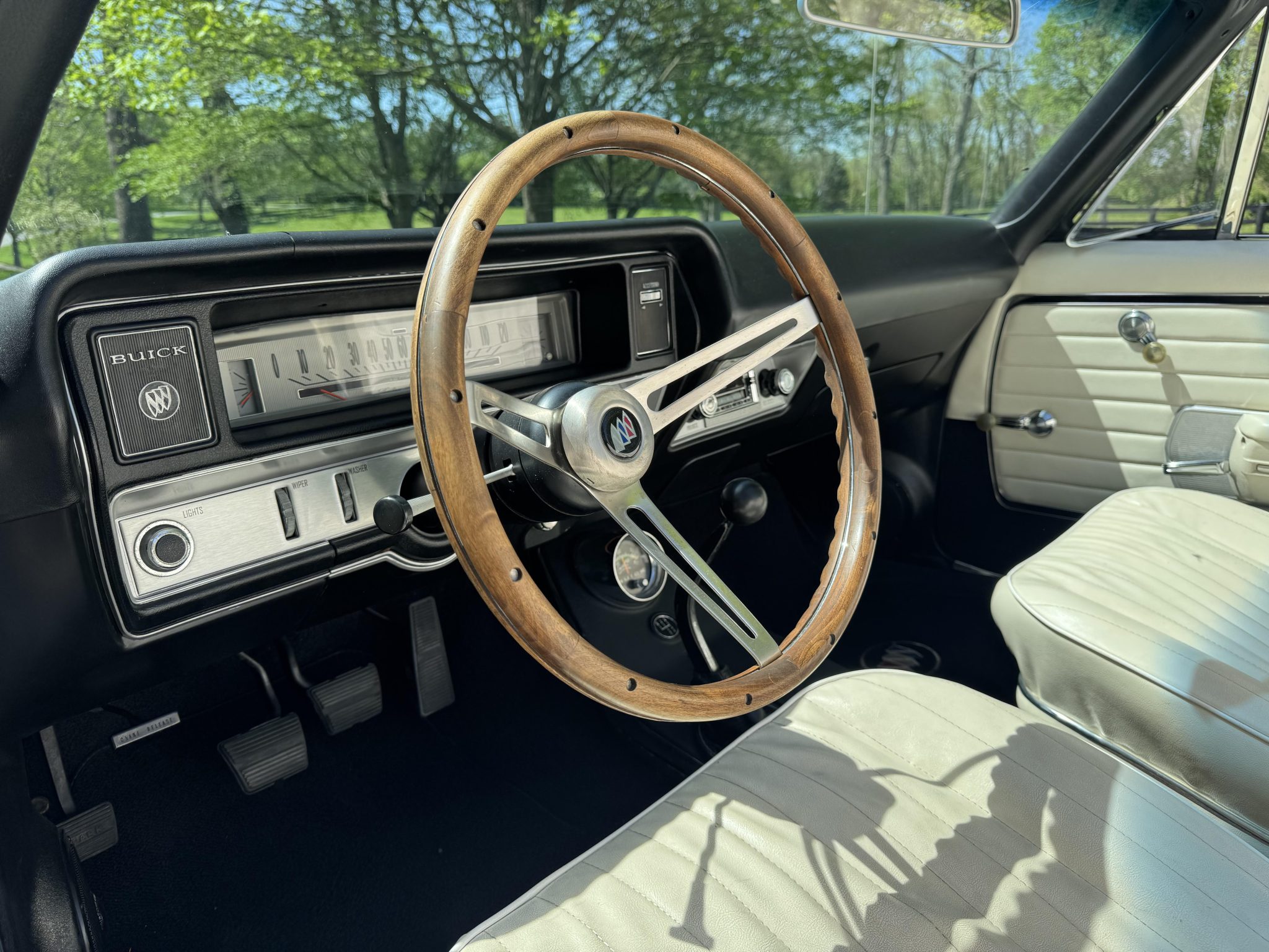 Power is provided by a 400ci V8 paired with a four-speed manual transmission, and the car is equipped with a power-operated white soft top, a four-barrel carburetor, power-assisted front disc brakes, 14″ Rallye wheels, and power-assisted front disc brakes. The interior features front bucket seats upholstered in white vinyl and accompanied by a center console, a Custom Autosound cassette stereo, and an aftermarket steering wheel.