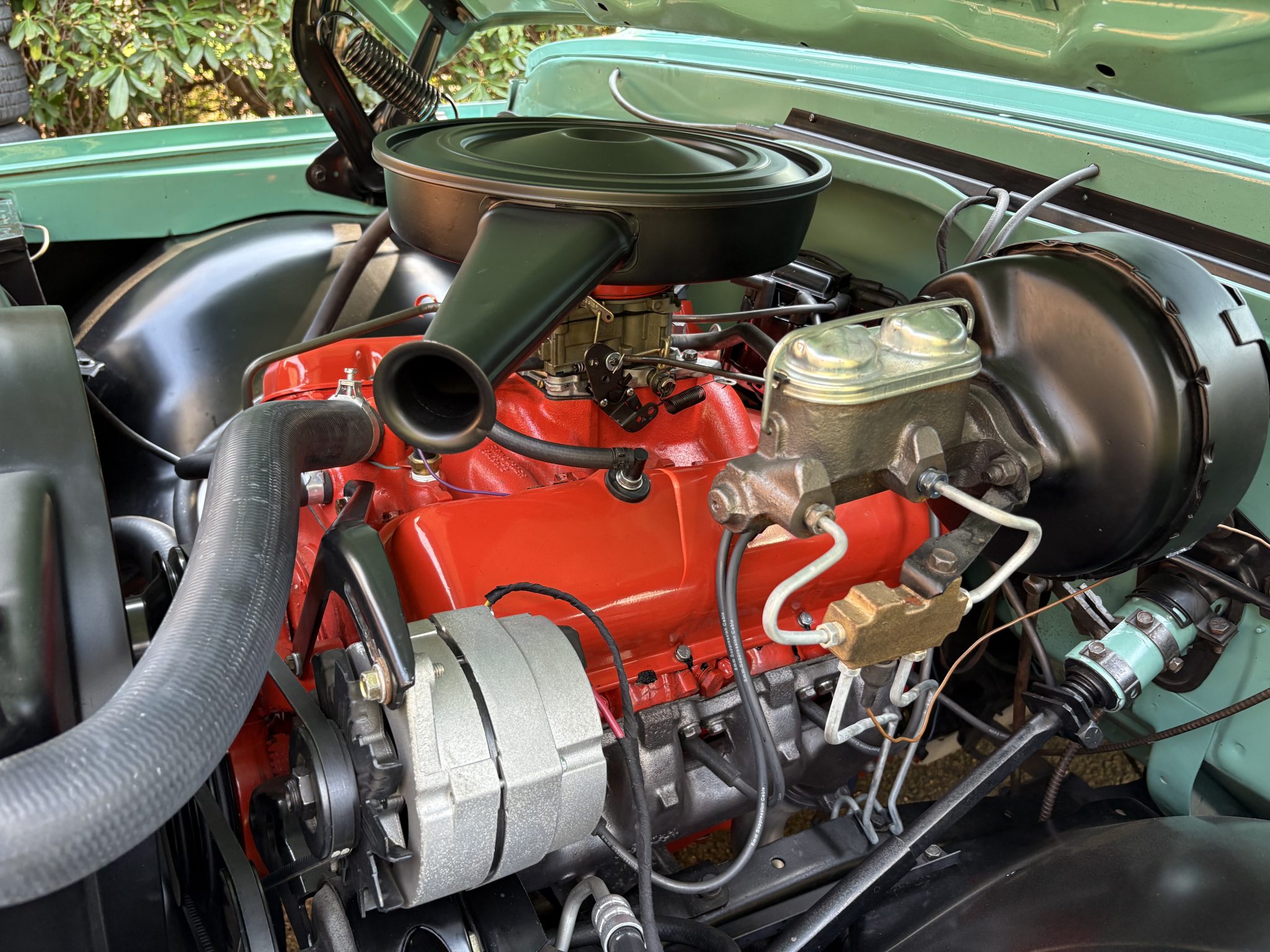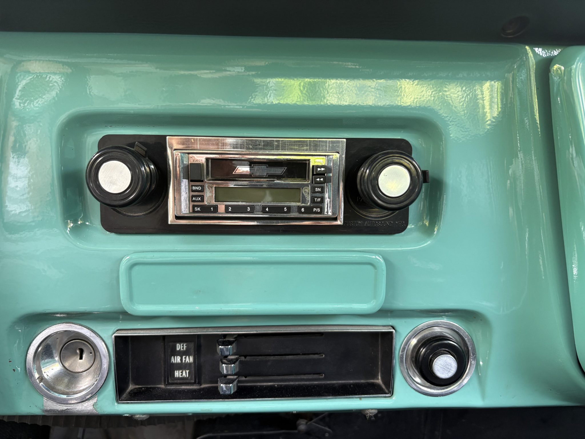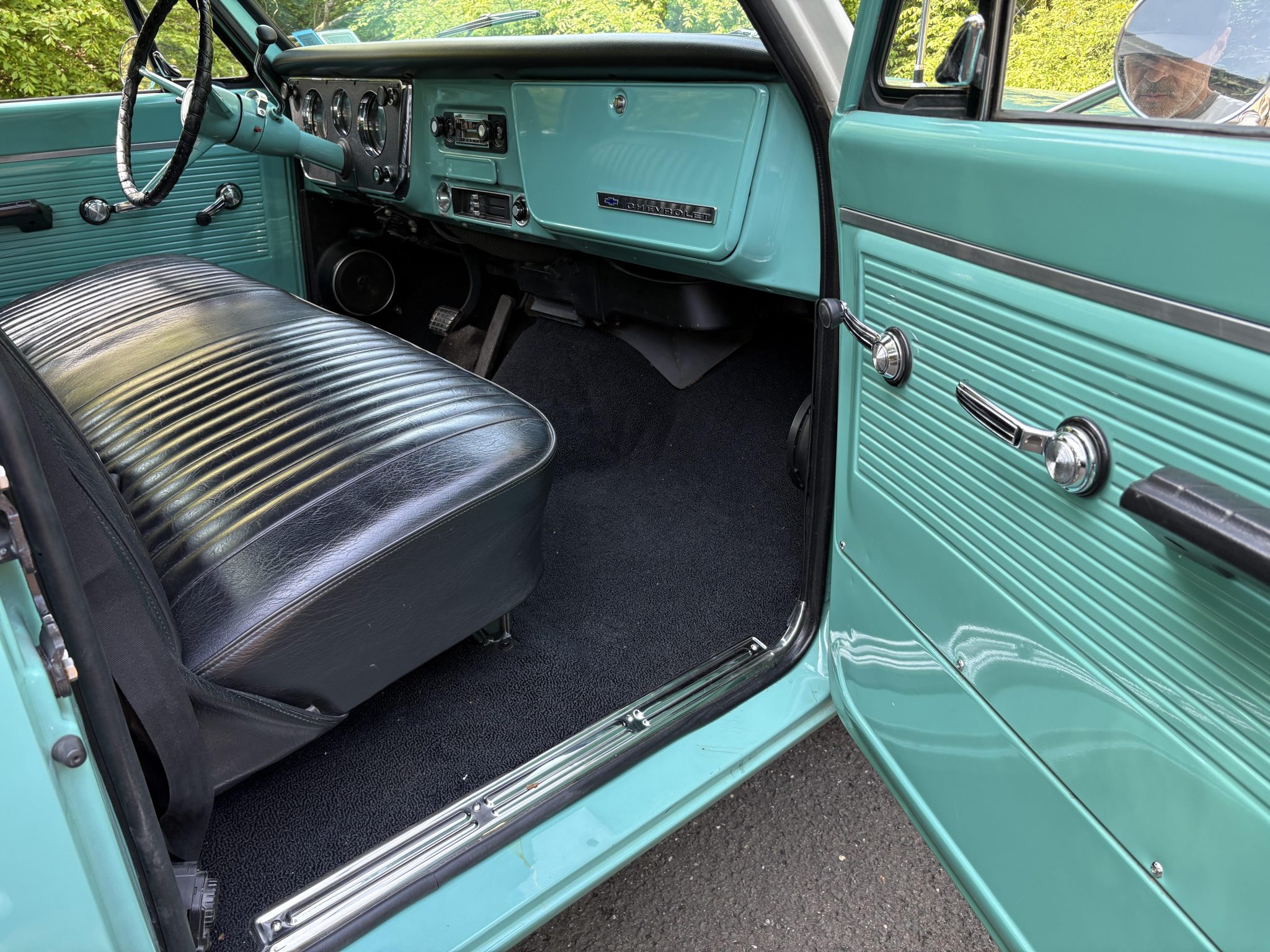 This 1968 Chevrolet C10 pickup is a long-bed 4×2 that was refurbished from 2009 through 2011 Powered by a 396ci V8 paired with a three-speed automatic, it is finished in turquoise with a white roof over black upholstery, and it has power steering, a cassette stereo, a dual exhaust system, and 15″ chrome wheels.
