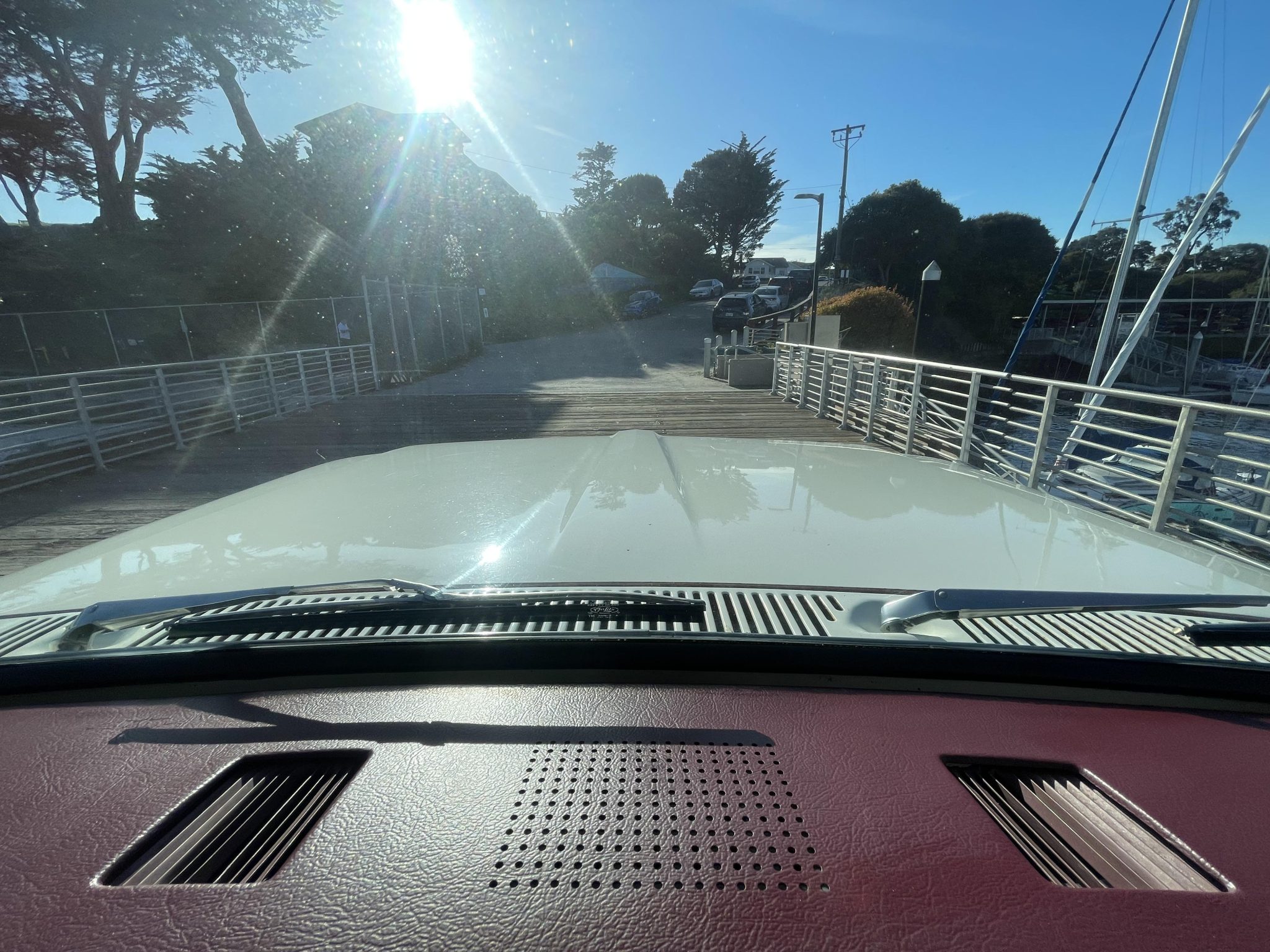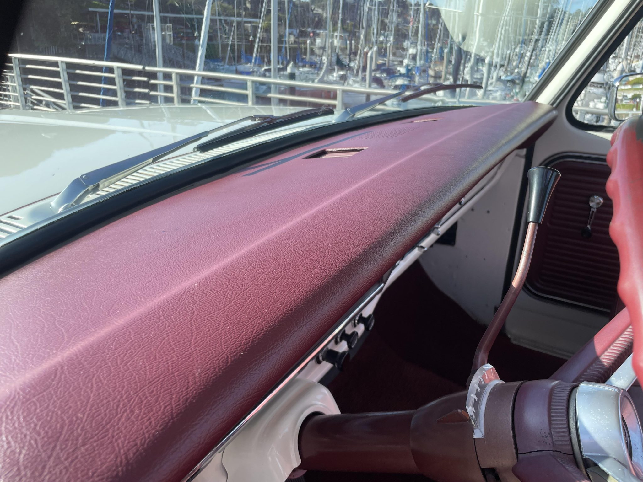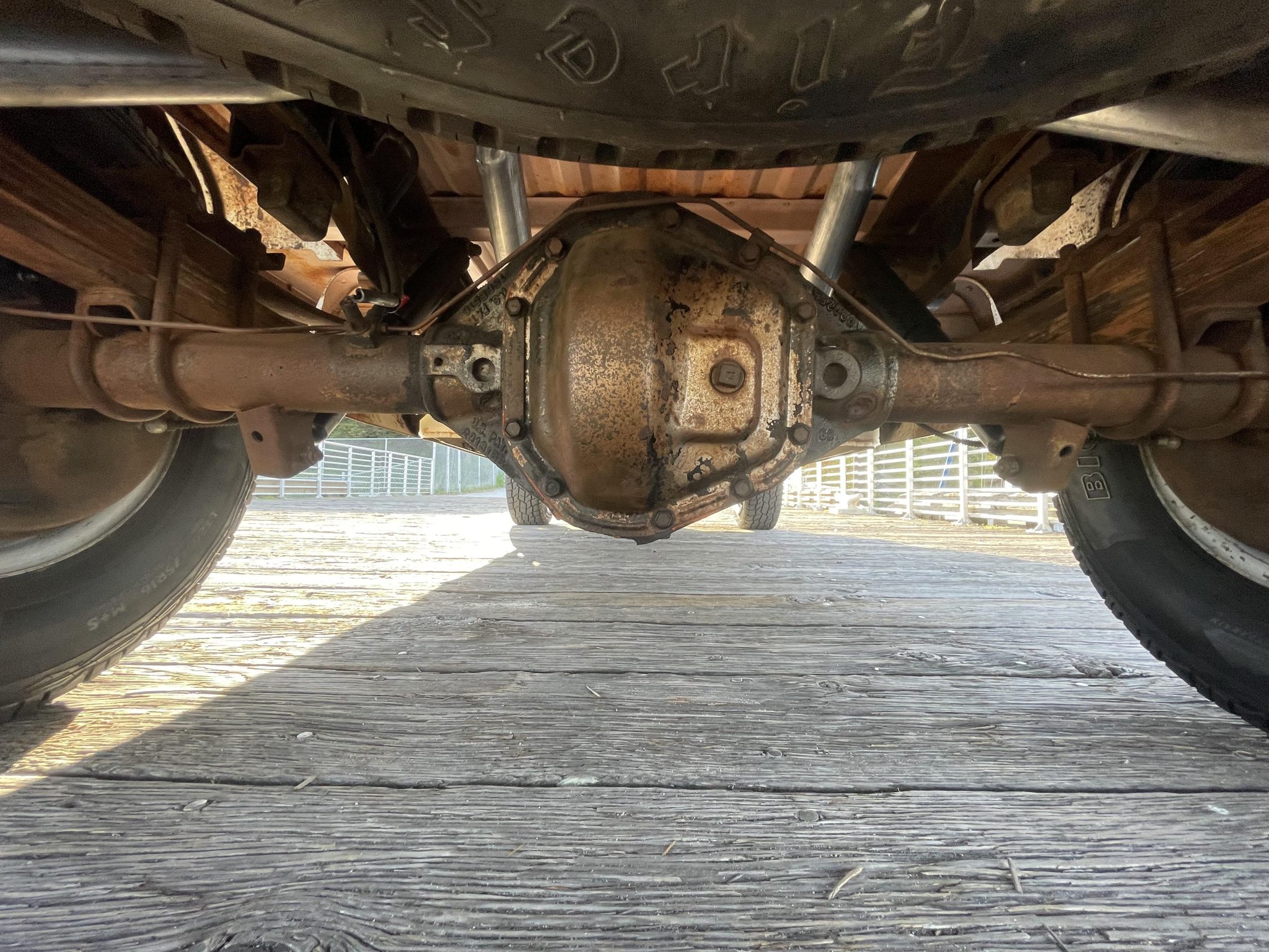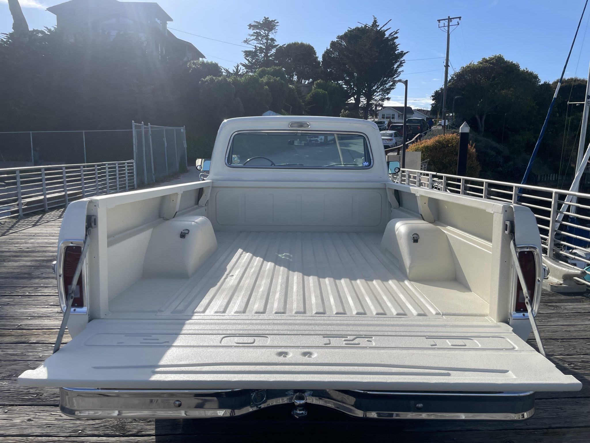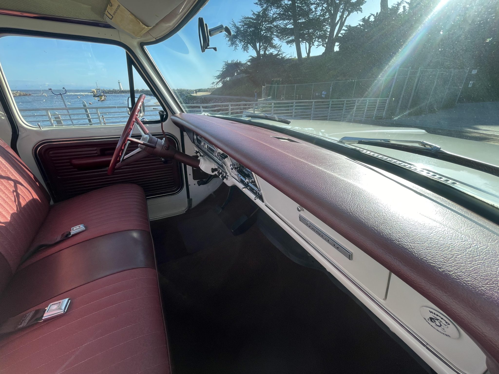 It is powered by a 360ci V8 linked with a three-speed Cruise-O-Matic automatic transmission and is finished in Wimbledon White over red vinyl upholstery. The truck has power steering, 16″ steel wheels, a dual exhaust system, crank windows, KYB shocks, electronic ignition, and a heater.