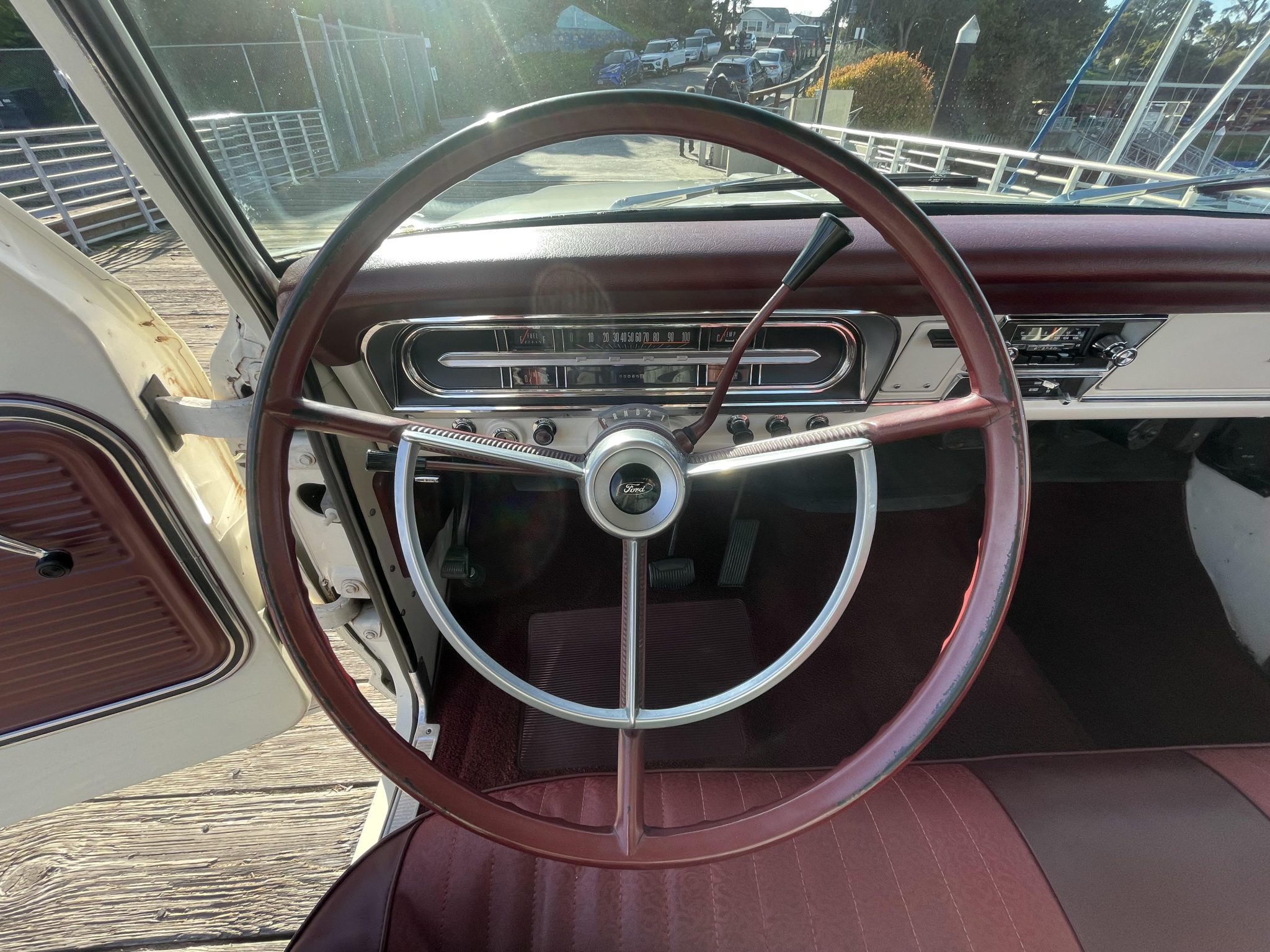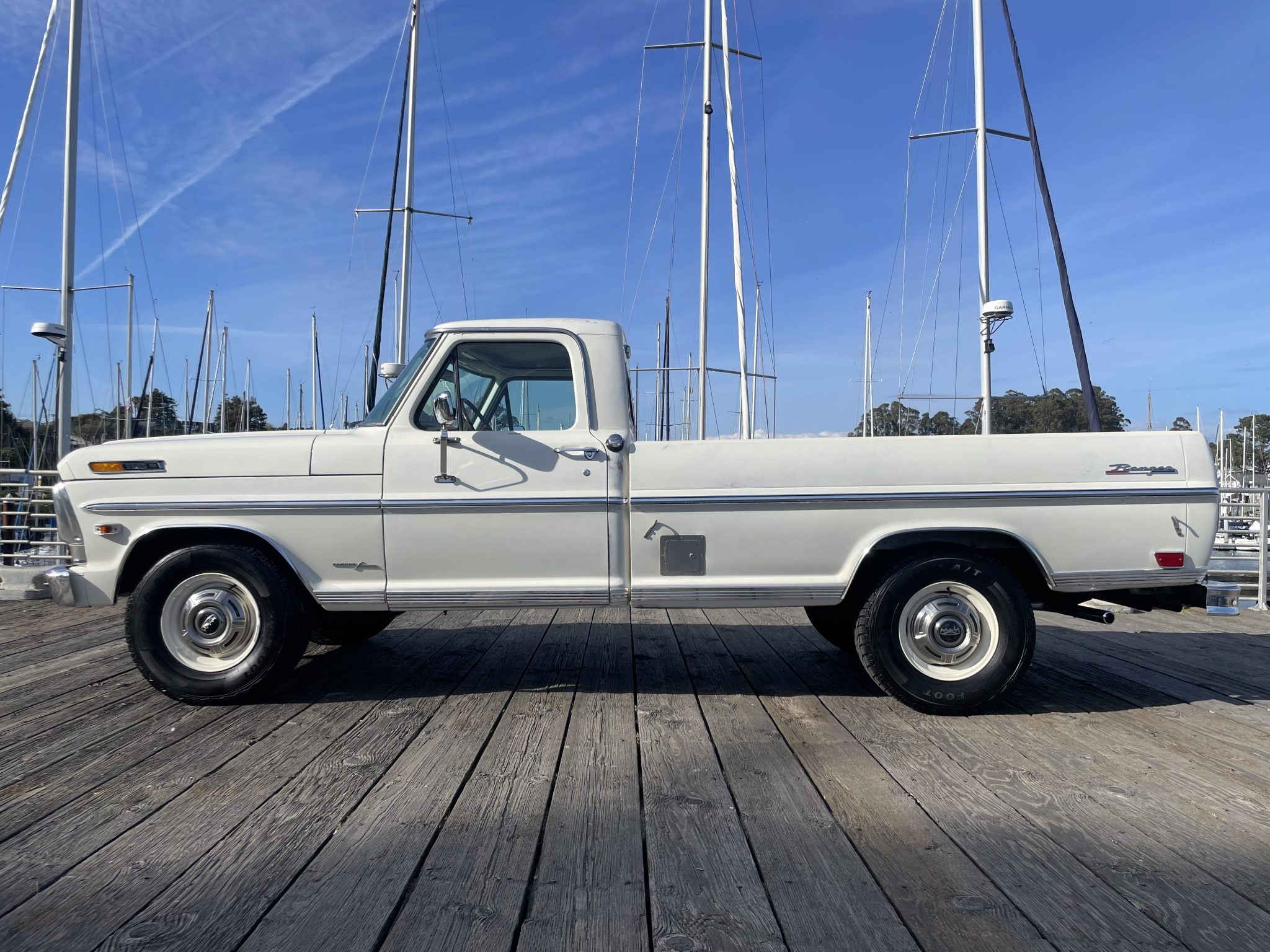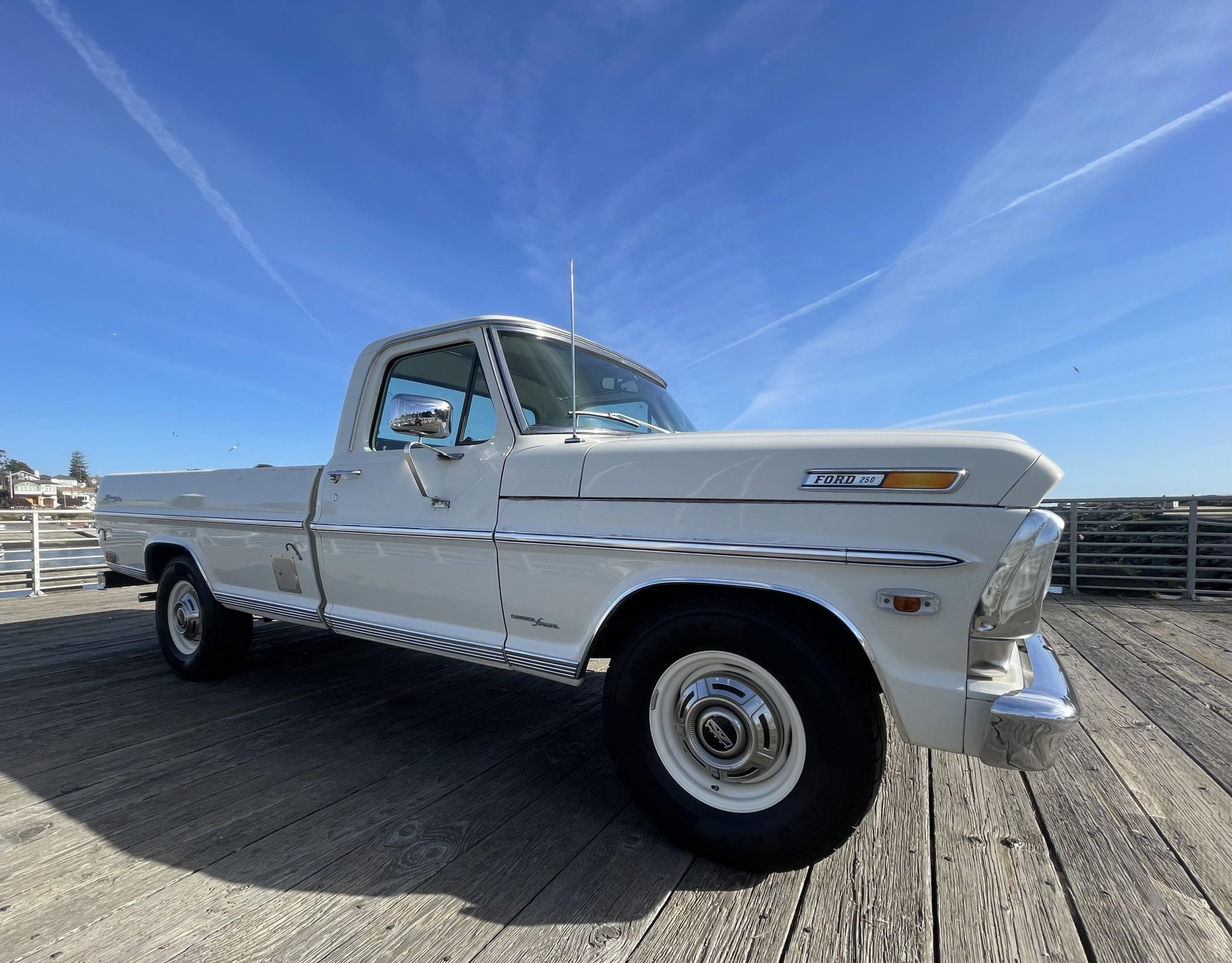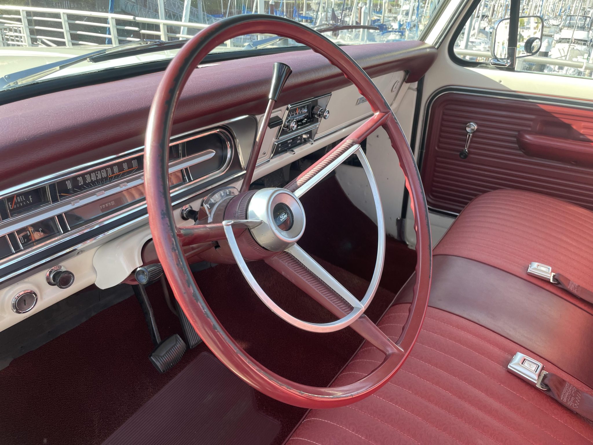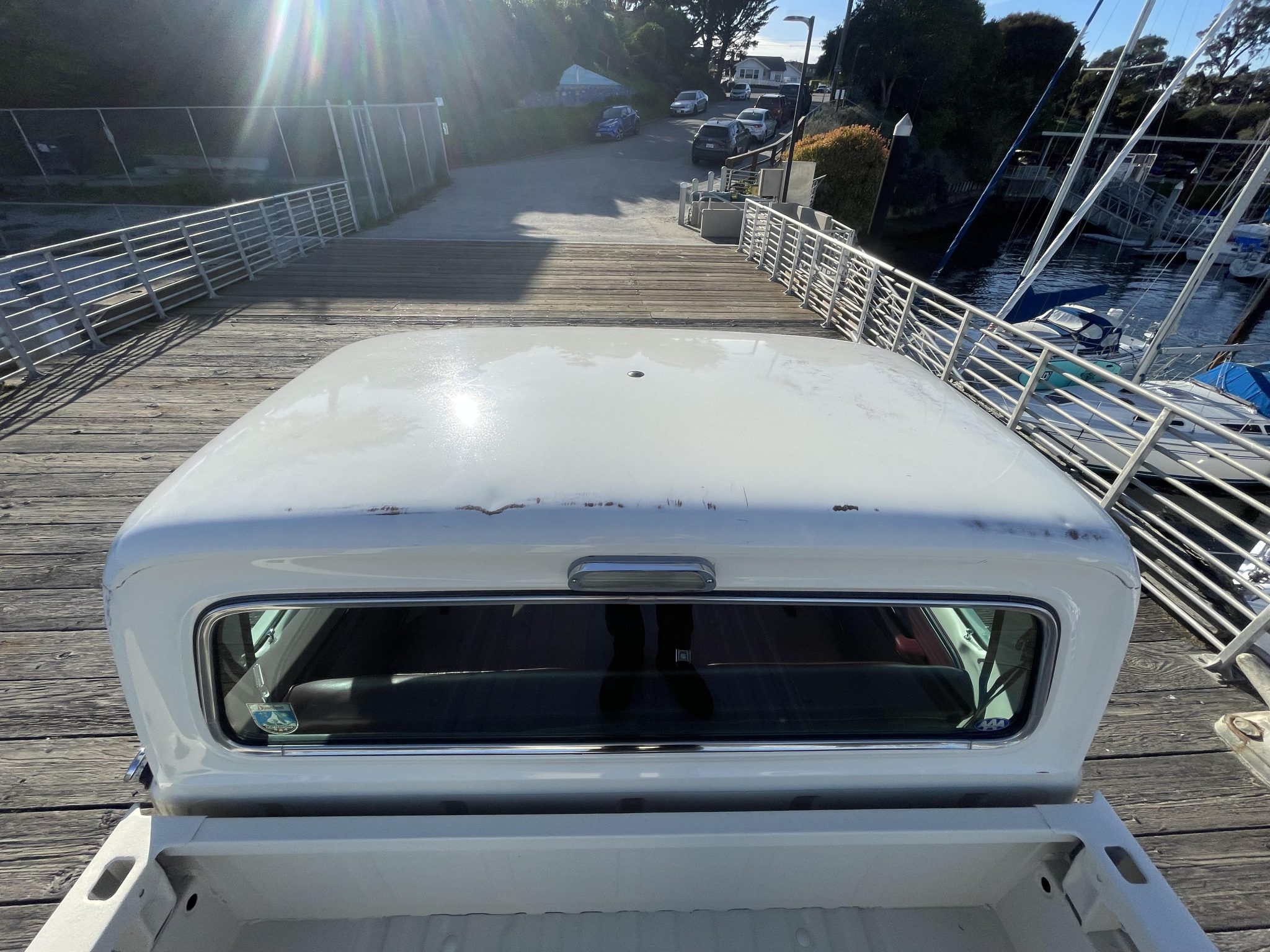 It is powered by a 360ci V8 linked with a three-speed Cruise-O-Matic automatic transmission and is finished in Wimbledon White over red vinyl upholstery. The truck has power steering, 16″ steel wheels, a dual exhaust system, crank windows, KYB shocks, electronic ignition, and a heater.