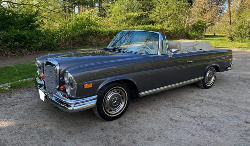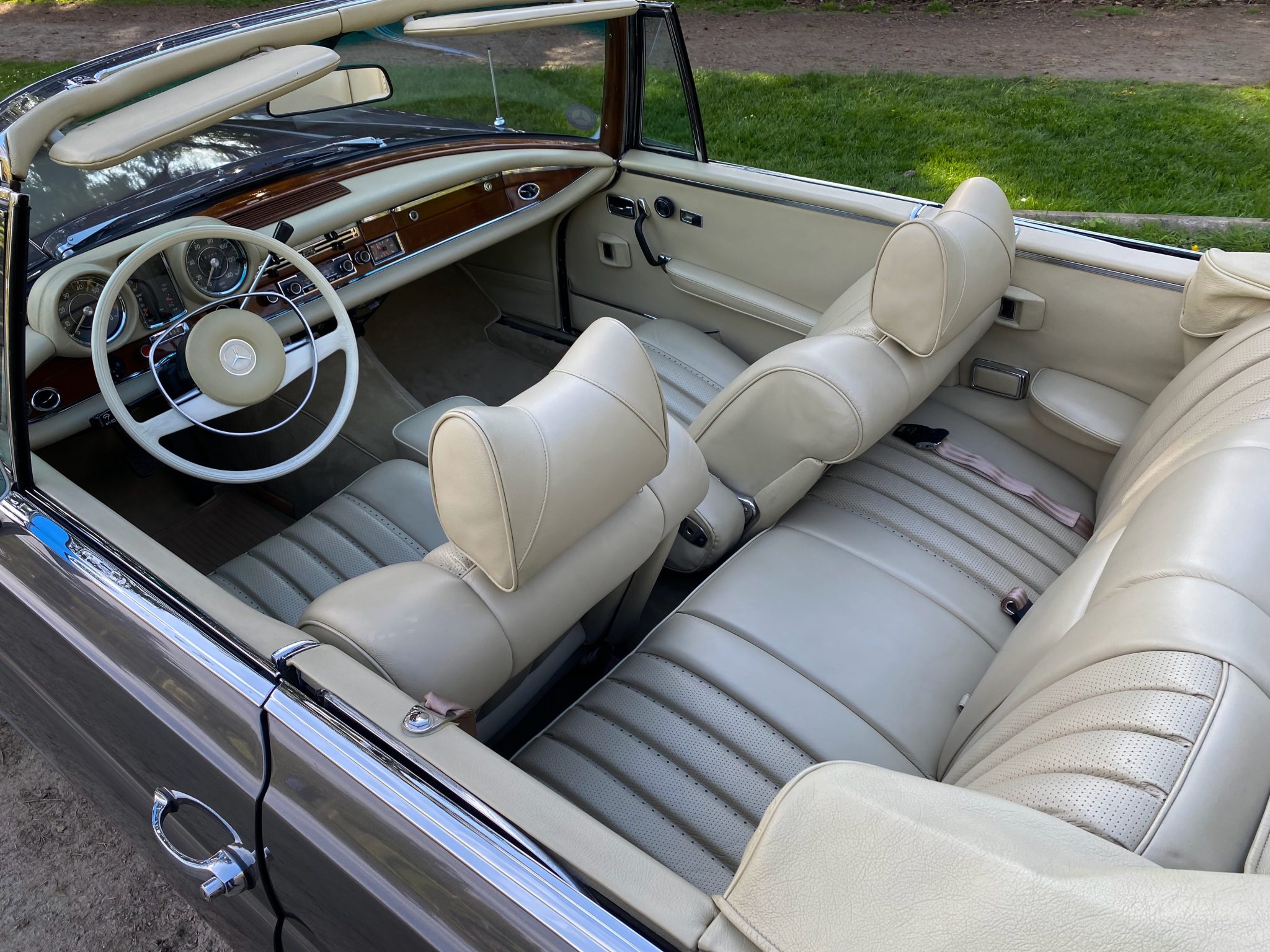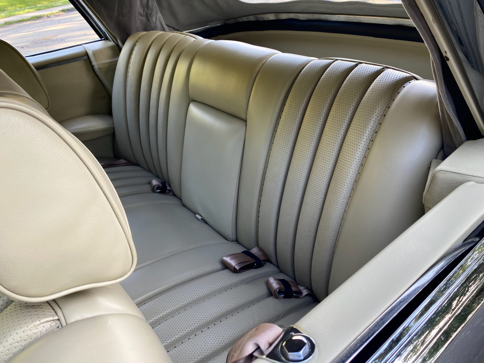 A cosmetic refurbishment in the mid-1990s included a repaint in Anthracite Gray and a reupholstered Parchment leather interior, and a replacement rebuilt 2.8-liter inline-six was installed in 2012. Additional equipment includes a four-speed automatic transmission, a blue convertible top, 14″ steel wheels with covers, disc brakes, US-specification headlights, power windows, an AM/FM radio, and a heater.