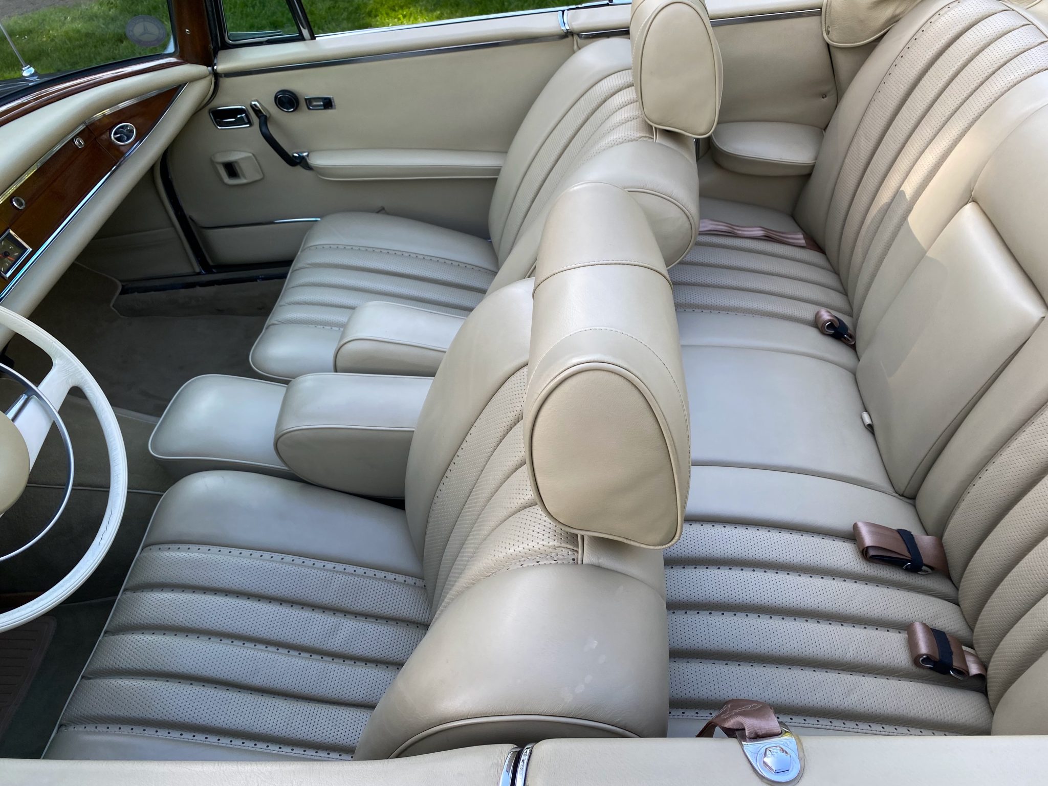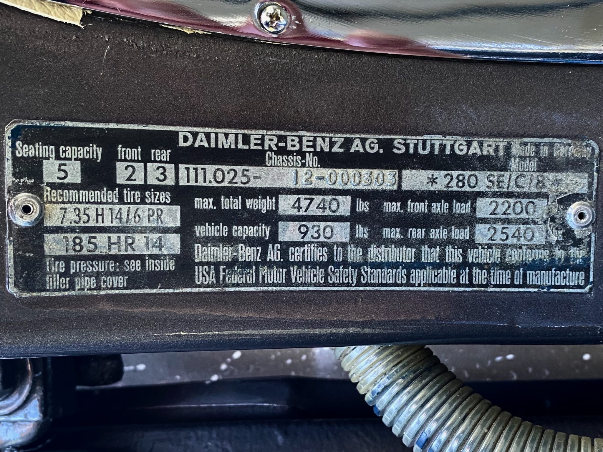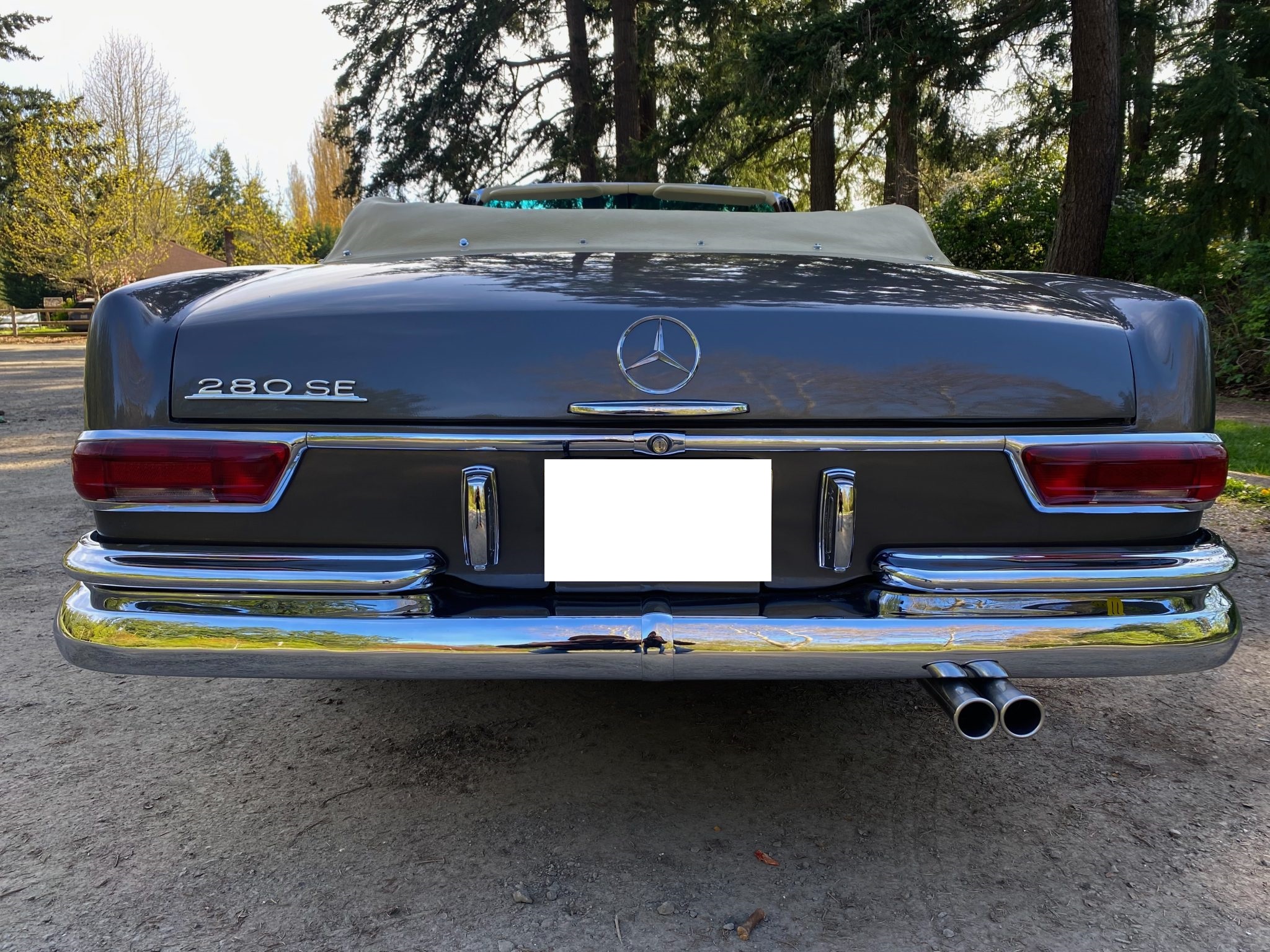 A cosmetic refurbishment in the mid-1990s included a repaint in Anthracite Gray and a reupholstered Parchment leather interior, and a replacement rebuilt 2.8-liter inline-six was installed in 2012. Additional equipment includes a four-speed automatic transmission, a blue convertible top, 14″ steel wheels with covers, disc brakes, US-specification headlights, power windows, an AM/FM radio, and a heater.
