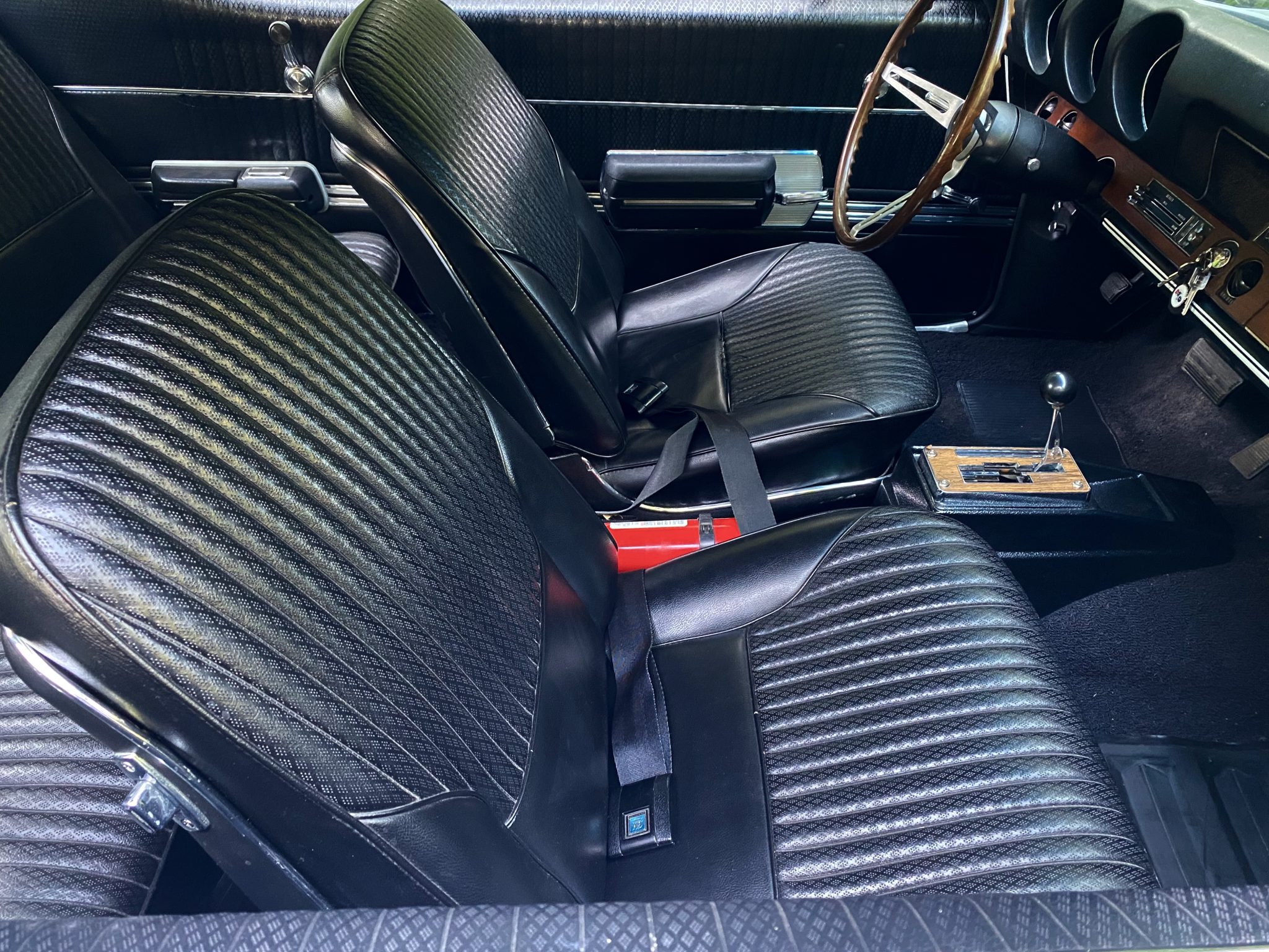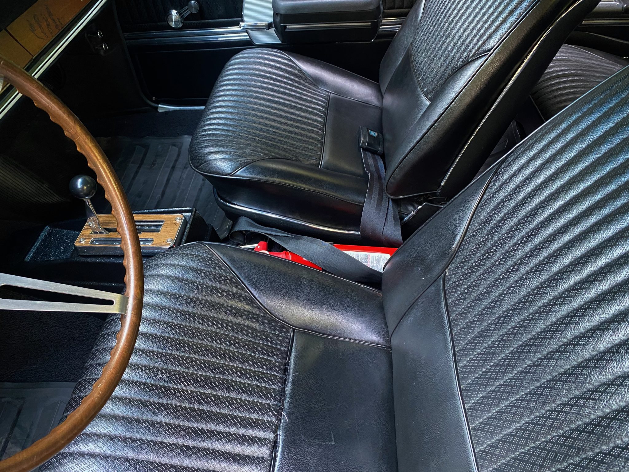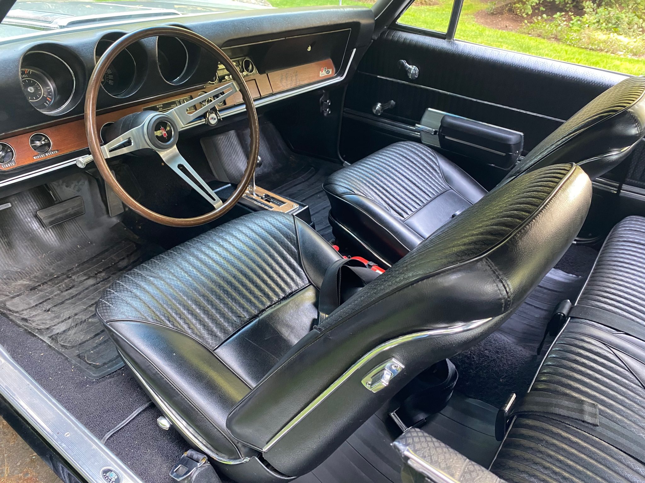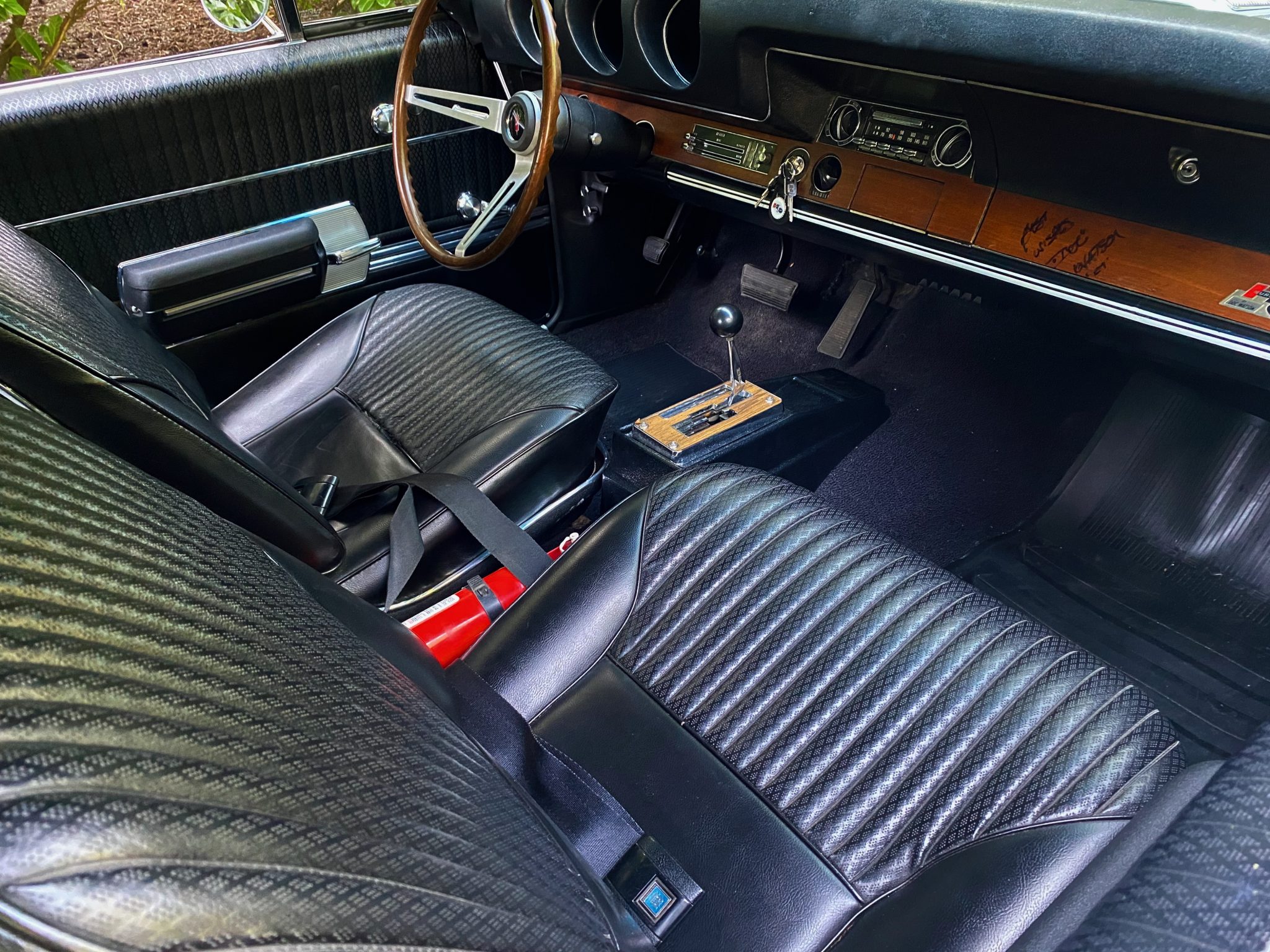 This 1968 Oldsmobile Hurst/Olds Holiday Coupe is one of 515 examples produced for the model year, and it is powered by a 455ci V8 linked with a TH400 three-speed automatic transmission and a limited-slip differential. The engine is equipped with D-specification heads, PerTronix ignition, and a rebuilt Rochester four-barrel carburetor, and the car rides on 14″ Super Stock II wheels that are mounted over power-assisted front disc and rear drum brakes. The exterior is finished in Peruvian Silver and black, while the cabin is outfitted with a Hurst dual-gate shifter, a Deluxe steering wheel, walnut wood trim, an AM/FM radio, and black vinyl upholstery on the front bucket and rear bench seats.