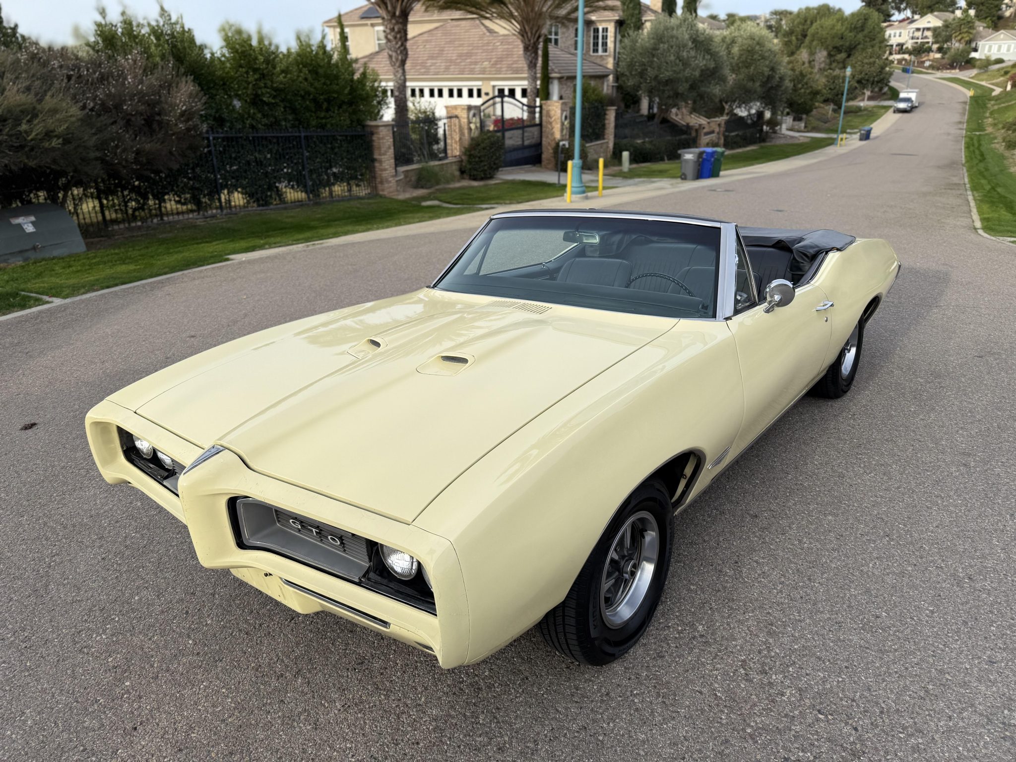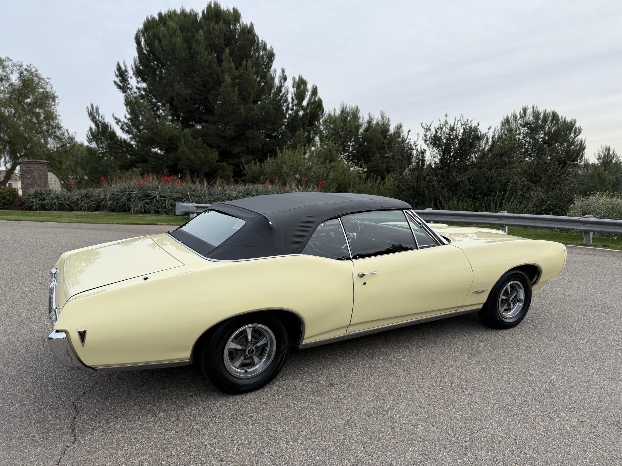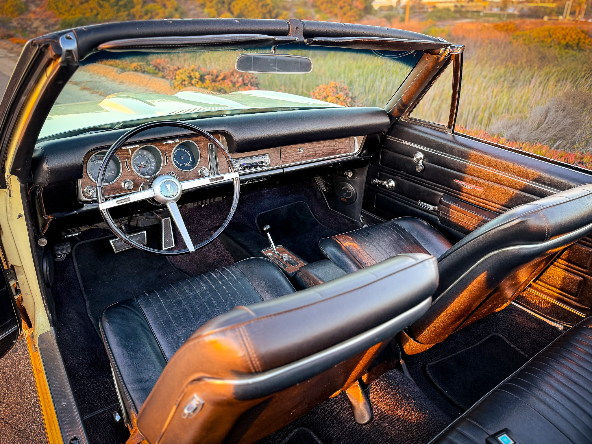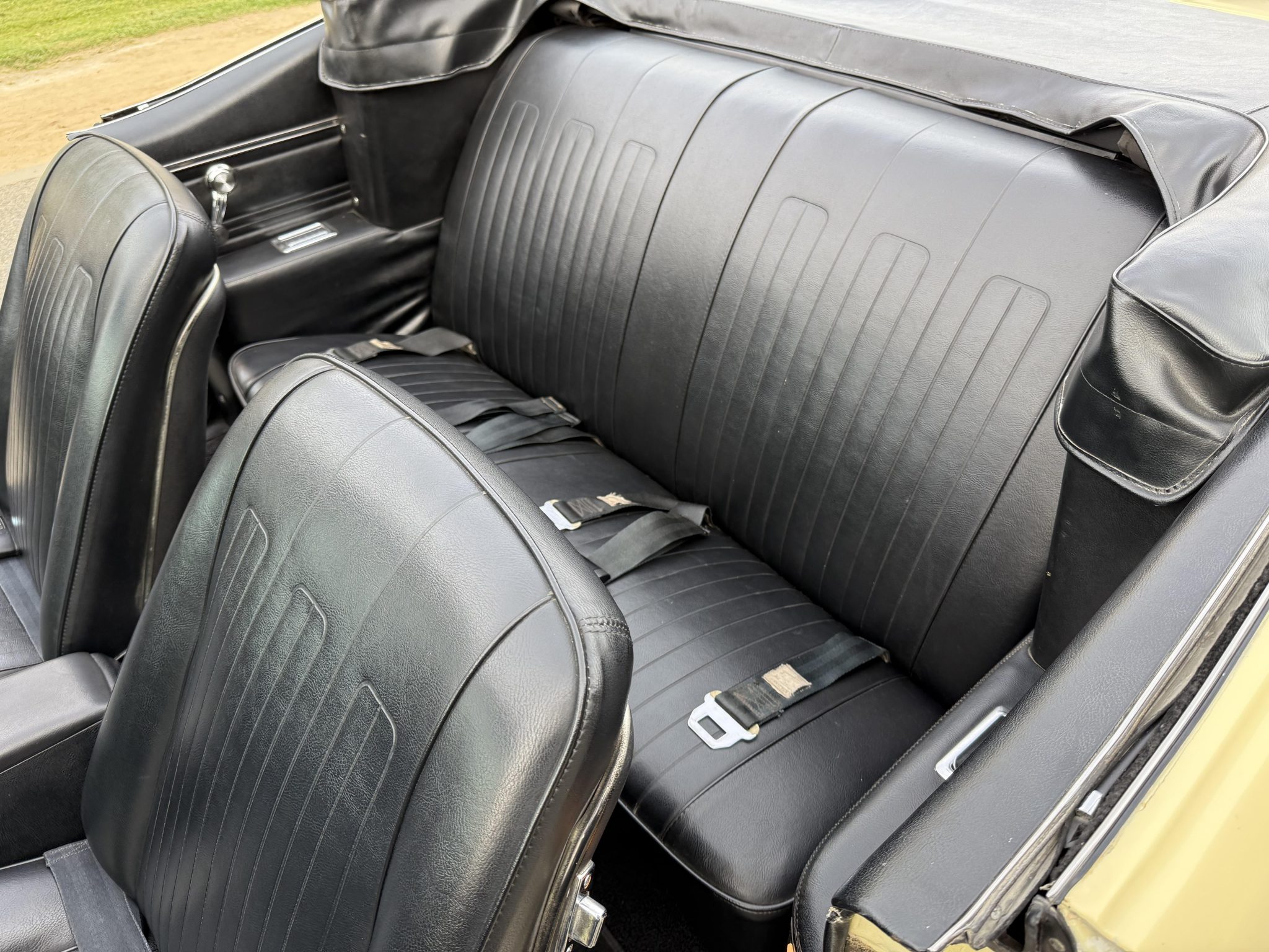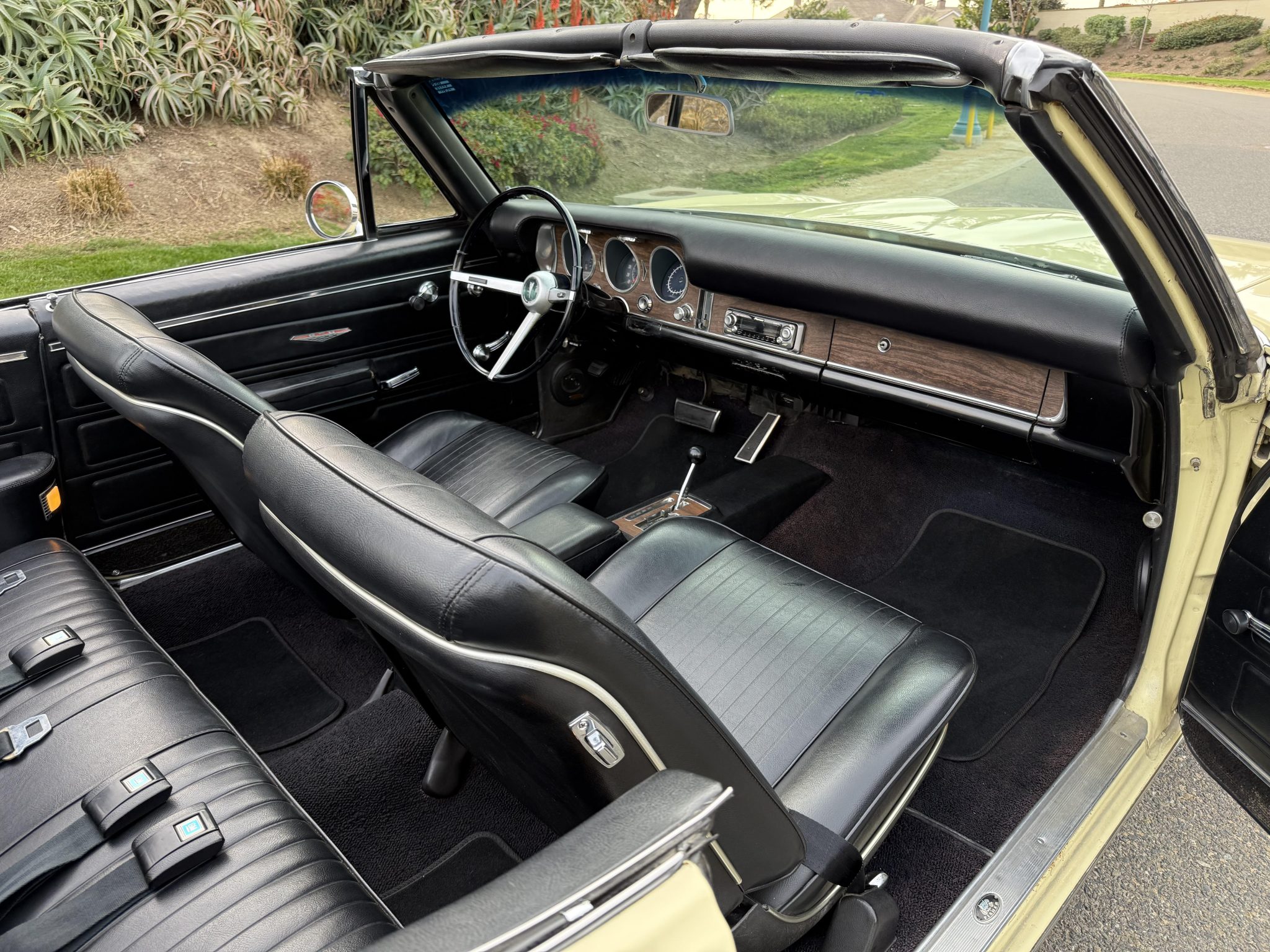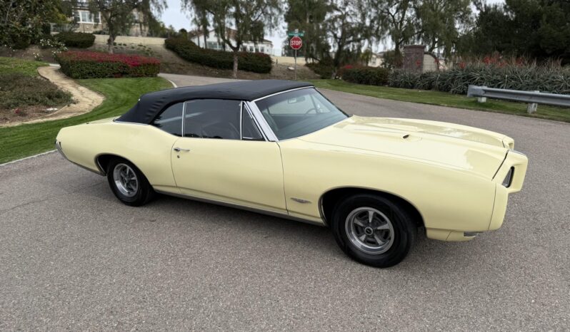 It is powered by a 400ci V8 mated to a three-speed automatic transmission and is finished Mayfair Maize over black vinyl. Equipment includes a black soft top, 14″ Rally II wheels, chrome front and rear bumpers, retractable headlight covers, a twin-scoop hood, power steering and brakes, front bucket seats, a Hurst shifter, and a Pioneer CD player.
