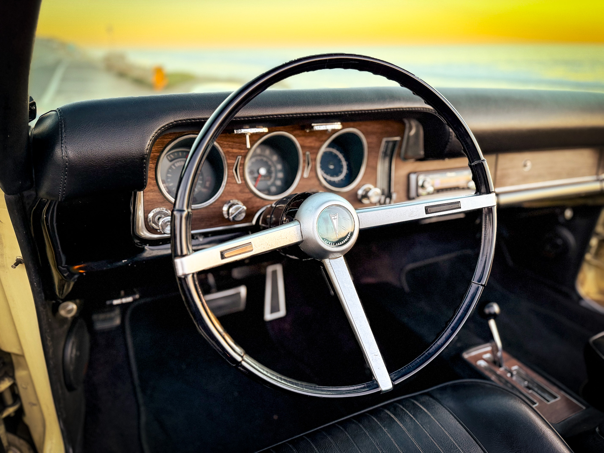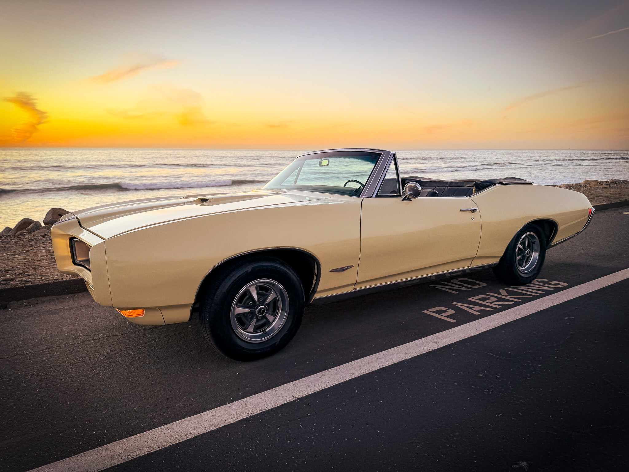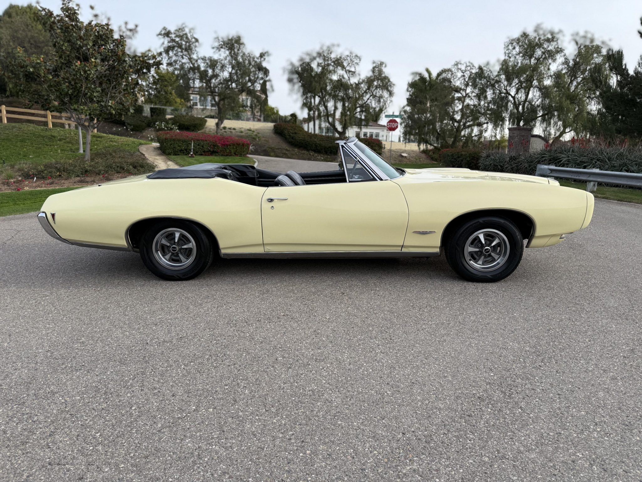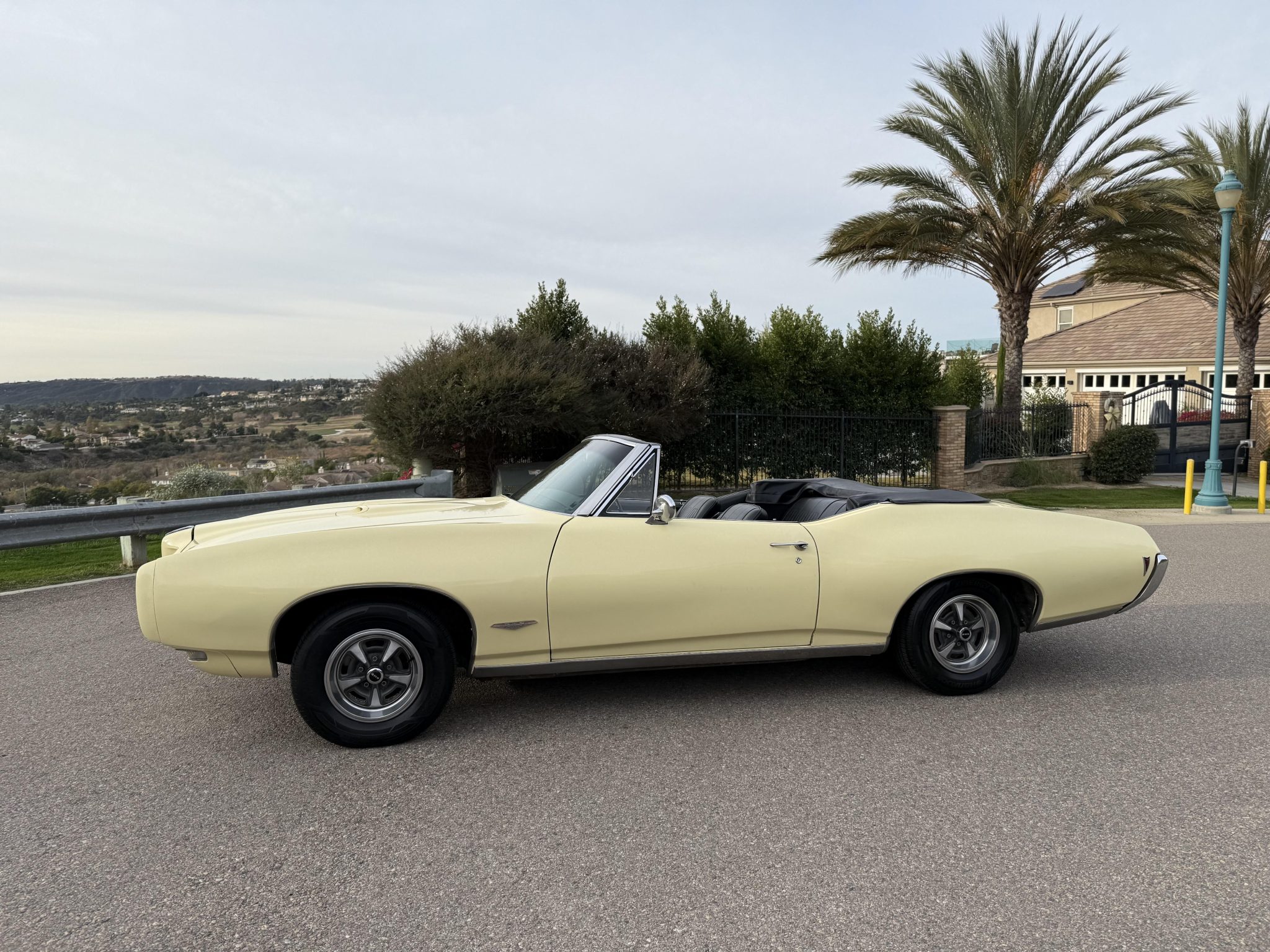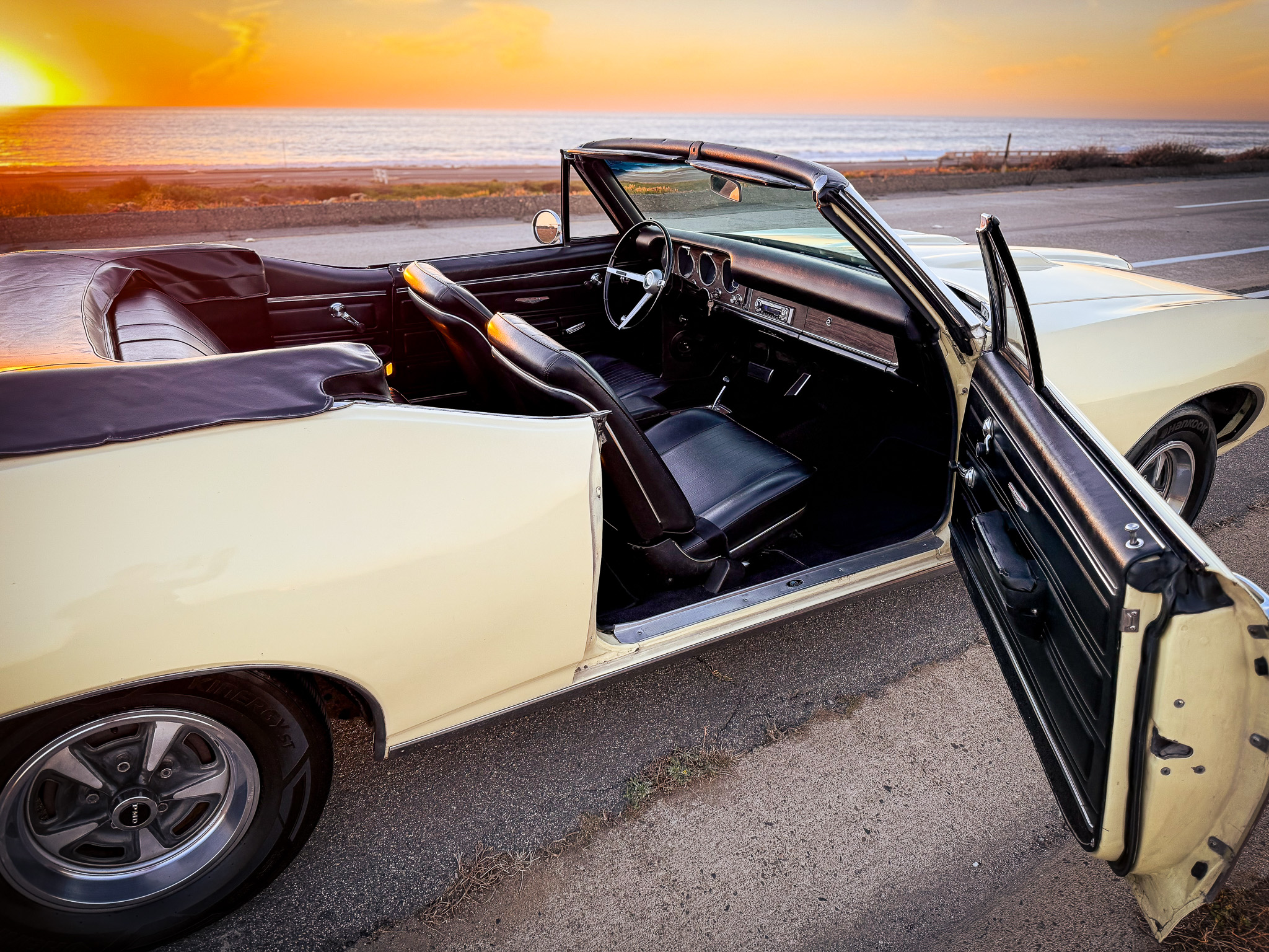 It is powered by a 400ci V8 mated to a three-speed automatic transmission and is finished Mayfair Maize over black vinyl. Equipment includes a black soft top, 14″ Rally II wheels, chrome front and rear bumpers, retractable headlight covers, a twin-scoop hood, power steering and brakes, front bucket seats, a Hurst shifter, and a Pioneer CD player.