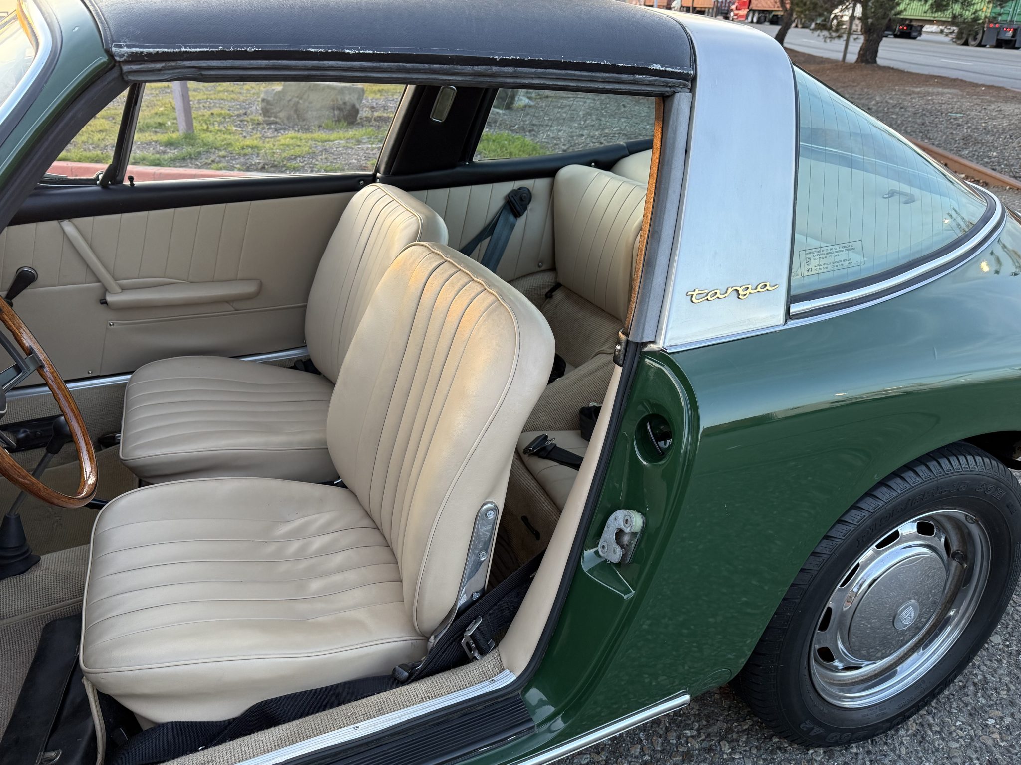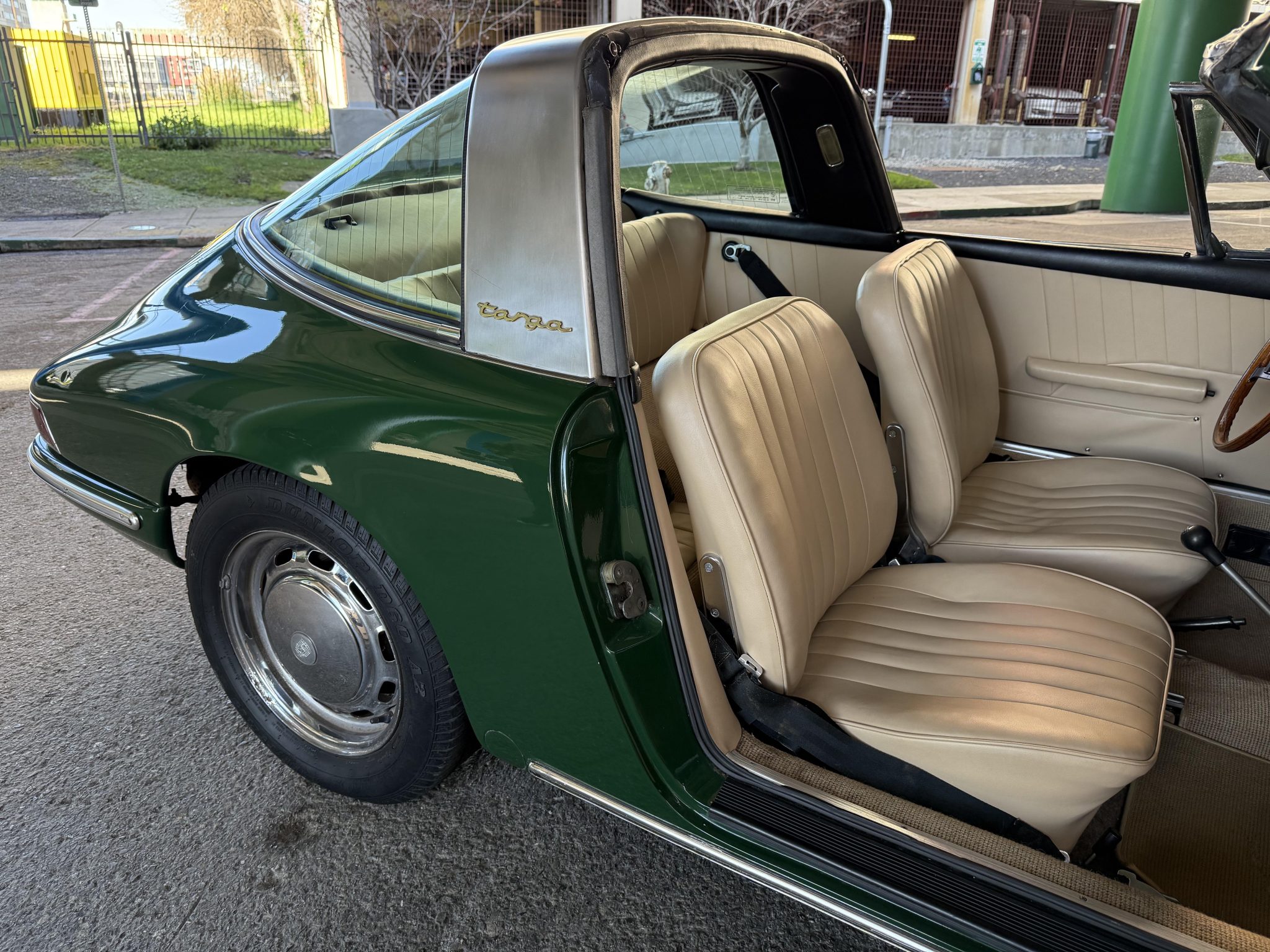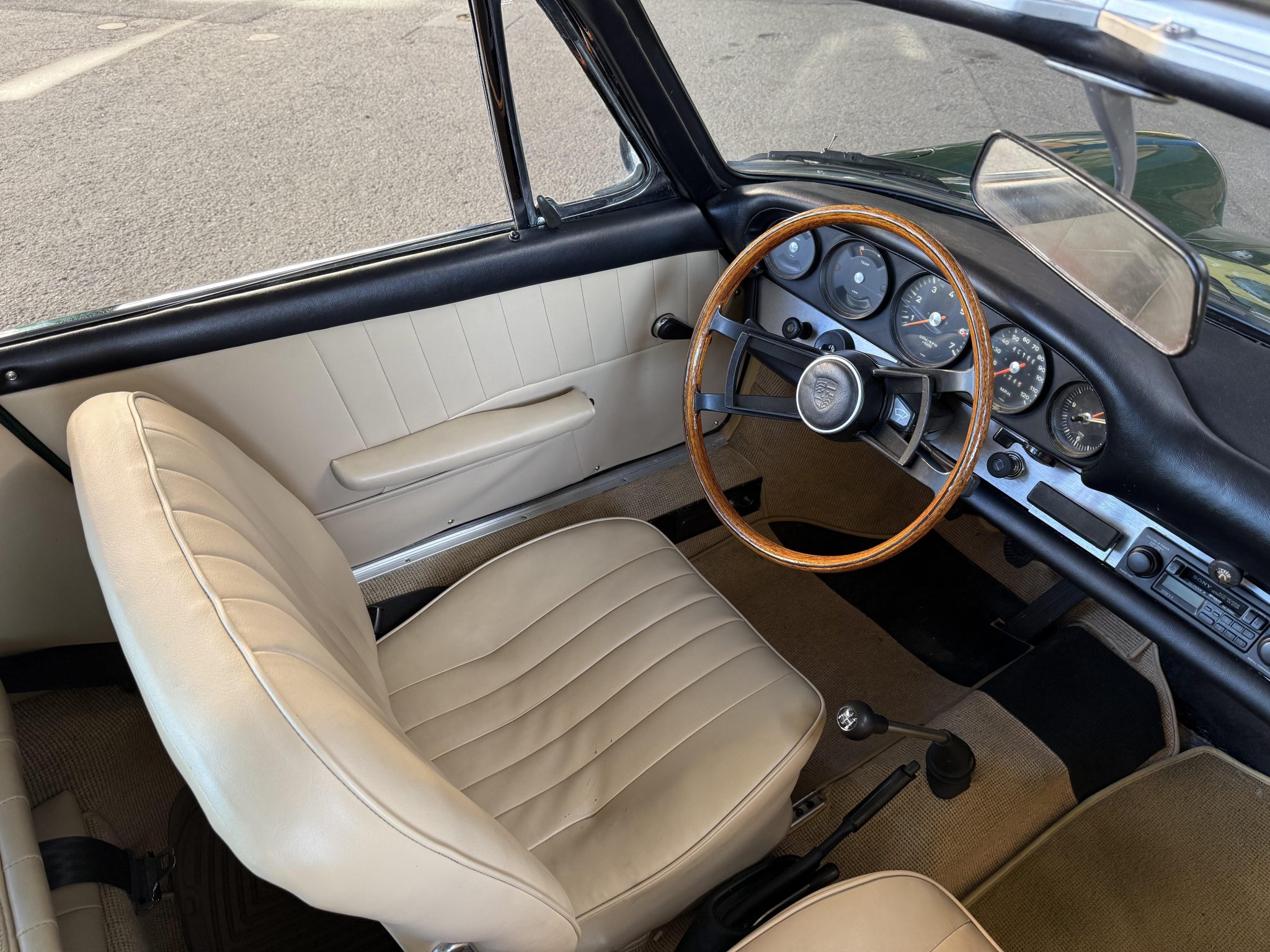 This 1968 Porsche 912 Targa is powered by a 1.6-liter flat-four mated to a five-speed manual transaxle and is finished in Irish Green over beige upholstery. Equipment includes a removable Targa roof panel, a brushed stainless-steel Targa bar, a fixed glass rear window, 15″ perforated steel disc wheels, disc brakes, bright bumper guards, bucket seats, lap and shoulder belts, and a heater.
