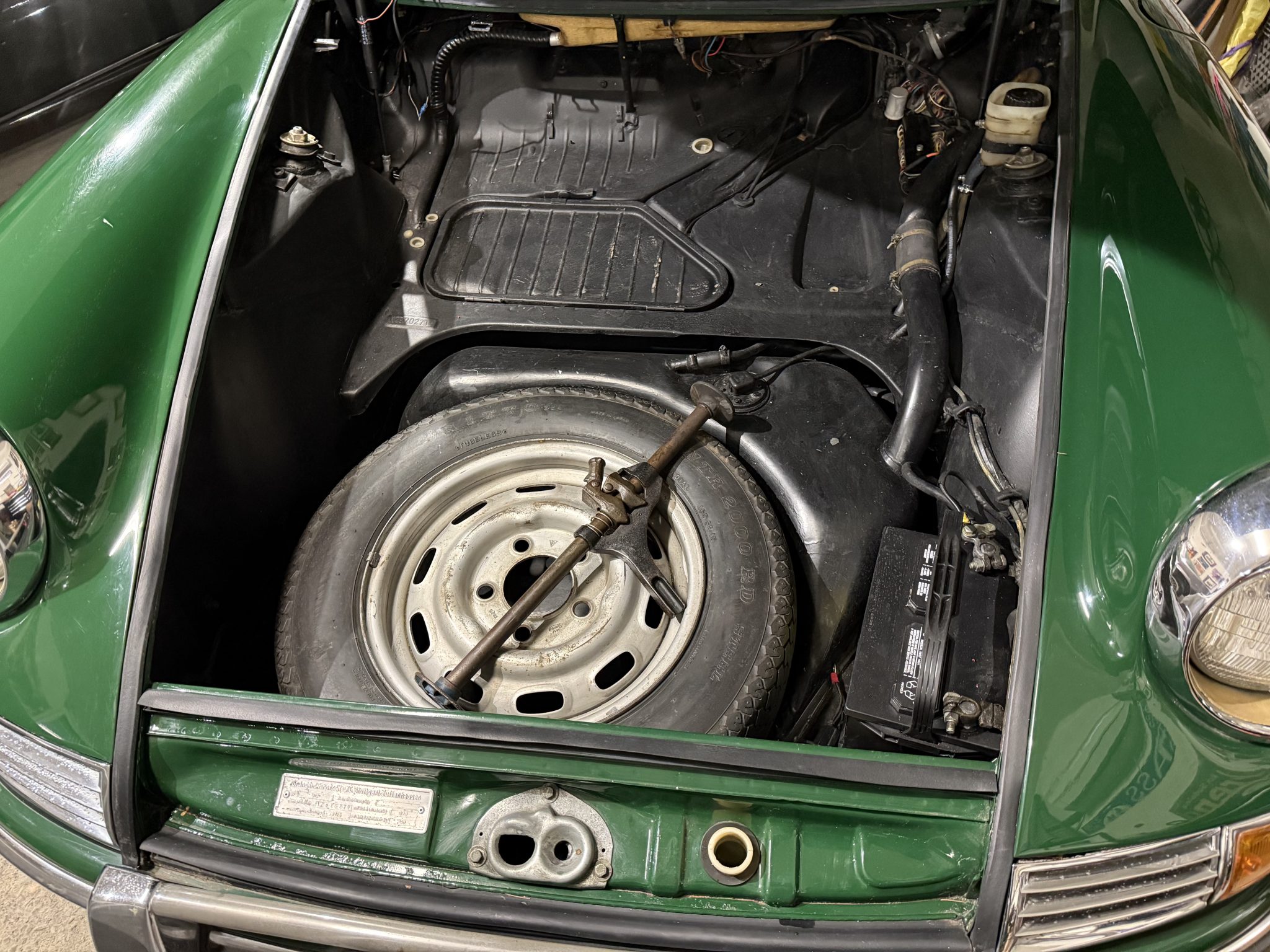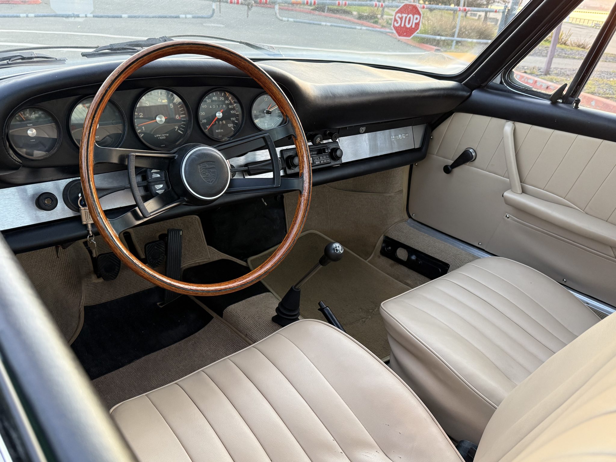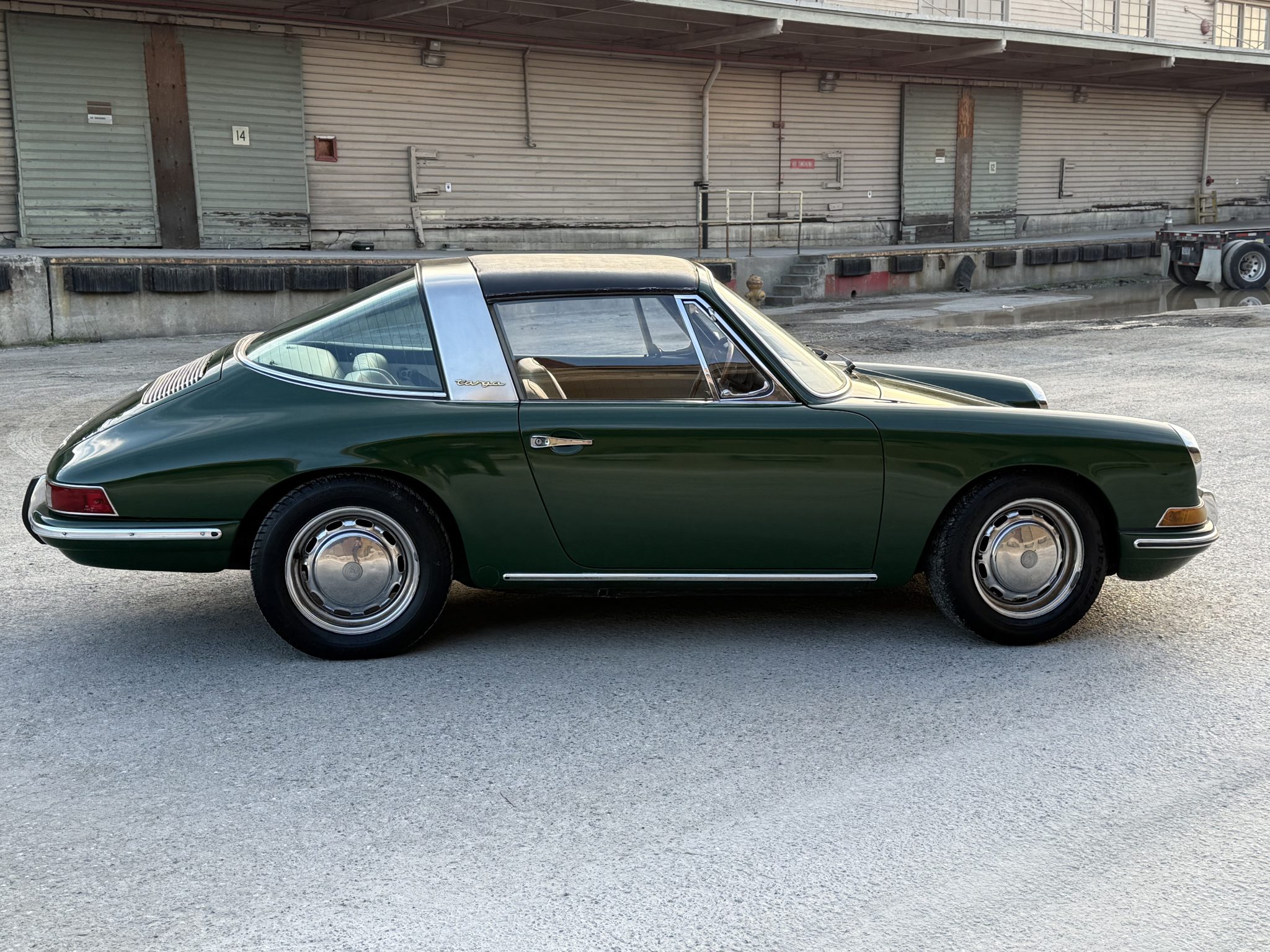 This 1968 Porsche 912 Targa is powered by a 1.6-liter flat-four mated to a five-speed manual transaxle and is finished in Irish Green over beige upholstery. Equipment includes a removable Targa roof panel, a brushed stainless-steel Targa bar, a fixed glass rear window, 15″ perforated steel disc wheels, disc brakes, bright bumper guards, bucket seats, lap and shoulder belts, and a heater.