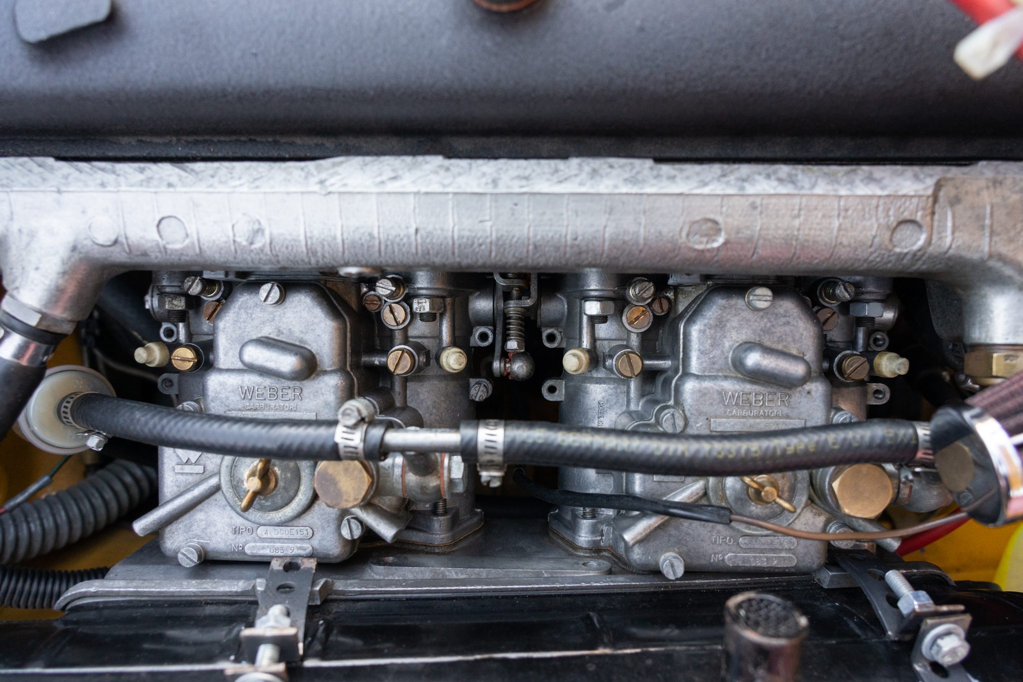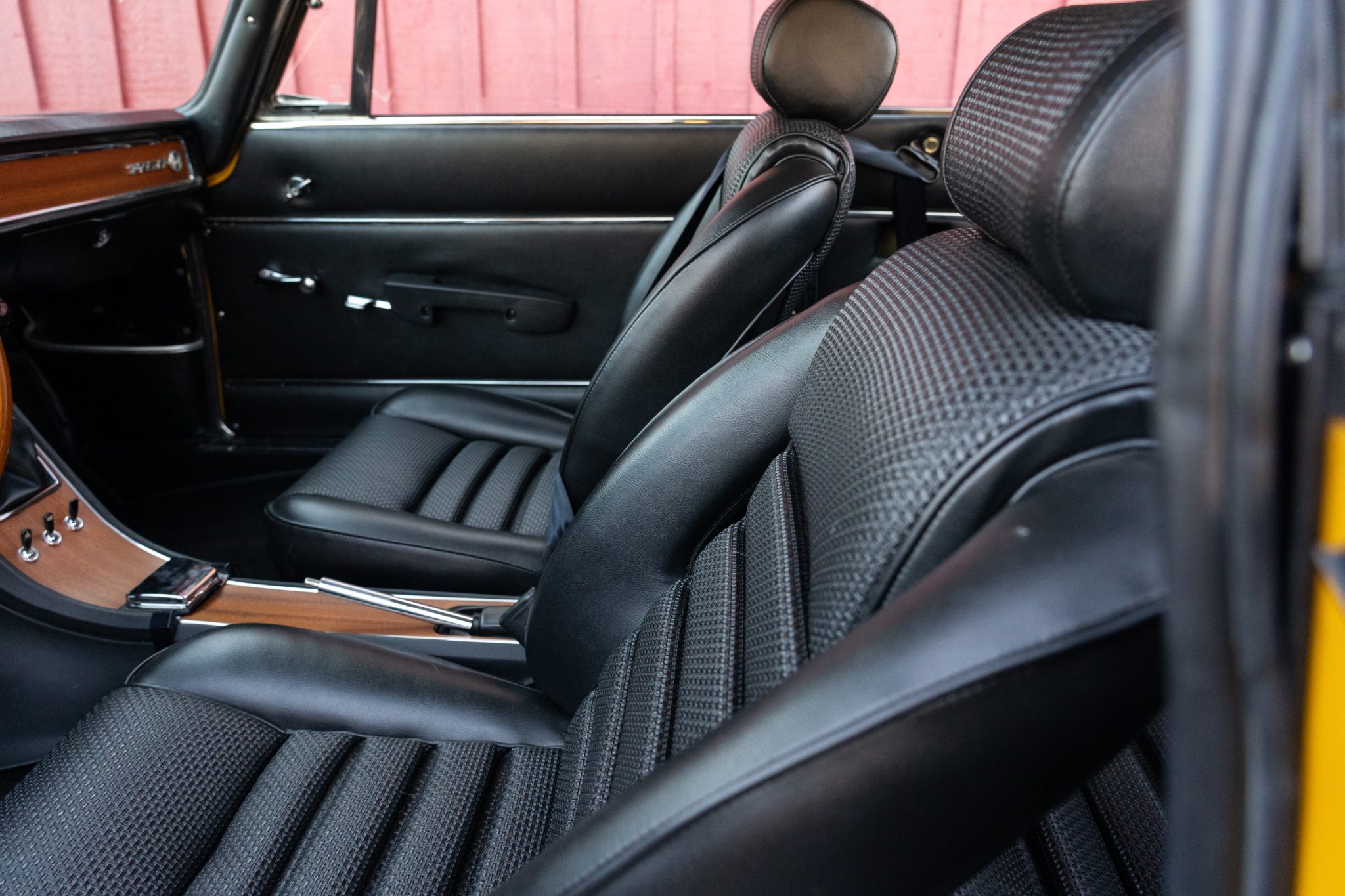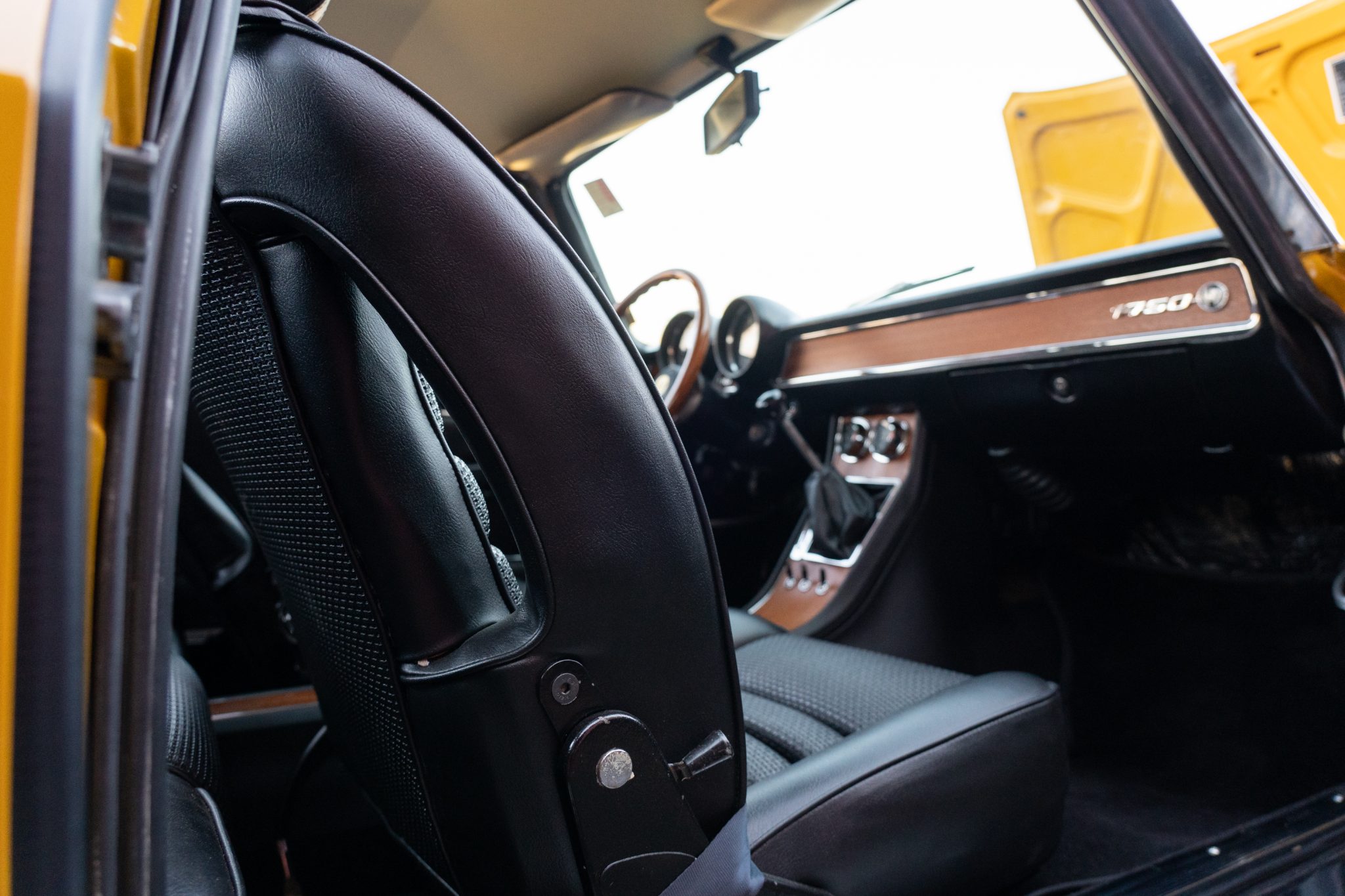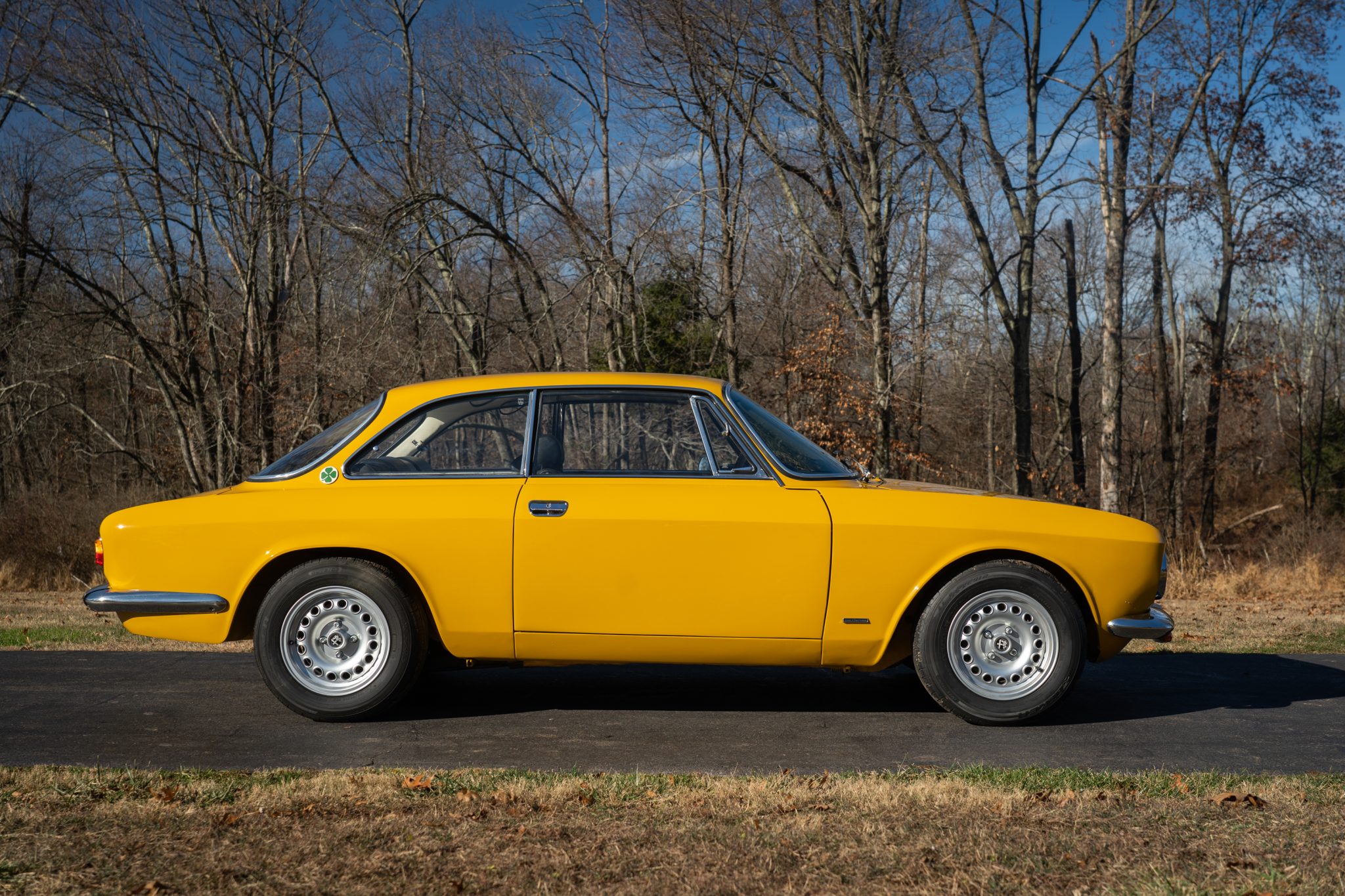 This 1969 Alfa Romeo GTV 1750 is finished in yellow over black upholstery and is powered by a 1,779cc twin-cam inline-four paired with a five-speed manual transmission. Equipment includes dual Weber carburetors, 14″ GTA-style wheels, “flying buttress” front seats, and Koni shocks paired with aftermarket springs. Updates performed during prior ownership included a repaint and partial interior refresh as well as rebuilds of engine and carburetors.