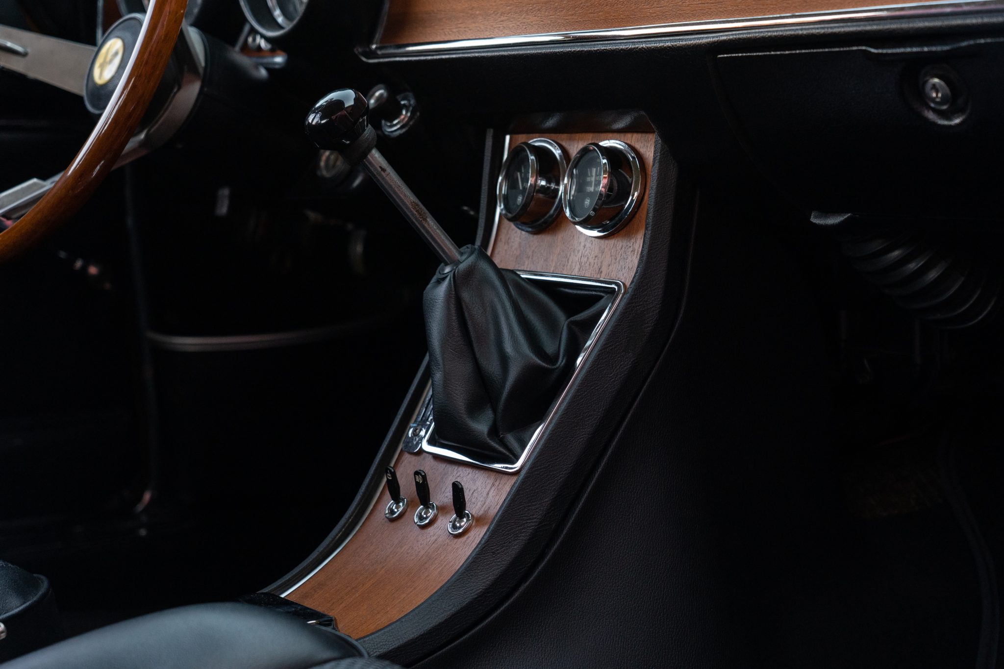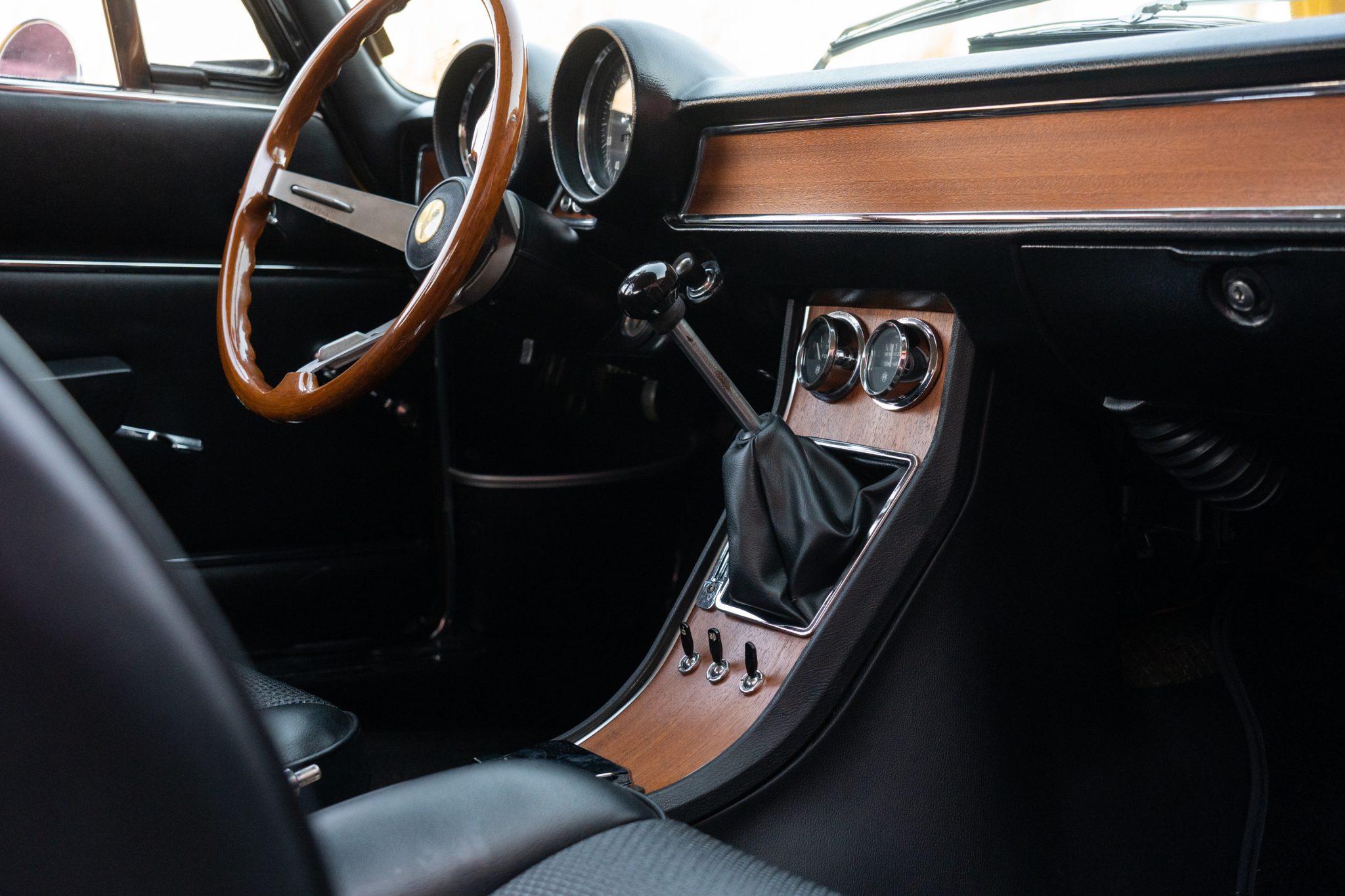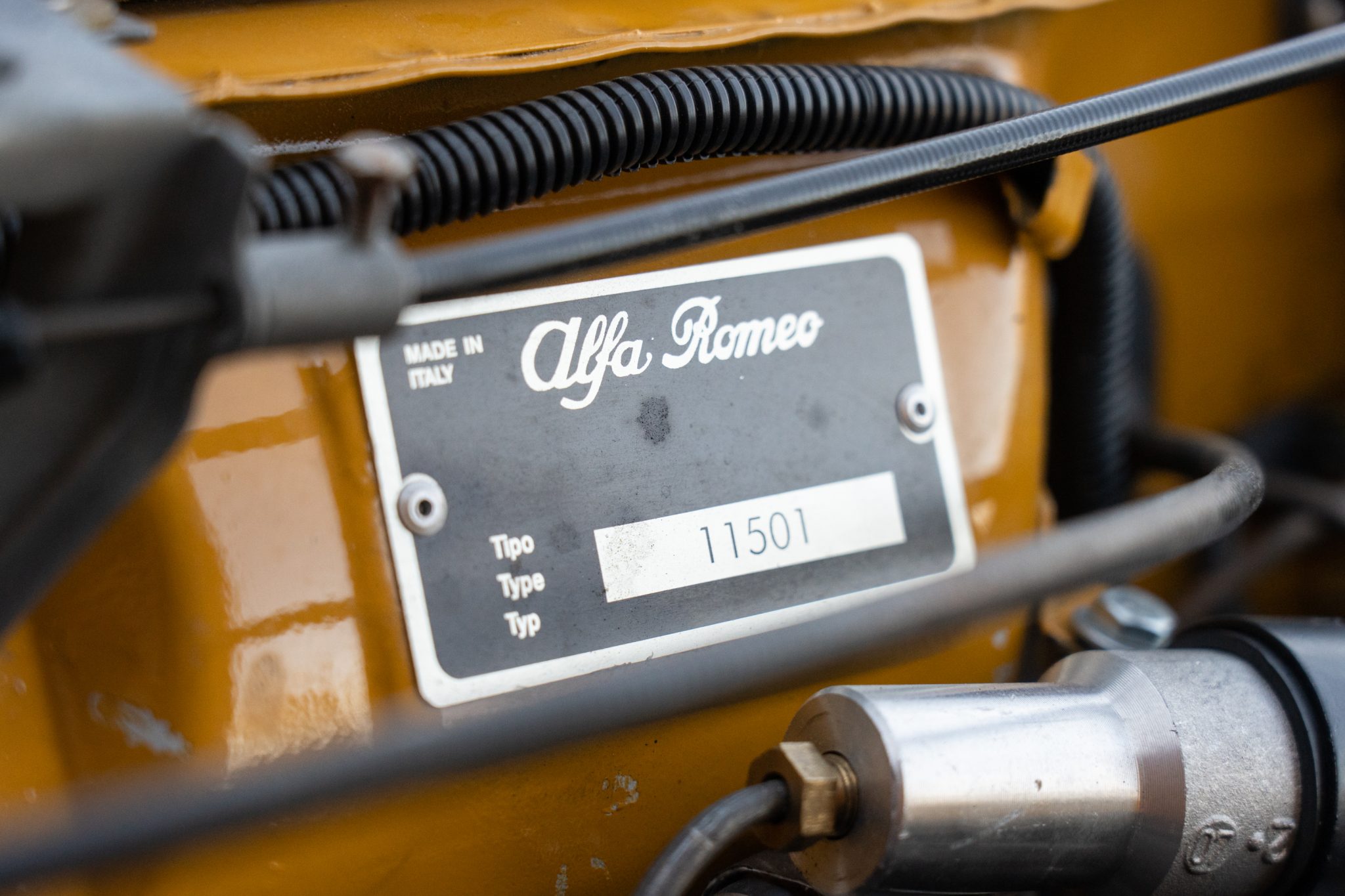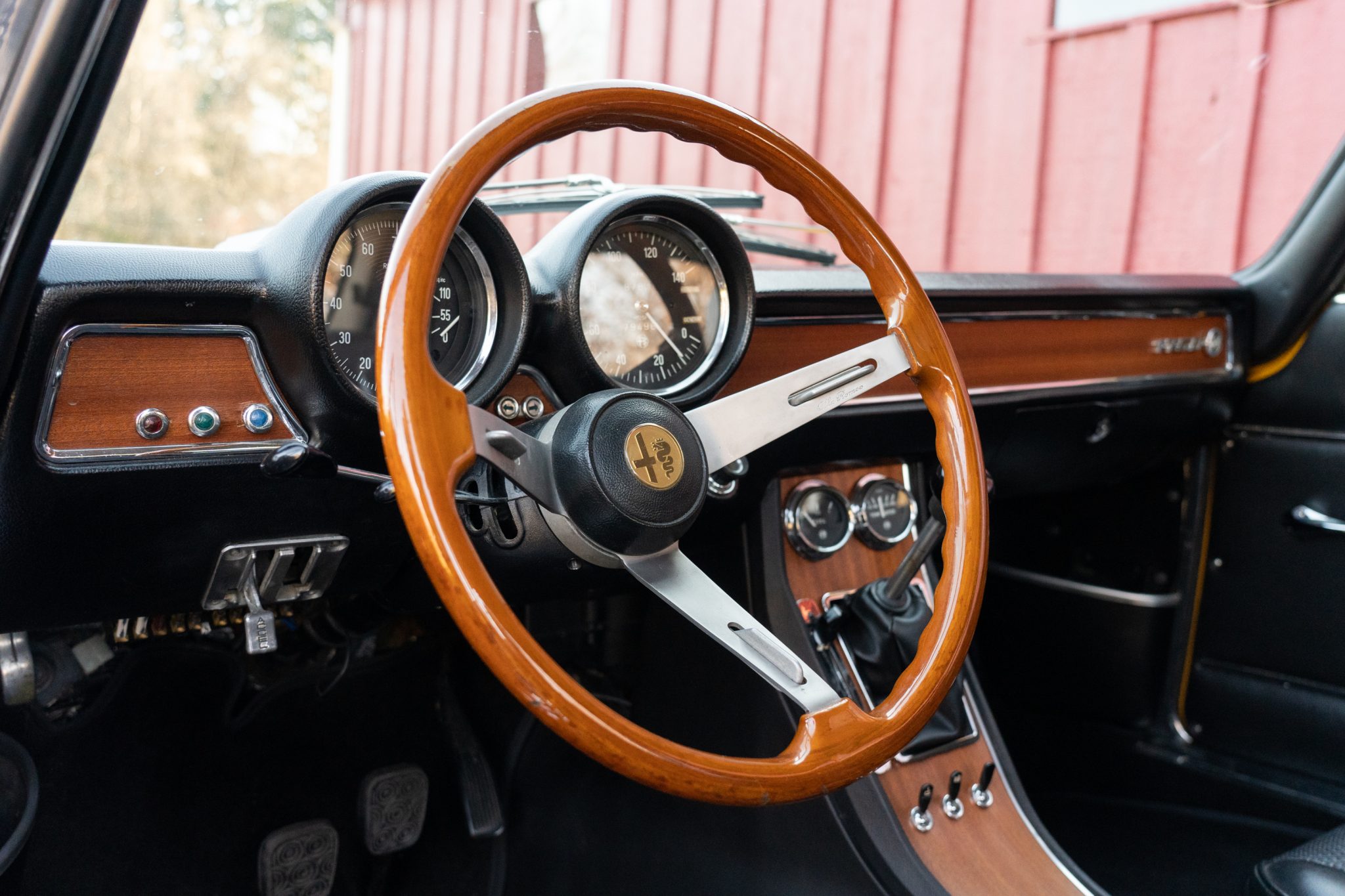 This 1969 Alfa Romeo GTV 1750 is finished in yellow over black upholstery and is powered by a 1,779cc twin-cam inline-four paired with a five-speed manual transmission. Equipment includes dual Weber carburetors, 14″ GTA-style wheels, “flying buttress” front seats, and Koni shocks paired with aftermarket springs. Updates performed during prior ownership included a repaint and partial interior refresh as well as rebuilds of engine and carburetors.