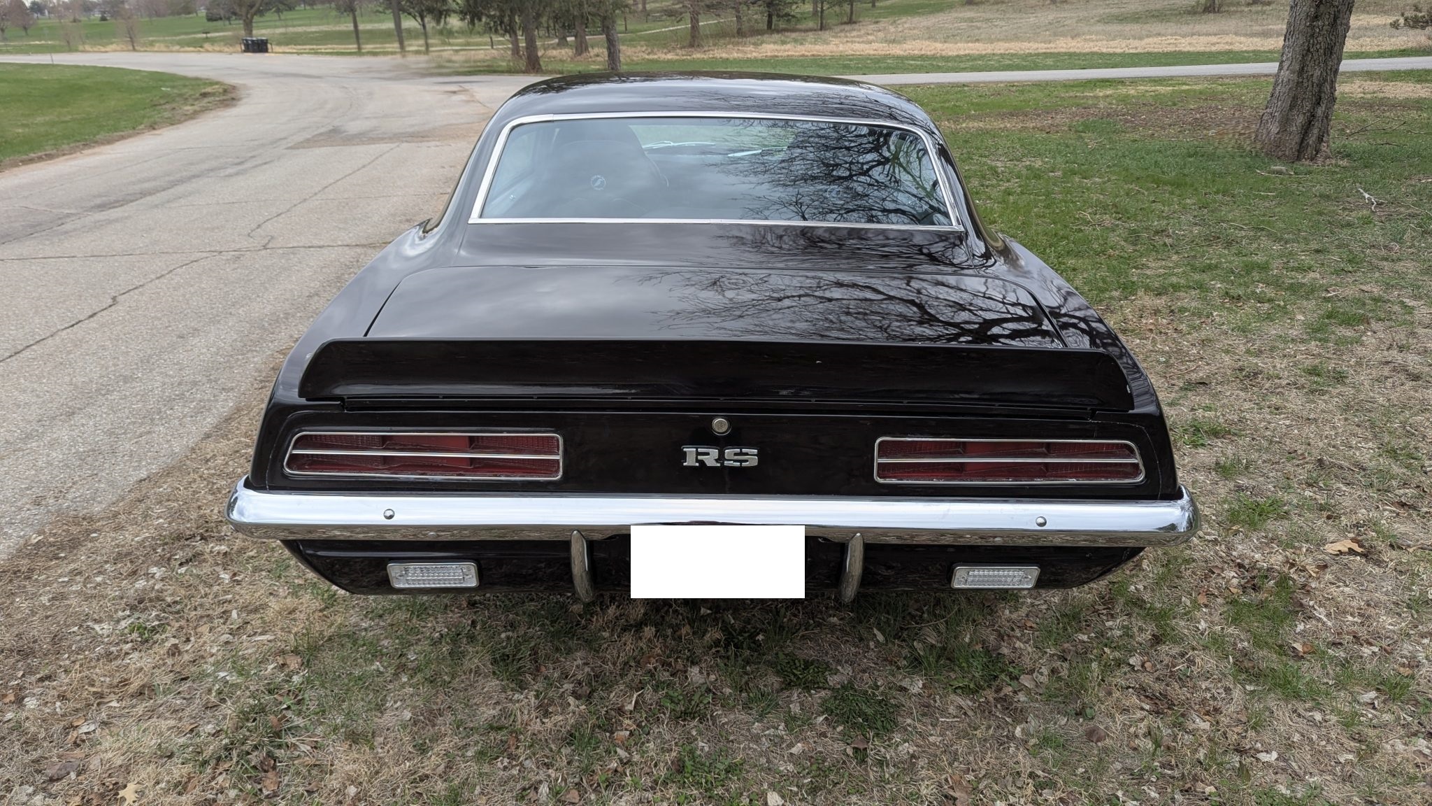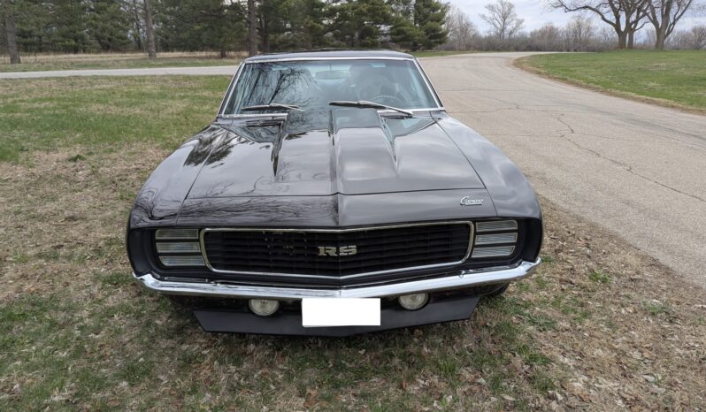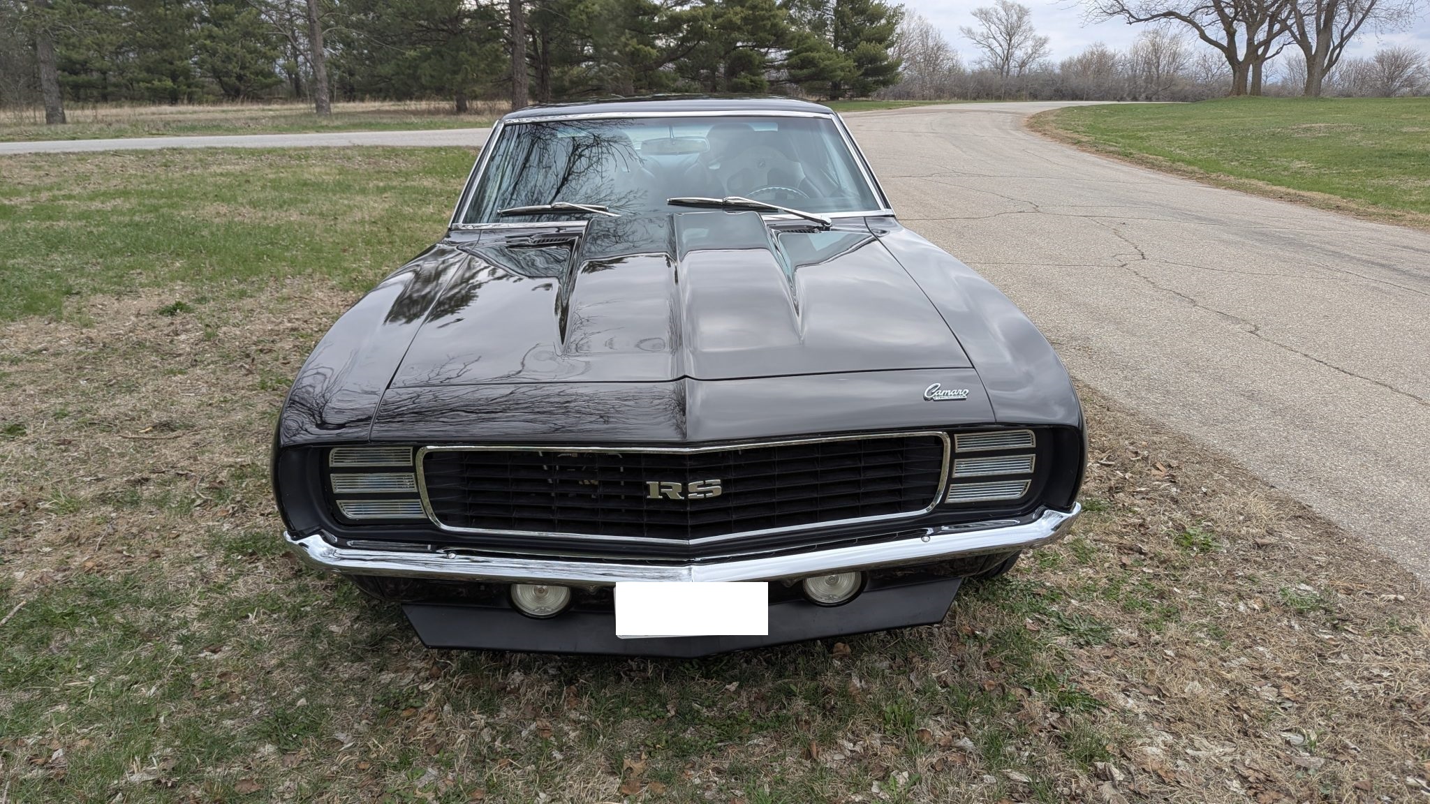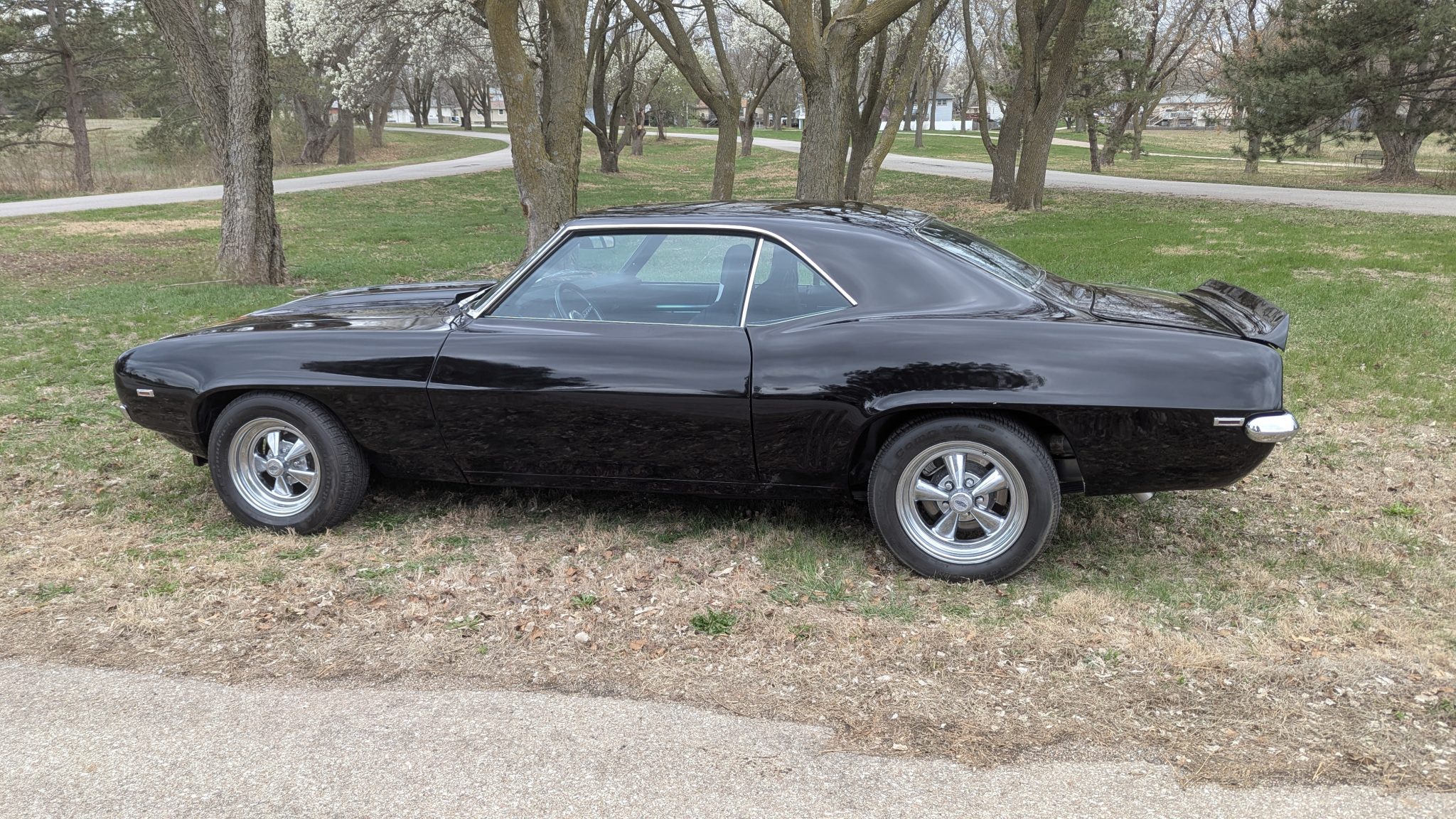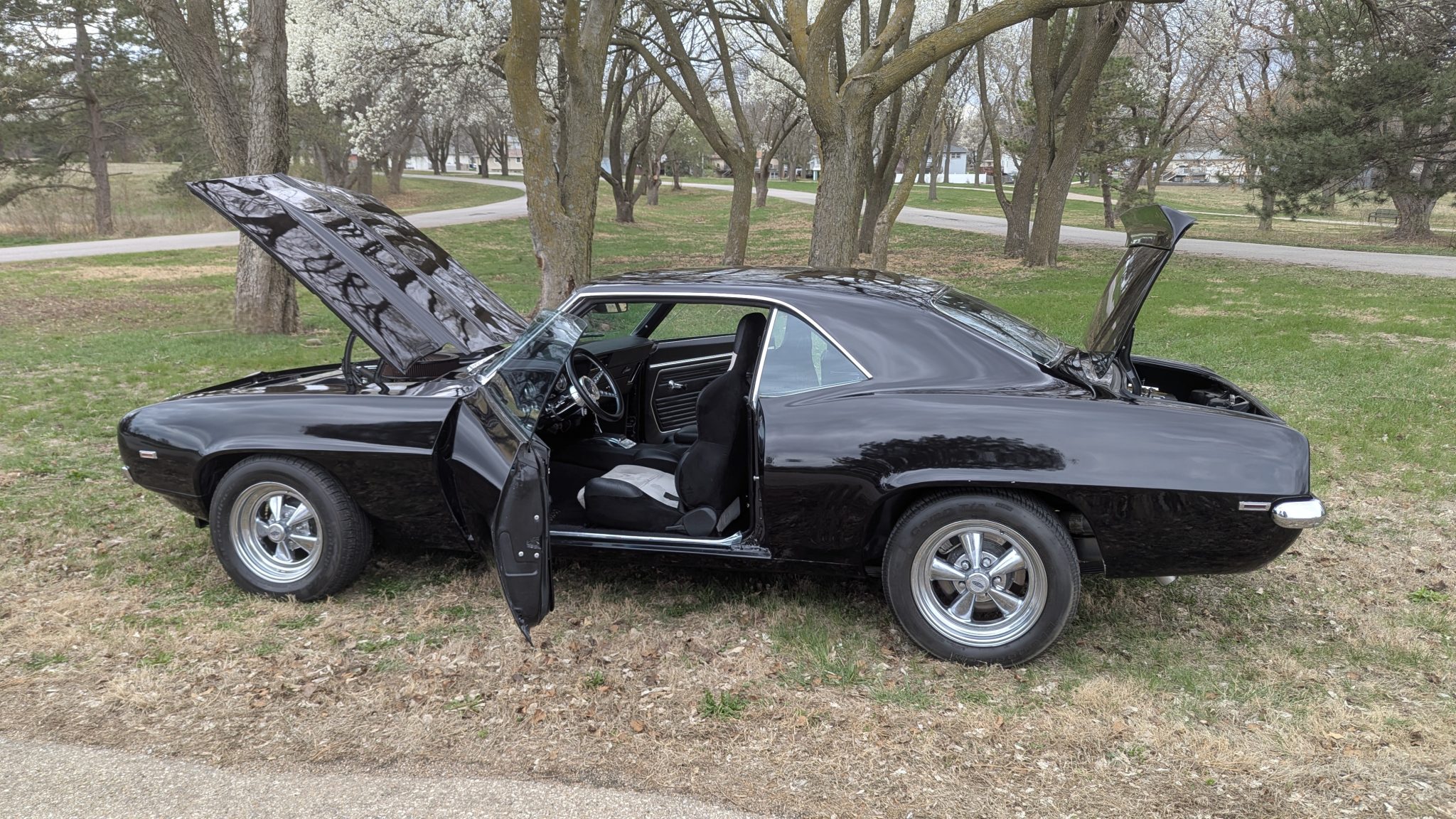 subsequent refurbishment work included a repaint in black as well as the installation of a 502ci V8 crate engine along with a TH400 three-speed automatic transmission and a Ford 9″ rear end with 4.11:1 gearing. Inside, Corbeau bolstered bucket seats are installed front and rear along with a full-length center console, Vintage Air climate control, a B&M shifter, and a Budnik steering wheel mounted to a tilting column. Additional modifications include an RS-style grille with Detroit Speed headlight cover motors, a cowl hood, shaved door handles, remote door poppers, power-assisted four-wheel disc brakes, and 15″ Cragar S/S wheels as well as a Painless Performance wiring kit, an aluminum radiator with electric fans, MSD ignition components, and Hooker exhaust headers.