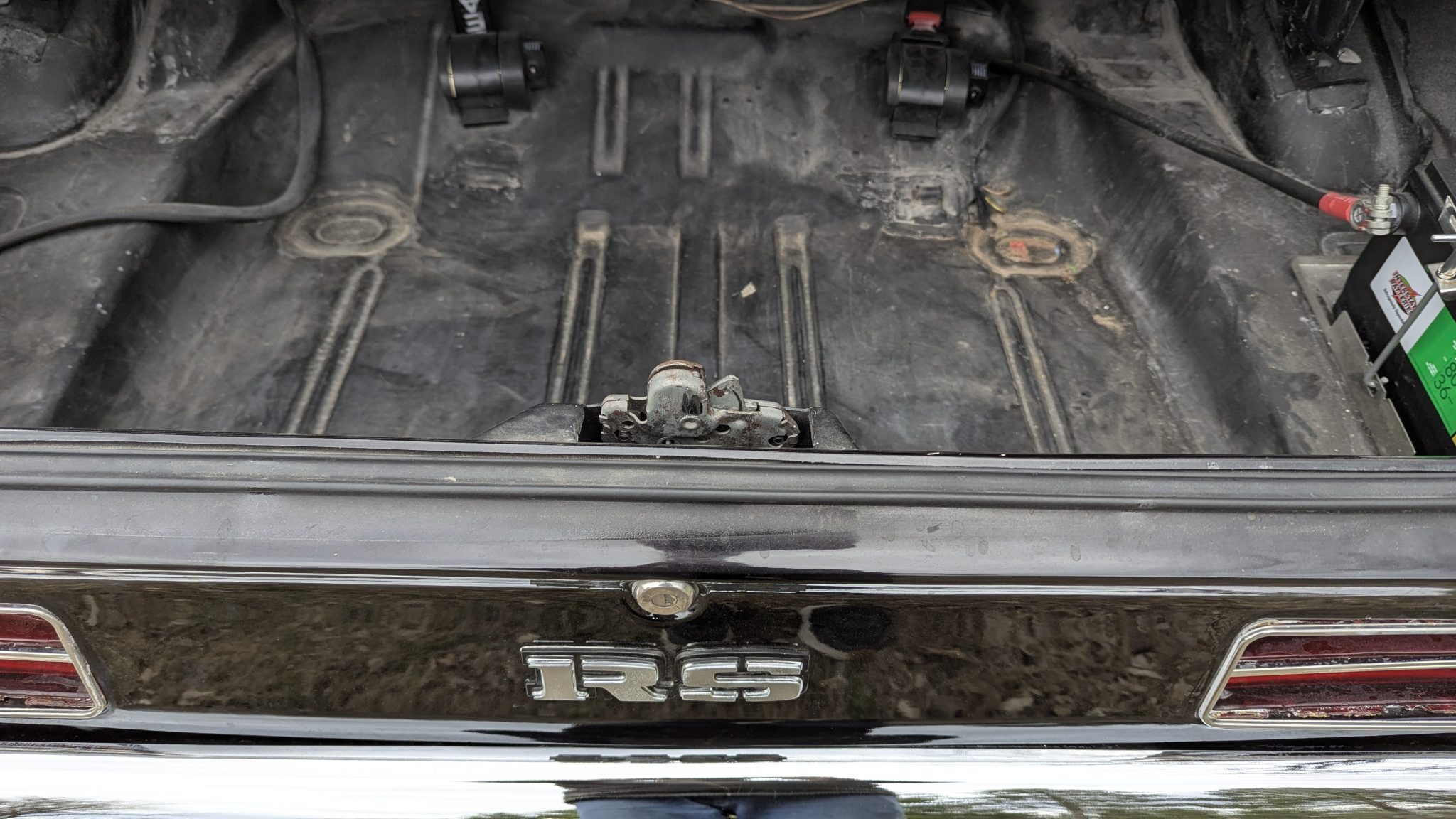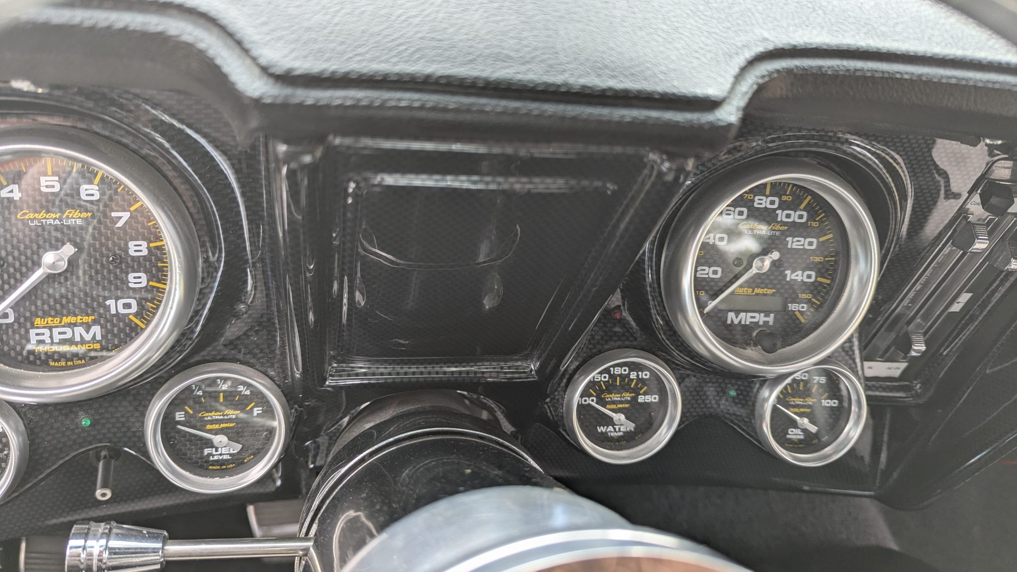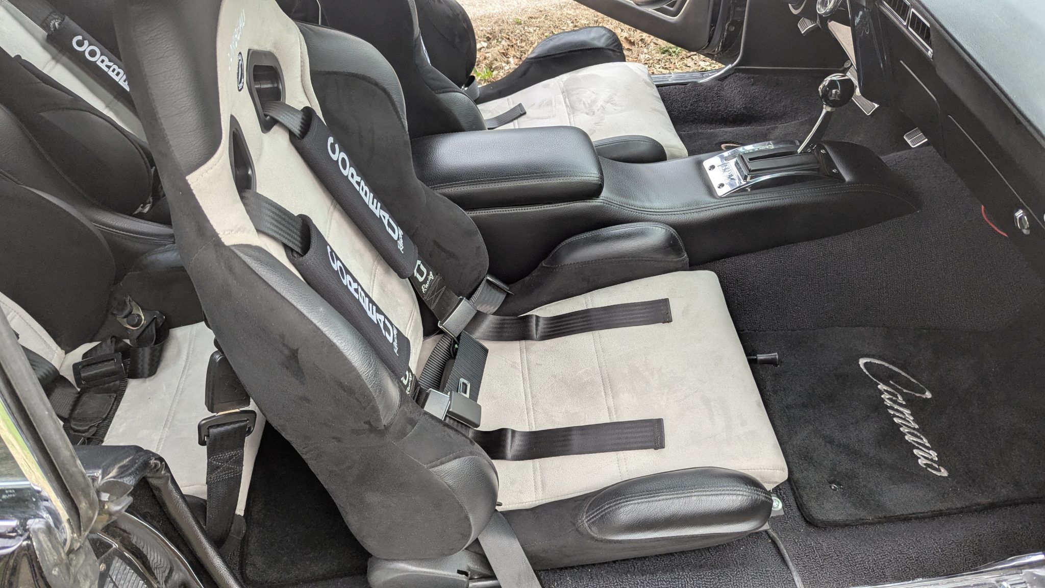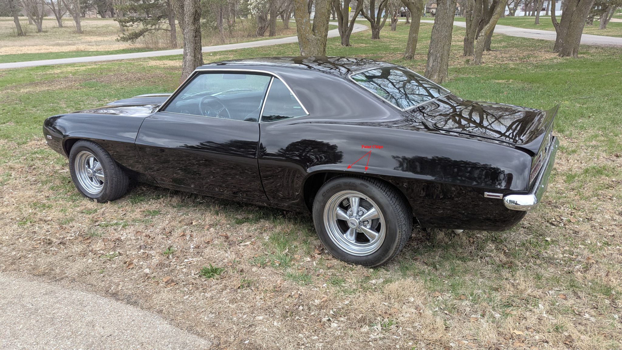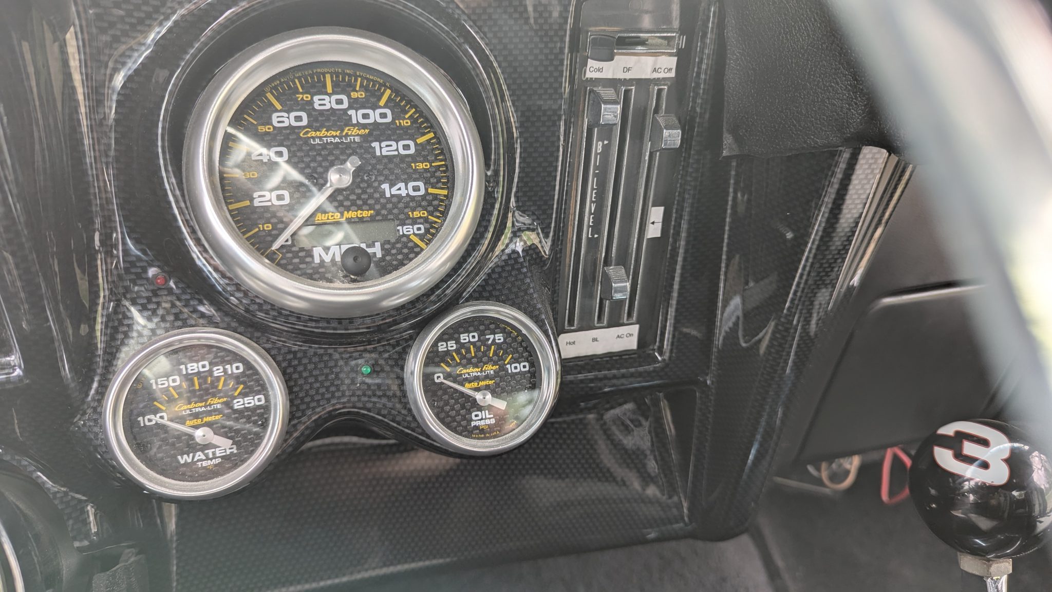 subsequent refurbishment work included a repaint in black as well as the installation of a 502ci V8 crate engine along with a TH400 three-speed automatic transmission and a Ford 9″ rear end with 4.11:1 gearing. Inside, Corbeau bolstered bucket seats are installed front and rear along with a full-length center console, Vintage Air climate control, a B&M shifter, and a Budnik steering wheel mounted to a tilting column. Additional modifications include an RS-style grille with Detroit Speed headlight cover motors, a cowl hood, shaved door handles, remote door poppers, power-assisted four-wheel disc brakes, and 15″ Cragar S/S wheels as well as a Painless Performance wiring kit, an aluminum radiator with electric fans, MSD ignition components, and Hooker exhaust headers.