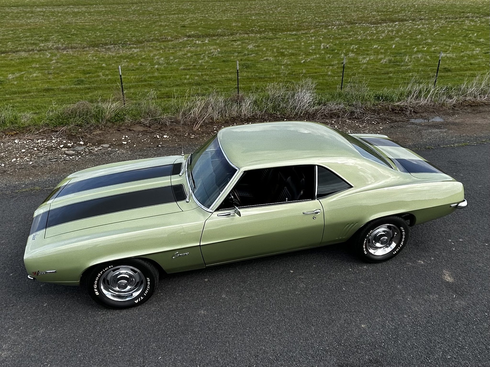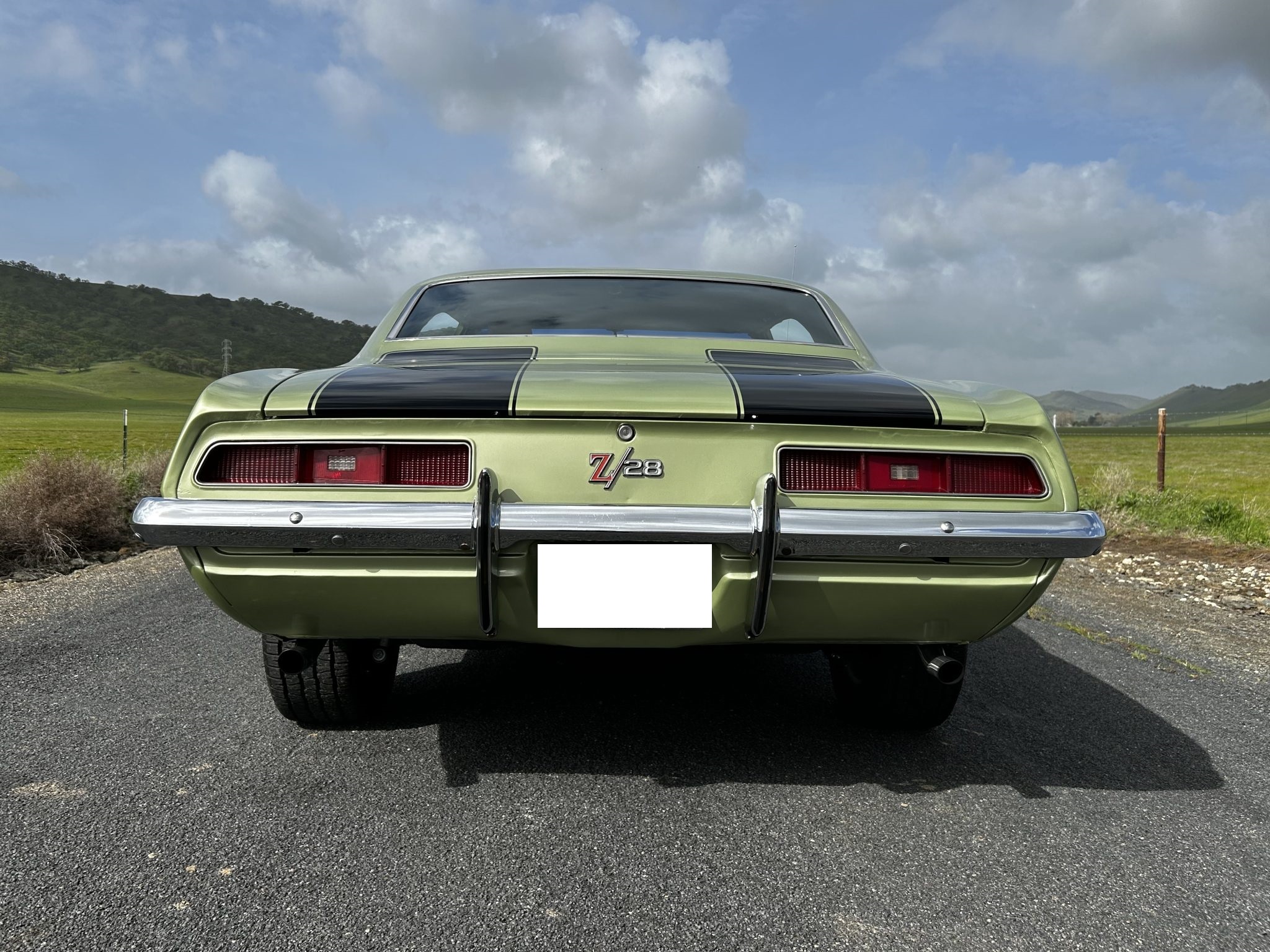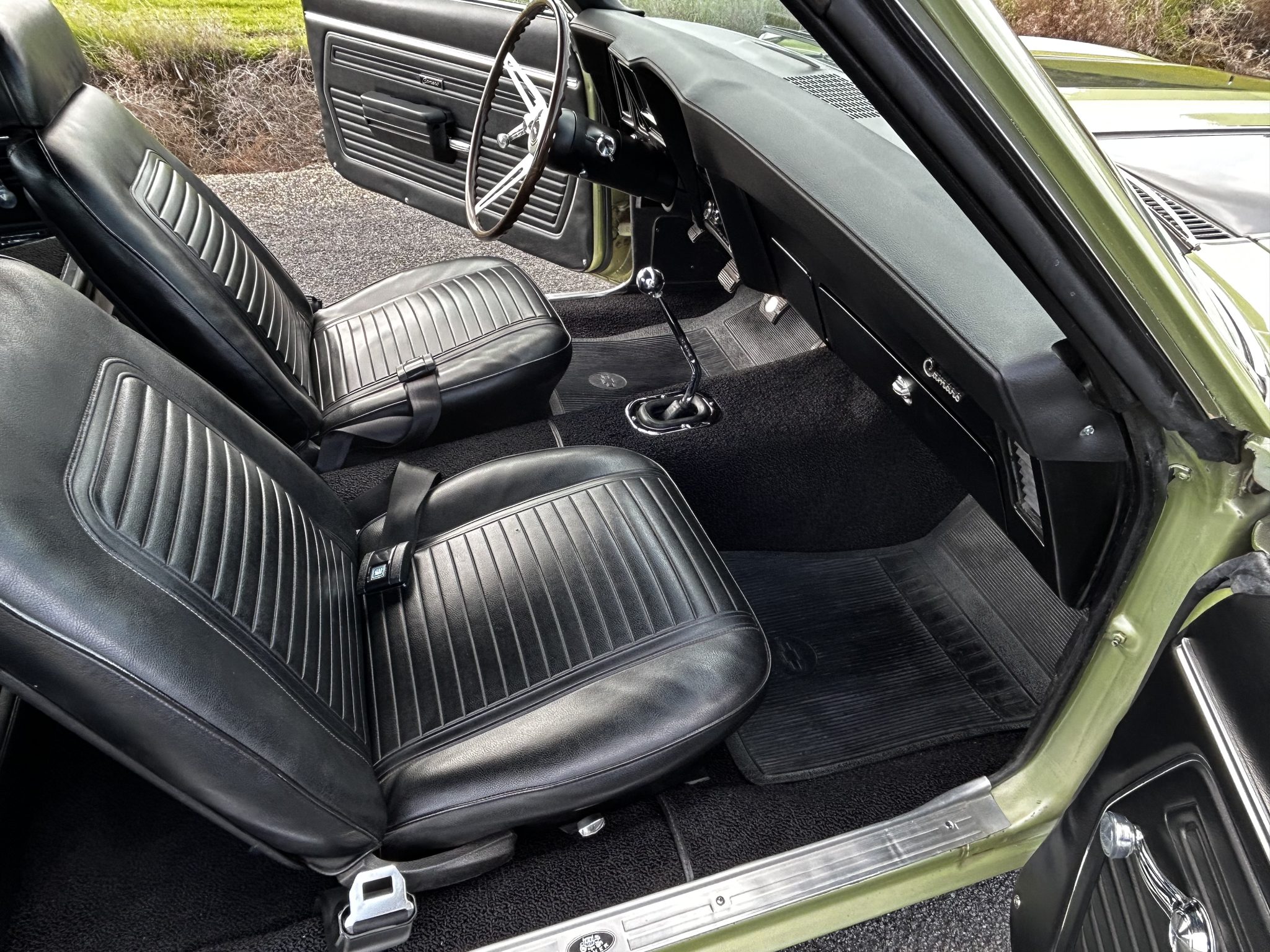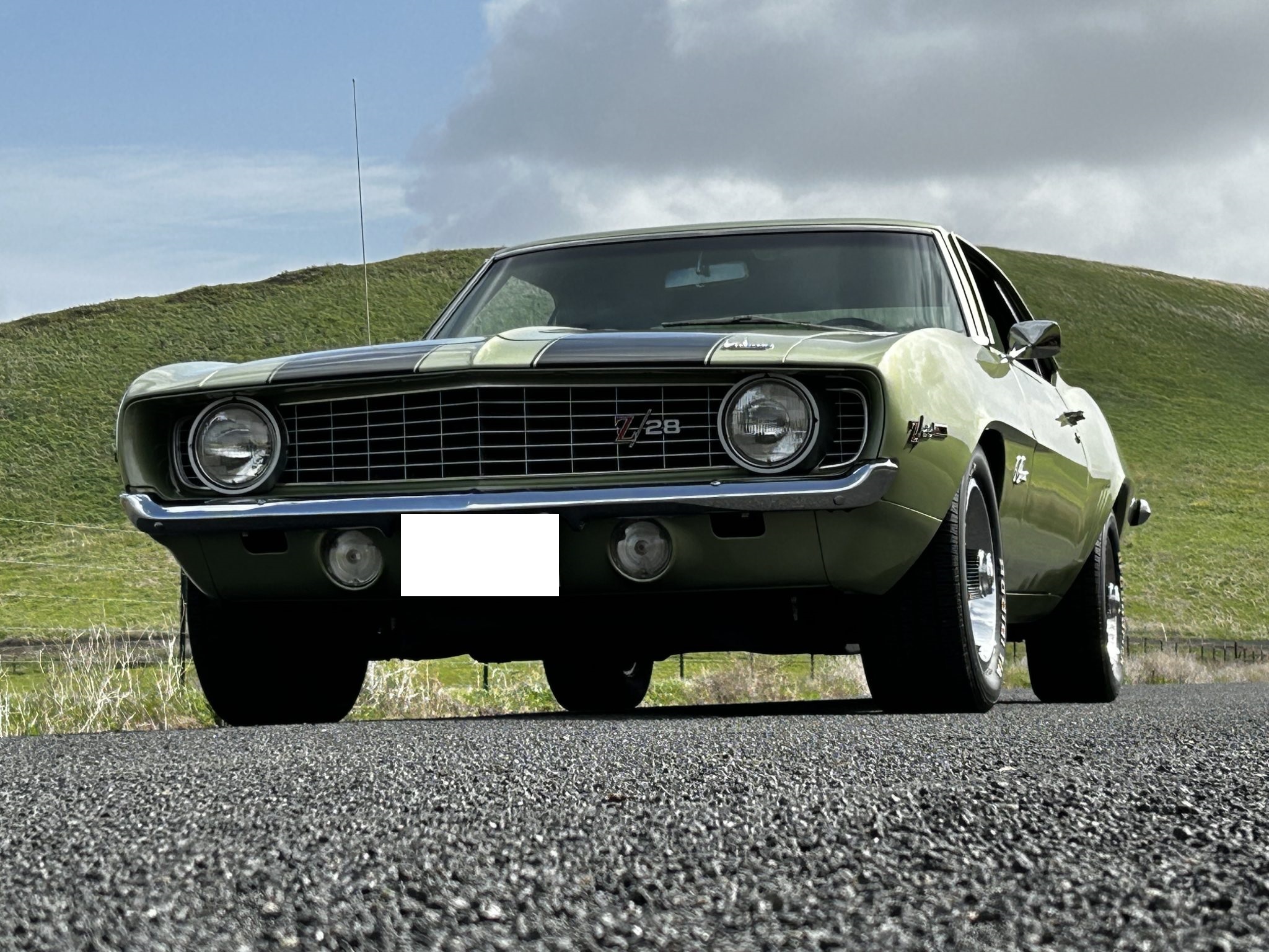 This 1969 Chevrolet Camaro is equipped with a Z/28-specification 302ci V8 that was rebuilt along with the replacement Muncie four-speed manual transmission in 2018, and the car was refinished in Frost Green with black stripes in 2013. The car wears Z/28 badging and is equipped with a 12-bolt rear axle housing a Positraction differential as well as a Pertronix distributor, a Holley four-barrel carburetor, adjustable front coilovers, power-assisted front disc brakes, and 15″ Rally wheels. The interior is trimmed in black and features front bucket seats, a Hurst shifter, and an AM radio.