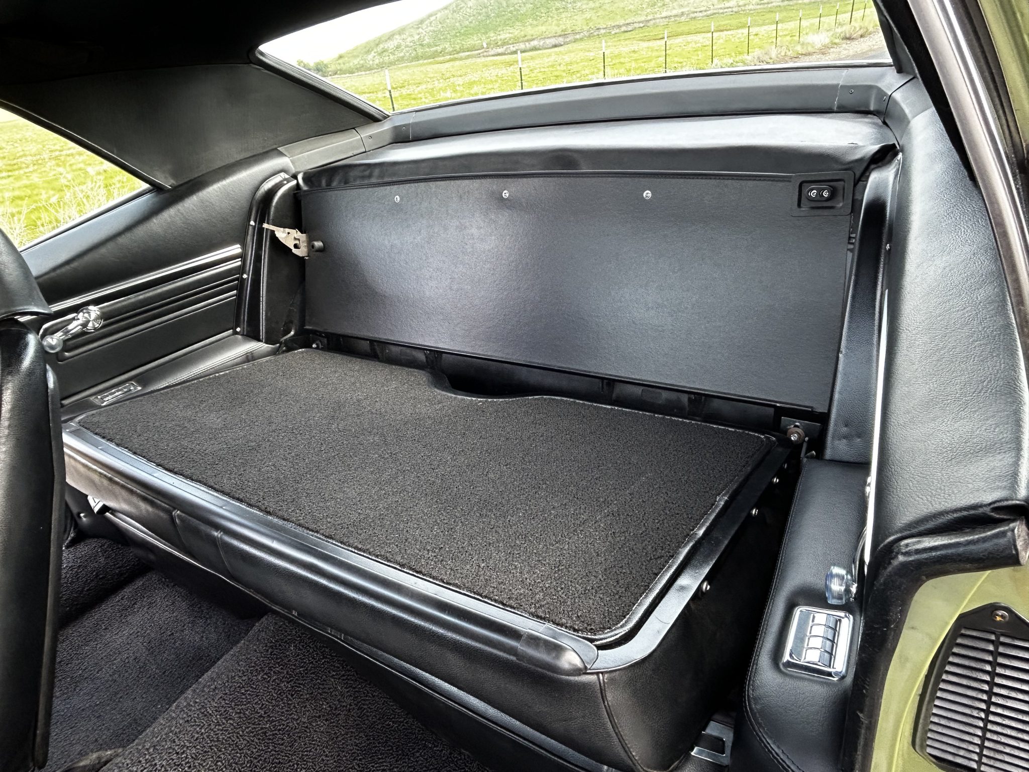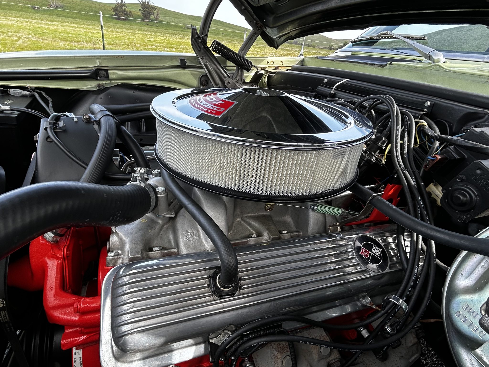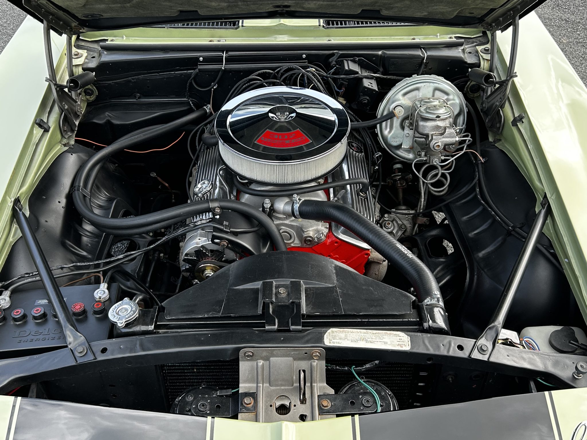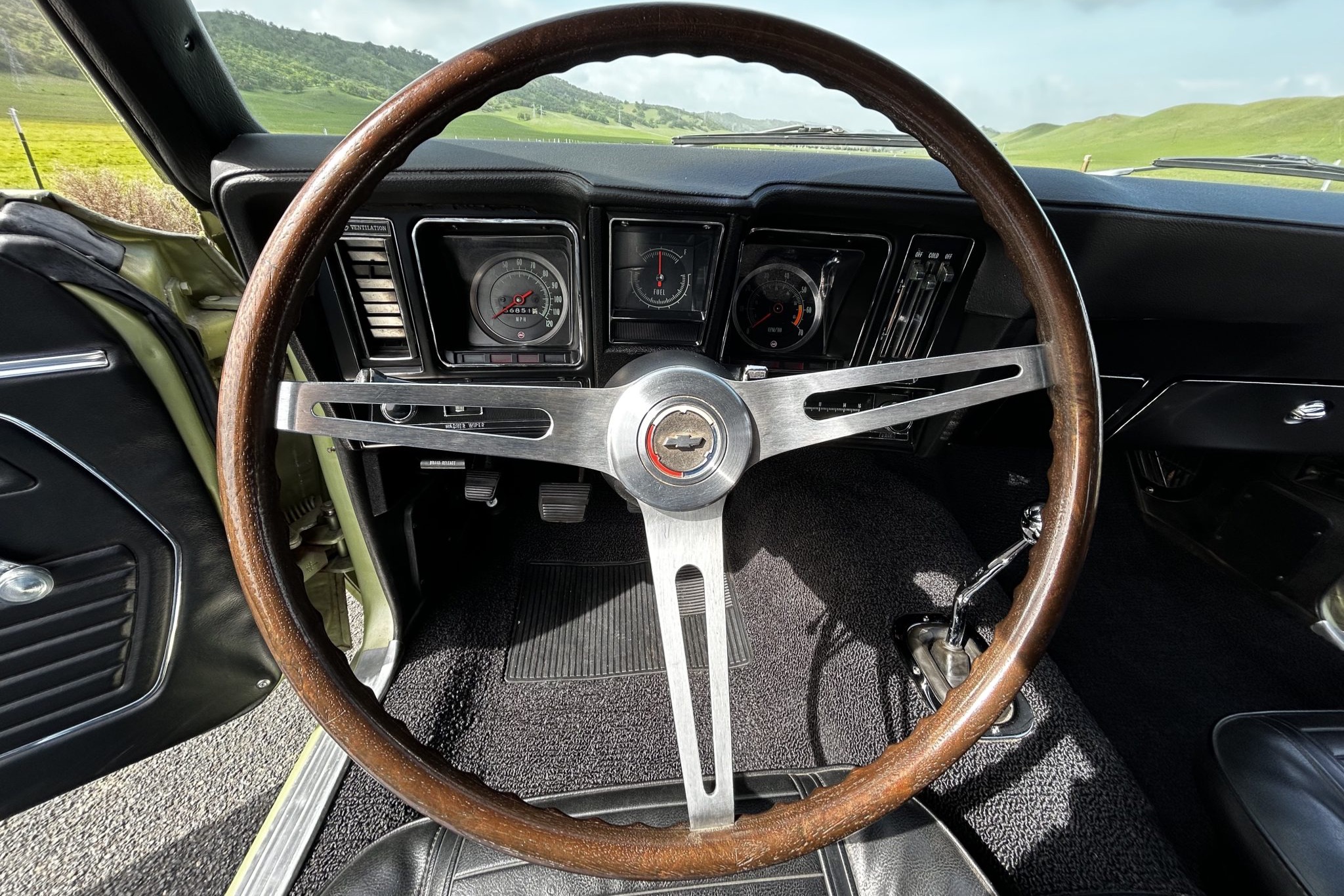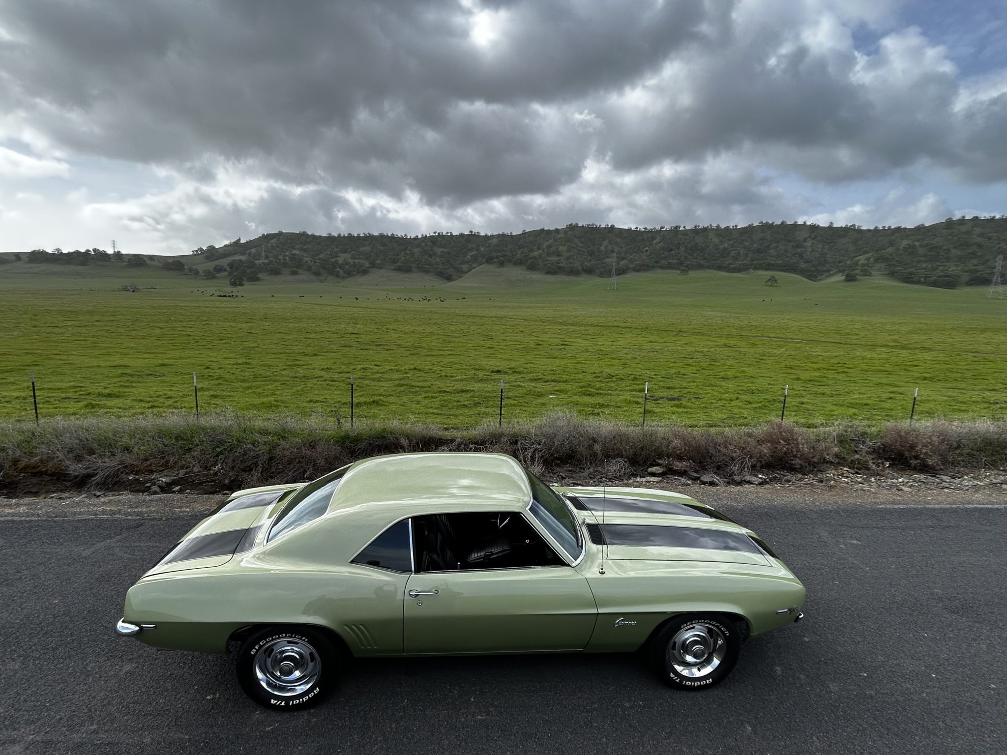 This 1969 Chevrolet Camaro is equipped with a Z/28-specification 302ci V8 that was rebuilt along with the replacement Muncie four-speed manual transmission in 2018, and the car was refinished in Frost Green with black stripes in 2013. The car wears Z/28 badging and is equipped with a 12-bolt rear axle housing a Positraction differential as well as a Pertronix distributor, a Holley four-barrel carburetor, adjustable front coilovers, power-assisted front disc brakes, and 15″ Rally wheels. The interior is trimmed in black and features front bucket seats, a Hurst shifter, and an AM radio.