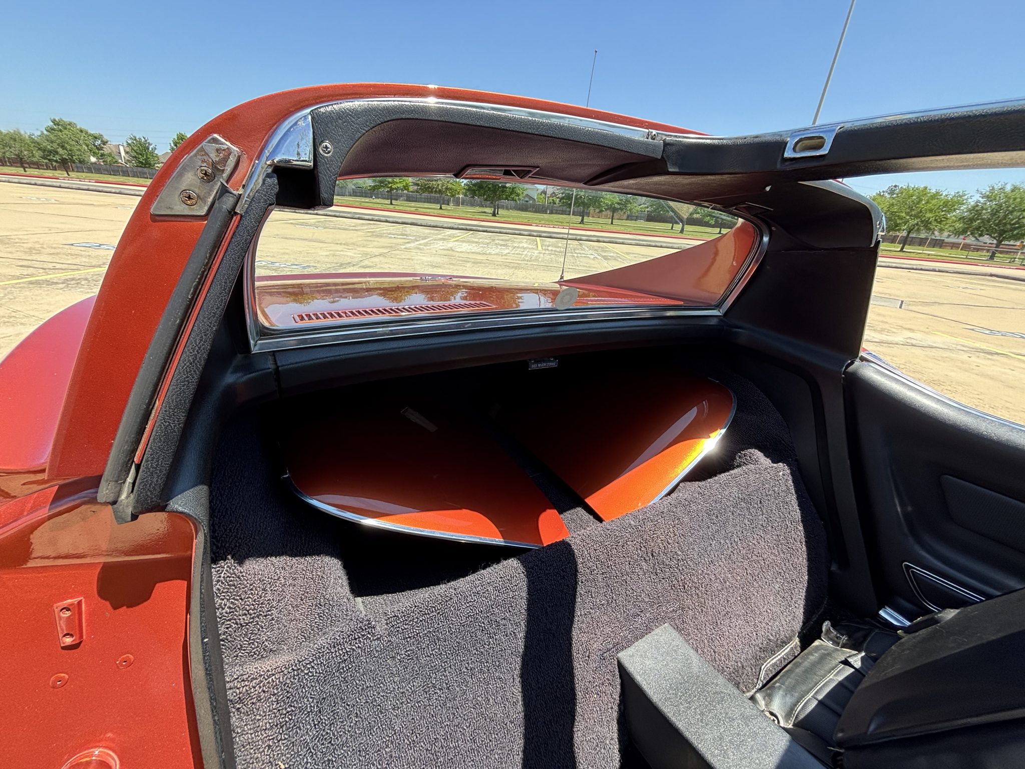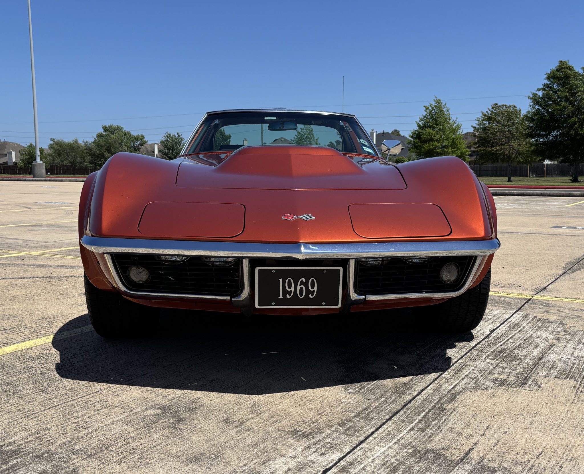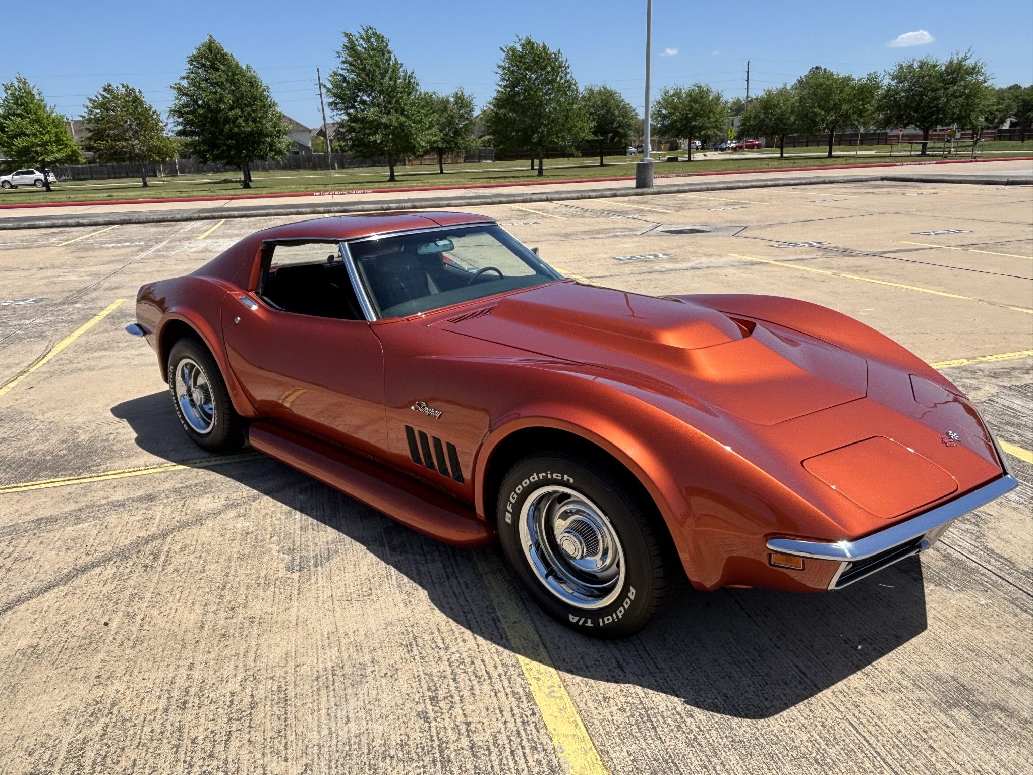 This 1969 Chevrolet Corvette coupe is powered by a 350ci L46 V8 paired with a four-speed manual transmission. Additional equipment includes a domed hood, removable roof panels, 15″ Rally wheels, four-wheel disc brakes, an AM/FM radio, chrome bumpers, and hideaway headlights.