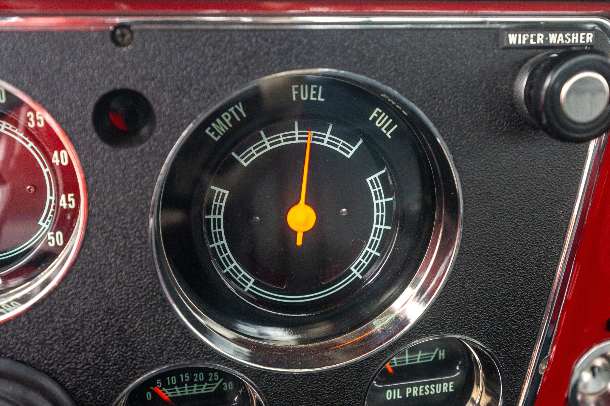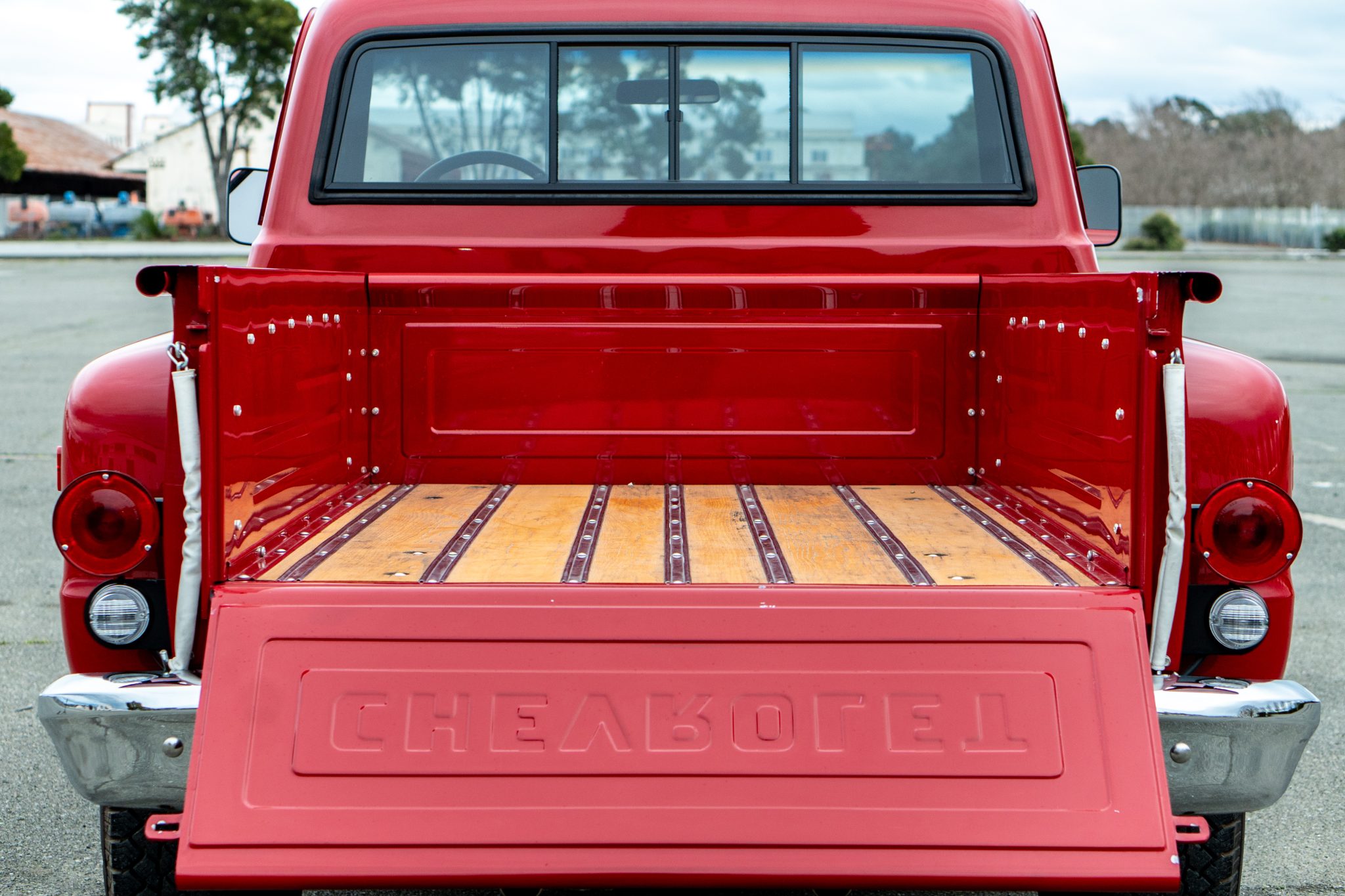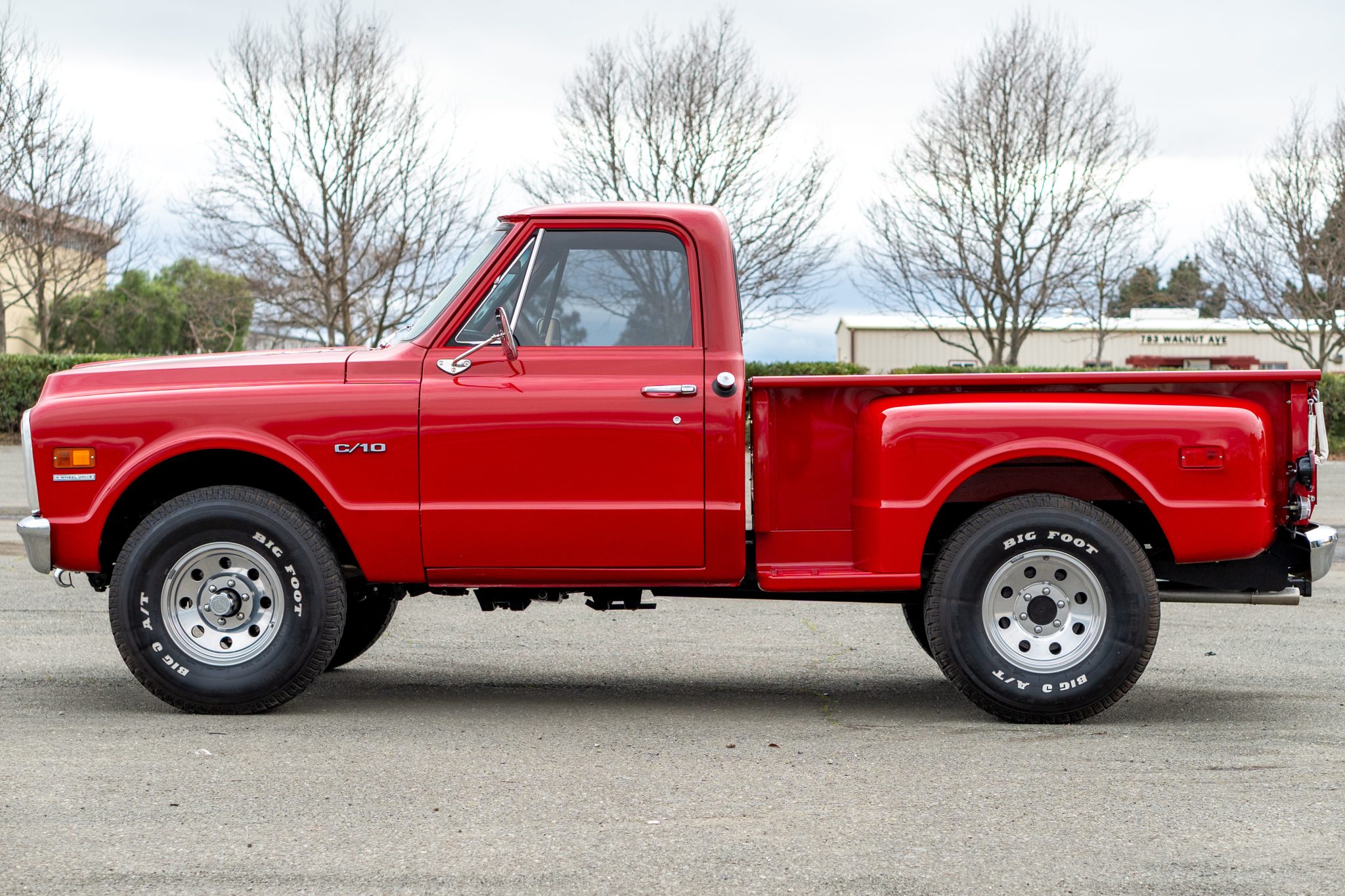 This 1969 Chevrolet K10 Custom 4×4 Stepside pickup was repainted in red and subsequently refurbished. Work is said to have involved replacing the carburetor and overhauling the transfer case in addition to reupholstering the bench seat in black vinyl. The truck is further equipped with a four-speed manual transmission, 16″ alloy wheels, front disc brakes, power steering, a receiver hitch, a sliding rear window, and a Bluetooth-capable stereo.
