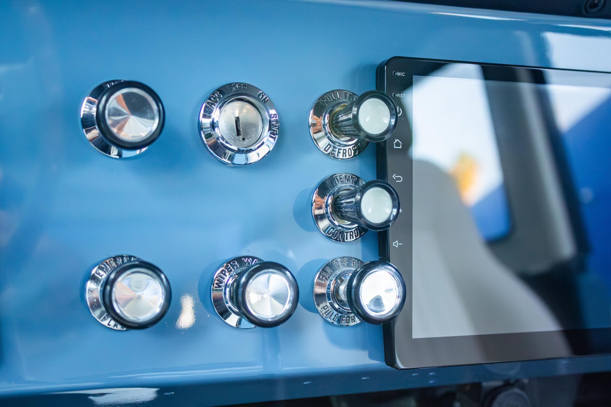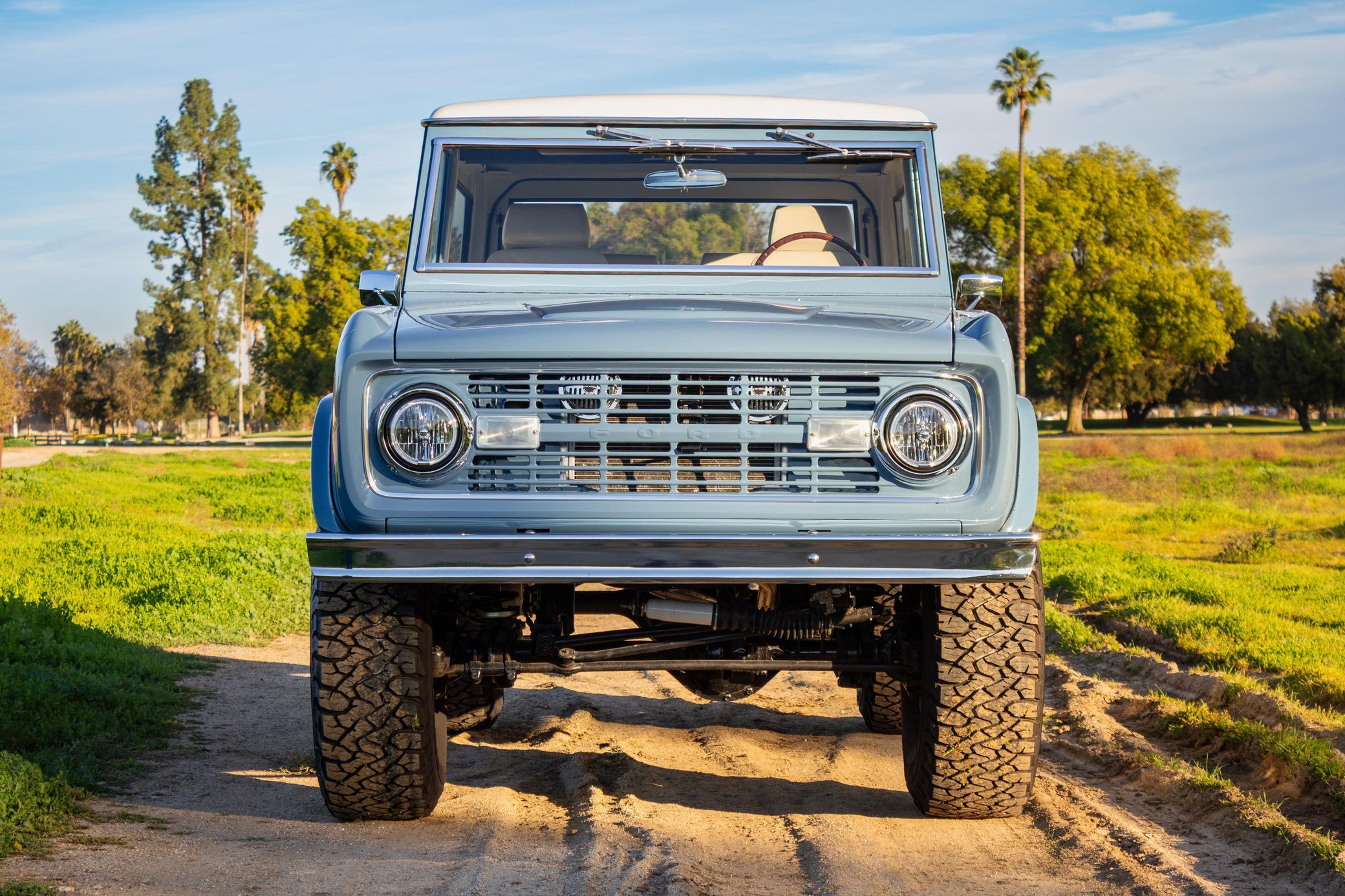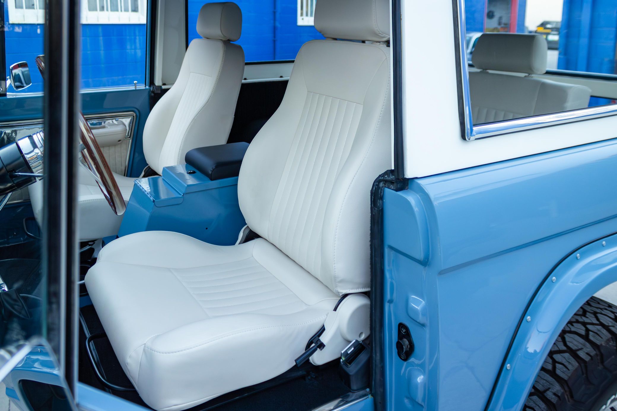 It boasts a 302-cubic-inch V8, a 3-speed manual transmission, and 4-wheel drive. It's been refinished in gorgeous color called China Blue and also touts some great features – including a removable hardtop, 16-inch American Racing wheels, side steps, and a touchscreen infotainment system. Power comes from a 302-cubic-inch V8, rated at about 205 horsepower and 300 lb-ft of torque. Output is sent to the rear or all four wheels via a 3-speed manual transmission and a 2-speed transfer case.