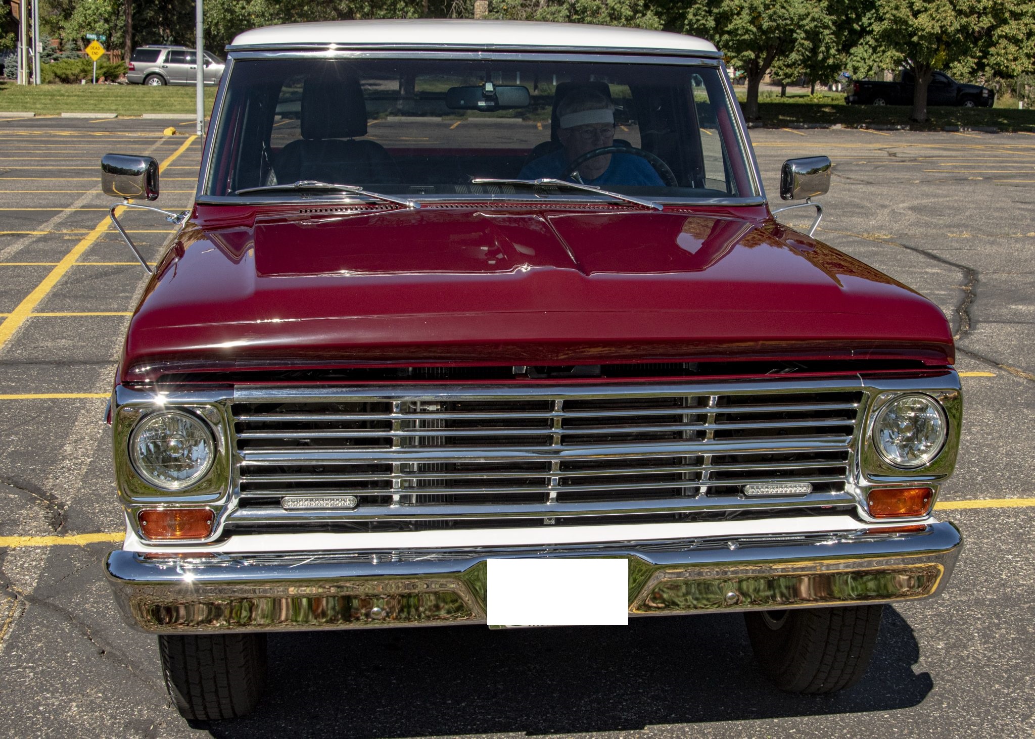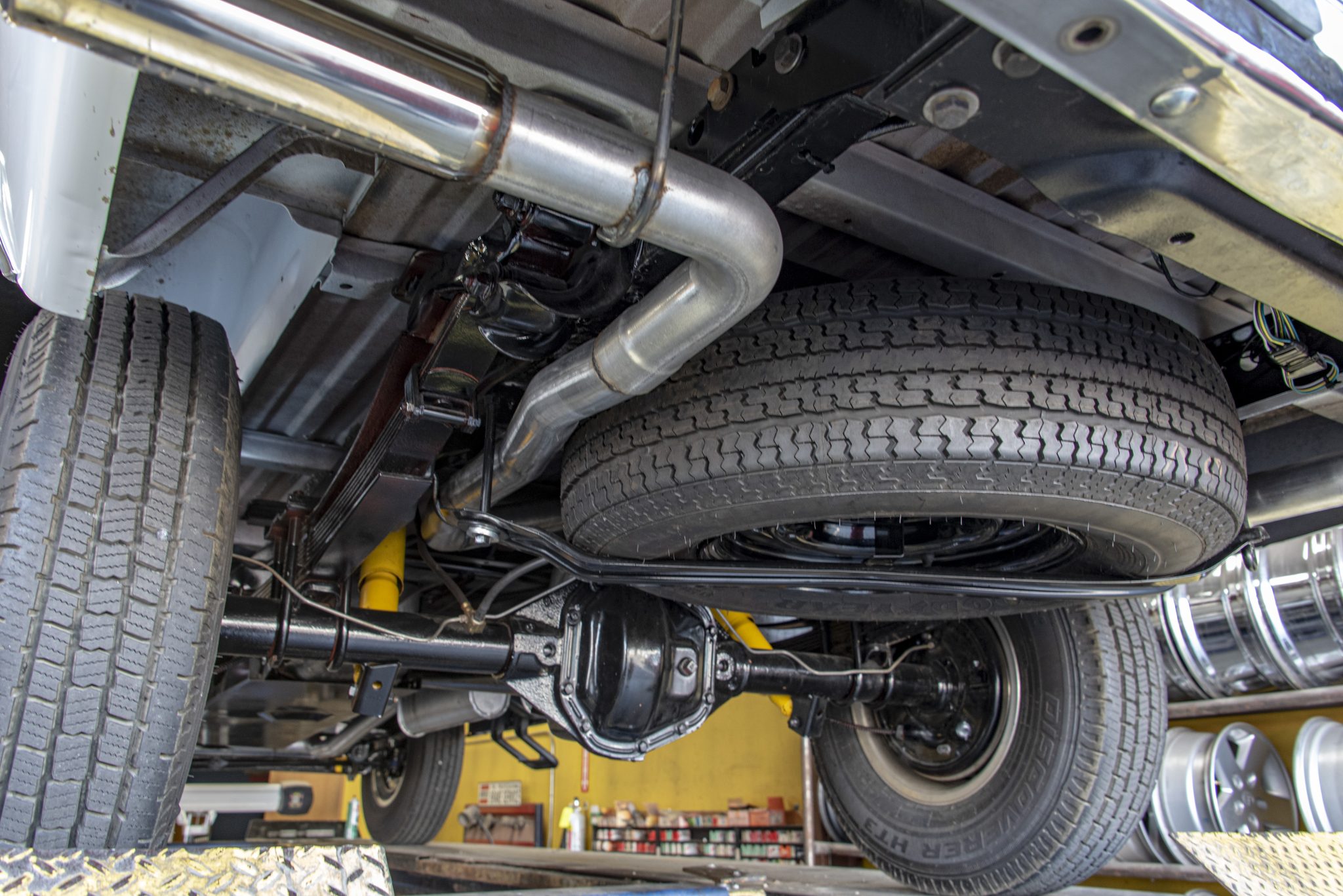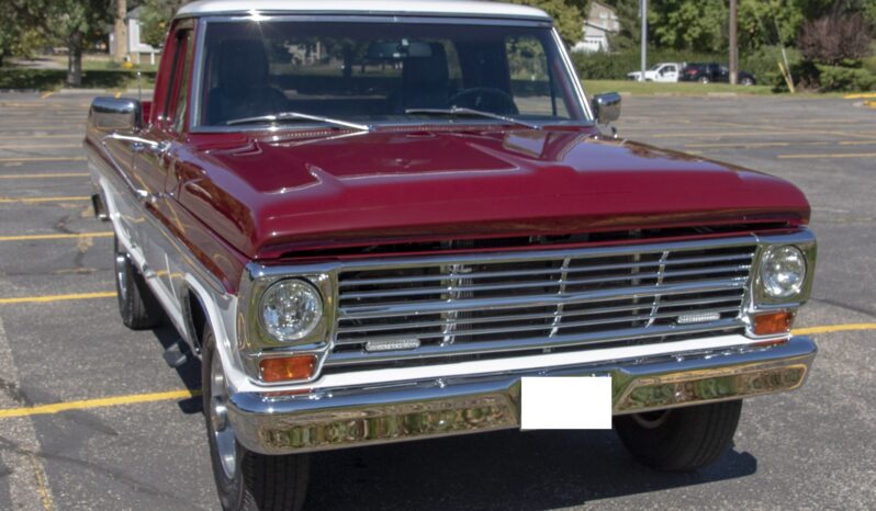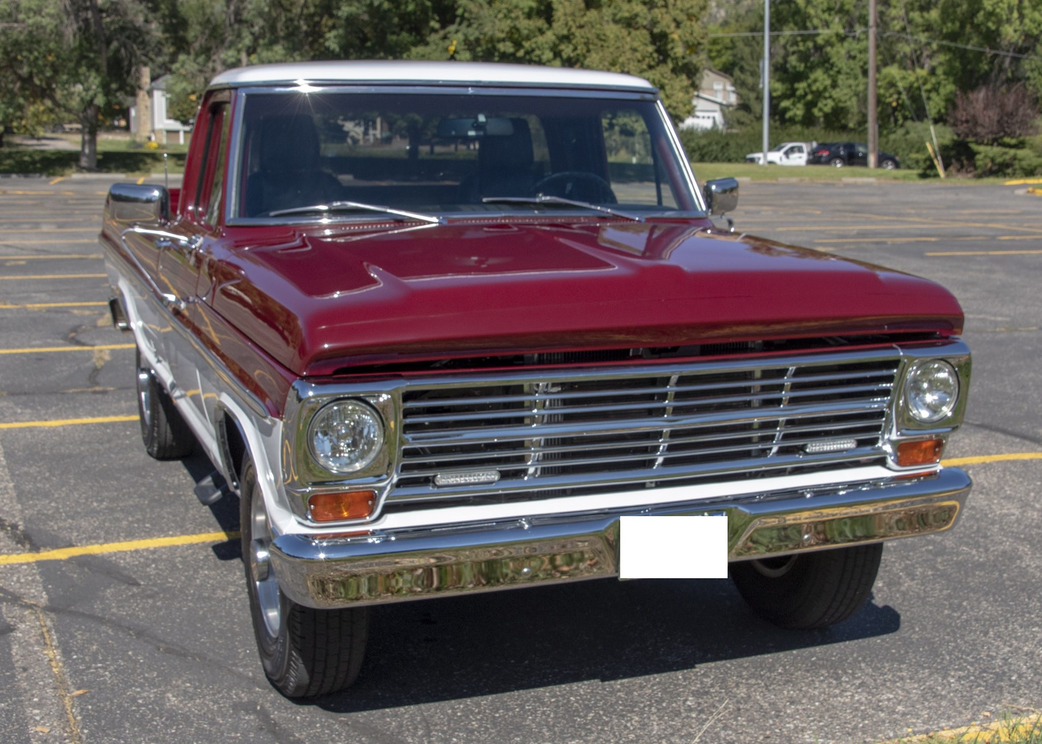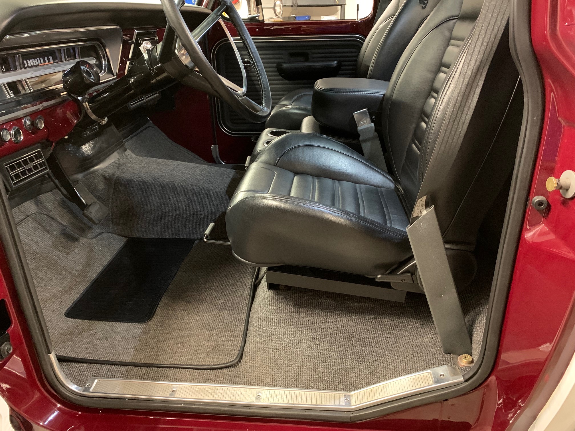 was the subject of a multi-year refurbishment that included repainting the body in white and maroon in addition to installing a 390ci V8 paired with a rebuilt C6 three-speed automatic transmission. The truck rides on 16″ Western wheels and is further equipped with a Holley carburetor, a Pertronix distributor, an aluminum radiator, a dual exhaust system, and power steering and brakes. The interior houses TMI bucket seats trimmed in black vinyl and are accompanied by Vintage Air Climate Control, a center console, a Pioneer head unit, a rearview camera display, and power windows and door locks