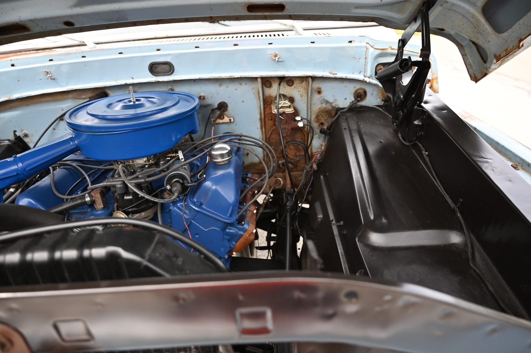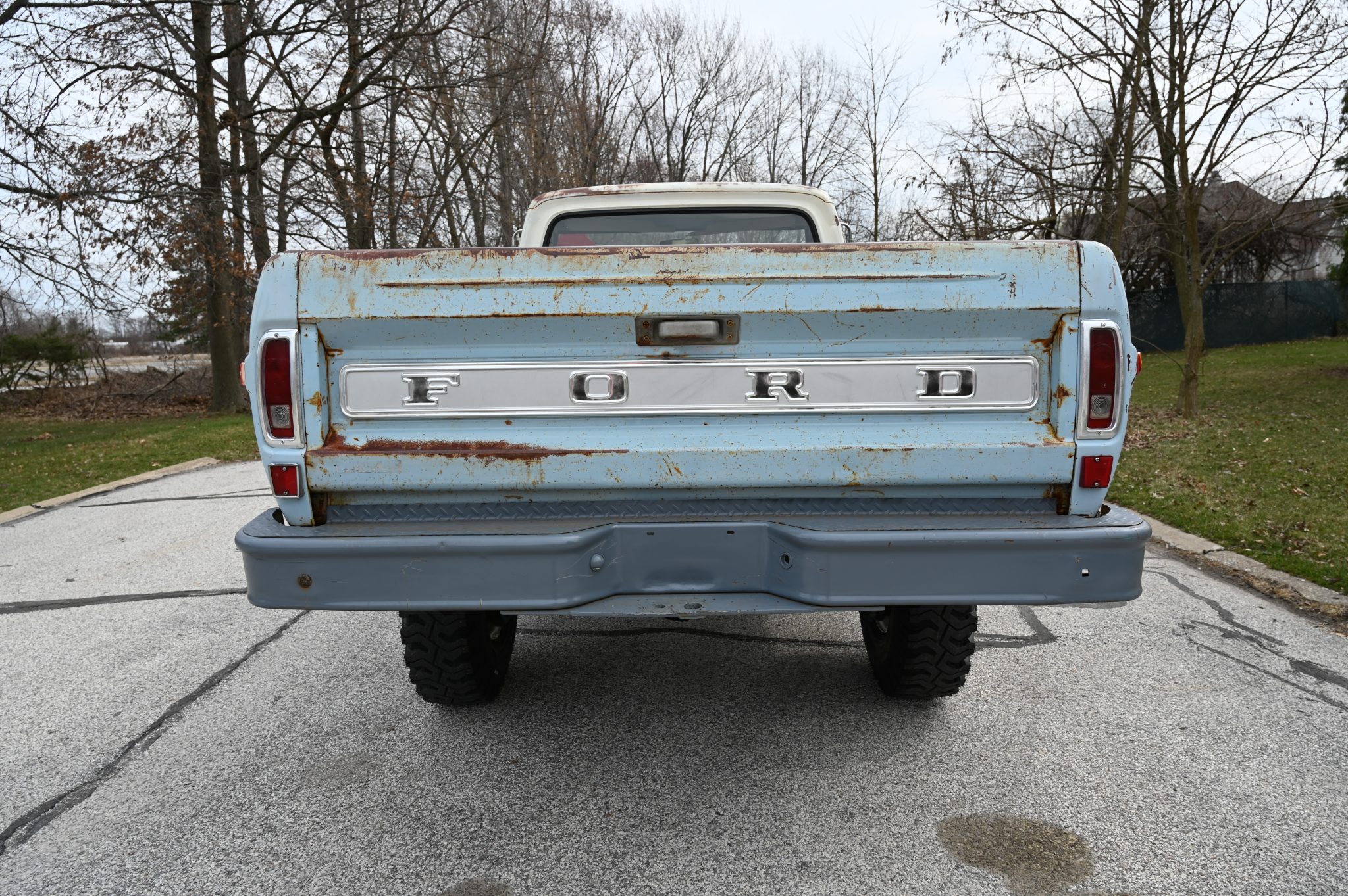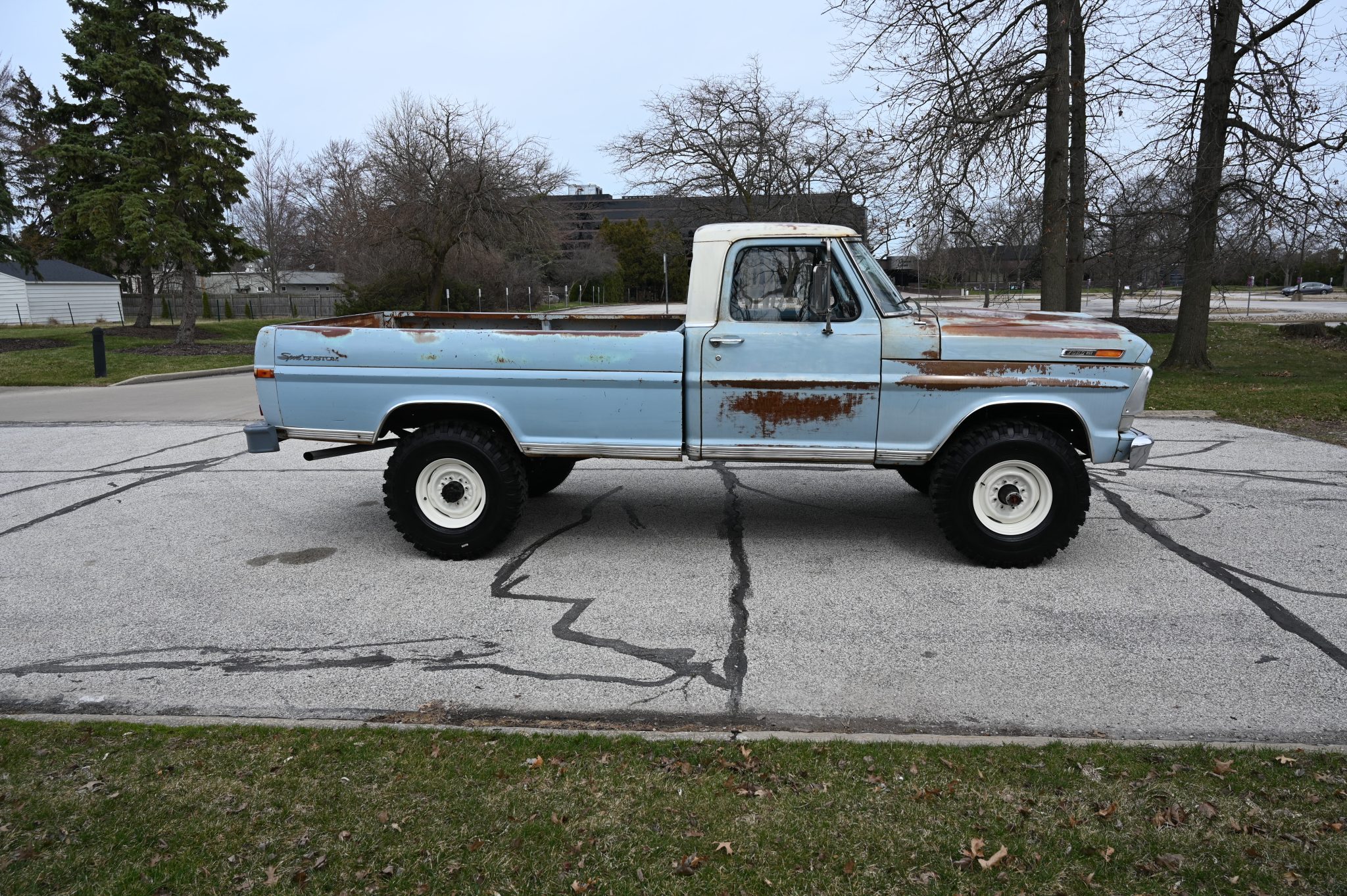 This 1969 Ford F-250 4×4 four-speed was re-bodied with an F-100 Sport Custom refinished its frame during the swap. Its 360ci V8 was also refurbished and the cab was refreshed with a replacement bench and floor cover. Other work involved replacing the exhaust system along with the wheels and tires.