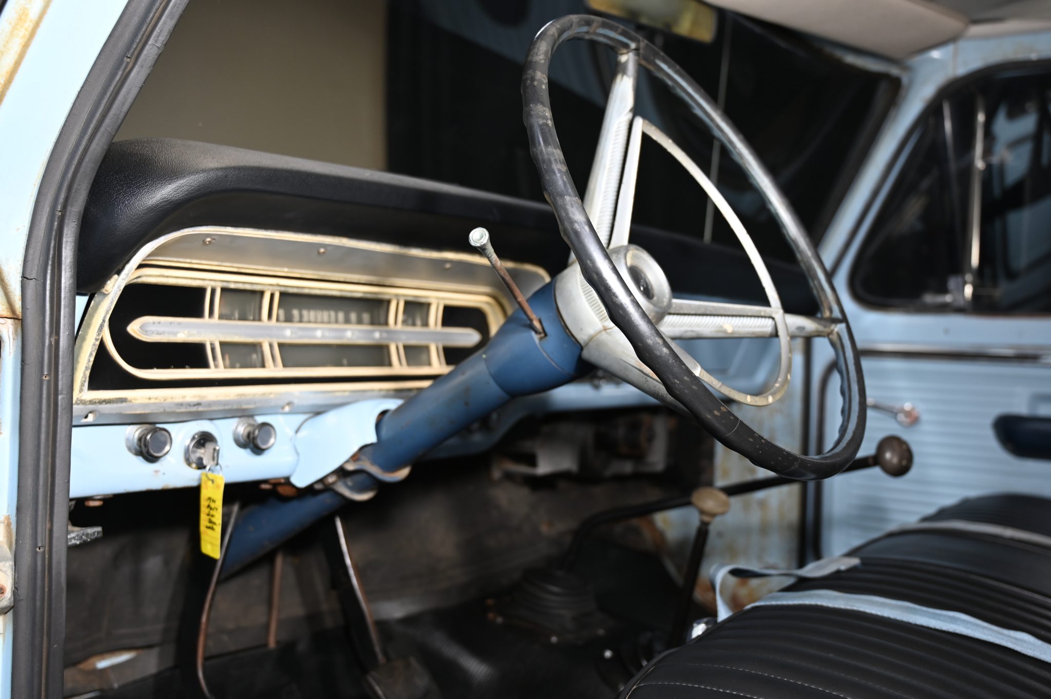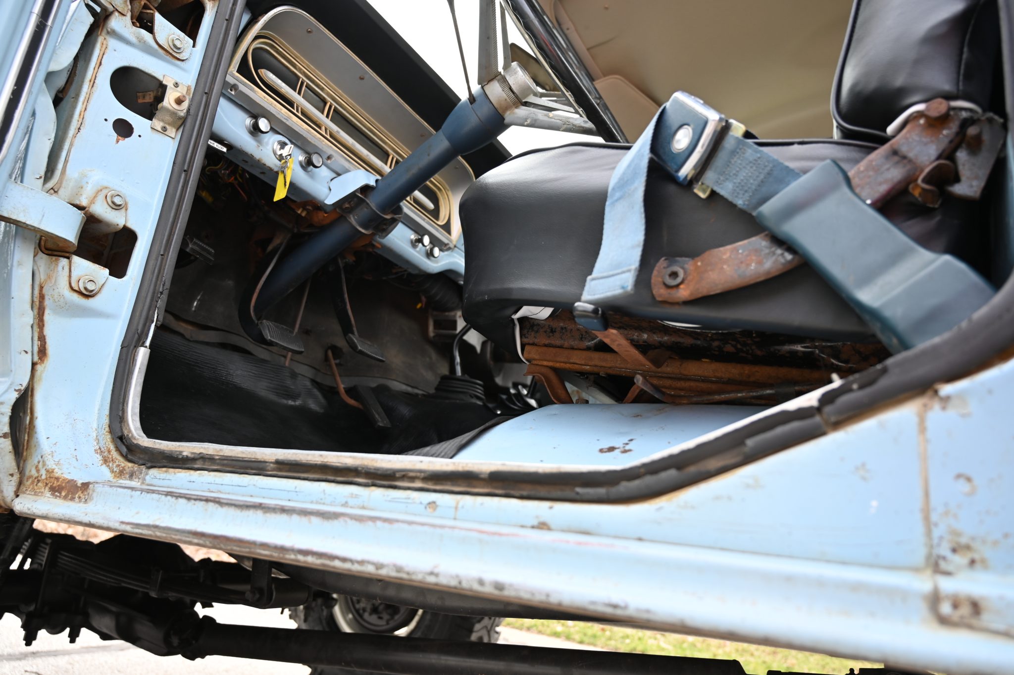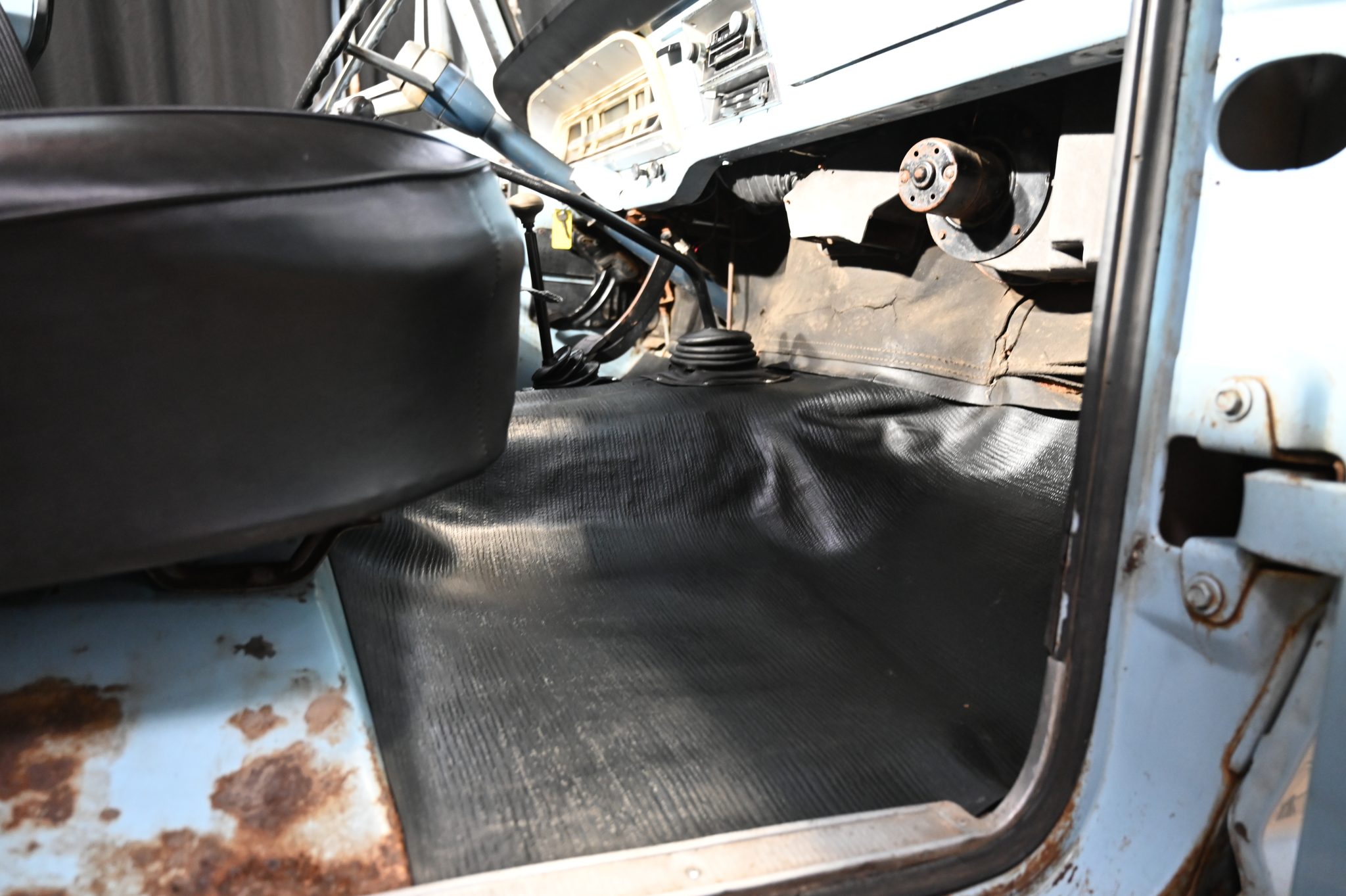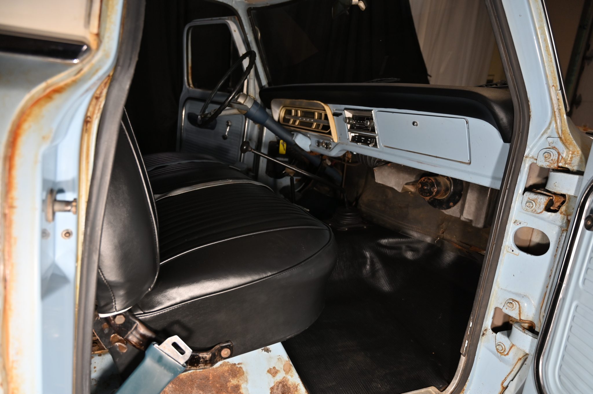 This 1969 Ford F-250 4×4 four-speed was re-bodied with an F-100 Sport Custom refinished its frame during the swap. Its 360ci V8 was also refurbished and the cab was refreshed with a replacement bench and floor cover. Other work involved replacing the exhaust system along with the wheels and tires.