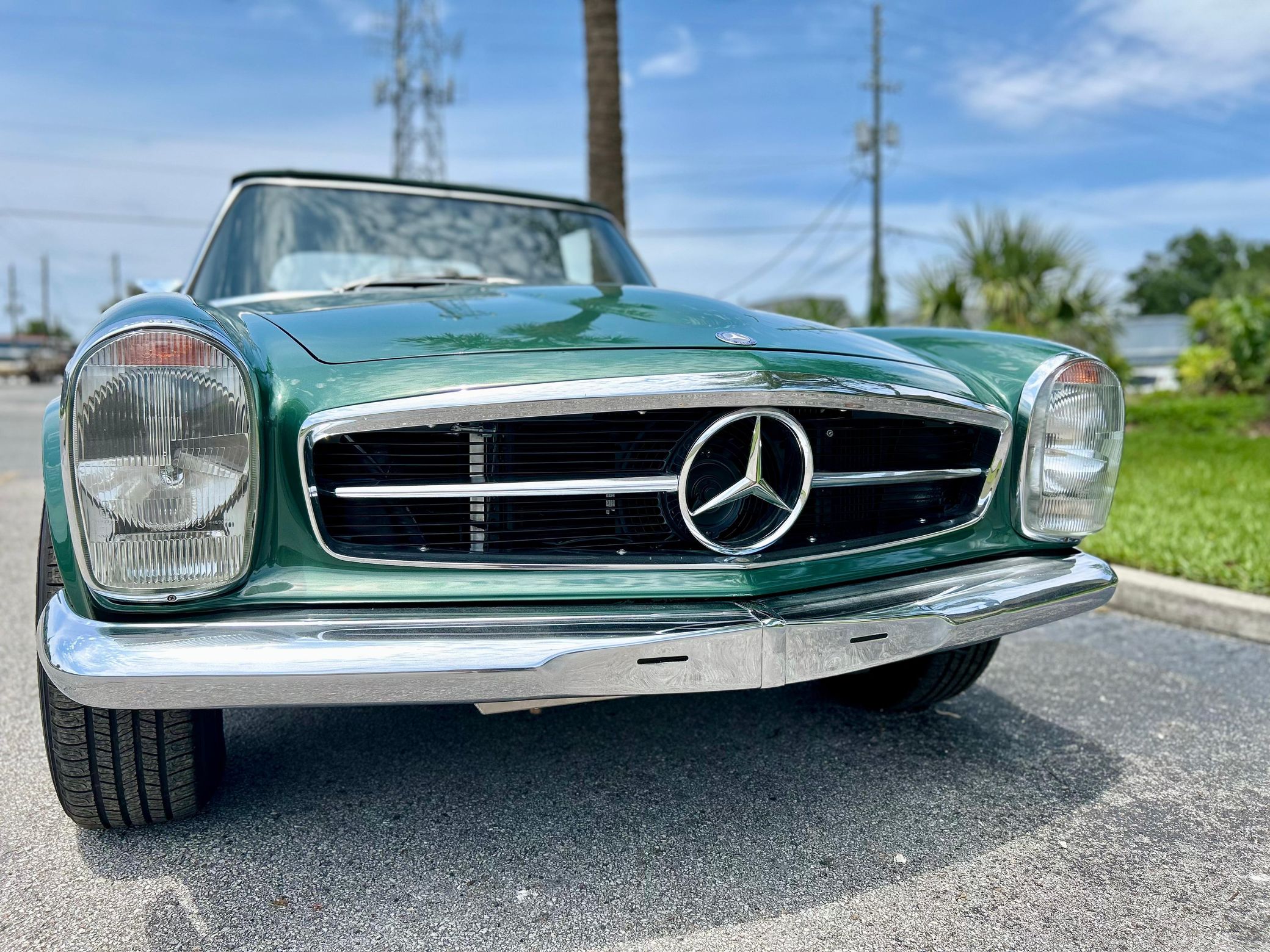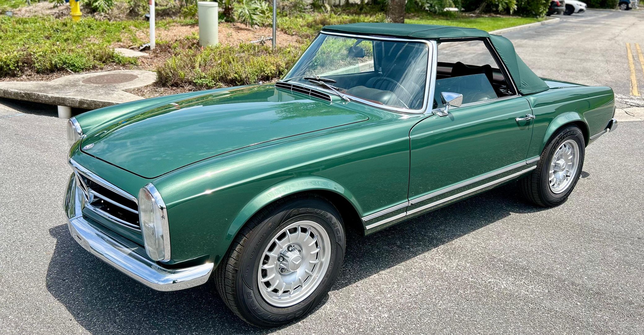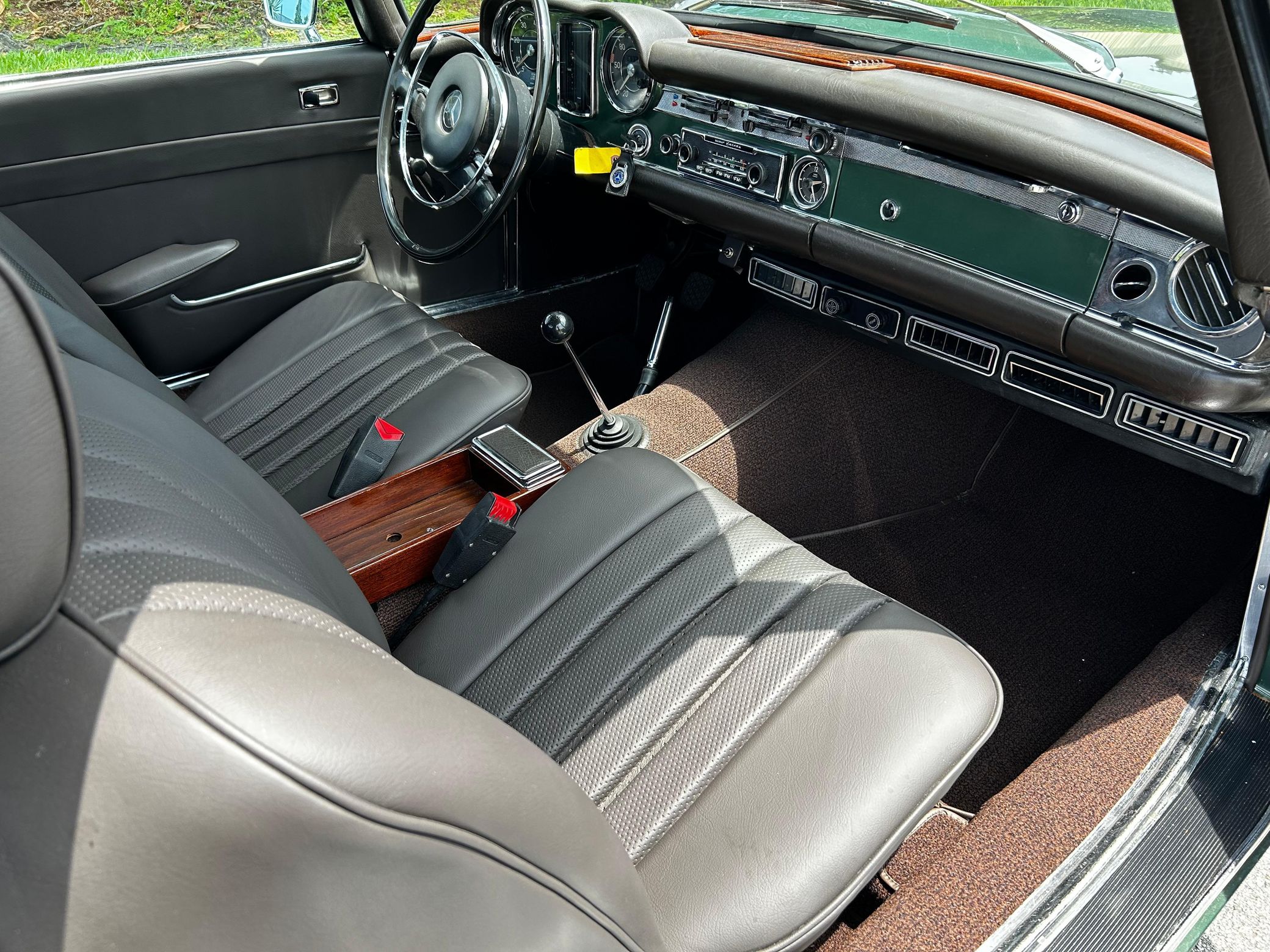 This 280SL is finished in a stunning triple green color combination, and it features the desirable 4-speed manual transmission. It also comes with a silver hardtop, and it's equipped with European-market headlights, air conditioning, and a Becker Europa radio.