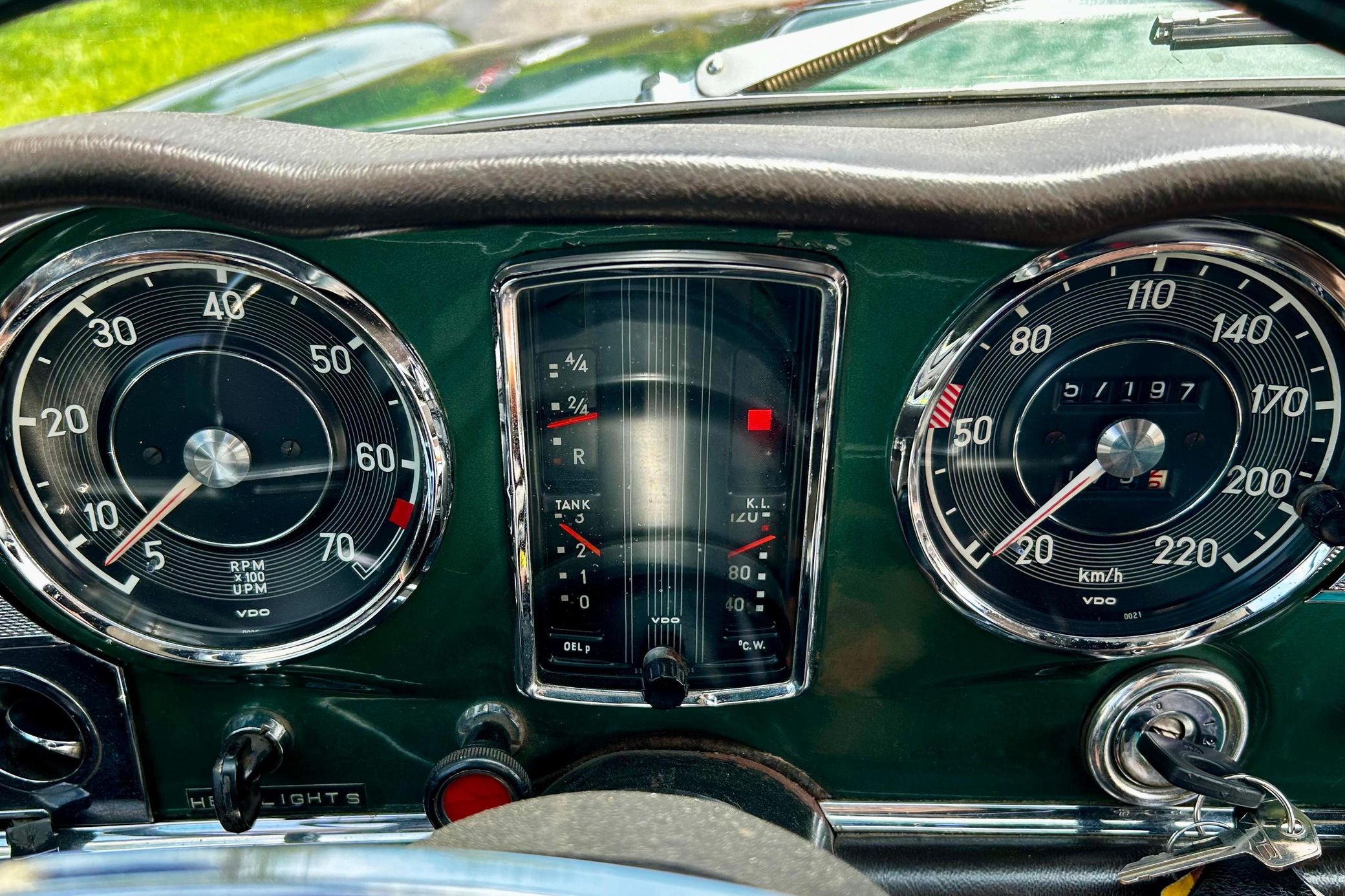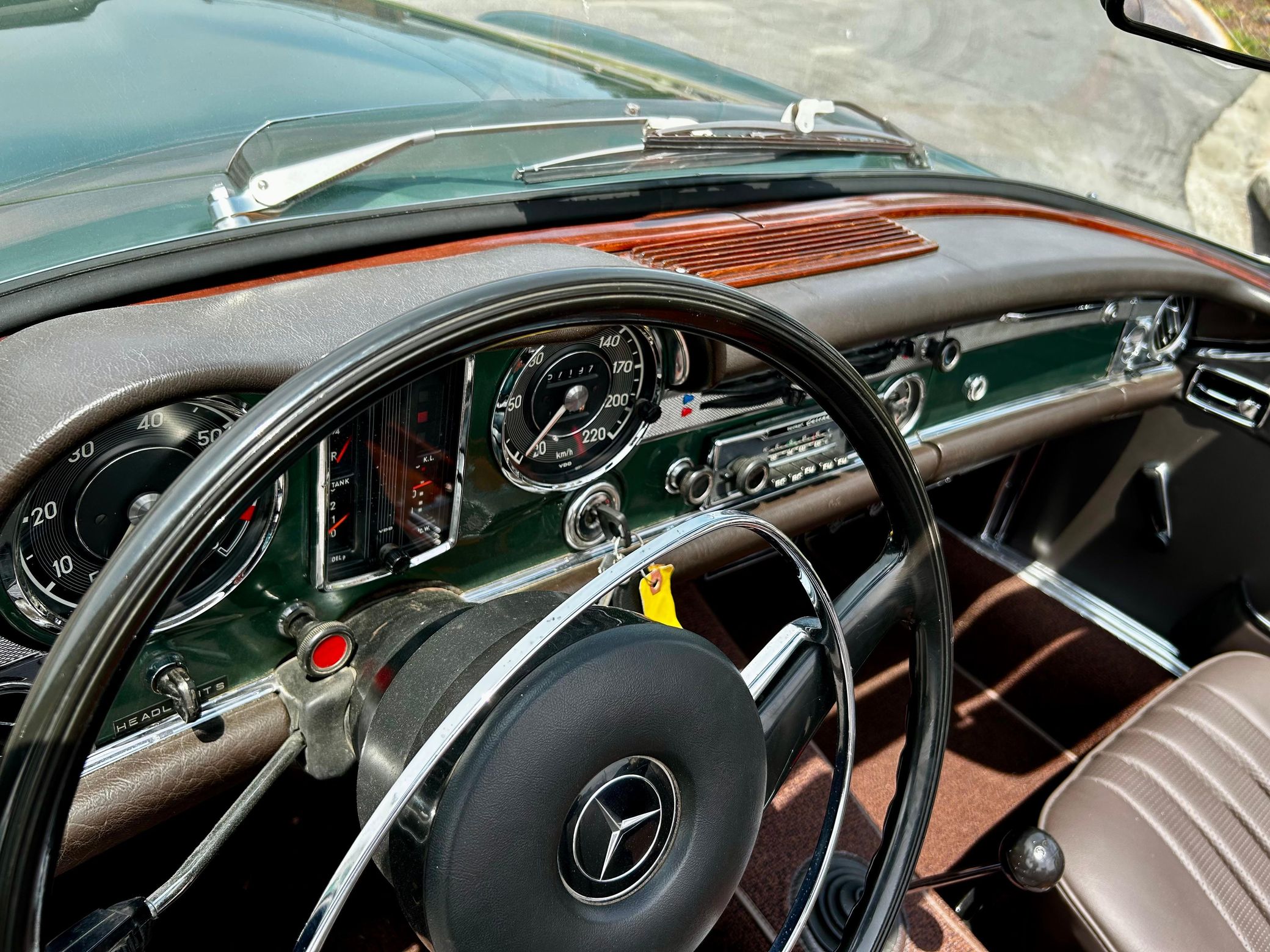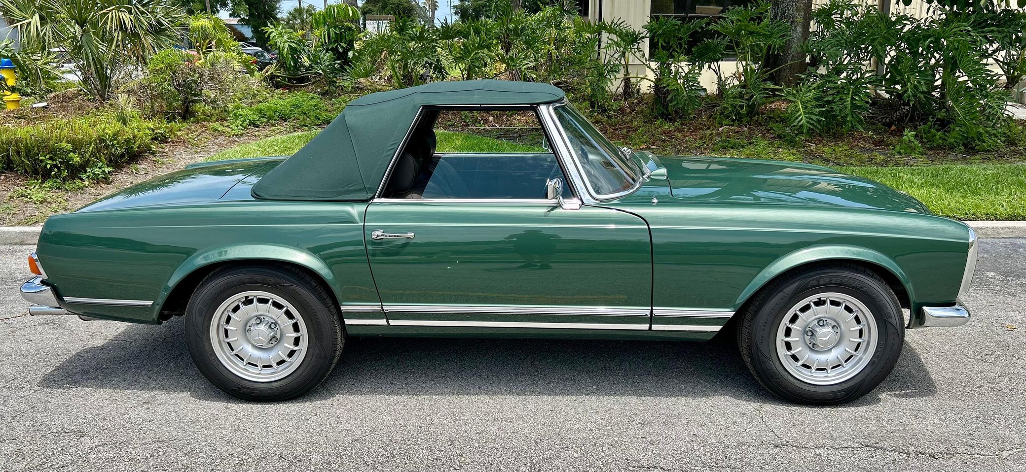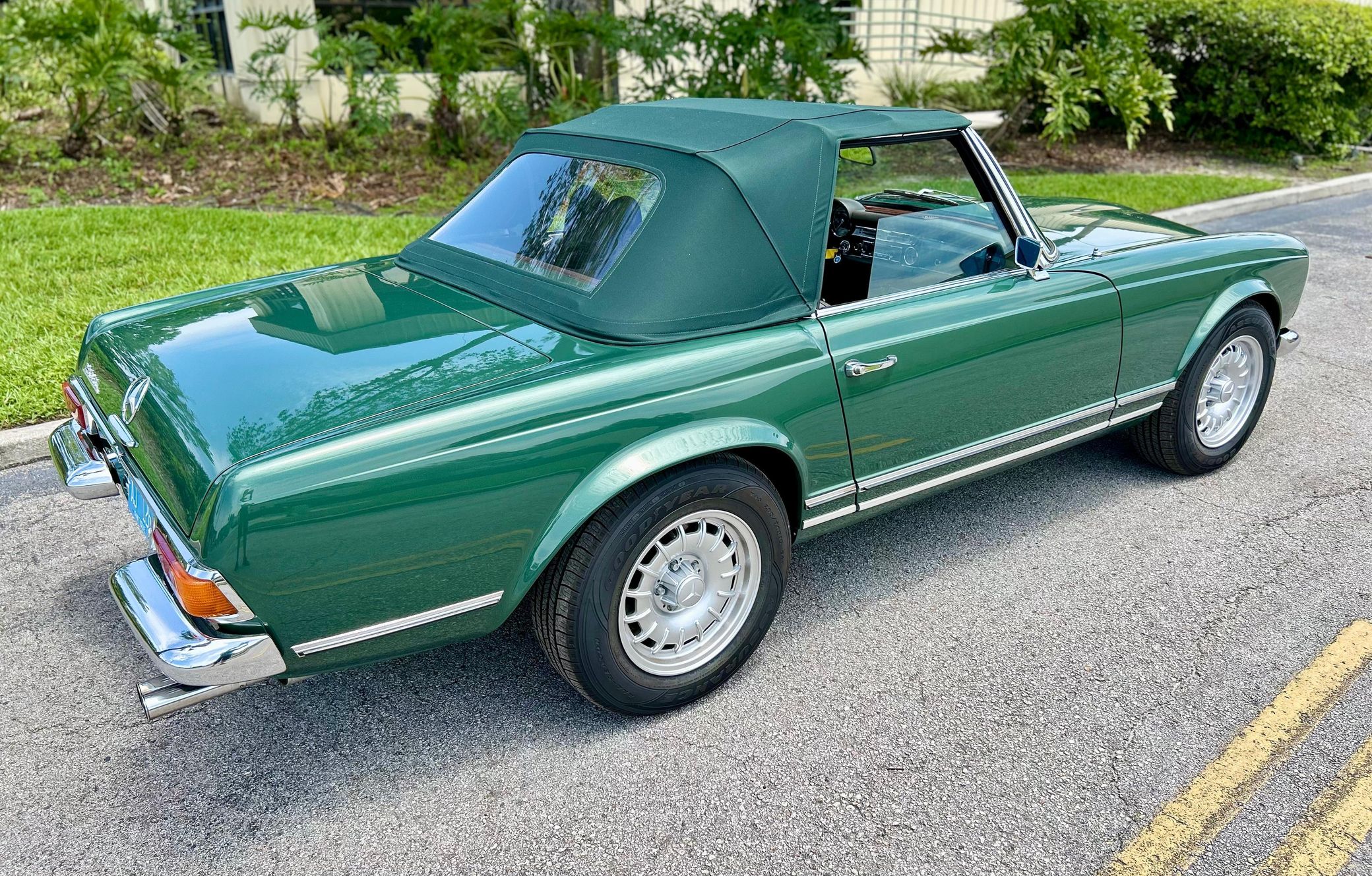 This 280SL is finished in a stunning triple green color combination, and it features the desirable 4-speed manual transmission. It also comes with a silver hardtop, and it's equipped with European-market headlights, air conditioning, and a Becker Europa radio.