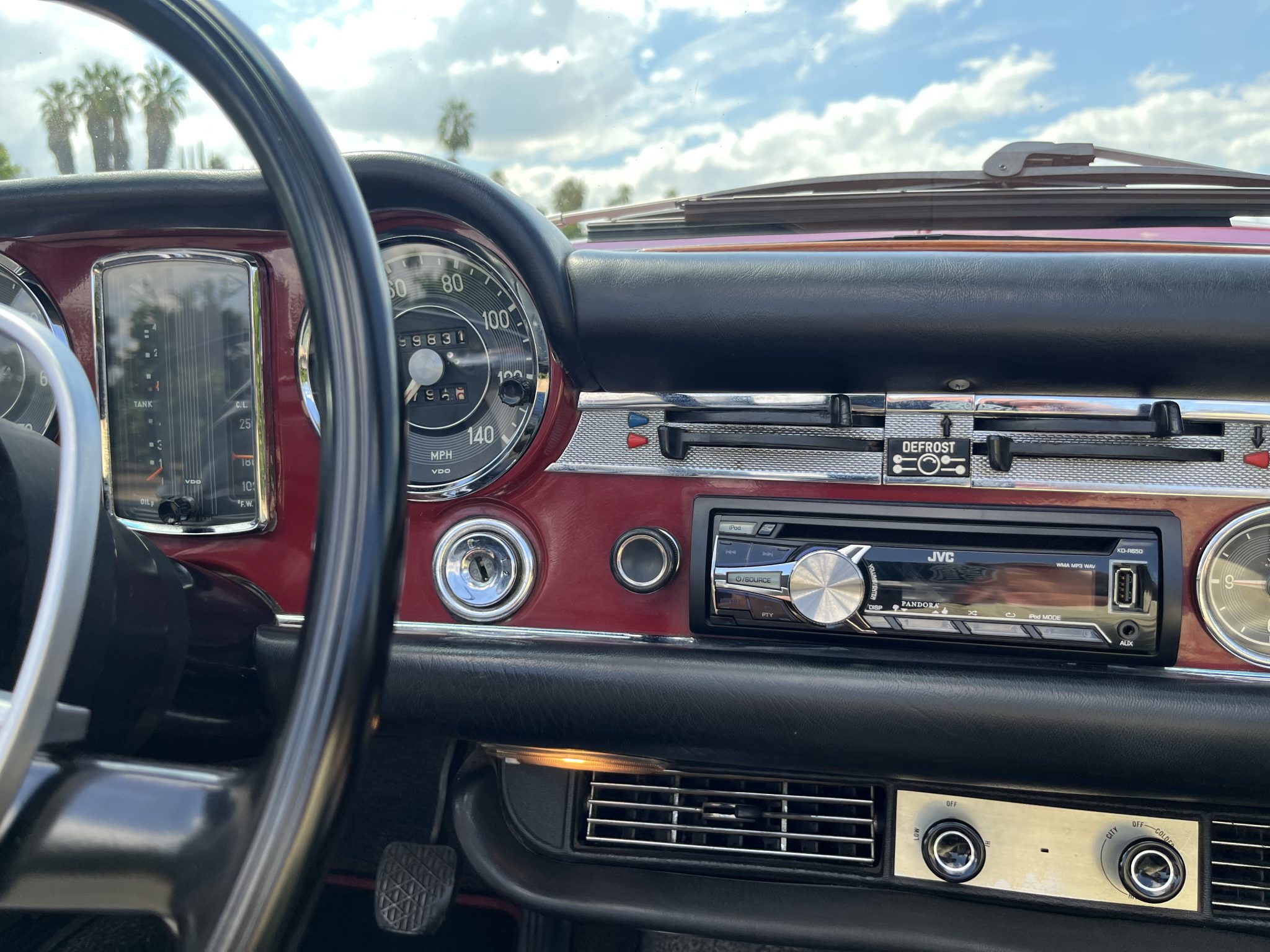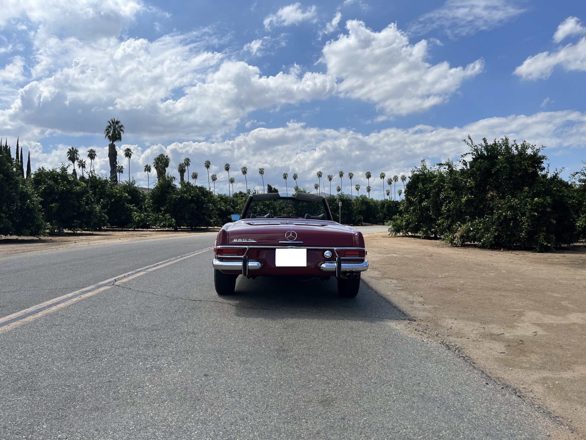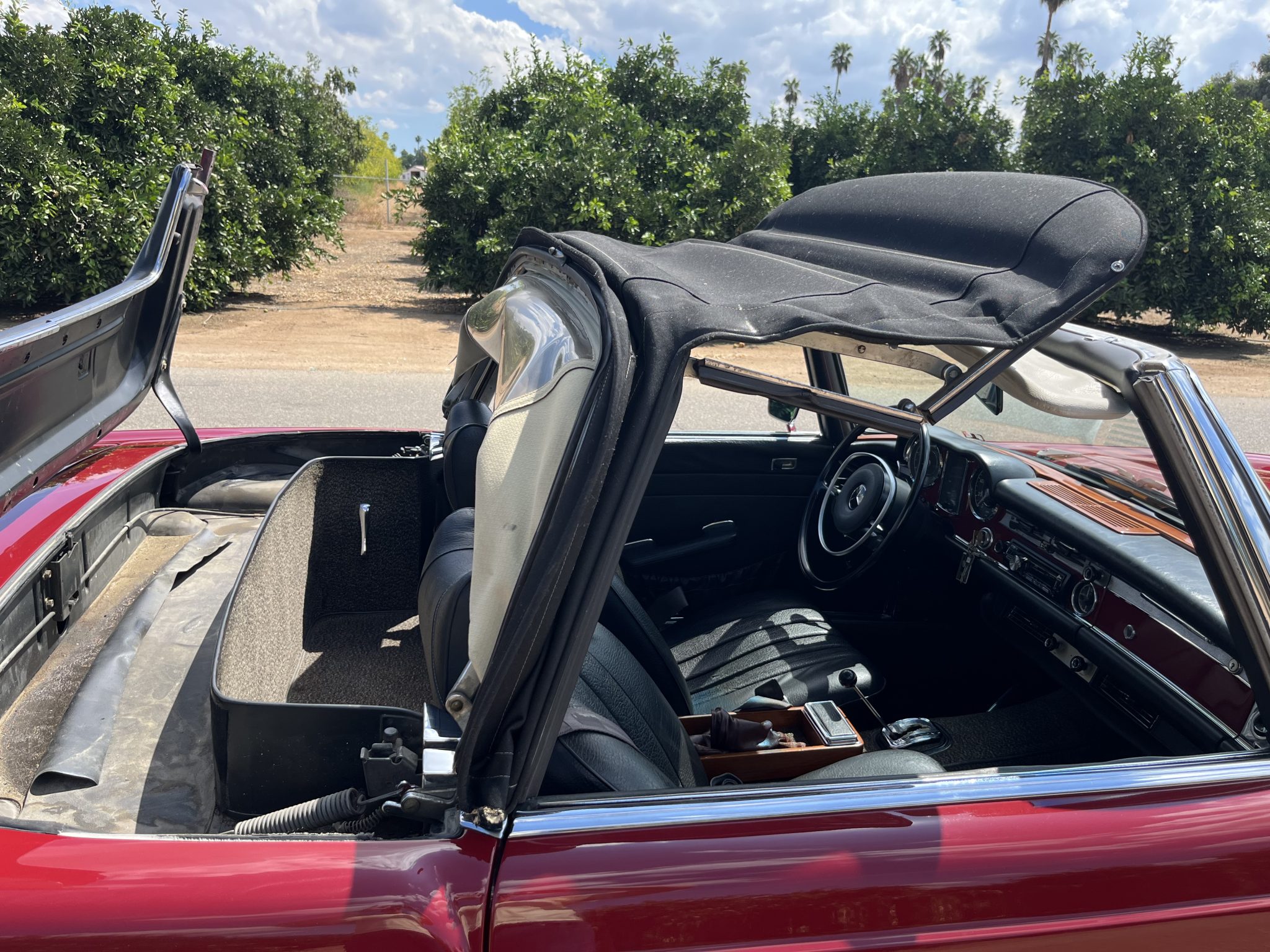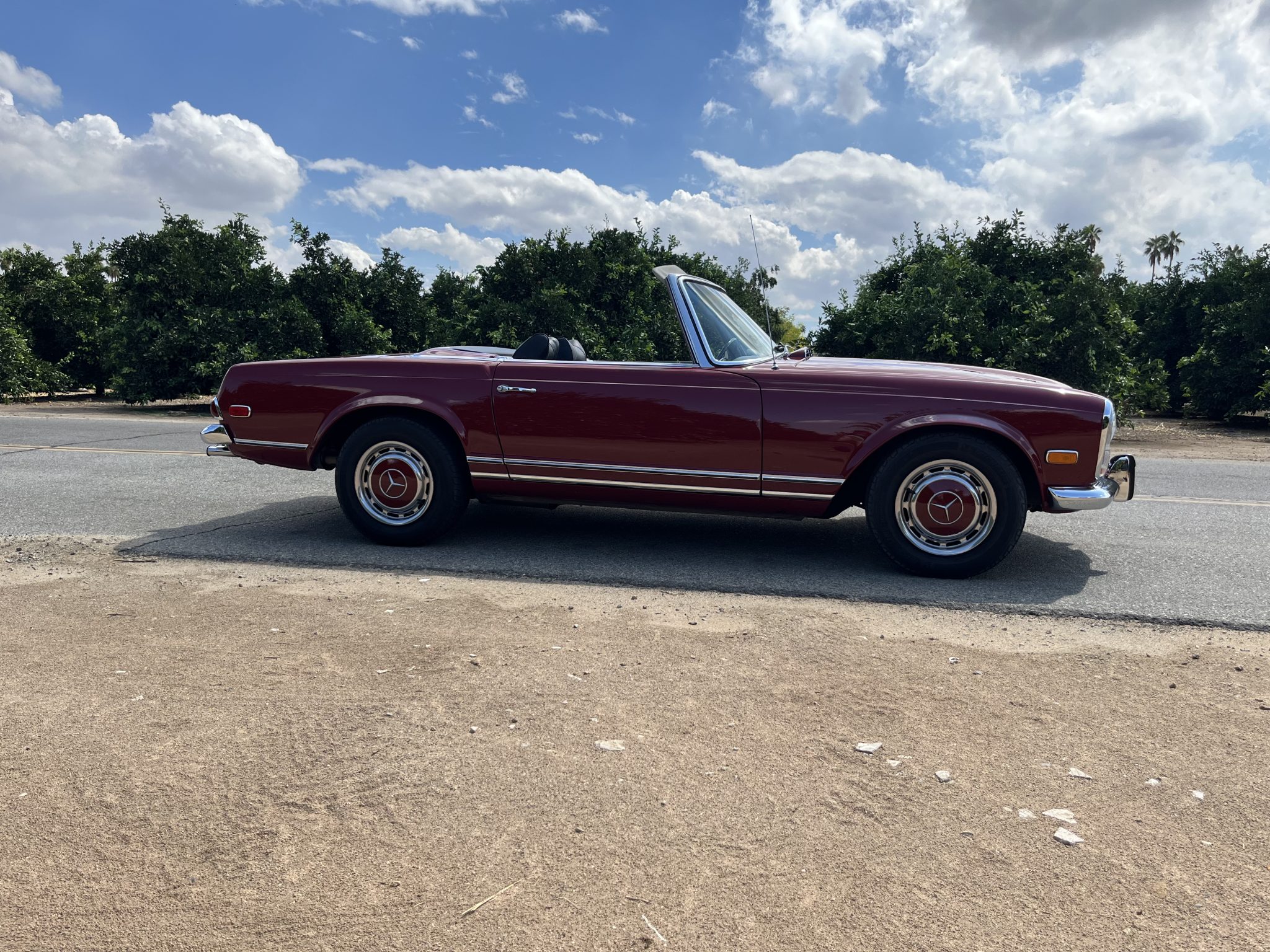 It is powered by a 2.8-liter inline-six paired with a four-speed automatic transmission. The car is finished in red over black MB-Tex and is equipped with a black convertible top, a removable hardtop, power steering, 14″ steel wheels with painted covers, a CD stereo, and air conditioning. The engine was rebuilt in 2021, and the transmission was overhauled in 2022. This is W113 SL