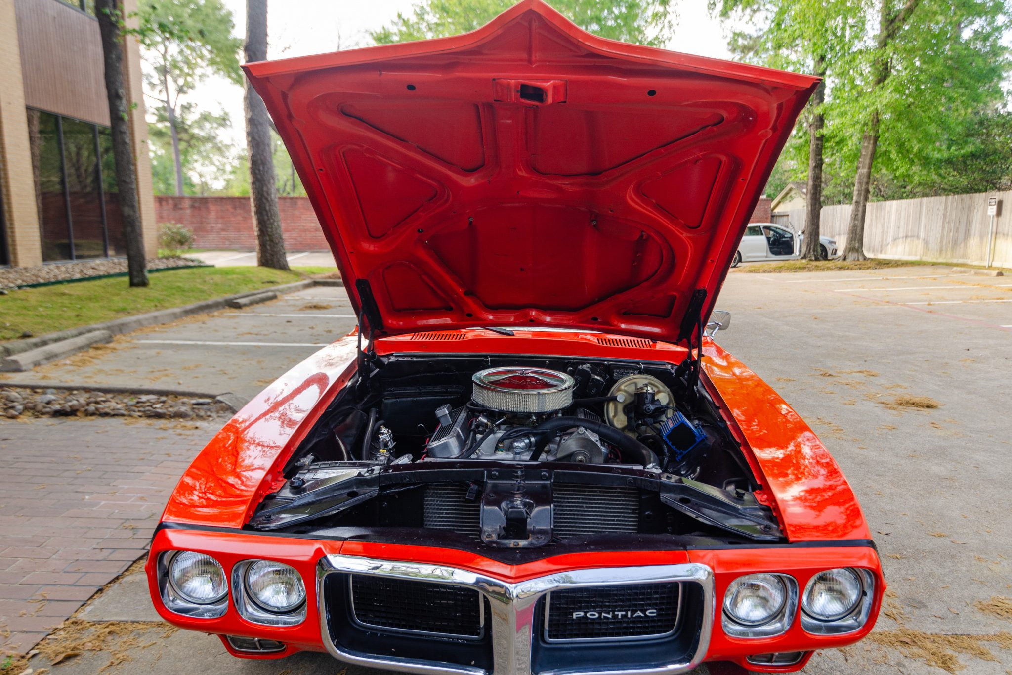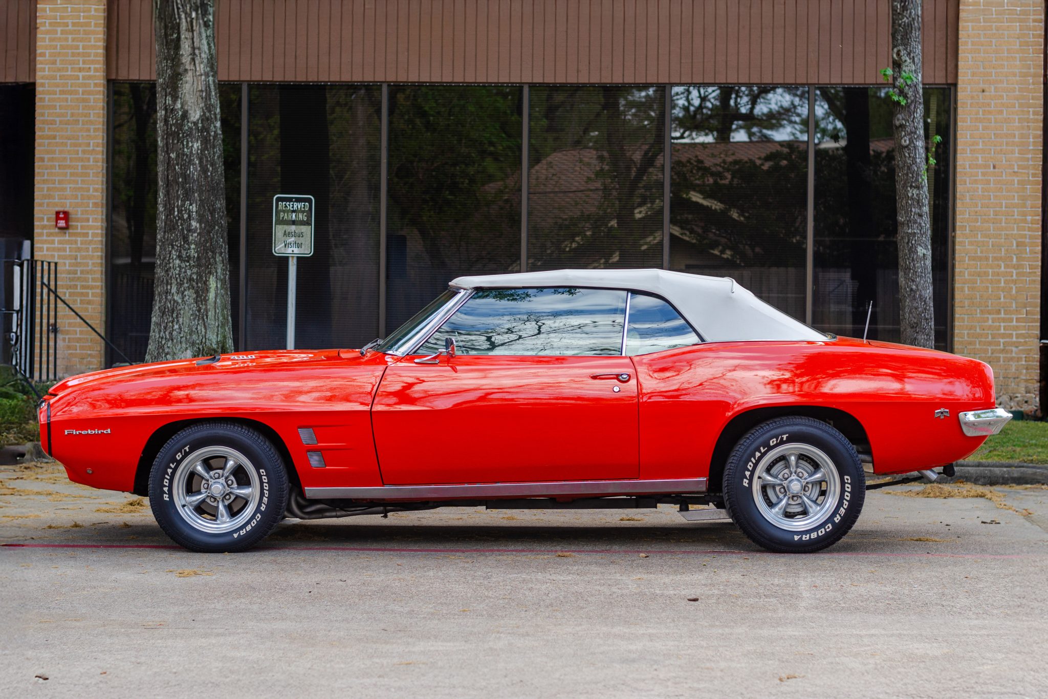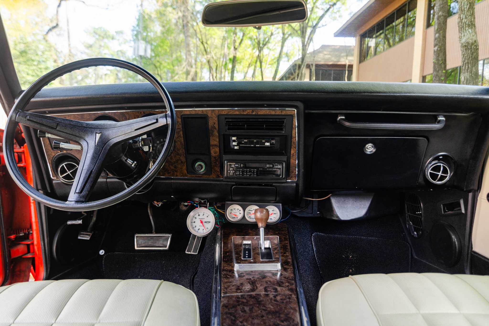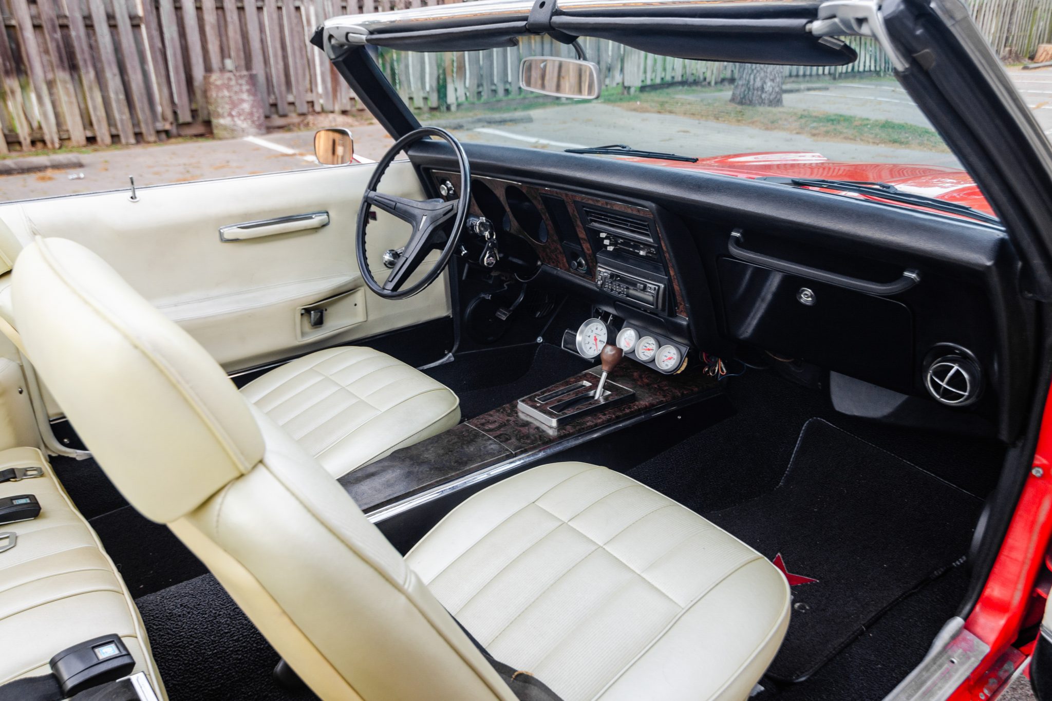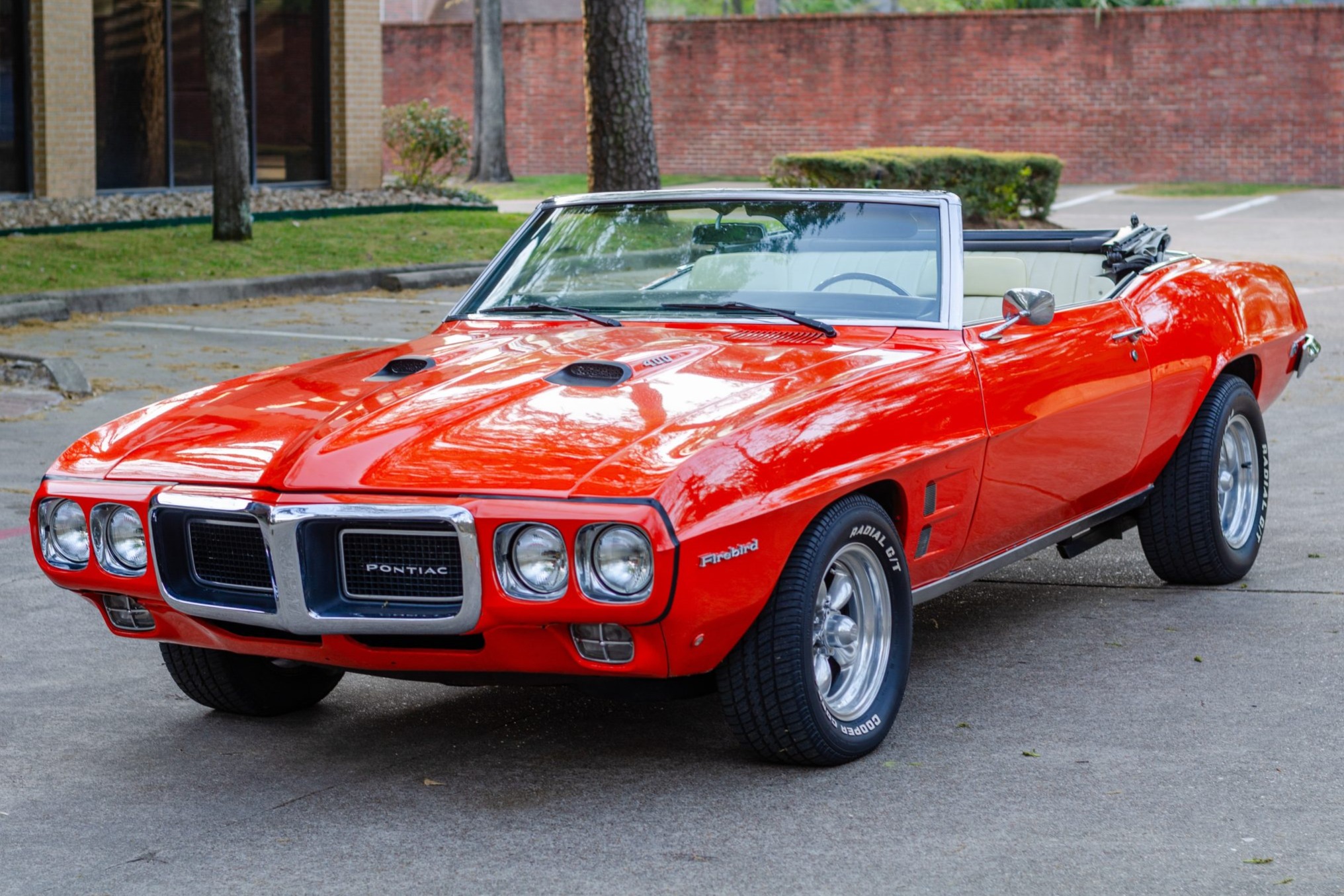 Power is provided by a replacement 400ci V8 linked with a three-speed automatic transmission, and the car is equipped with a white soft top, power steering, front disc brakes, 15″ American Racing wheels, and a Pioneer cassette stereo. This Firebird is now offered with a set of 14″ Rally II-style wheels, a collection of spare parts, PHS Automotive Services documentation