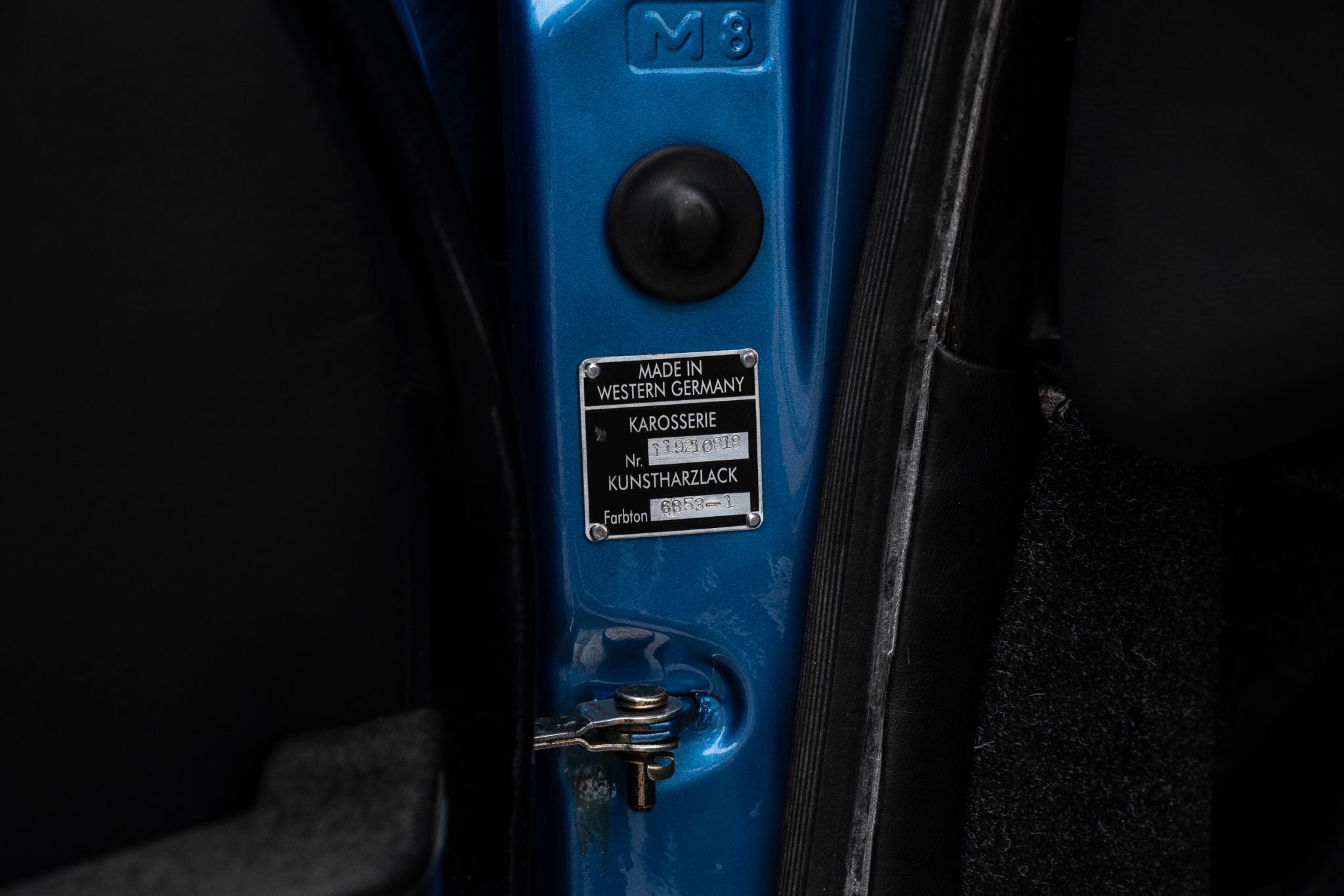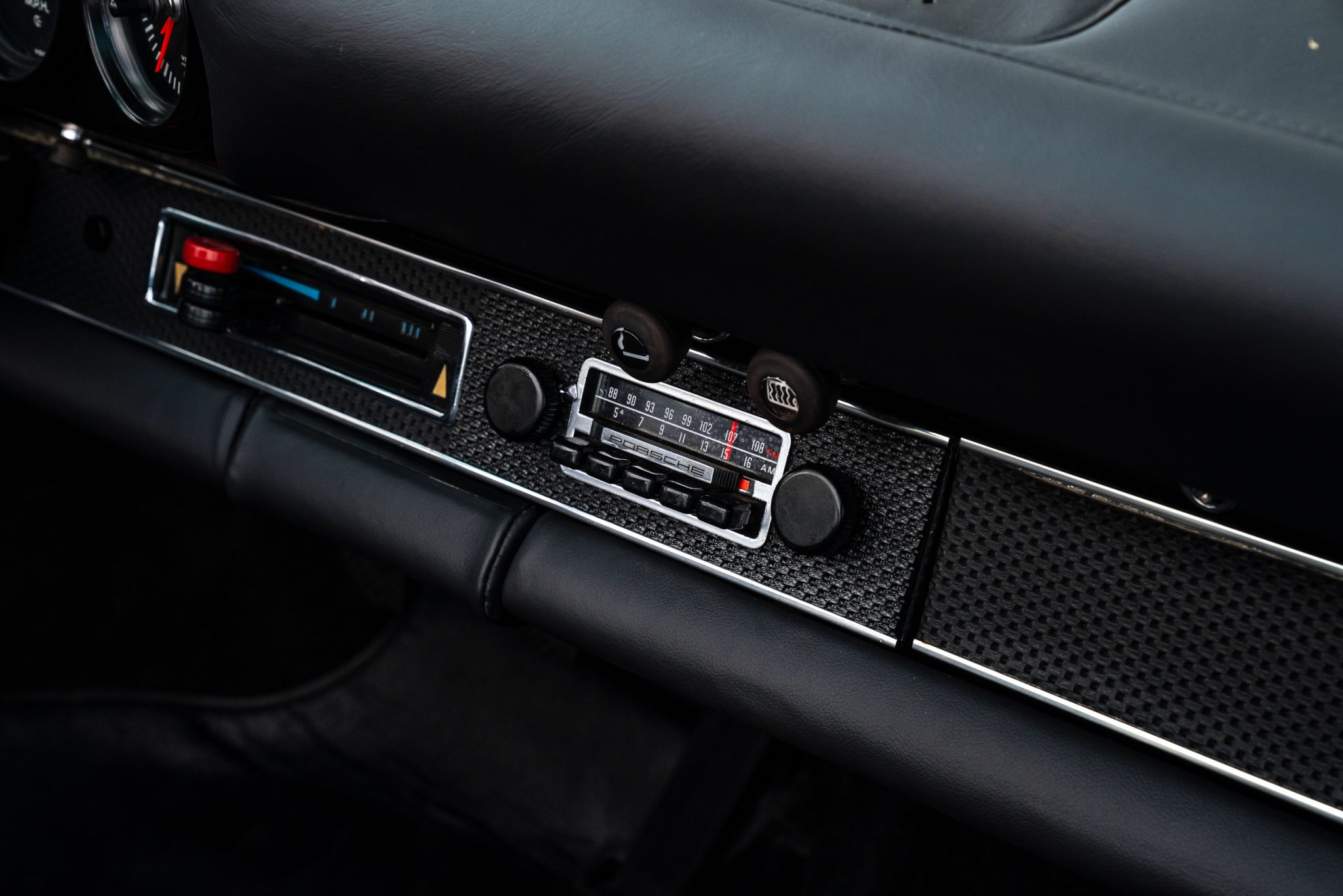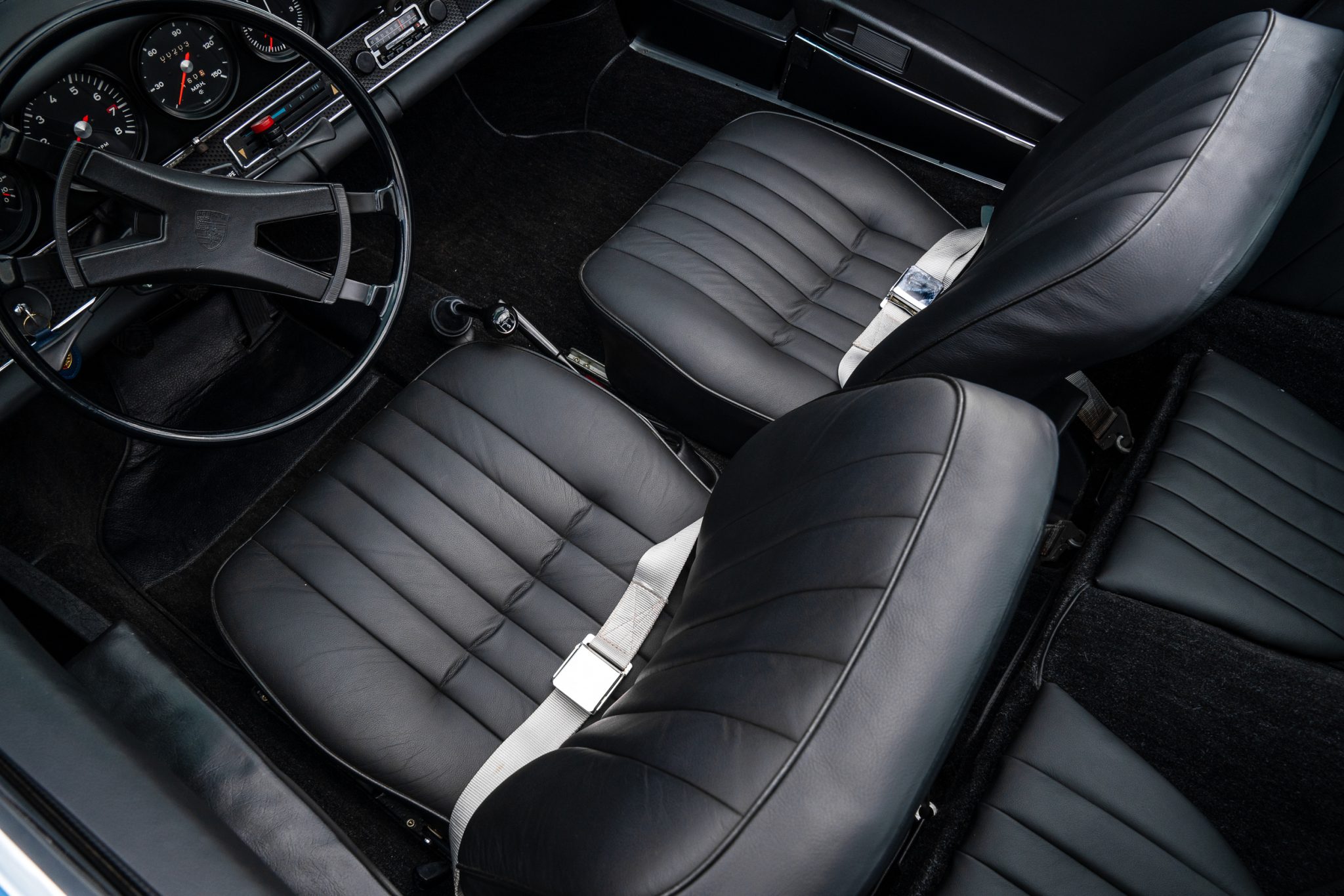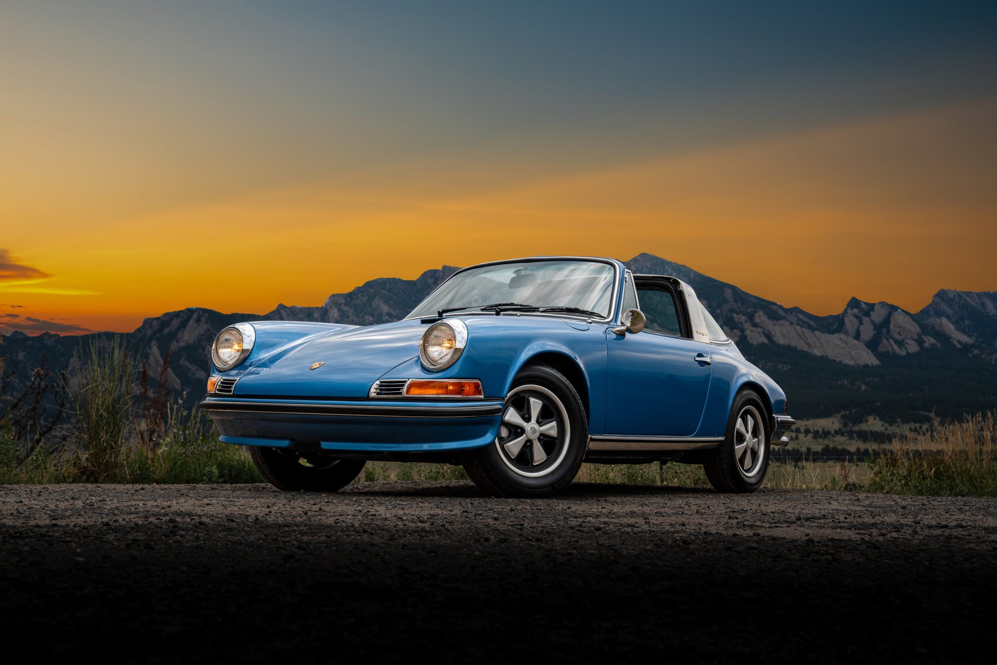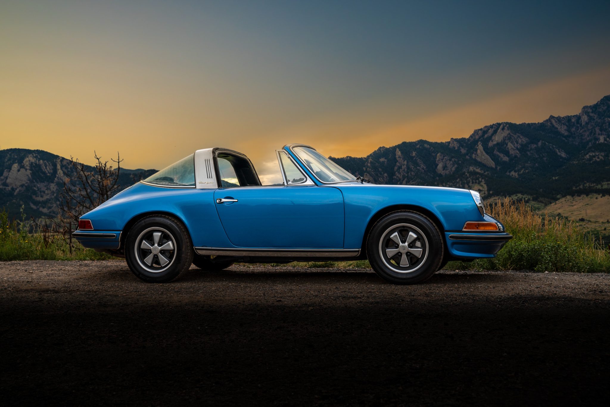This 1969 Porsche 911E Targa was refurbished in 2022, with work reportedly involving a repaint, reupholstered interior, replacement of the 15″ Fuchs wheels and exhaust system, and overhauls of the engine, transaxle, disc brakes, and suspension. It is finished in Metallic Blue over black leatherette and is powered by a replacement 2.4-liter flat-six paired with a five-speed 901 manual transaxle. Equipment includes a removable Targa panel, a 911S-style front bumper, an AM radio, and front comfort seats.