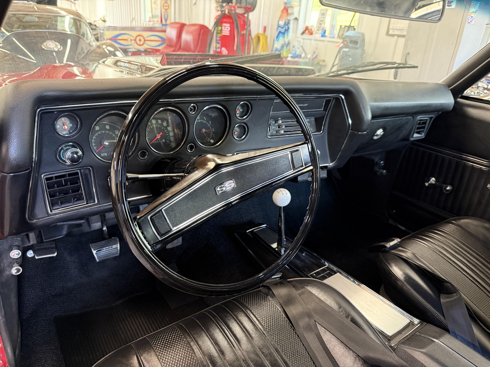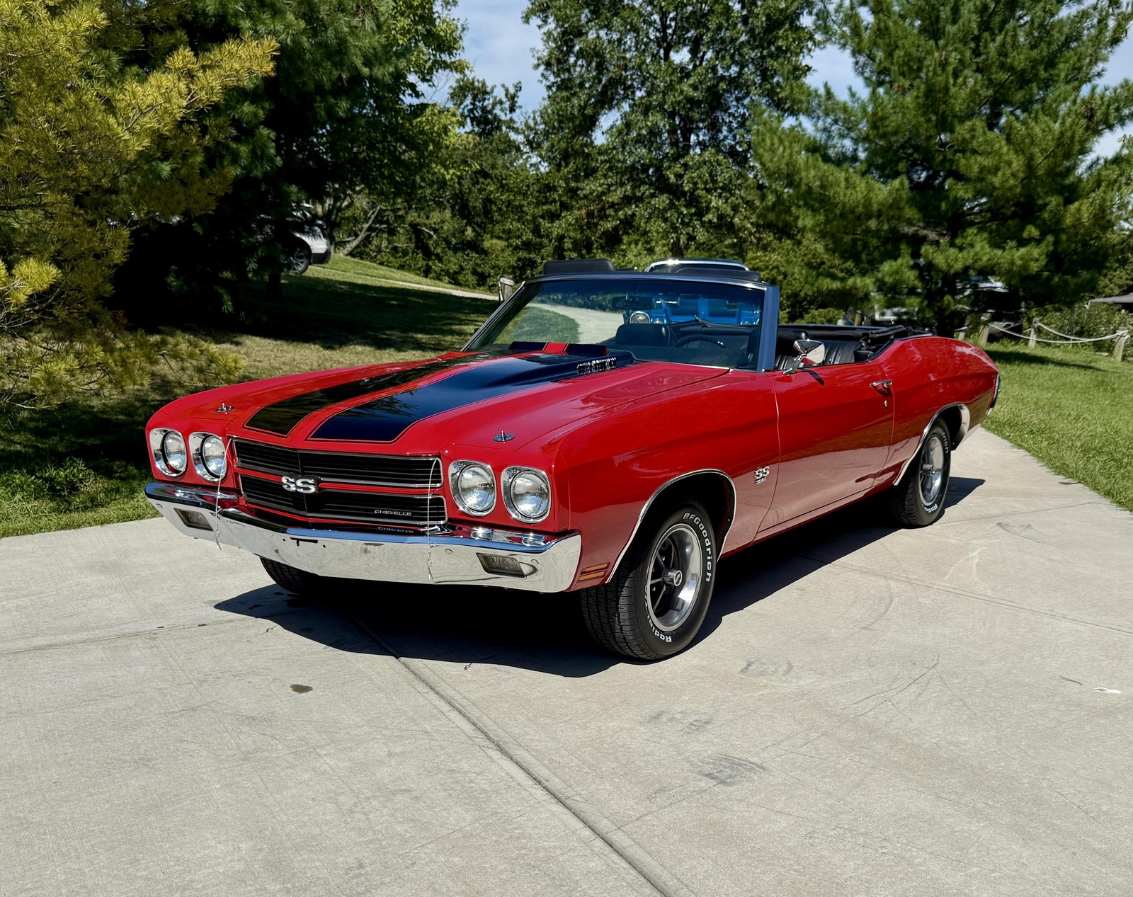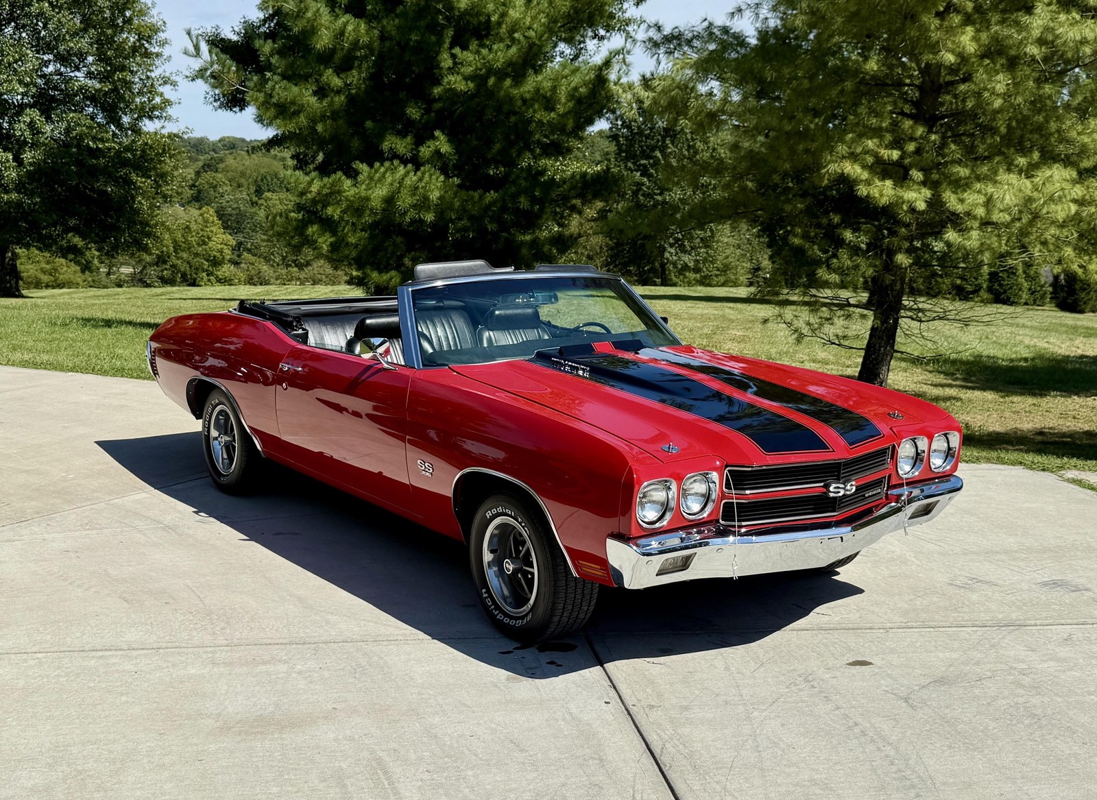 Gorgeous 1970 chevelle convertible ss fully rebuilt l78 396/375hp engine(nom) 4spd 12 bolt posi f41 ps pdb tilt tach & gauges functional cowl flapper clean underside super solid & laser straight body very desirable correct code cranberry red car beautiful show quality factory cranberry red paint with new black buckets & console interior and new power top with glass back window