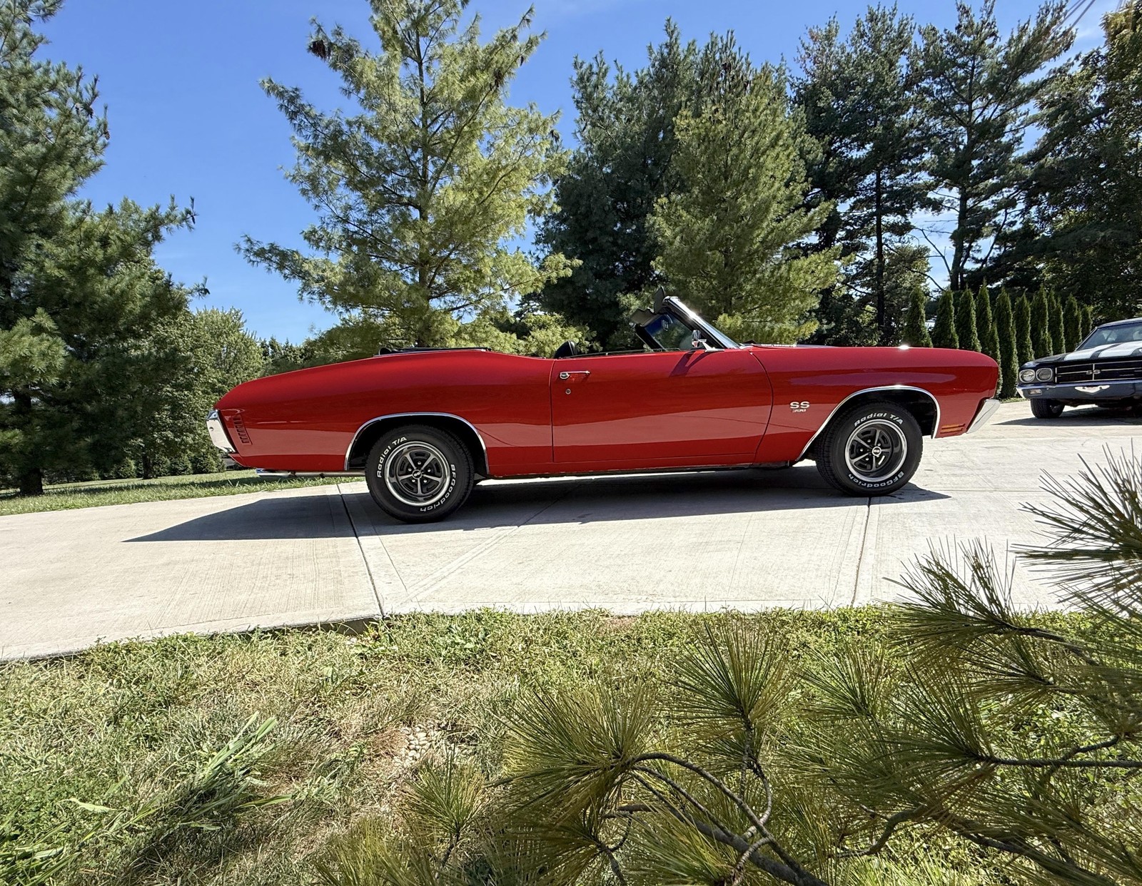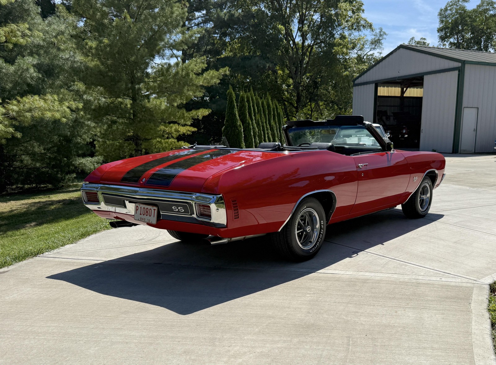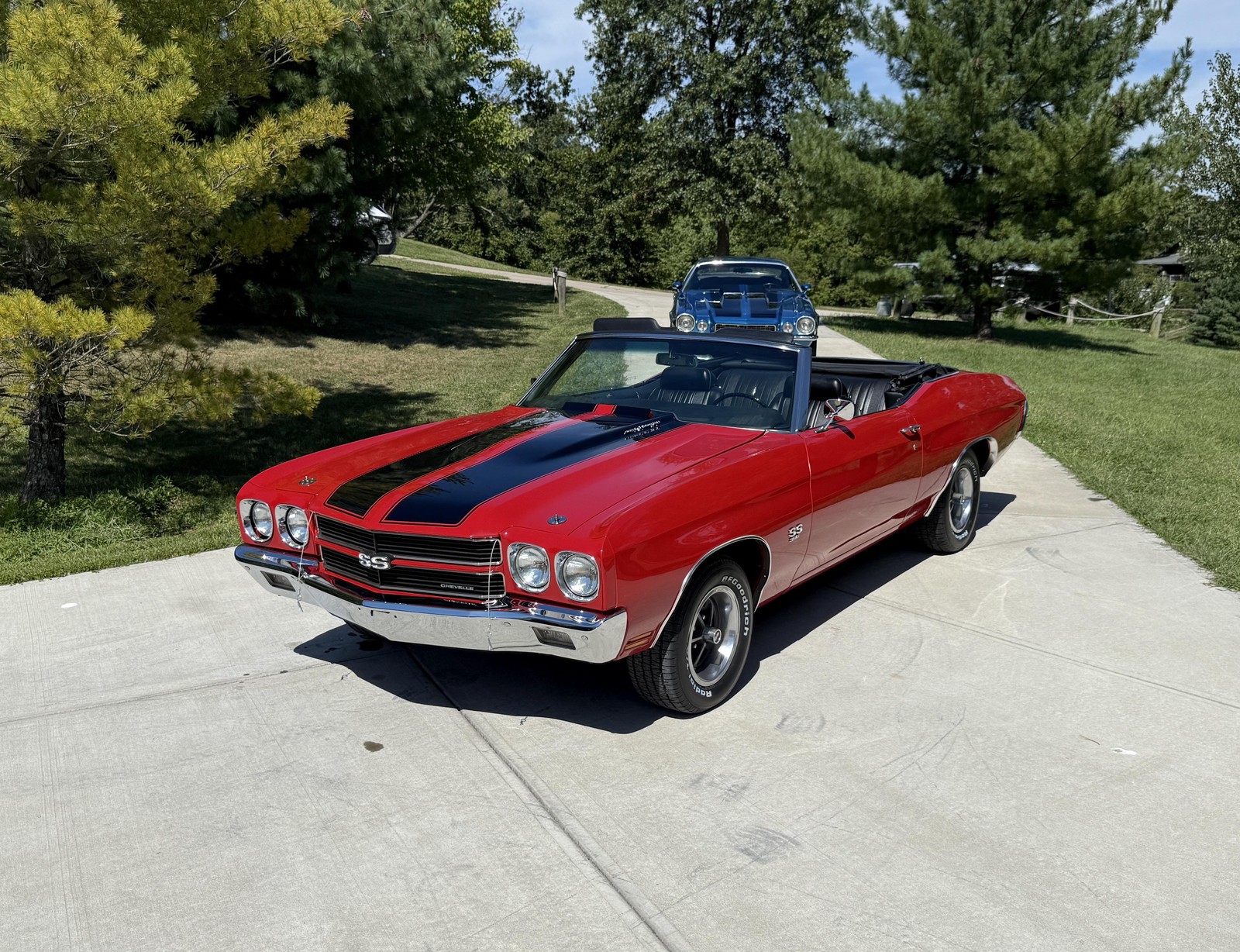 Gorgeous 1970 chevelle convertible ss fully rebuilt l78 396/375hp engine(nom) 4spd 12 bolt posi f41 ps pdb tilt tach & gauges functional cowl flapper clean underside super solid & laser straight body very desirable correct code cranberry red car beautiful show quality factory cranberry red paint with new black buckets & console interior and new power top with glass back window