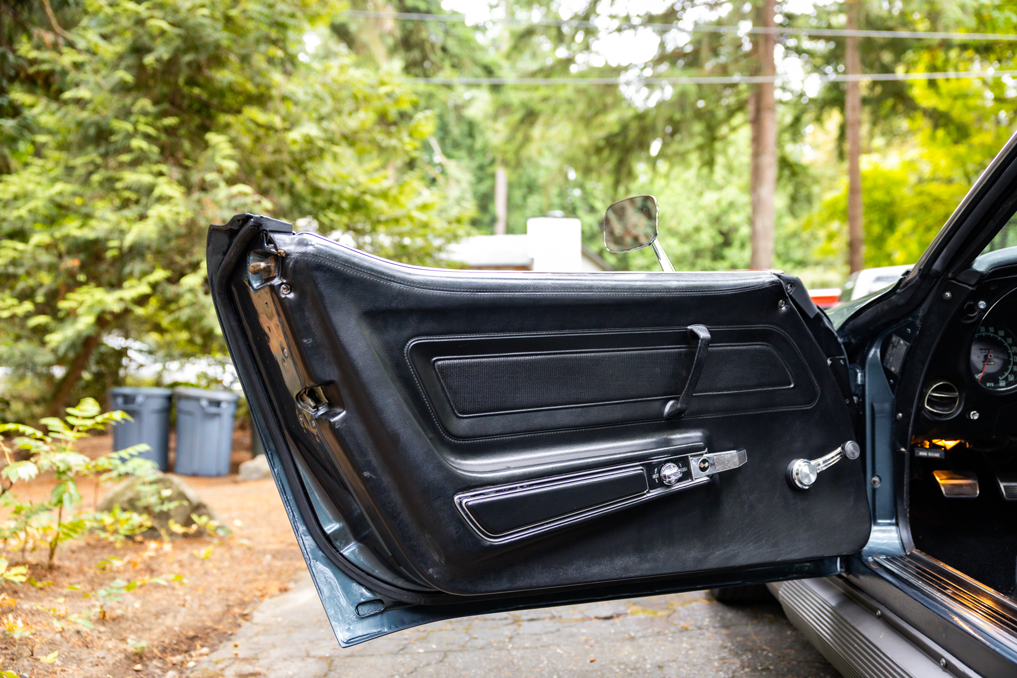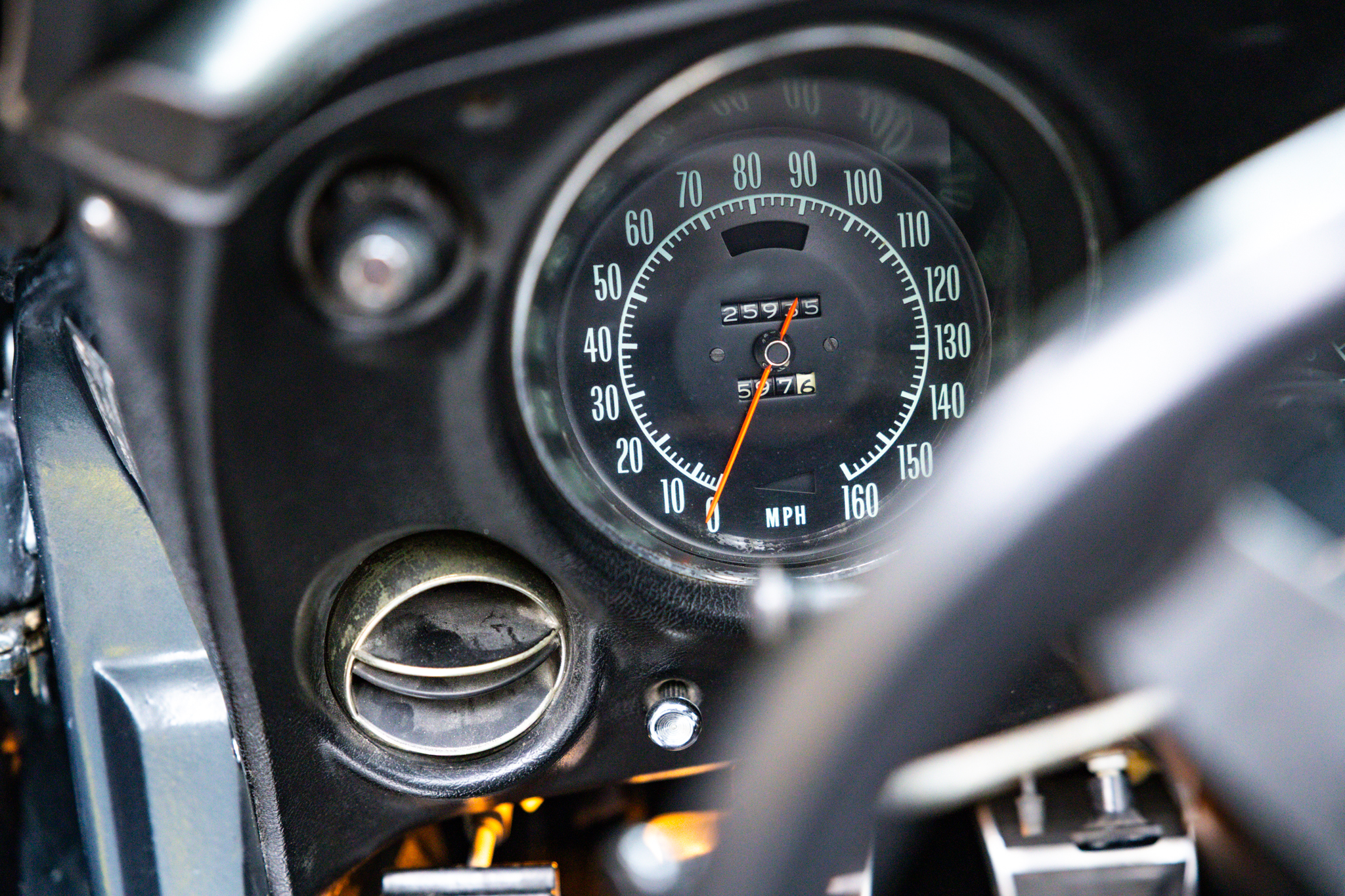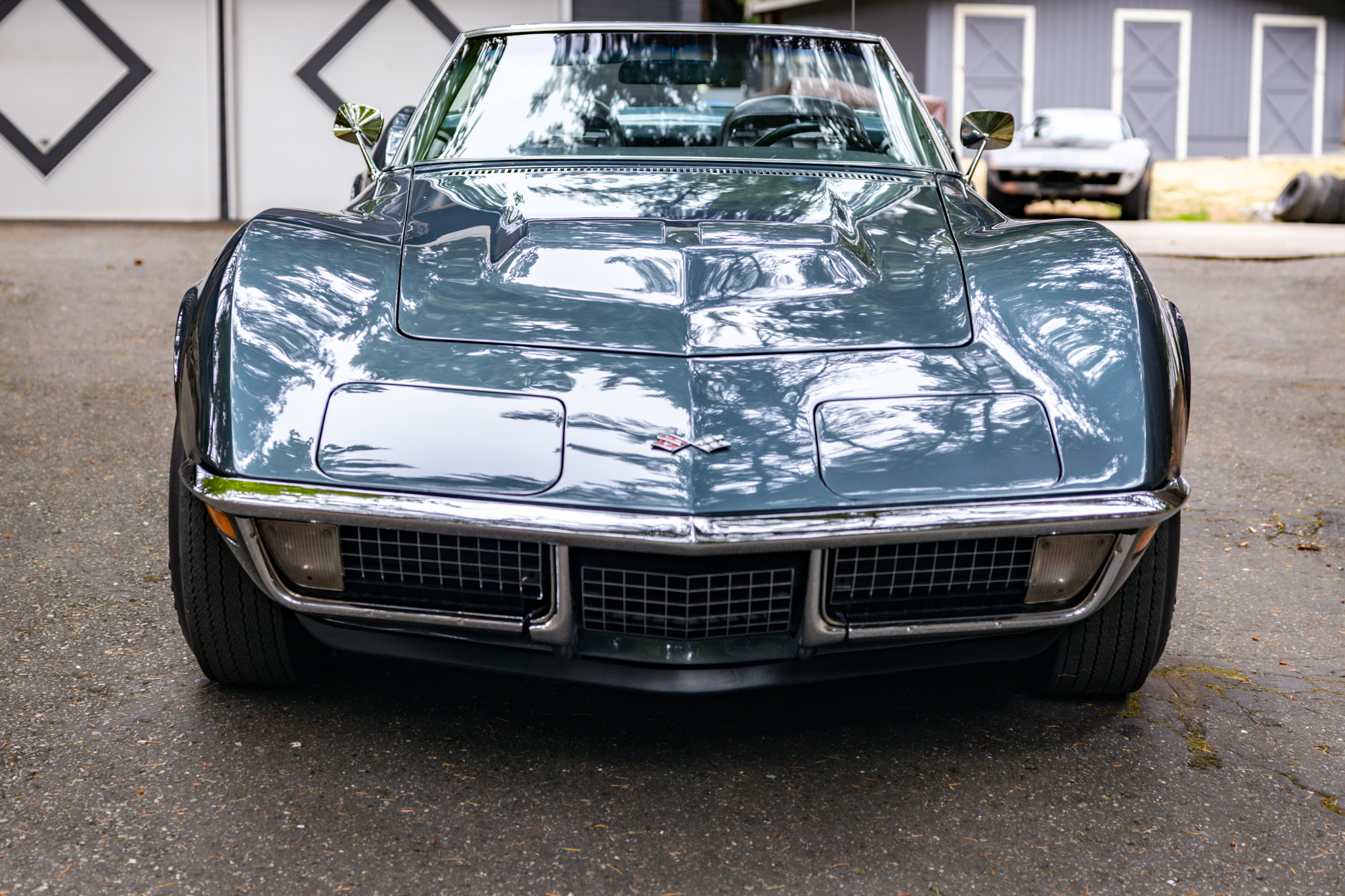 This 1970 Chevrolet Corvette convertible is finished in Laguna Gray over black and is powered by a 350ci L46 V8 paired with a four-speed manual transmission. Features include a Positraction limited-slip differential, a black convertible top, a removable hardtop, 15″ Rally wheels, disc brakes, power steering, retractable headlights, a cabin heater, and an AM/FM stereo.