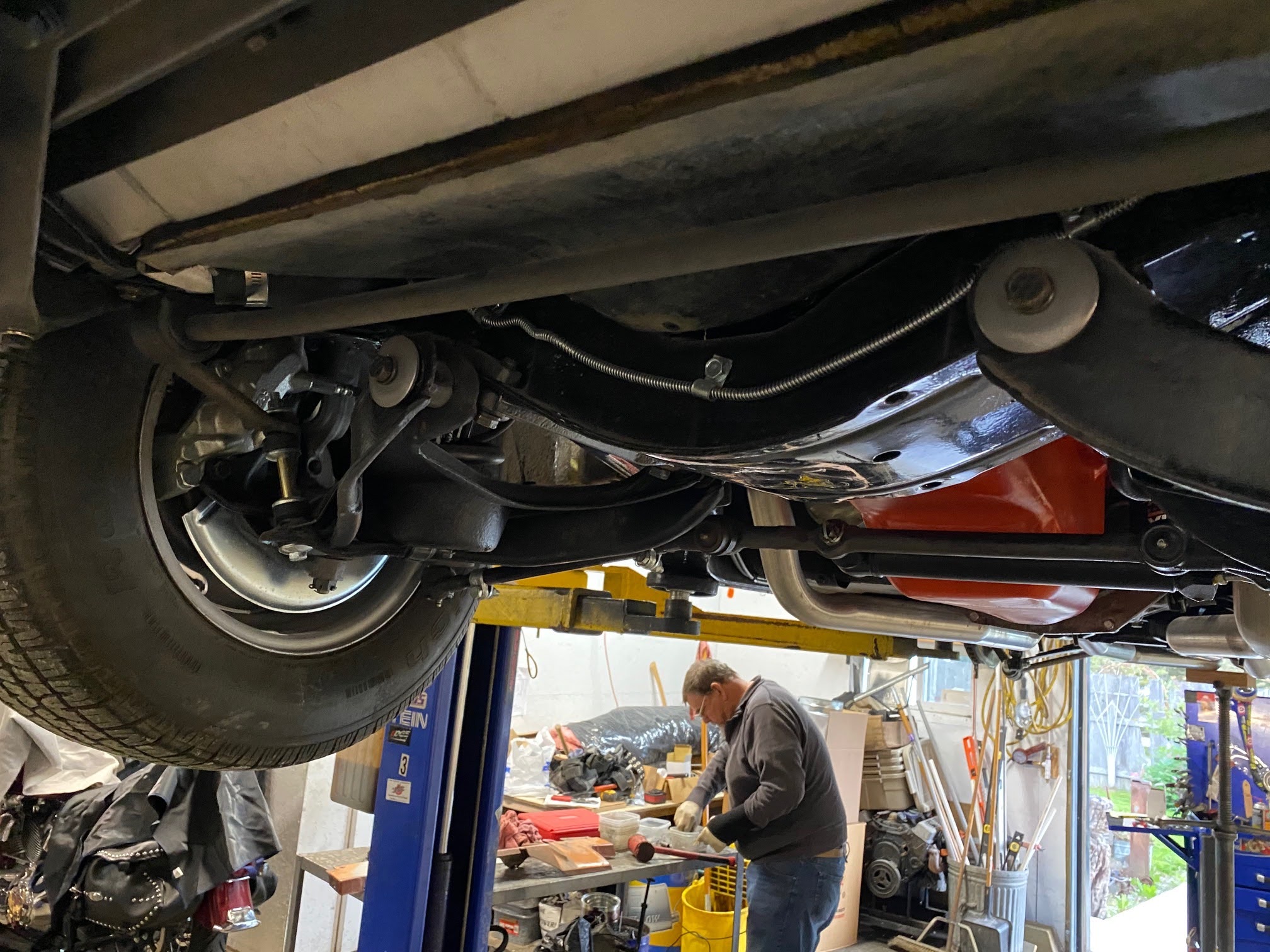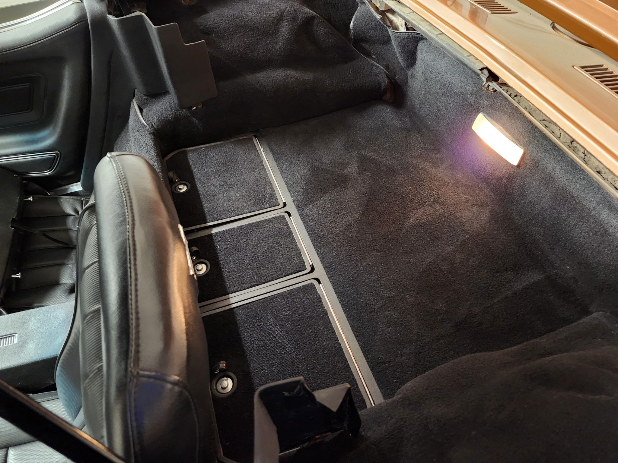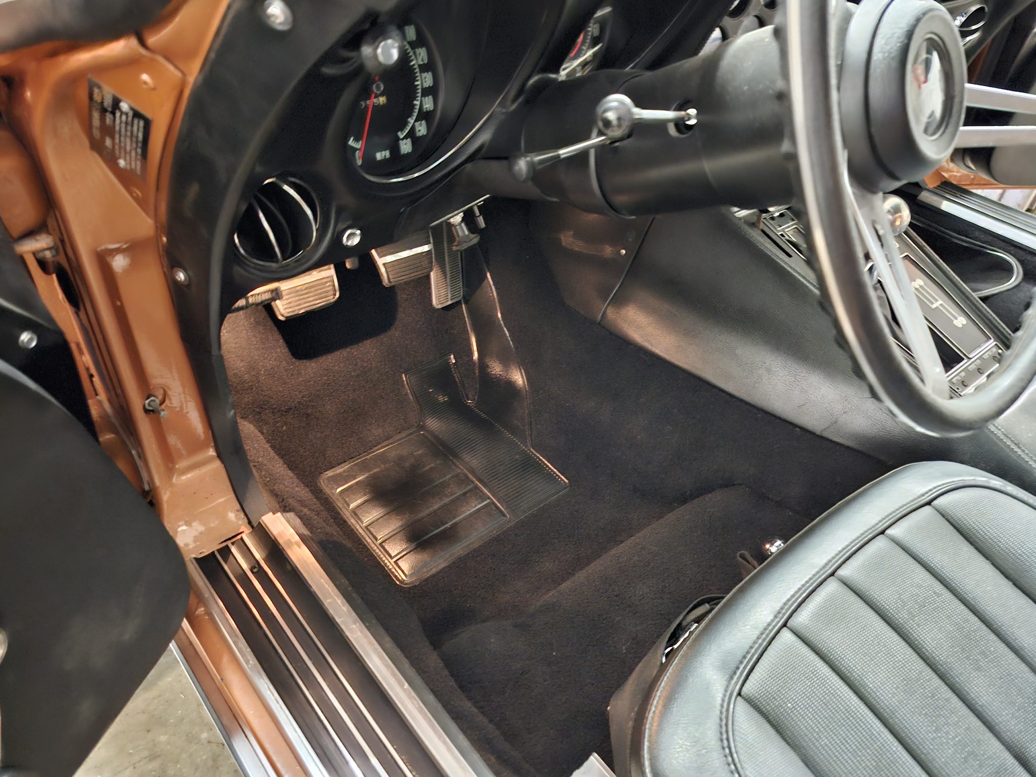 This 1970 Chevrolet Corvette convertible was refurbished and is powered by a 350ci L46 V8 paired with a four-speed manual transmission. Repainted in Corvette Bronze over black vinyl upholstery, the car is equipped with a Positraction limited-slip differential, a white convertible top, and a removable hardtop in addition to 15″ Rally wheels, disc brakes, power steering, retractable headlights, a cabin heater, and an AM/FM stereo.