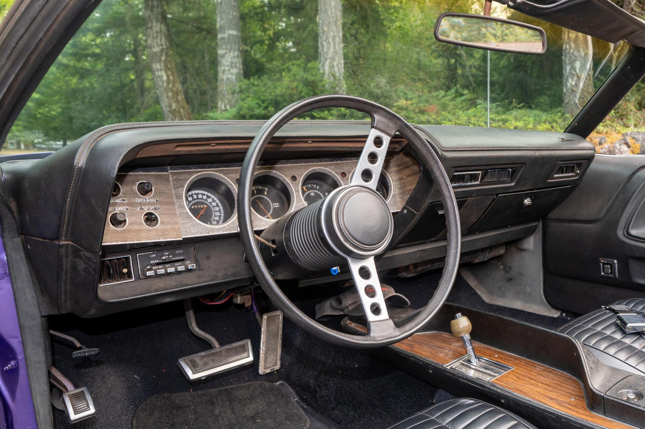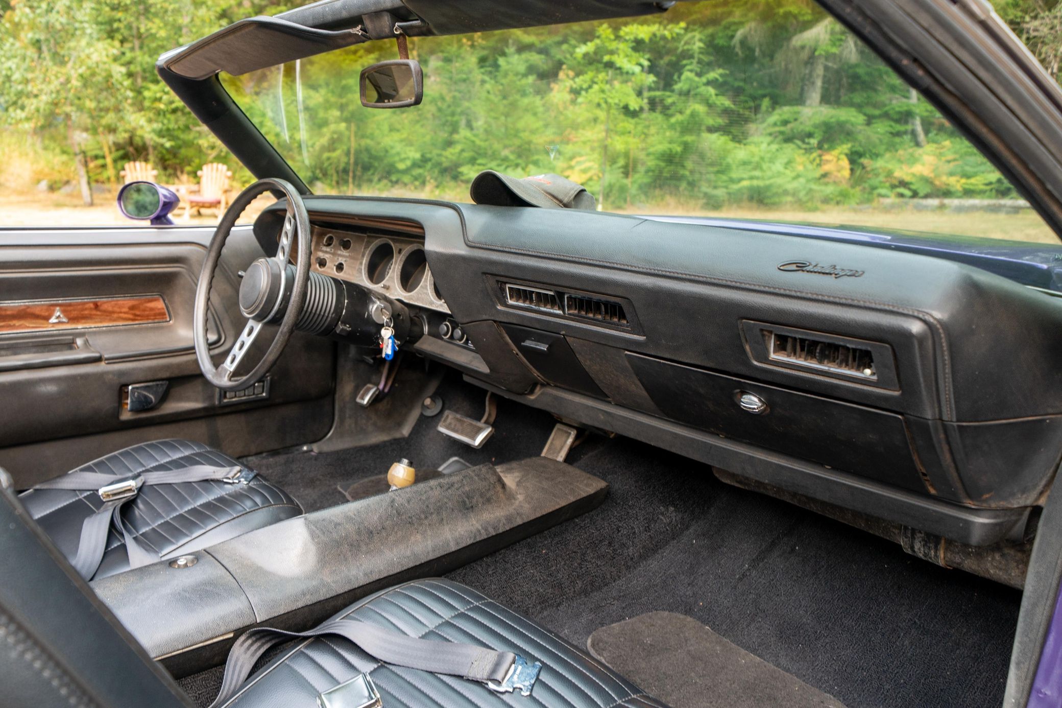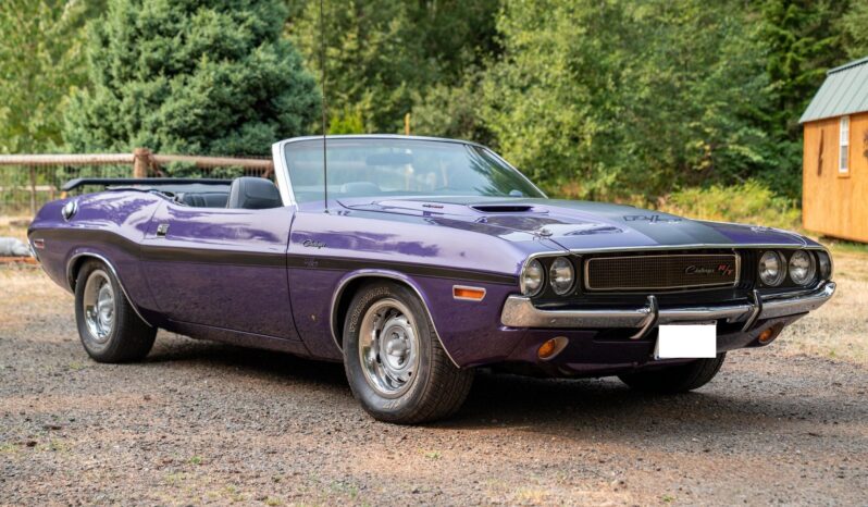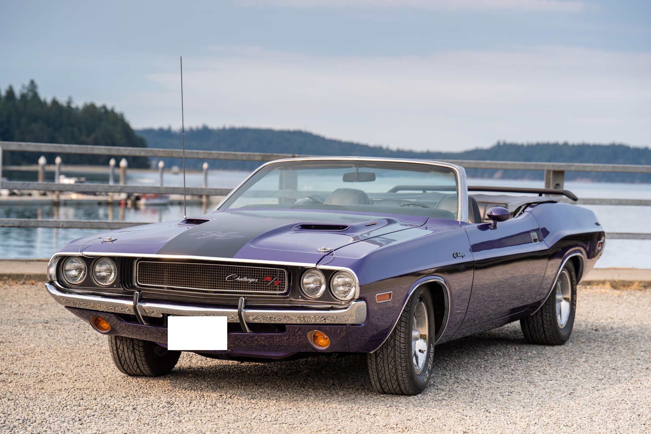 This example is a convertible model that's been turned into a Challenger R/T tribute. Complete with a 440-cubic-inch V8, R/T graphics, and a repaint in Plum Crazy – one of the most famous factory paint colors of all time.