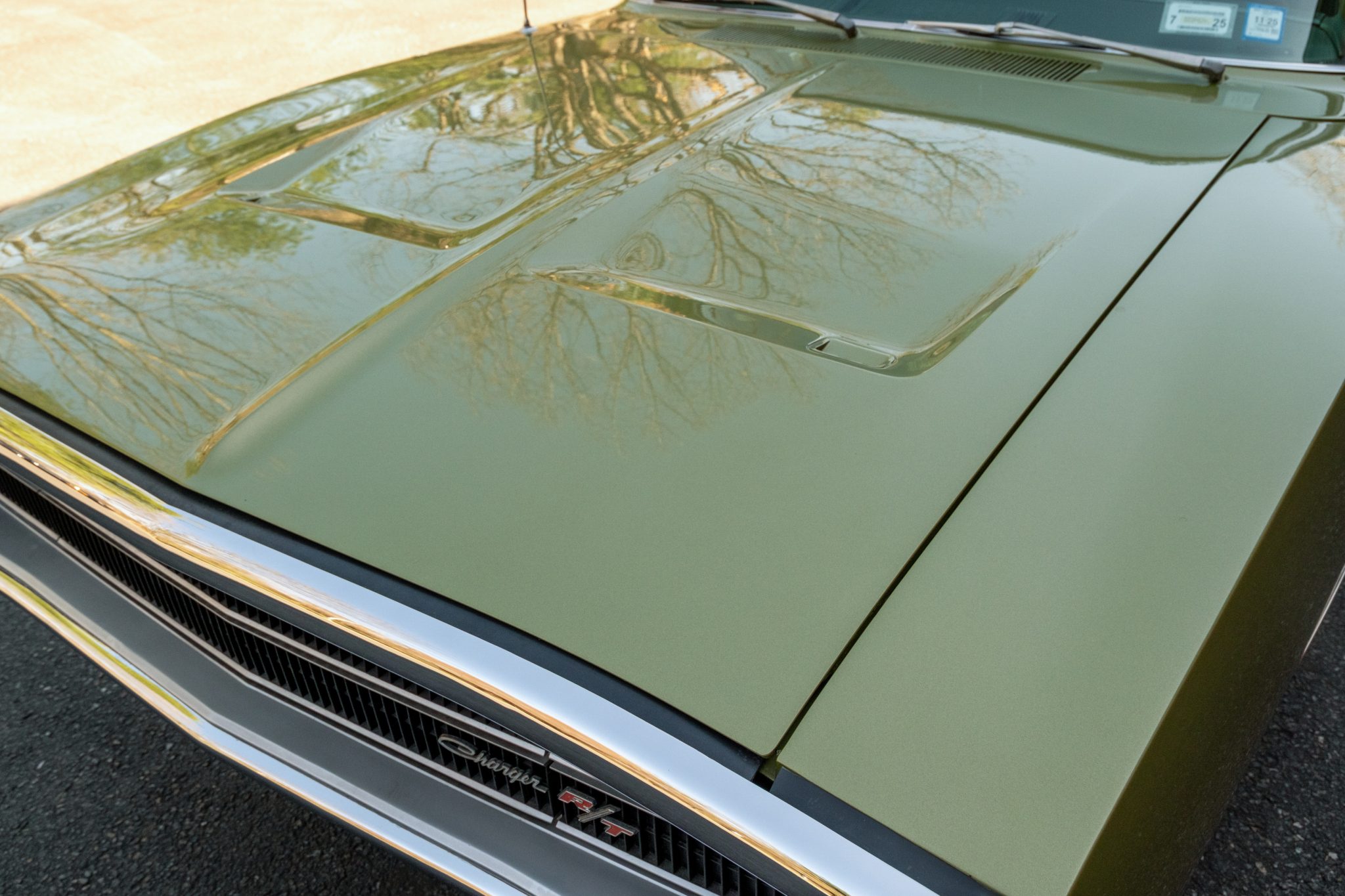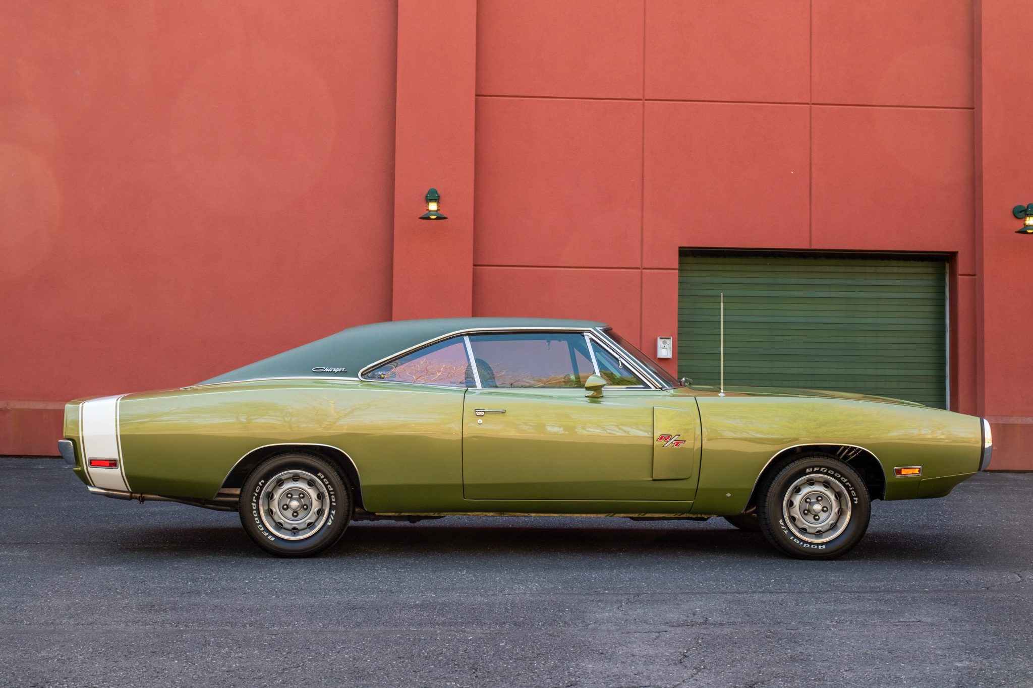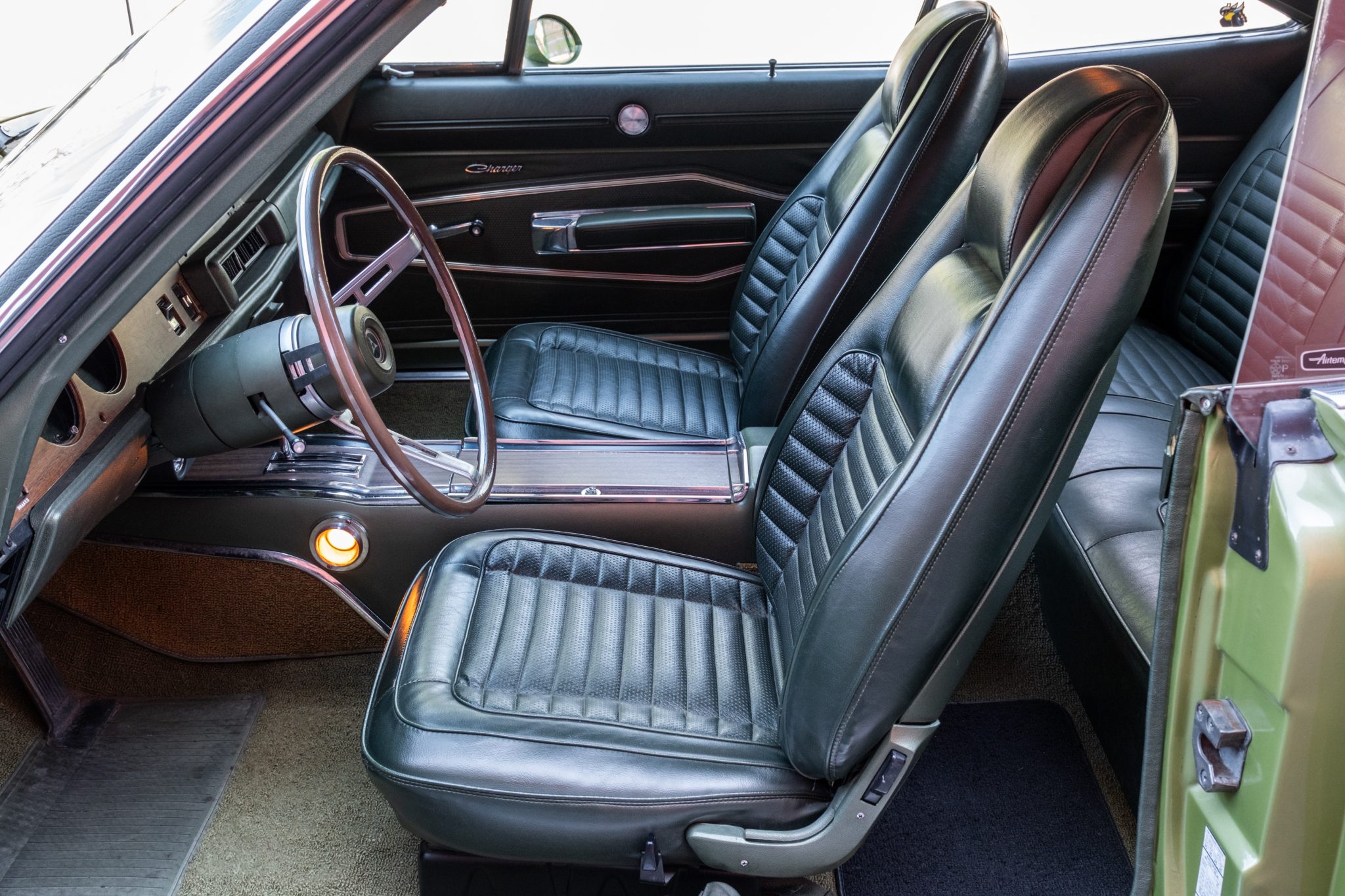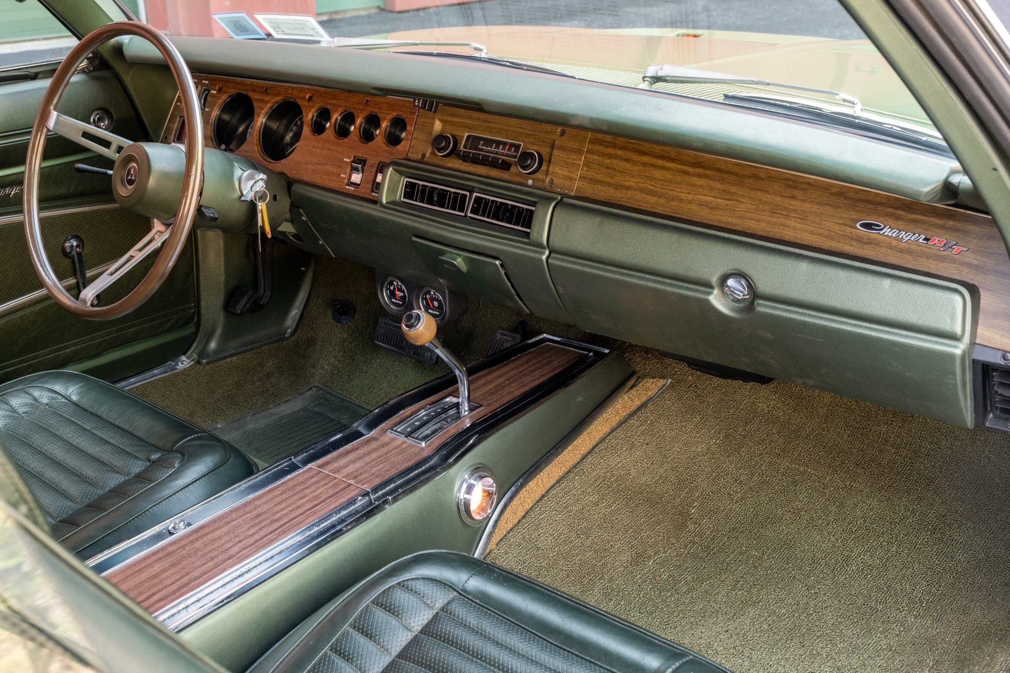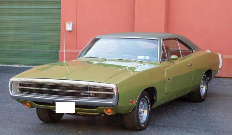 This 1970 Dodge Charger R/T was subsequent work involved a repaint in green and a refresh of the green interior. and work since has included replacing components for the braking, suspension, and fuel systems along with the tires, air conditioning compressor, and gaskets for the 440ci V8 and the three-speed automatic transmission. The car is equipped with a green vinyl roof, hideaway headlamps, 14” Rallye wheels, power steering, an AM radio, and a Tic-Toc tachometer.