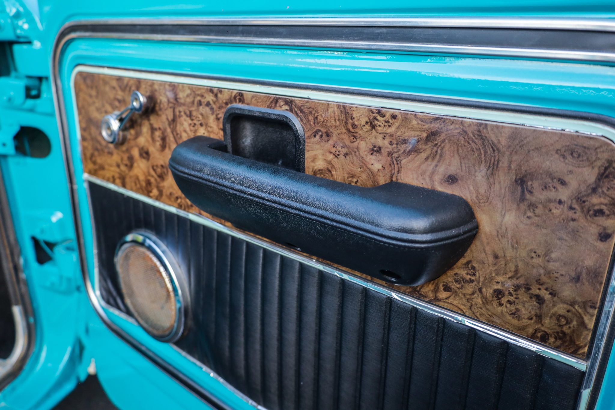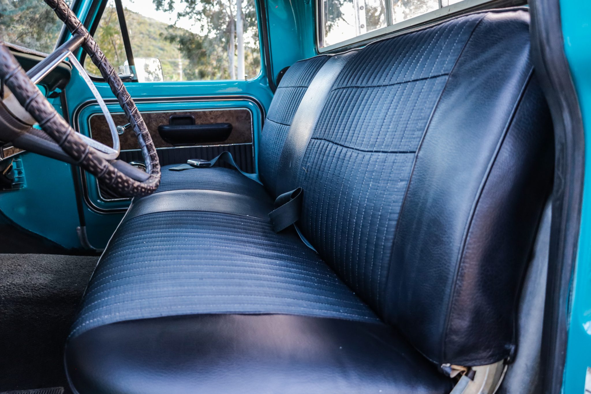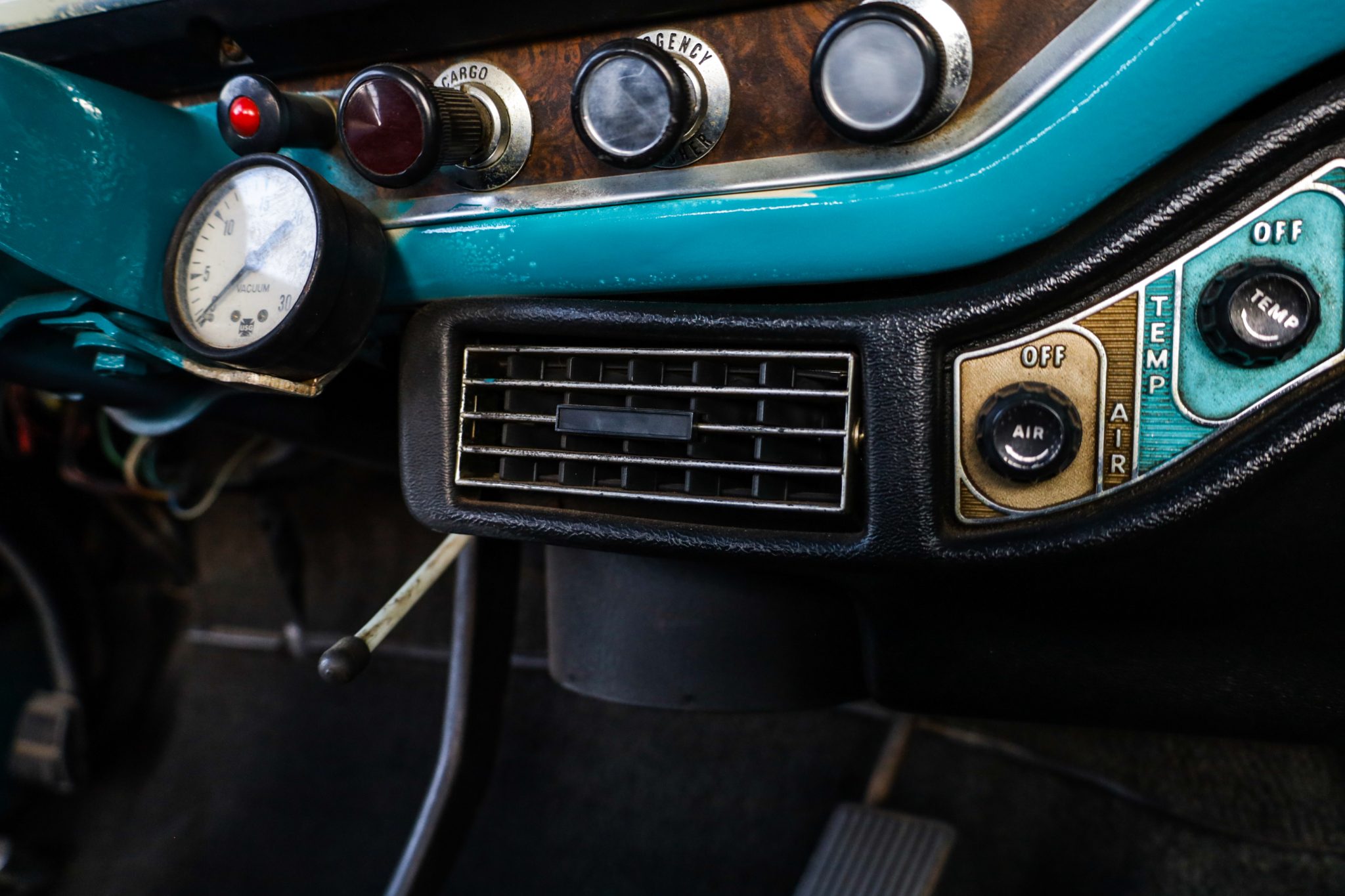 The 360ci V8 was rebuilt in 2020 and sends power to the rear wheels through a three-speed Cruise-O-Matic automatic transmission. Equipment includes a RedHead power steering gear, front disc brakes, 16″ American Racing Outlaw II wheels, air conditioning, a Sanyo cassette stereo, and a Holley carburetor.