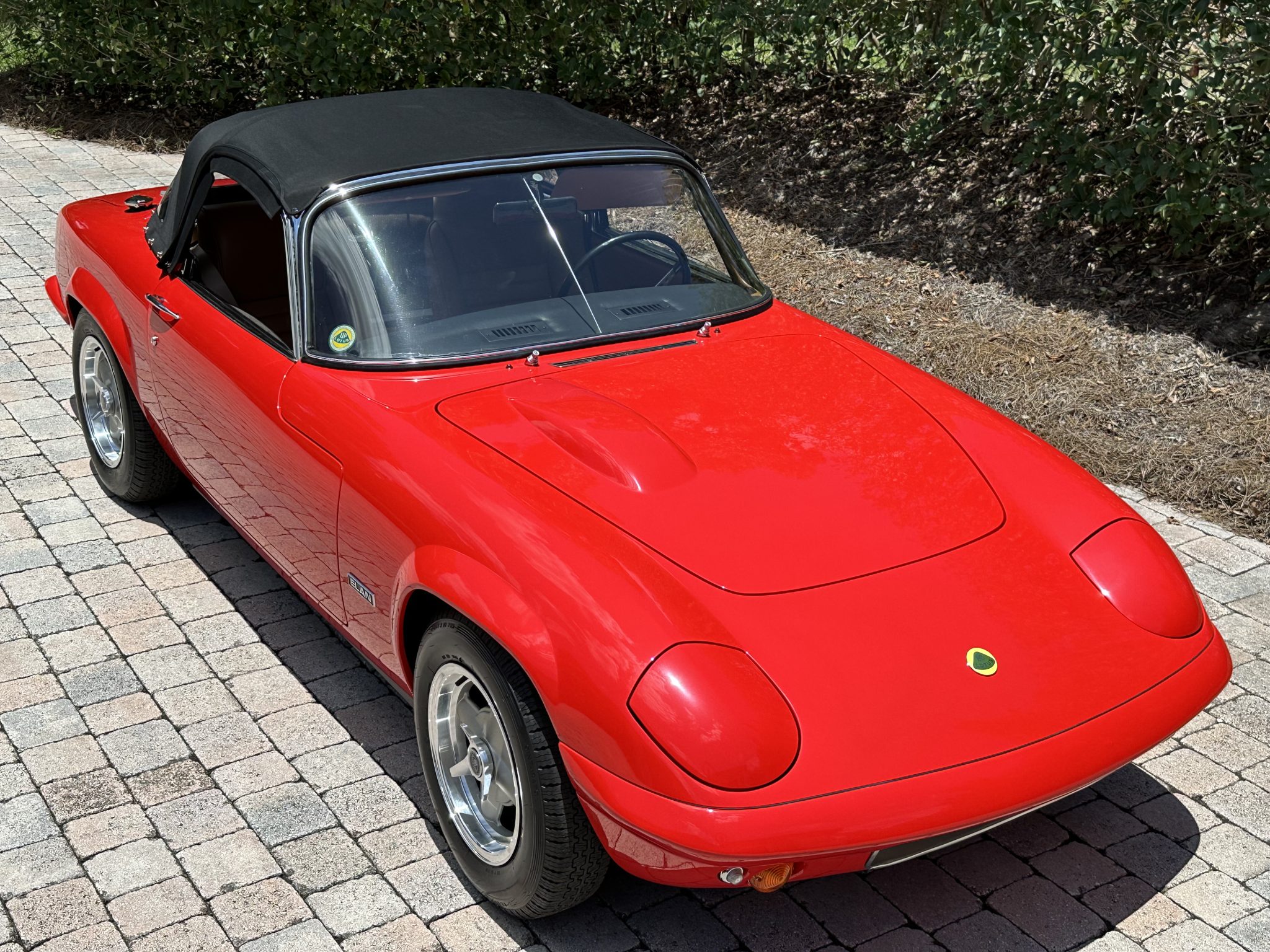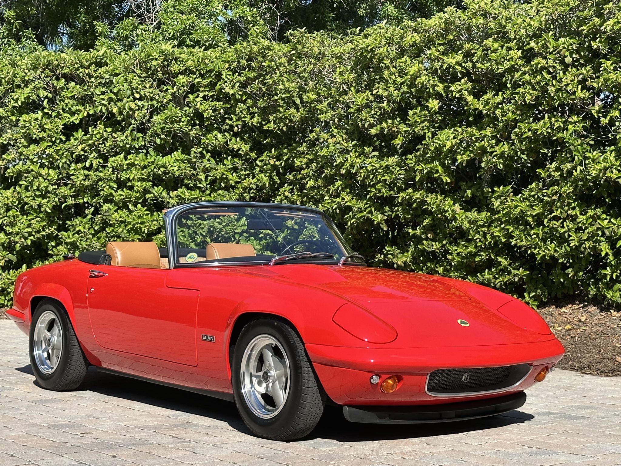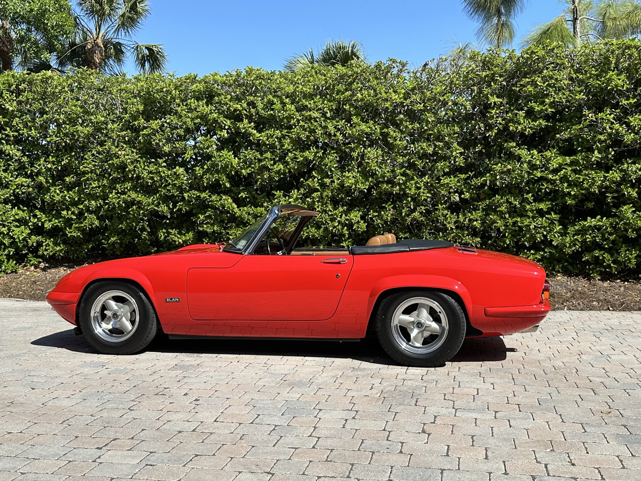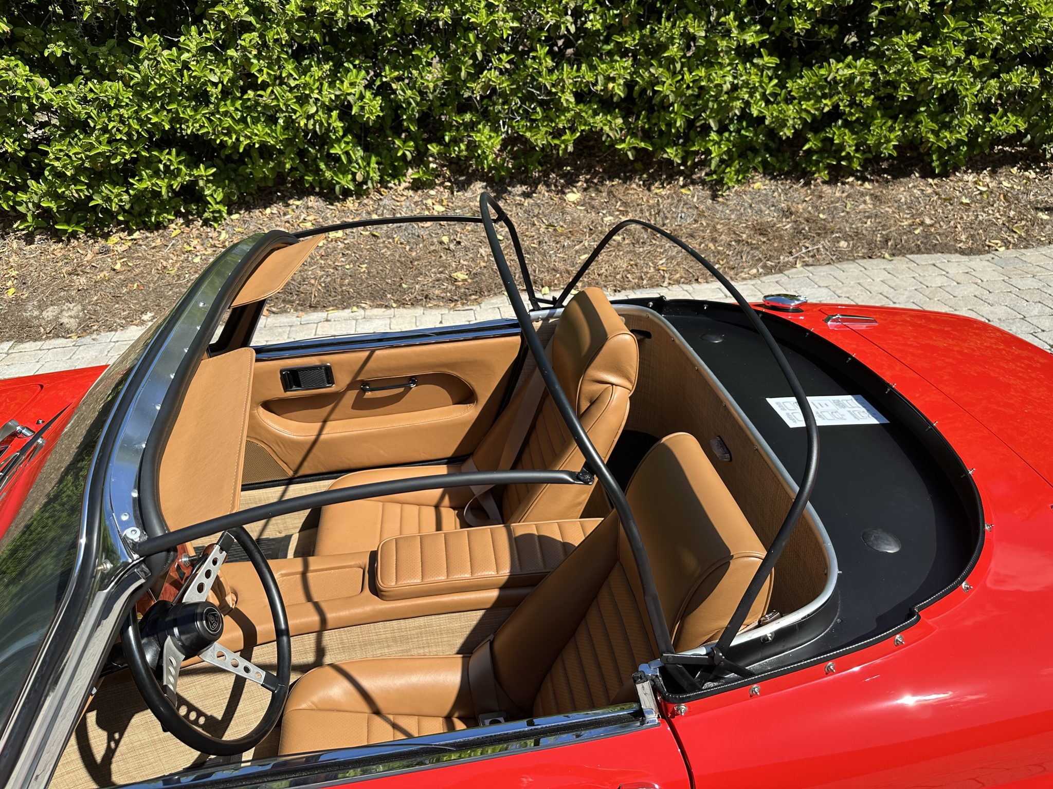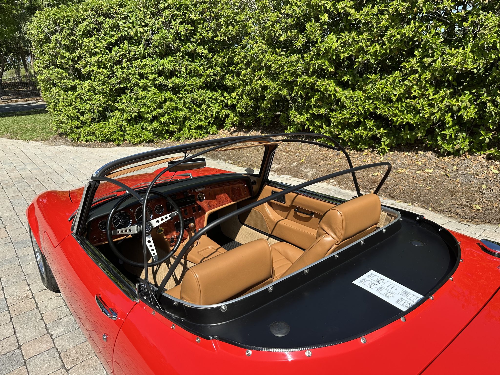 It was subsequently fitted with a replacement tubular chassis from Spyder Cars as part of a multi-year refurbishment that also involved a repaint, an interior re-trim, an engine reseal, and rebuilds of the transmission and rear end. Finished in Rosso Scuderia with a black soft top, the car features retractable headlights as well as adjustable coilovers and rides on 13″ four-spoke alloy wheels secured with three-ear knockoffs. Inside, London Tan leather–trimmed bucket seats are accompanied by a burled walnut dash and a Nakamichi stereo. The twin-cam 1.6L inline-four is fitted with dual Stromberg carburetors as well as a stainless-steel exhaust header, while shifting is through a four-speed manual transmission.