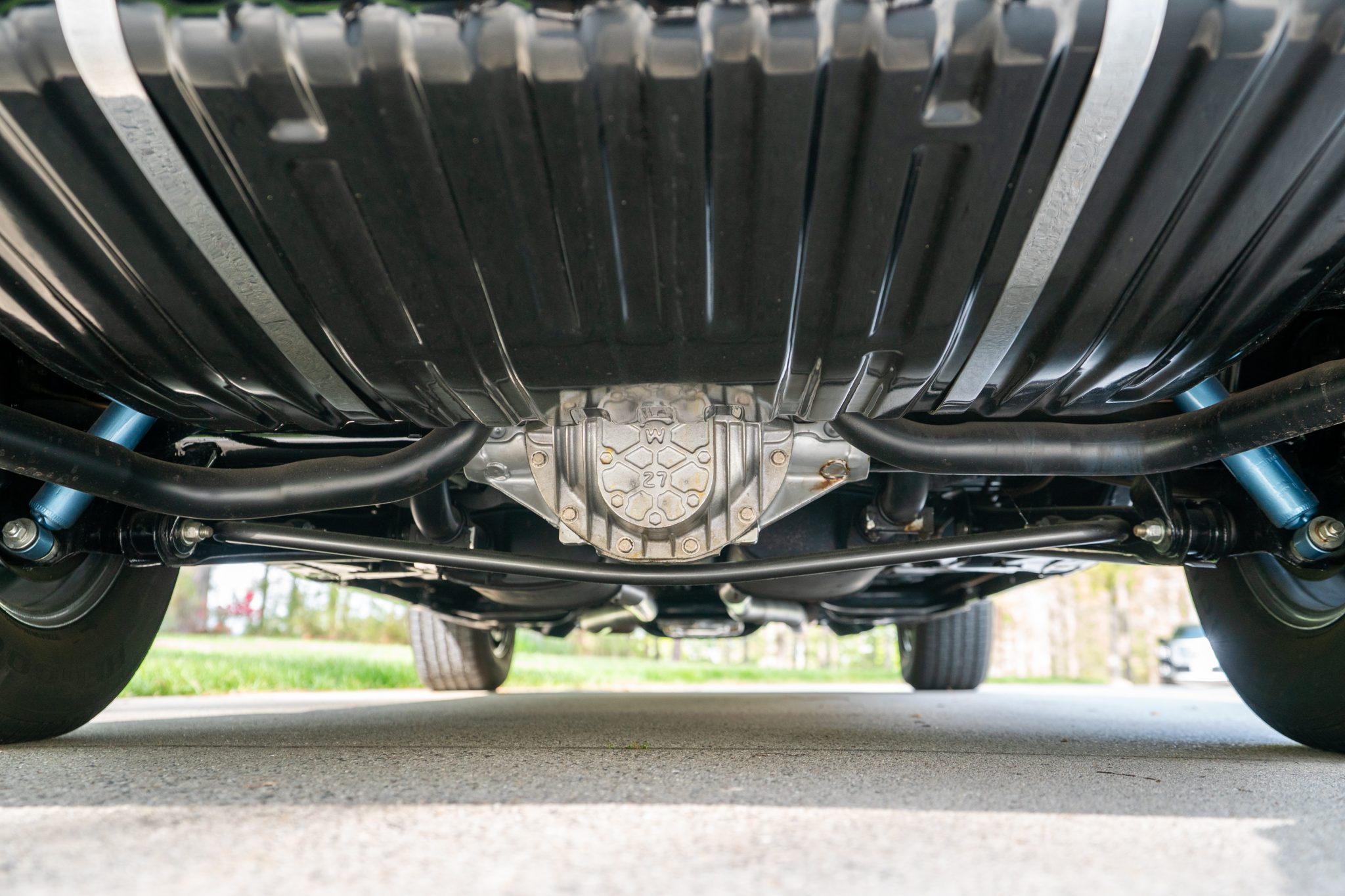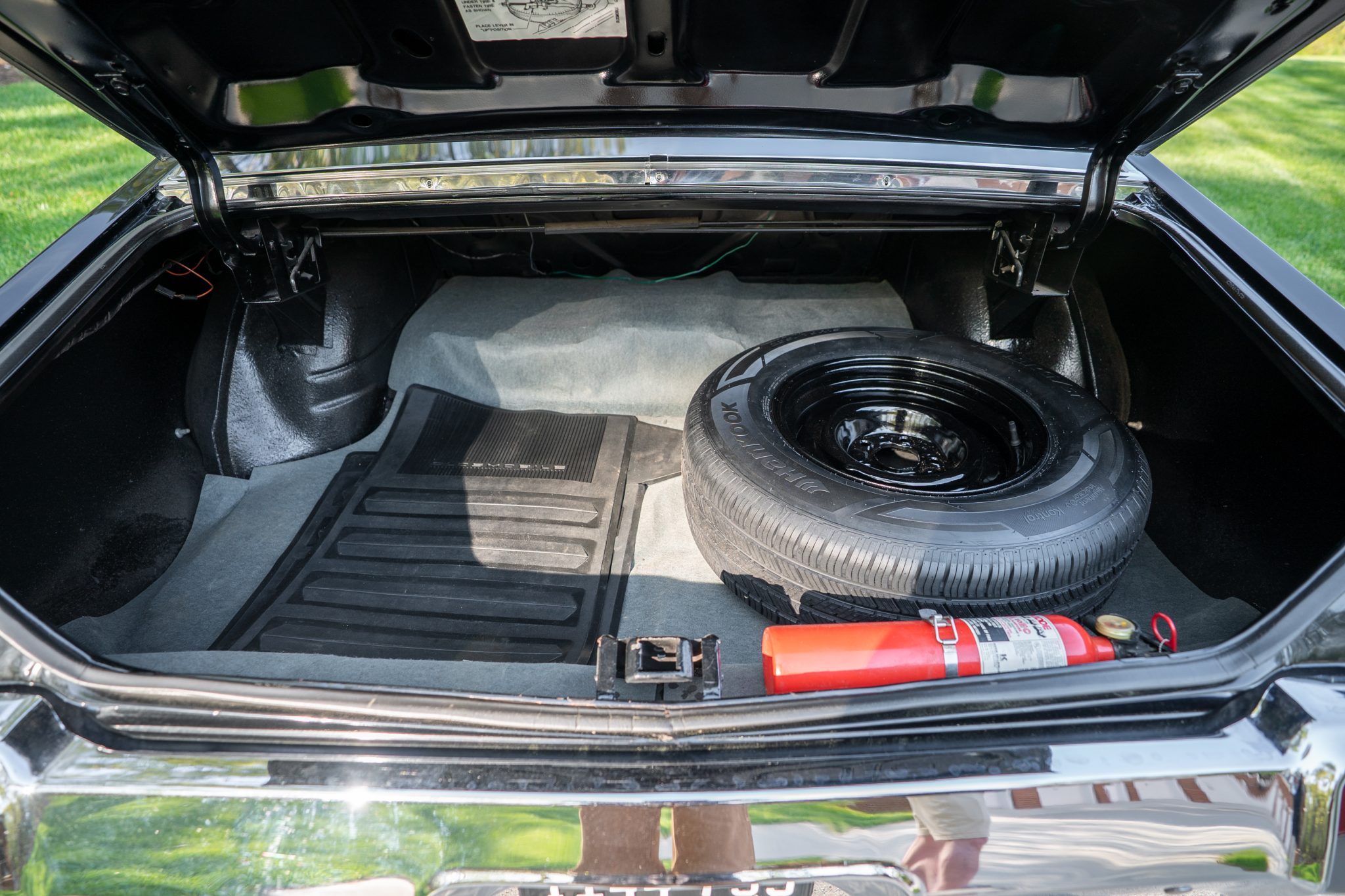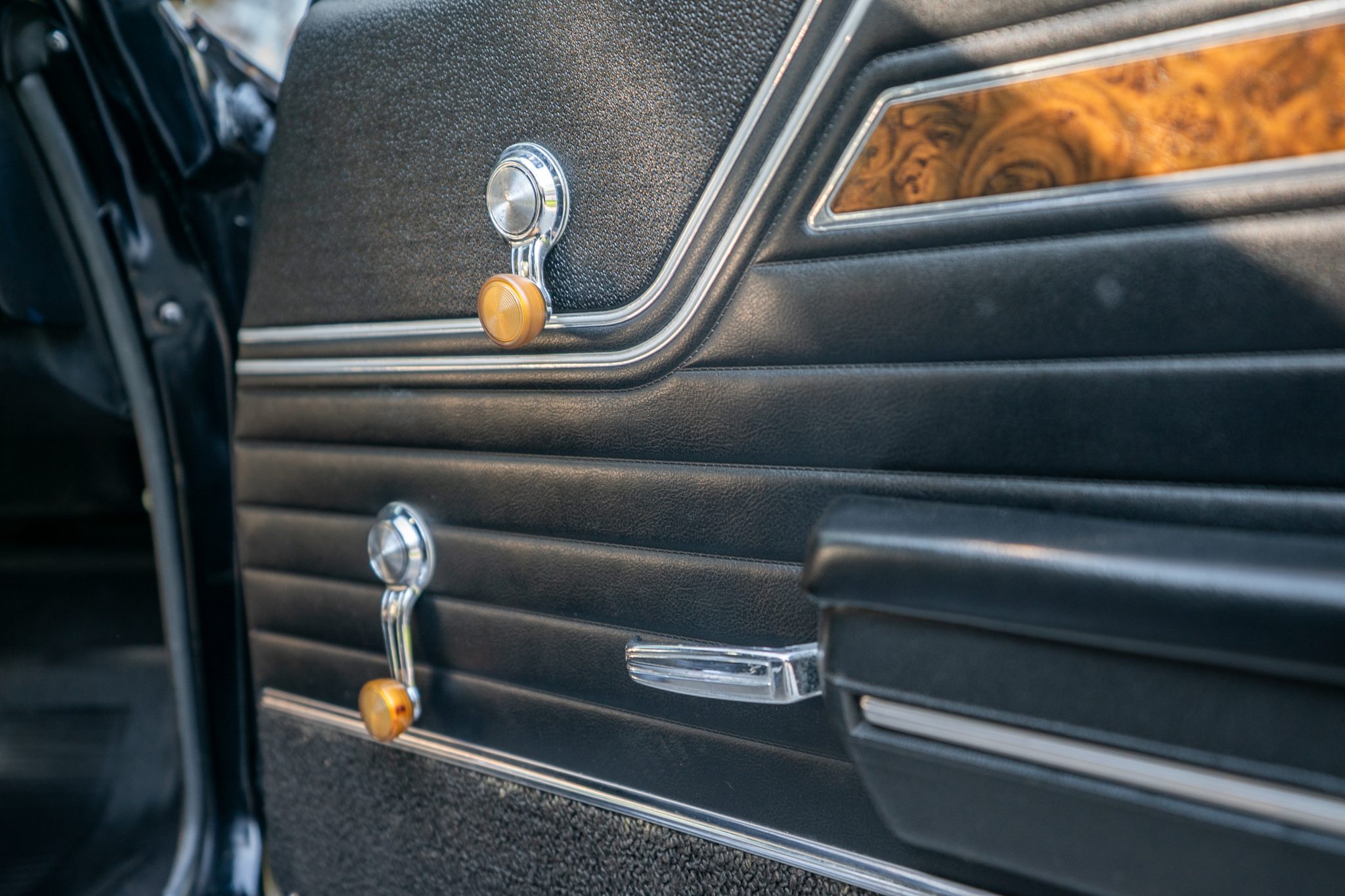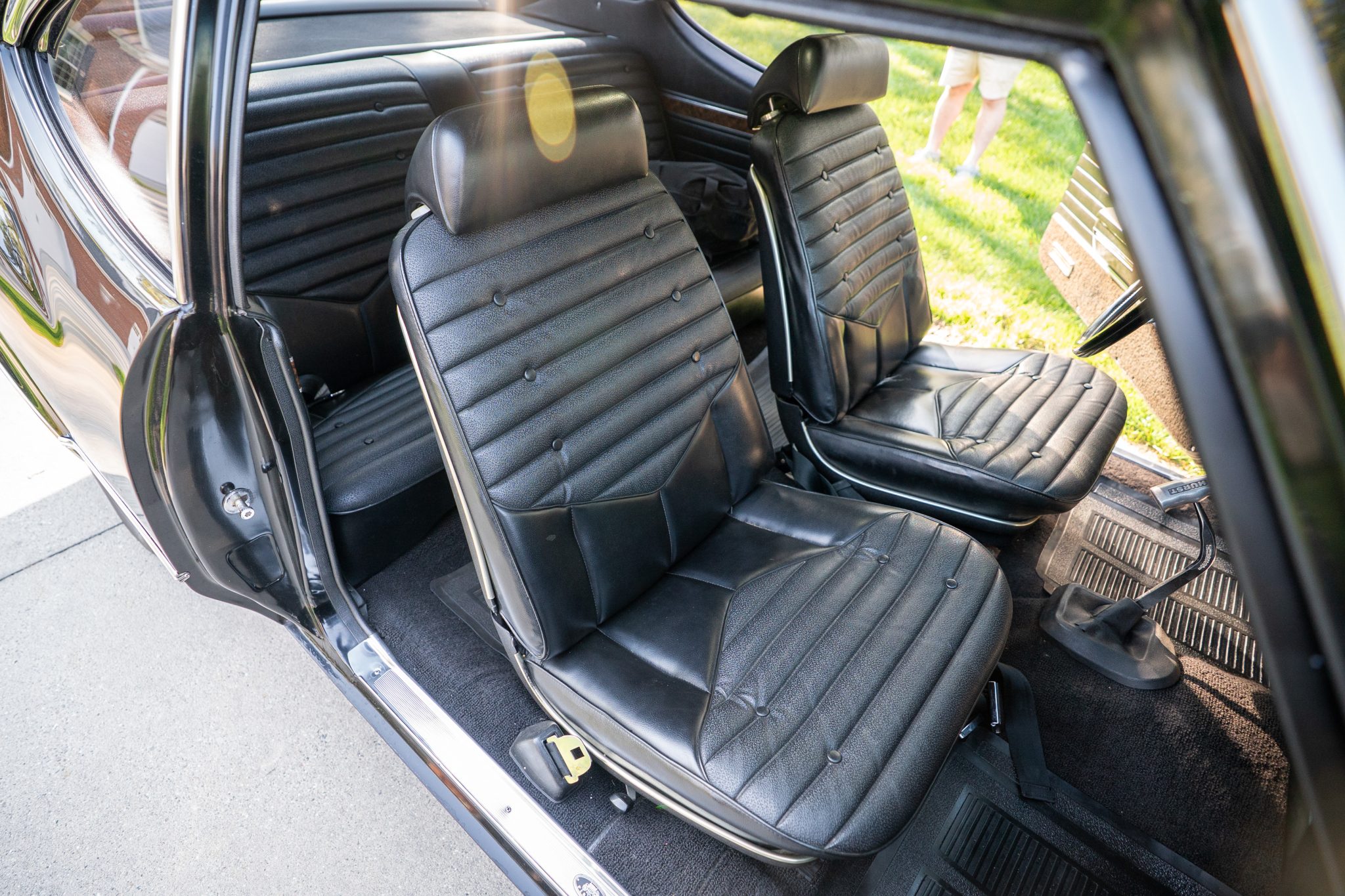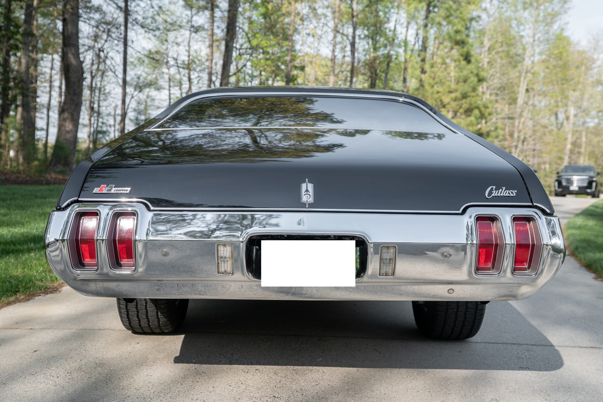 This 1970 Oldsmobile Cutlass S Sports Coupe is a black-over-black example that is powered by a 350ci V8 linked with a four-speed manual transmission. Details include a fiberglass dual-scoop hood, white hood stripes, power-assisted steering, 15″ Super Stock I wheels, a Hurst T-handle shifter, an Edelbrock intake manifold and four-barrel carburetor, tubular exhaust headers, and a push-button AM radio.